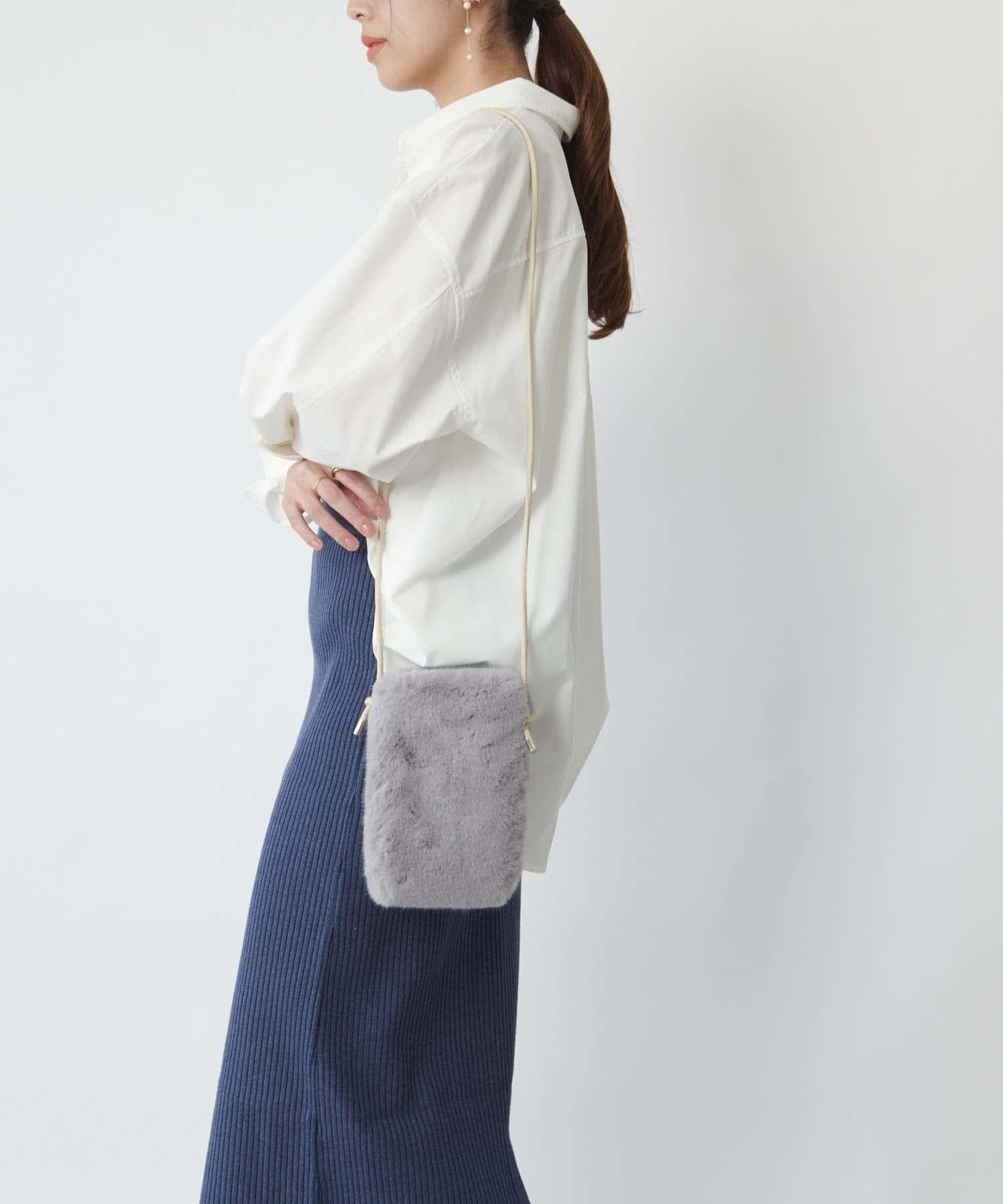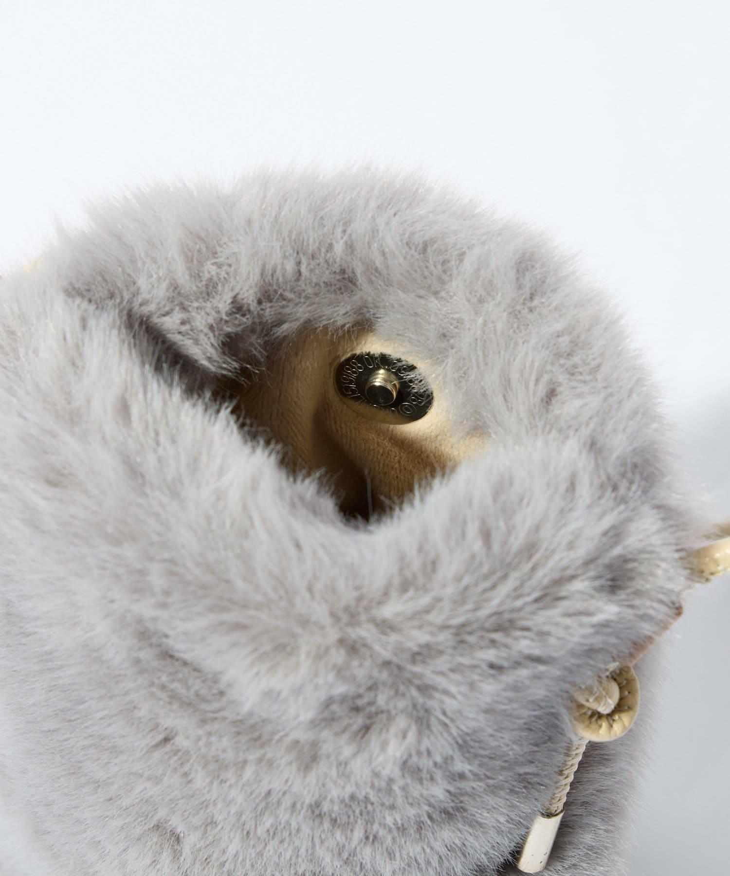 這款單肩包有一個可愛的、毛茸茸的毛皮配件。