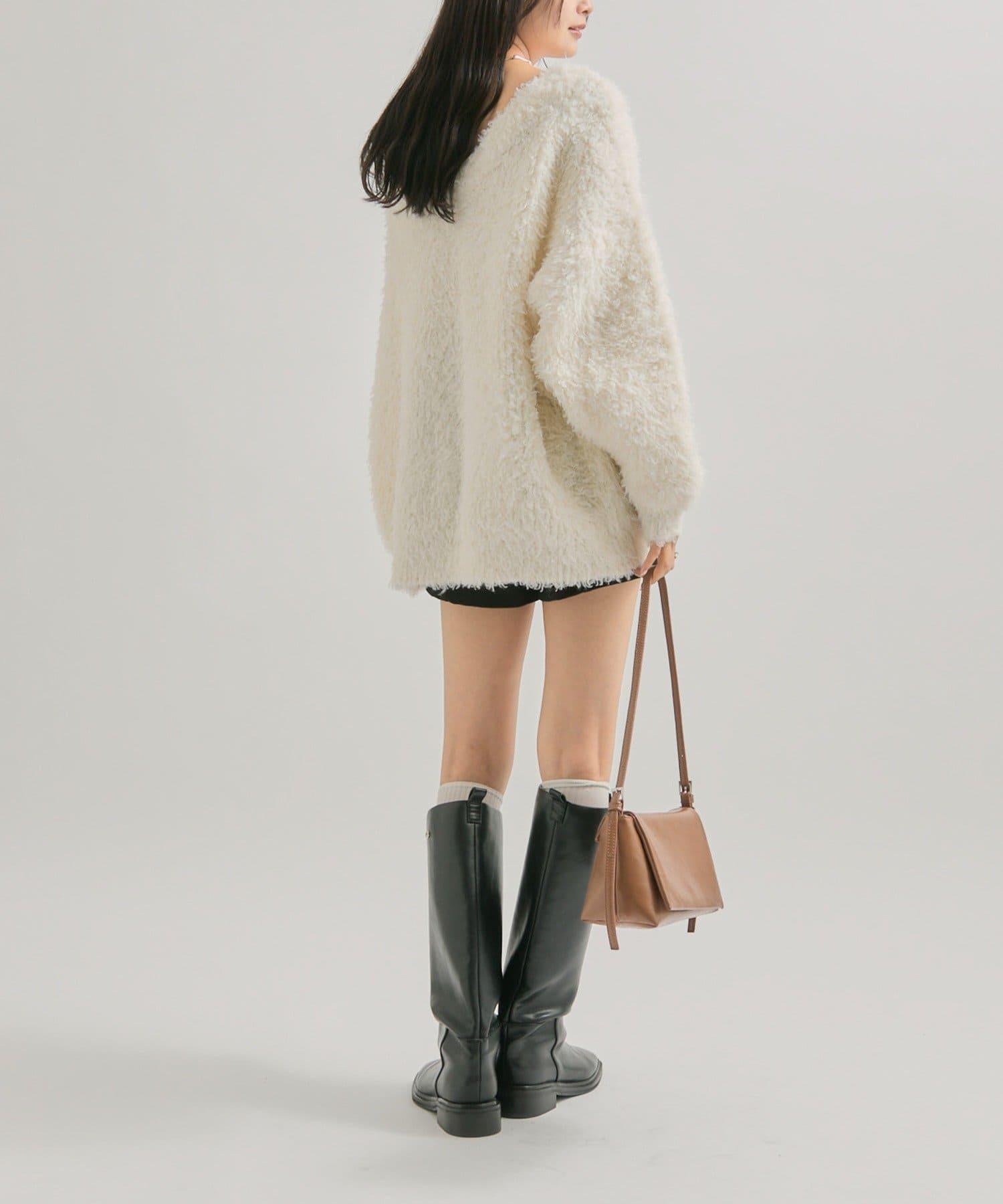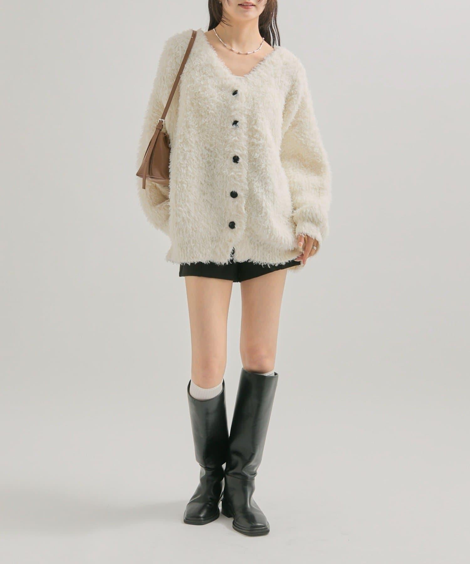 搭配迷你打底褲和長筒靴,打造均衡造型。