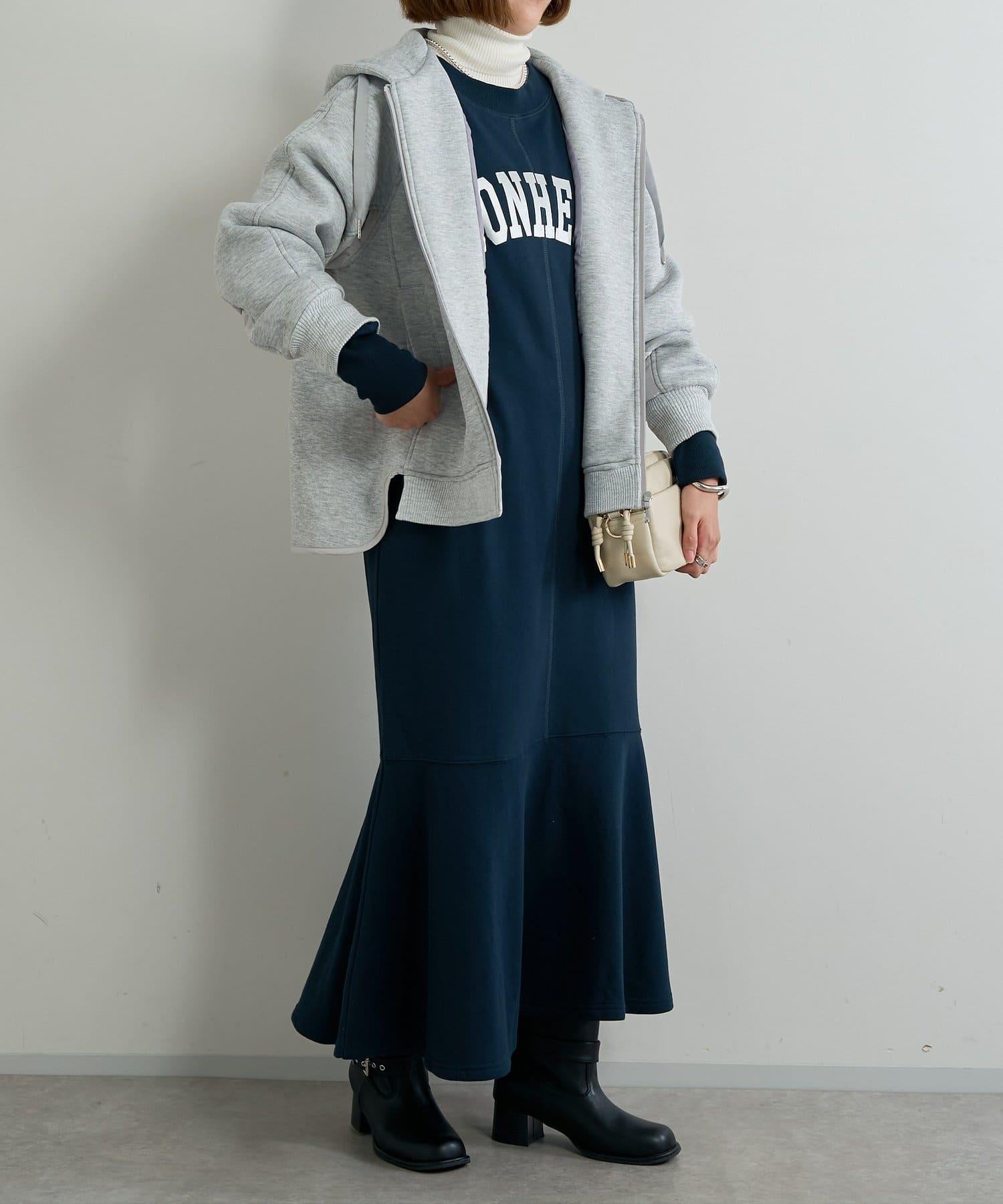 美人魚的輪廓向下擺延伸,營造出女性的優雅氣質,同時採用休閒衛衣面料。