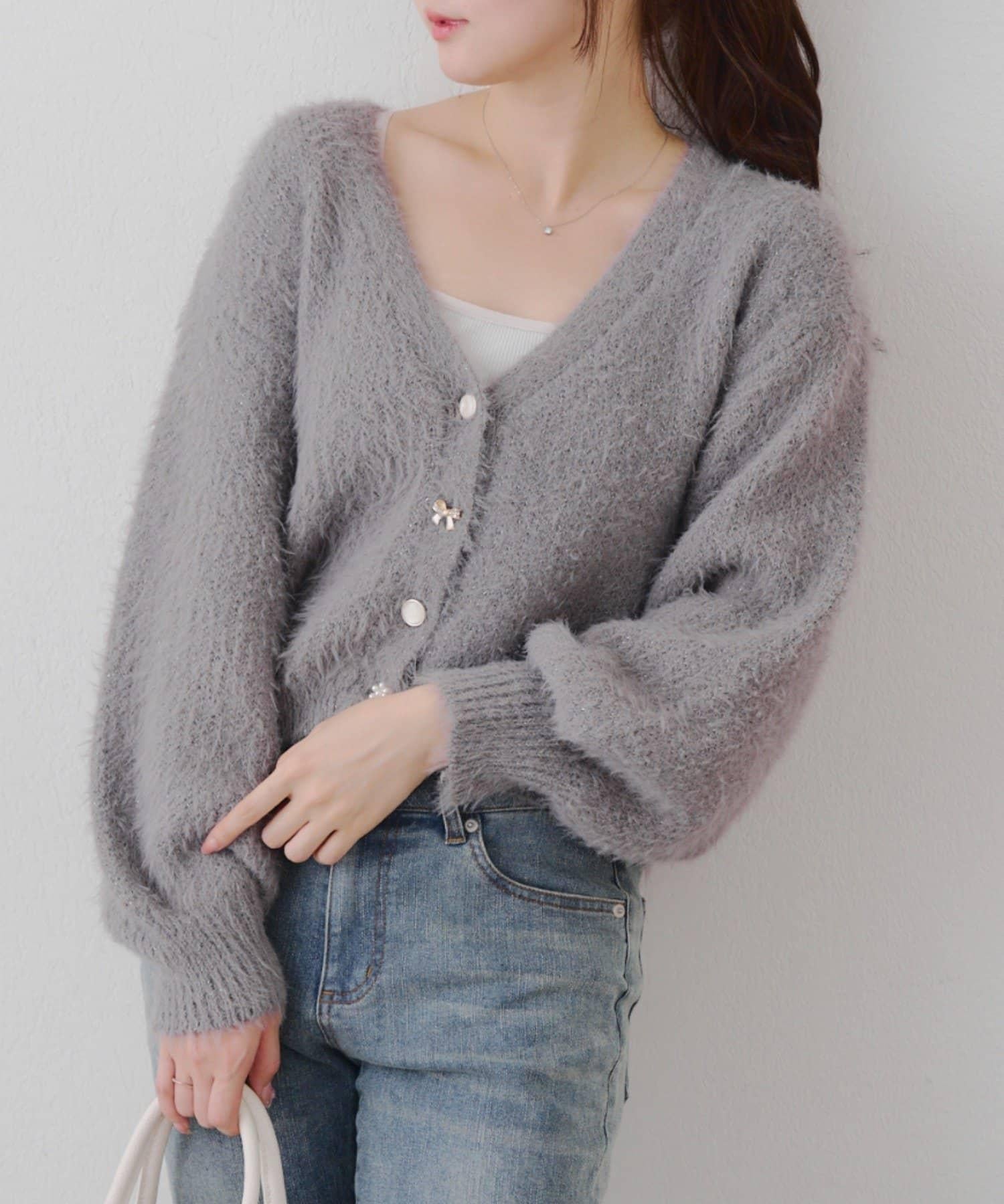 甜美蓬鬆【RMAF】亮片羽毛多款紐扣開衫