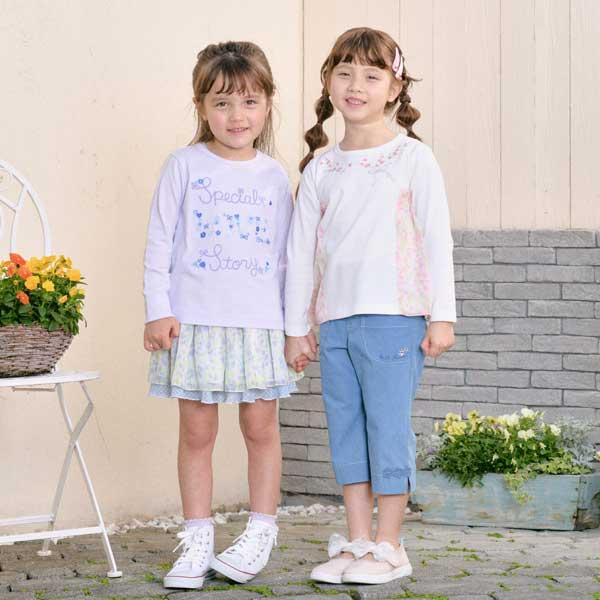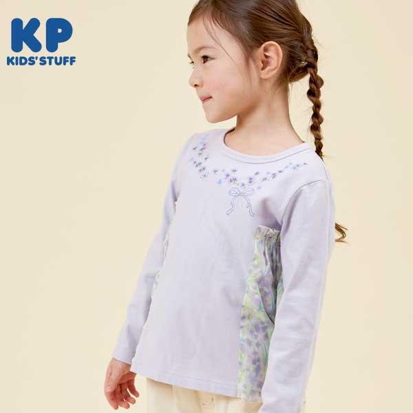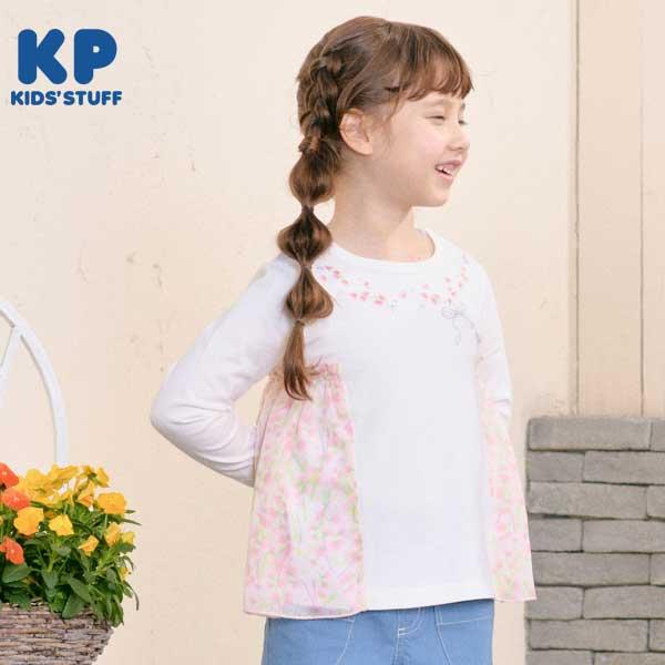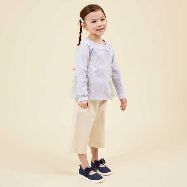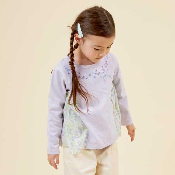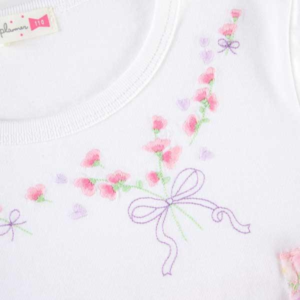 甜豆圖案雪紡針織長袖 T 恤。胸前花束狀的甜豆刺繡非常可愛。