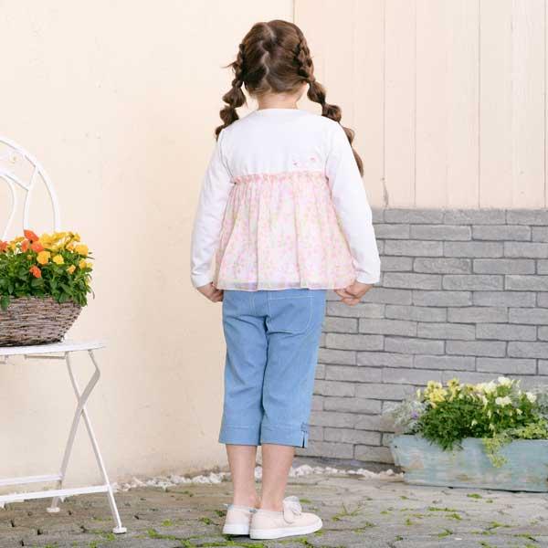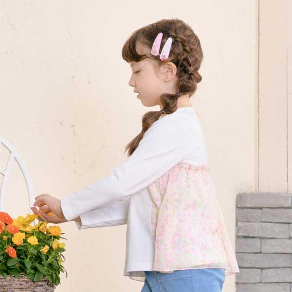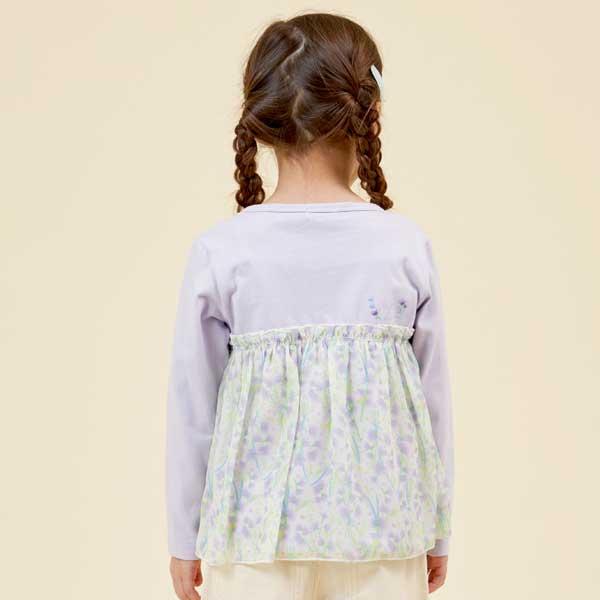甜豌豆花紋雪紡拼接T恤(100~130)