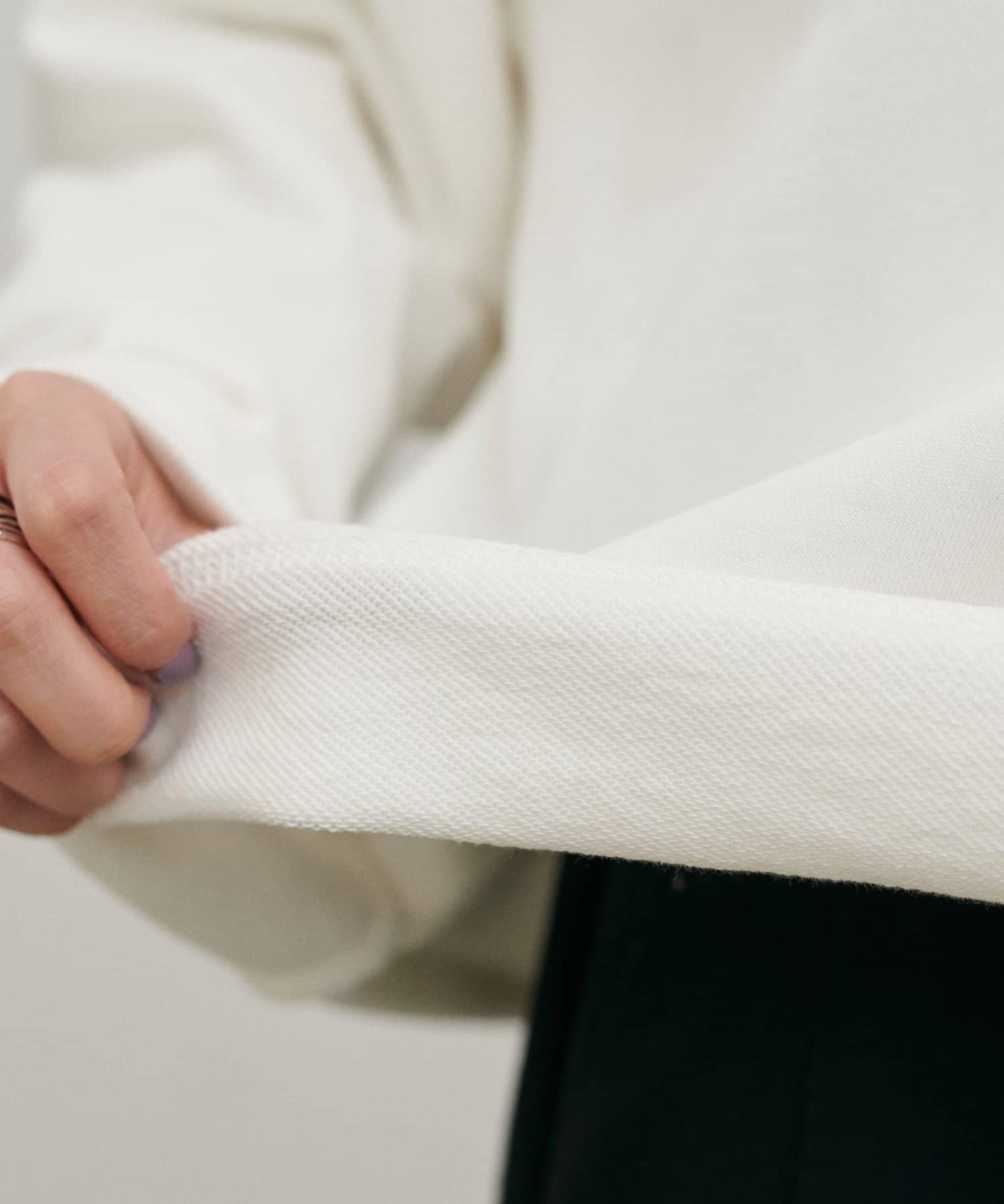 開領設計使臉部看起來乾淨利落,雖然是運動衫,卻給人一種不厚重的感覺。