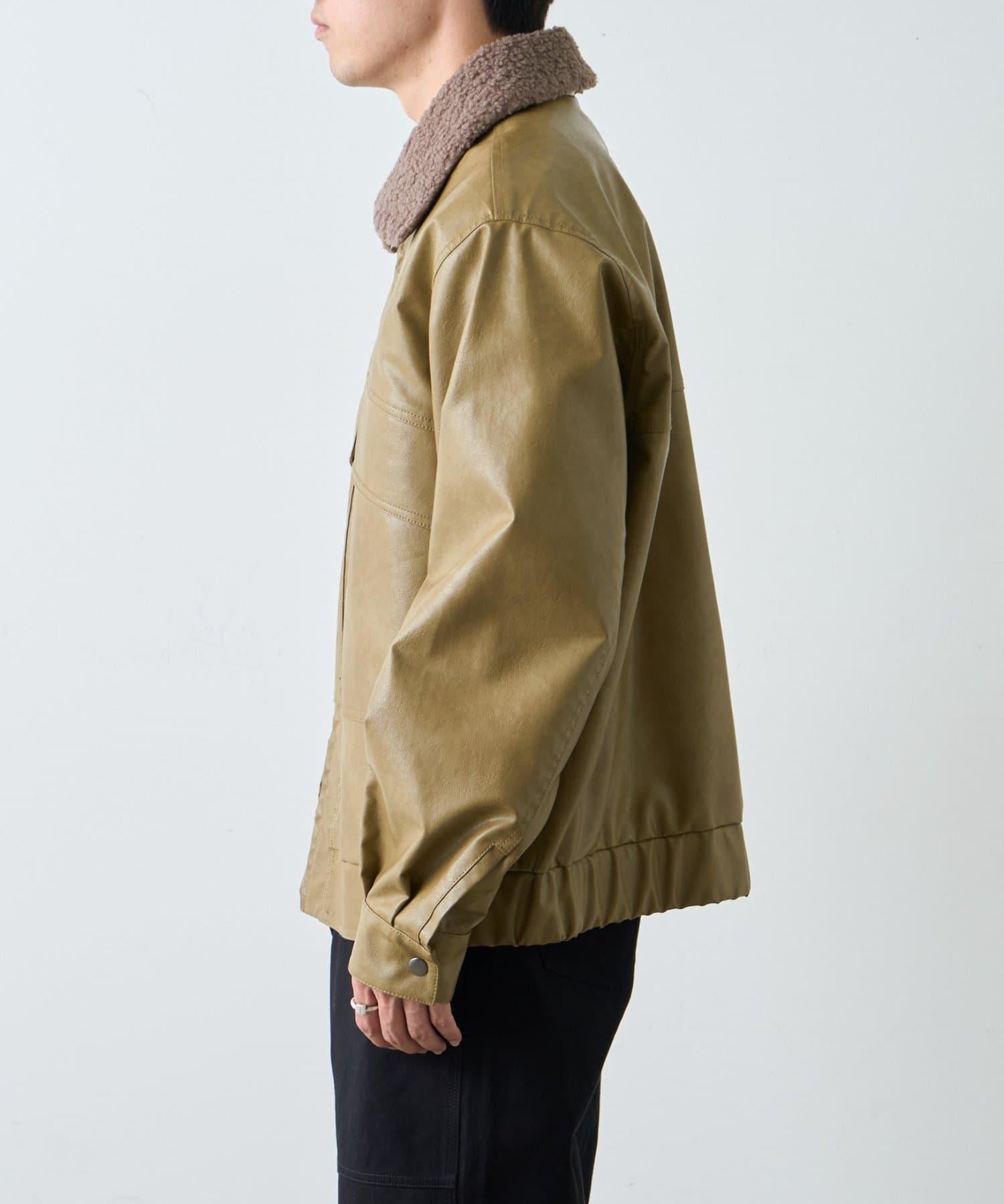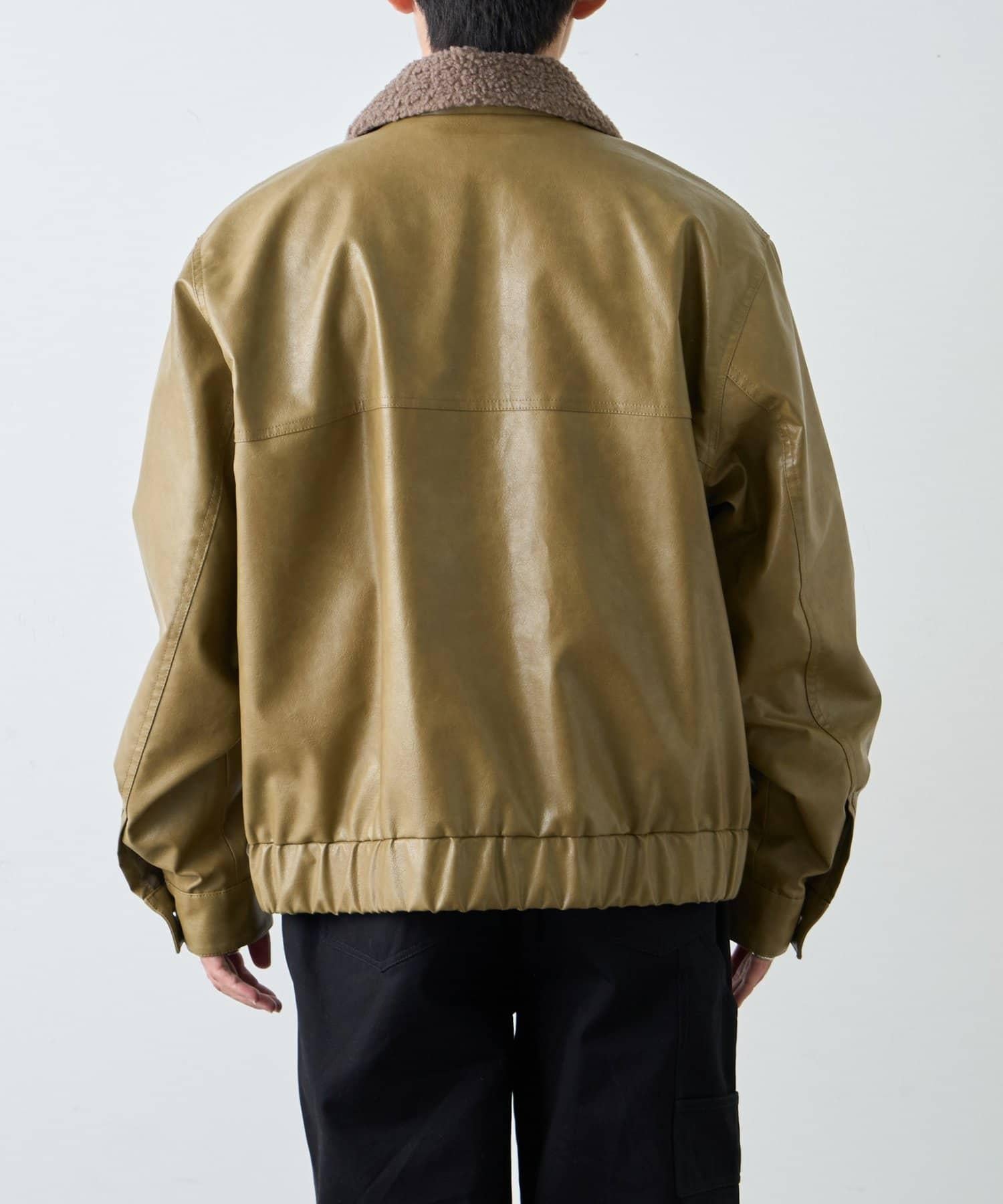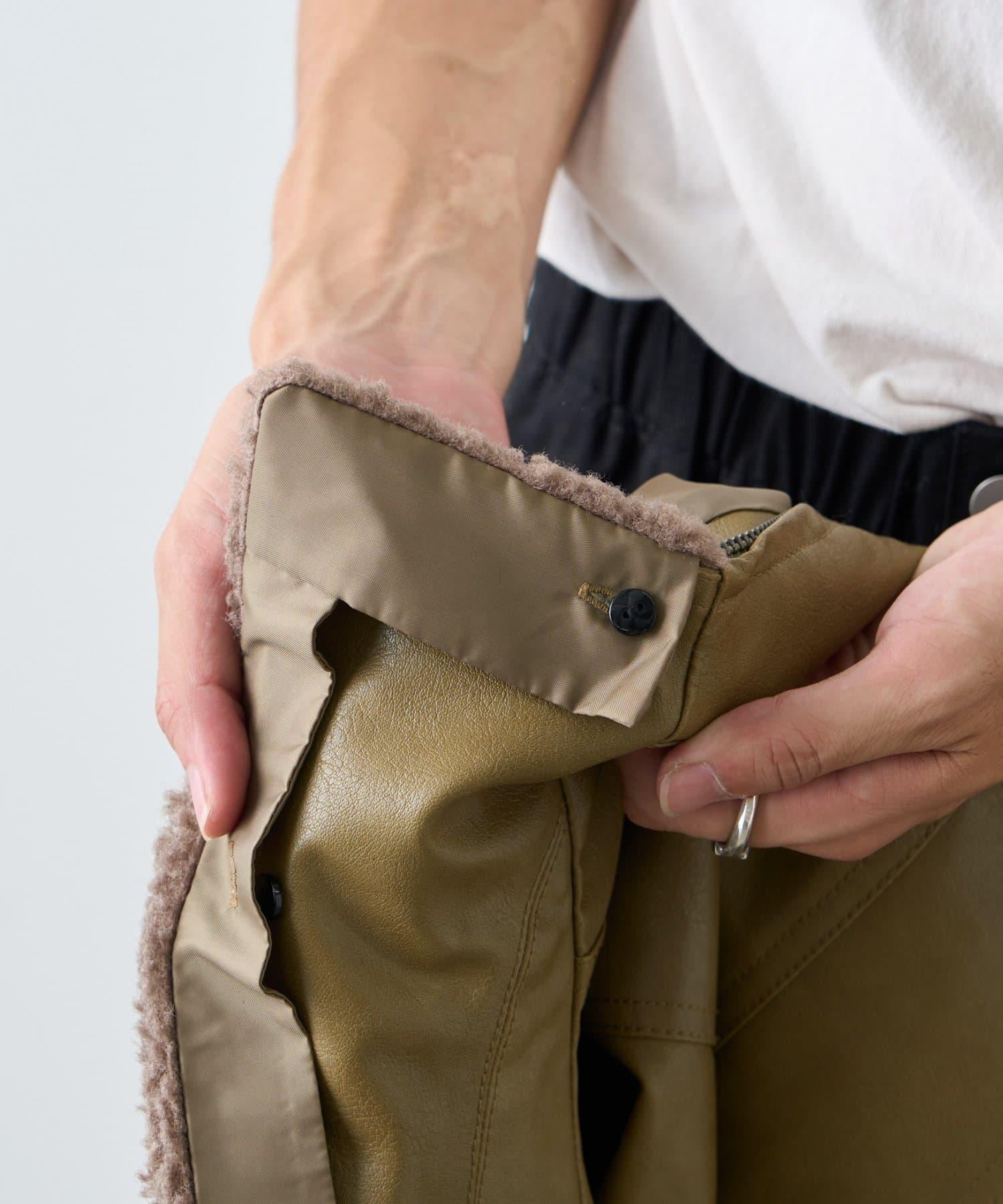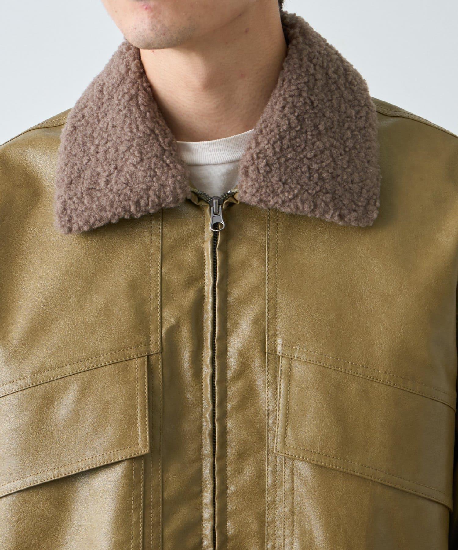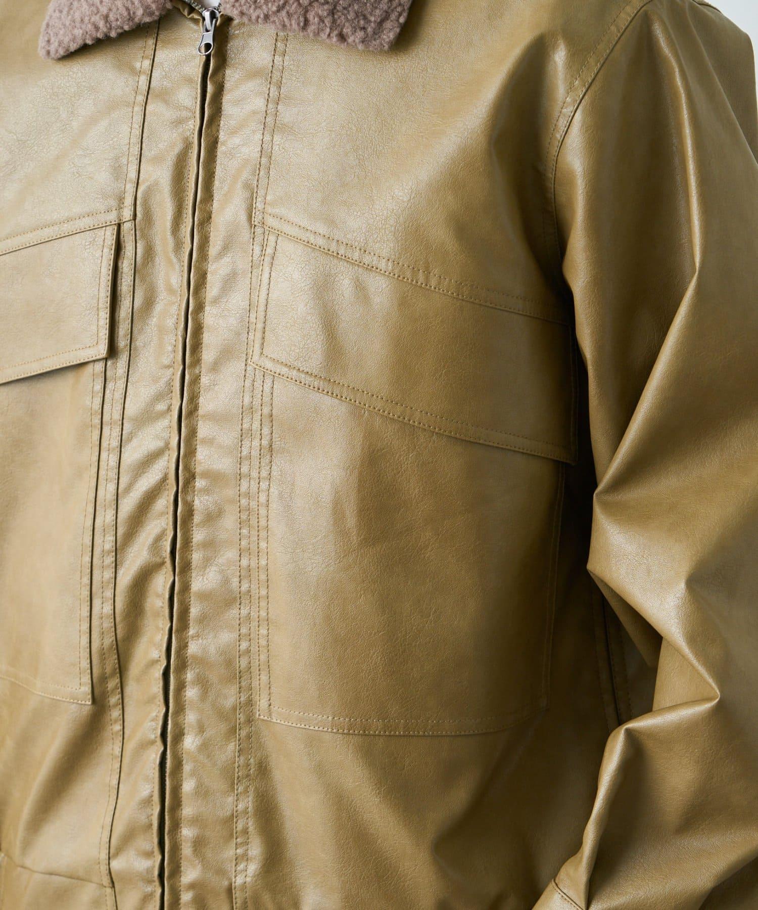 【男女同款】素皮革可拆卸羊羔絨領夾克