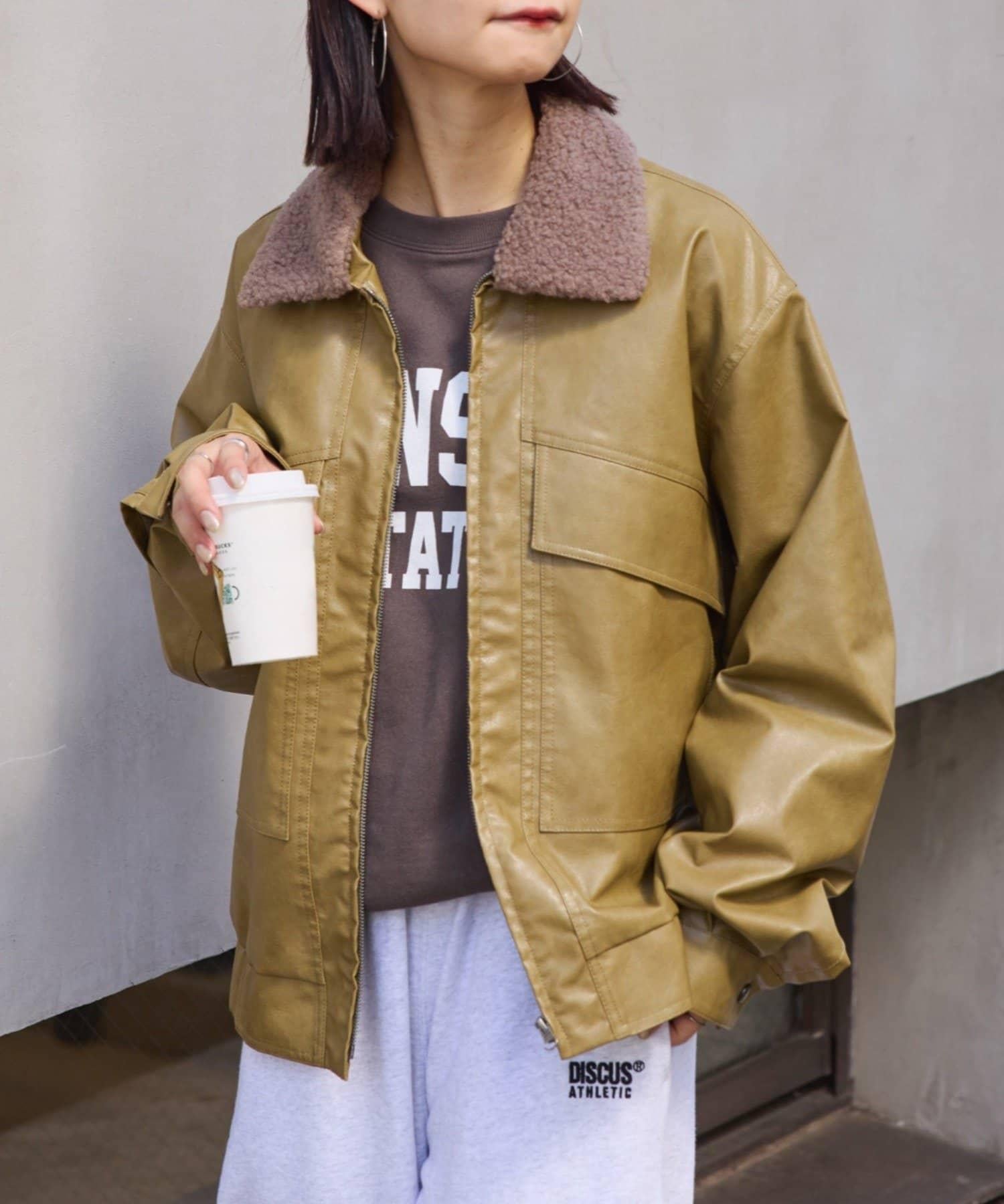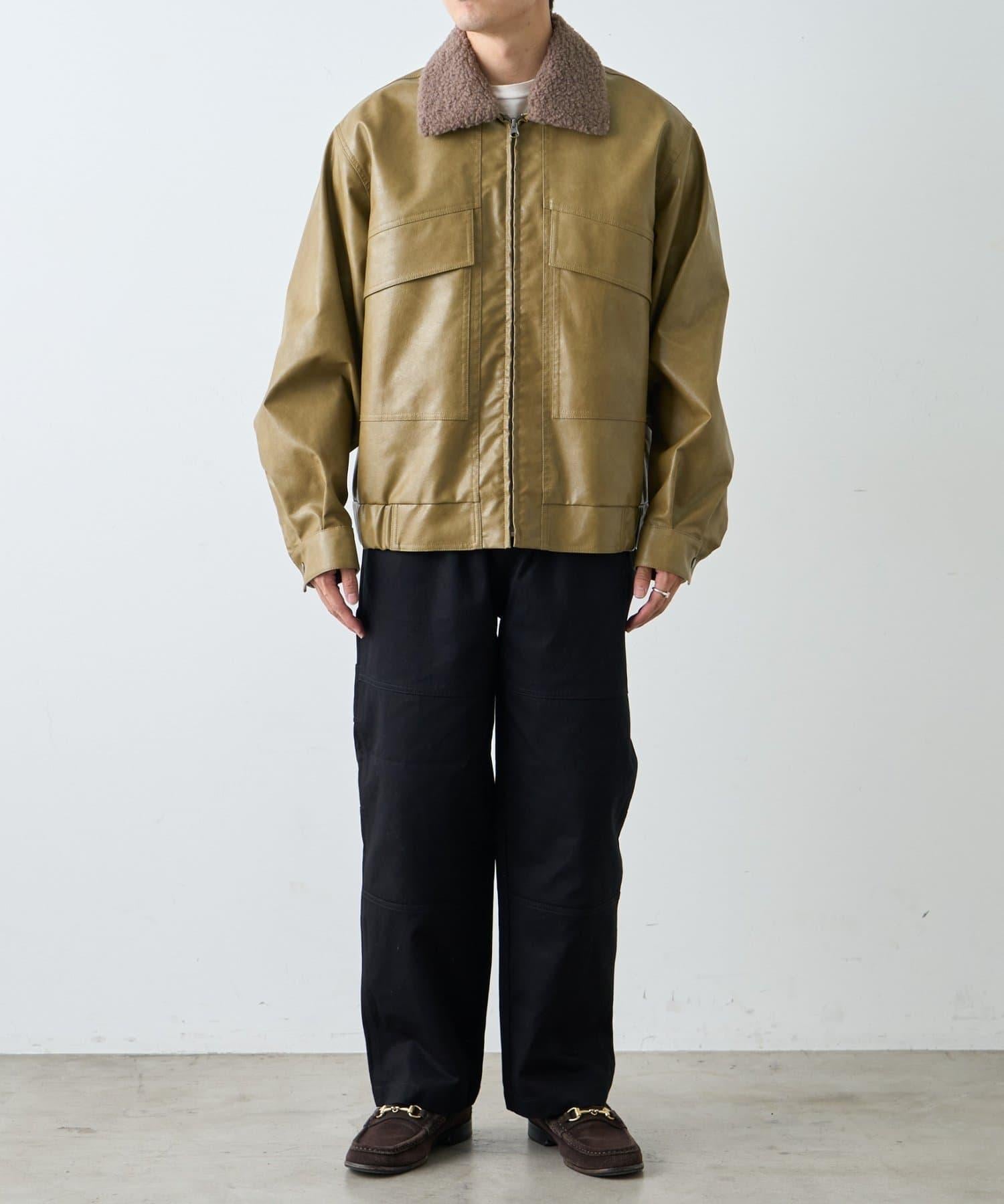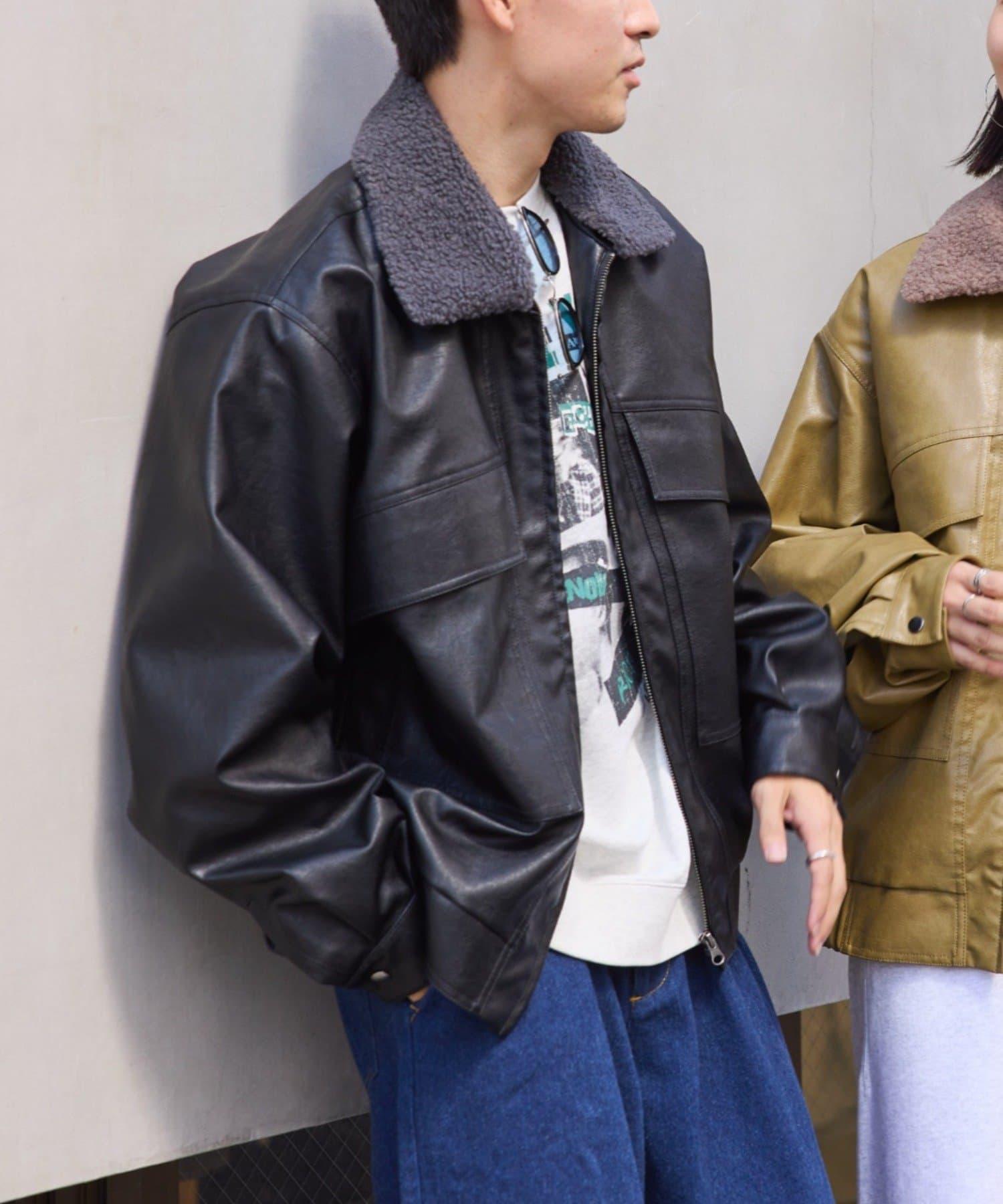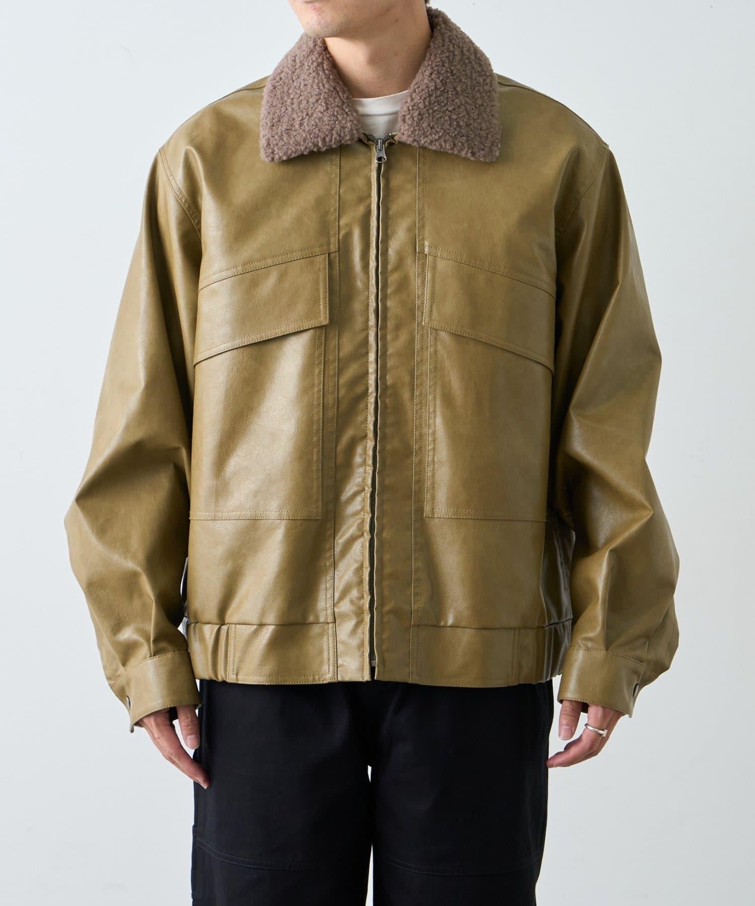 【男女同款】素皮革可拆卸羊羔絨領夾克