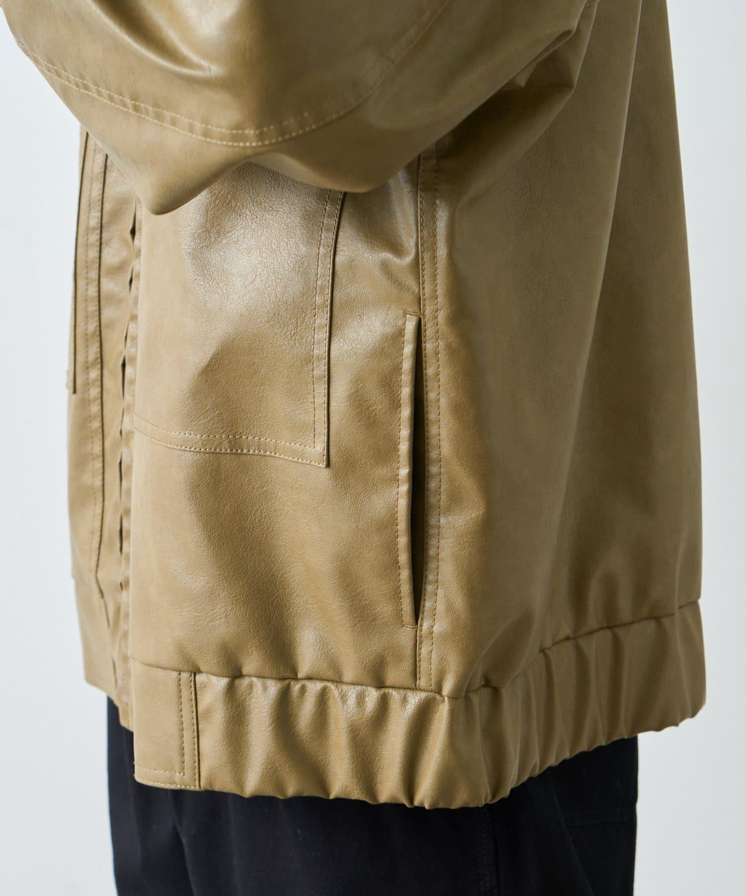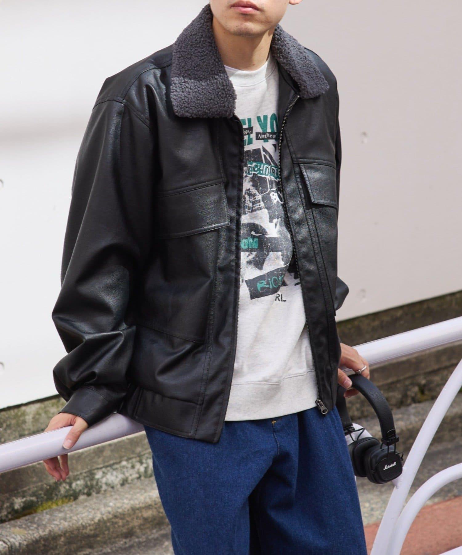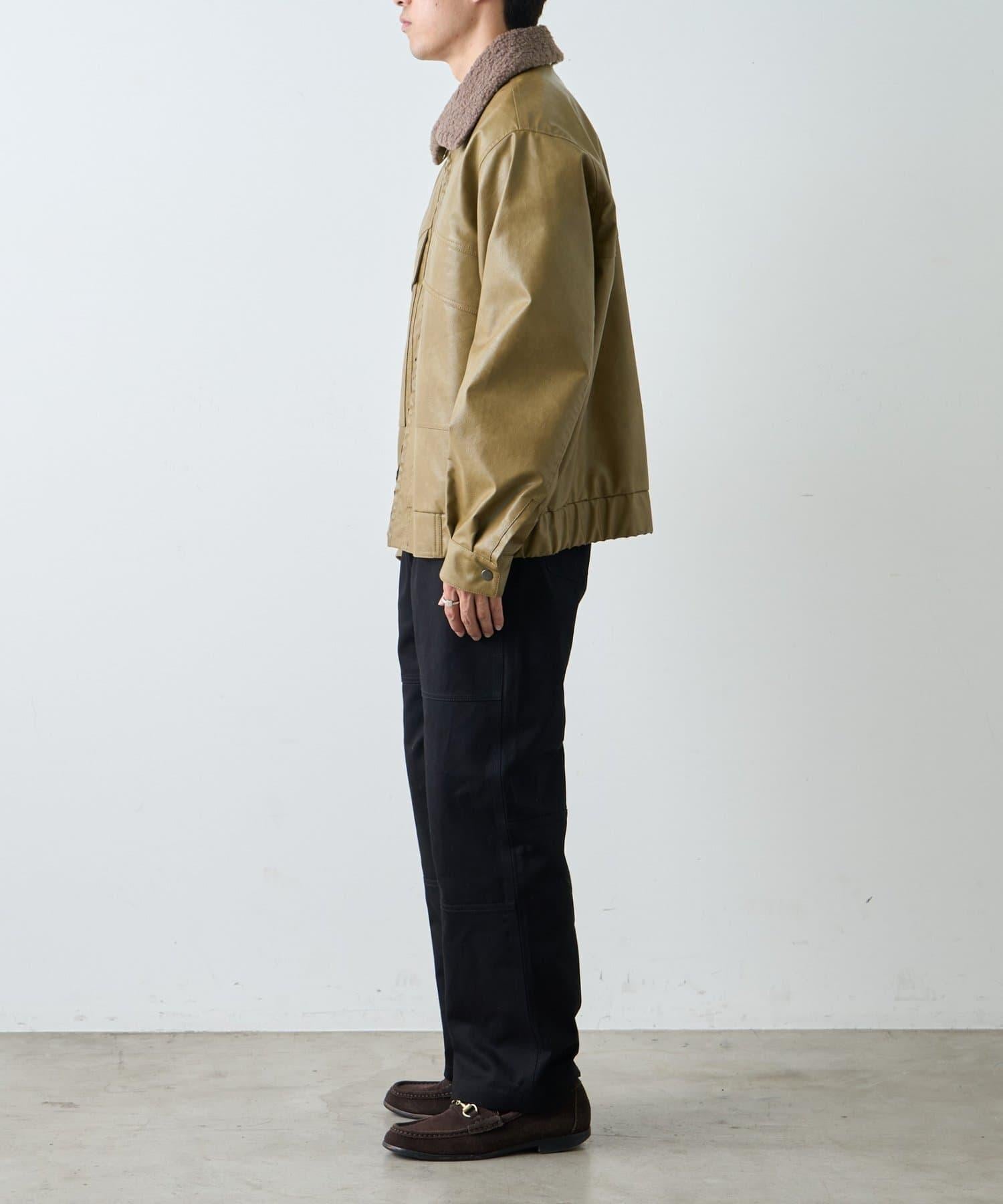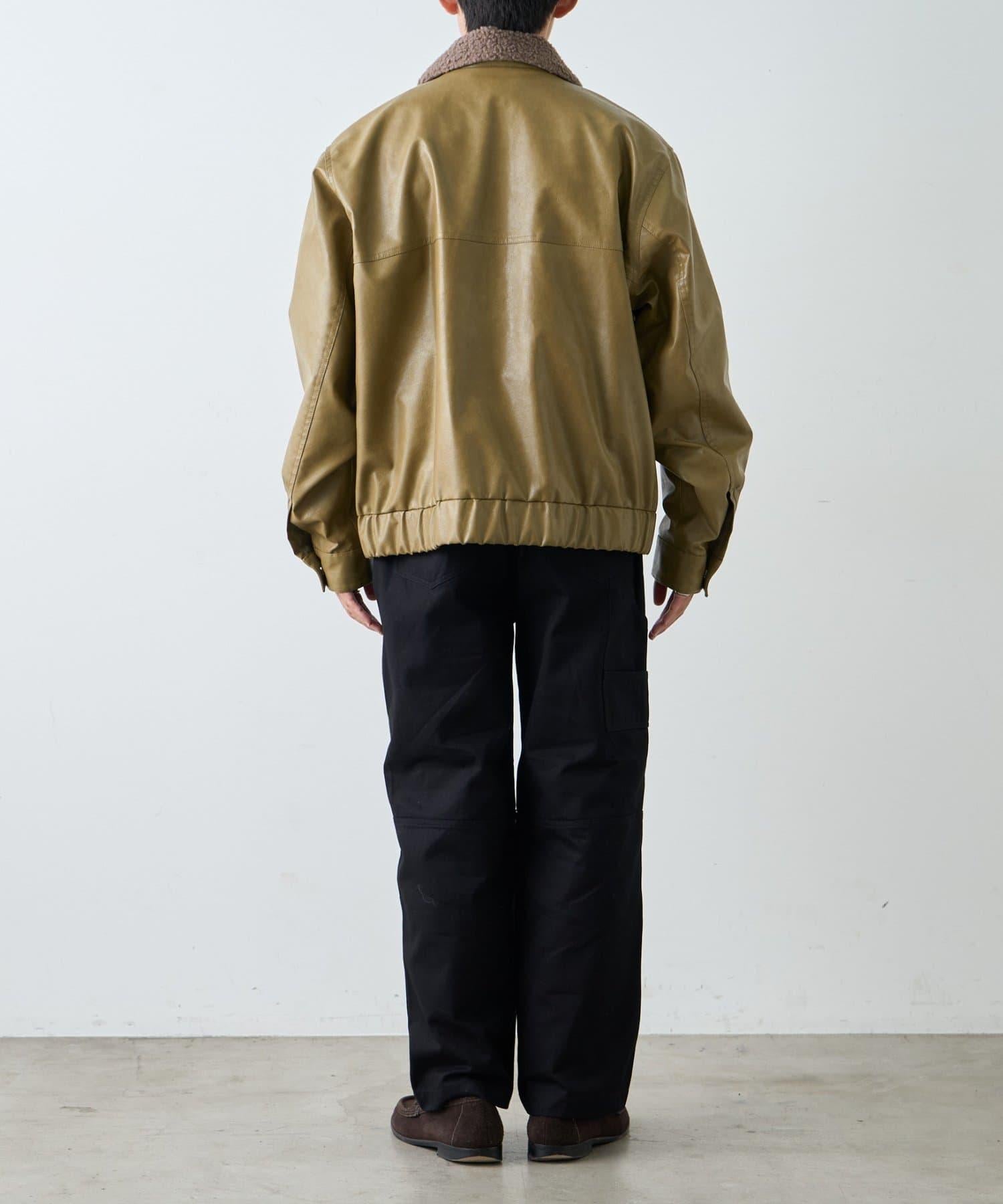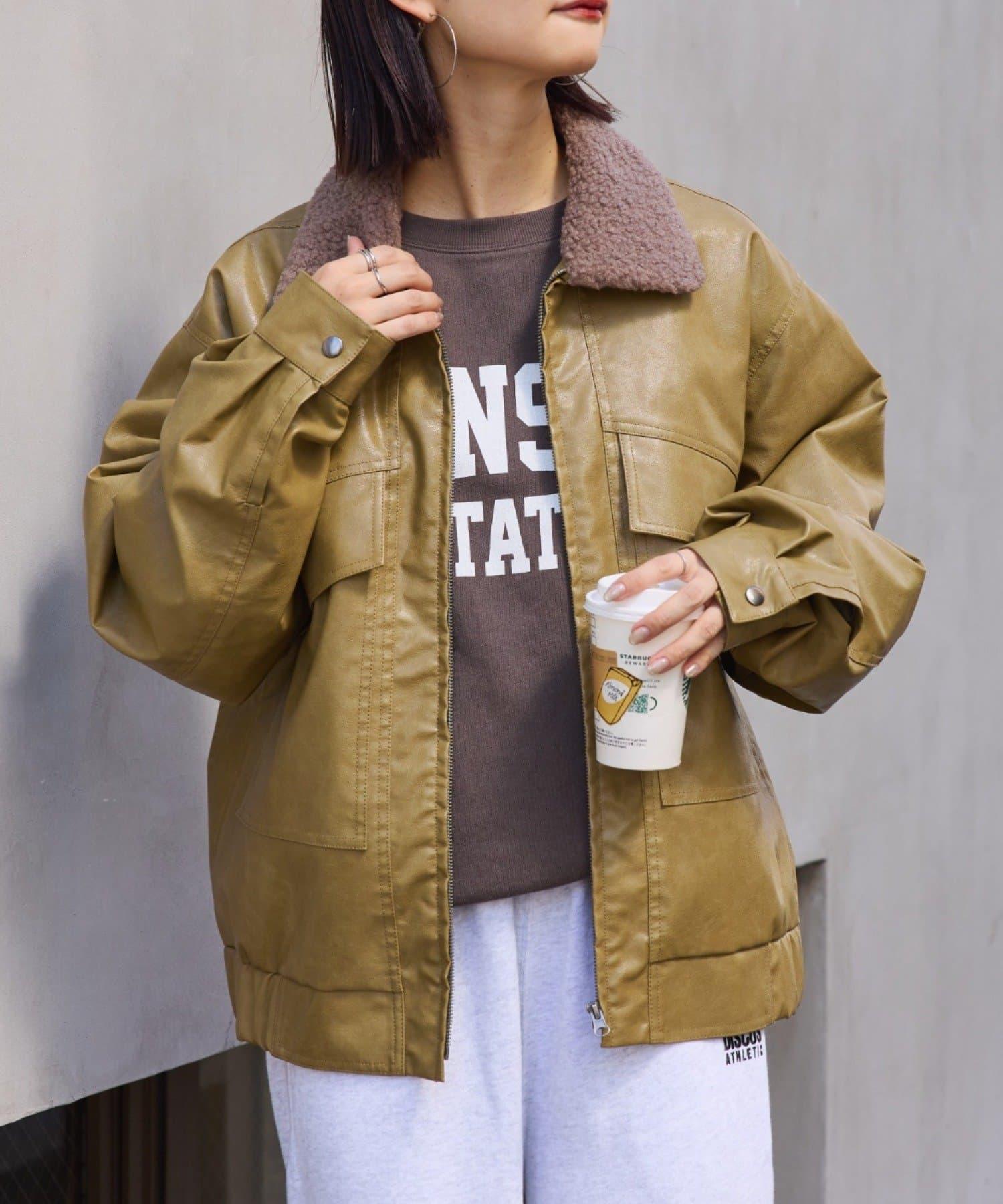 【男女同款】素皮革可拆卸羊羔絨領夾克