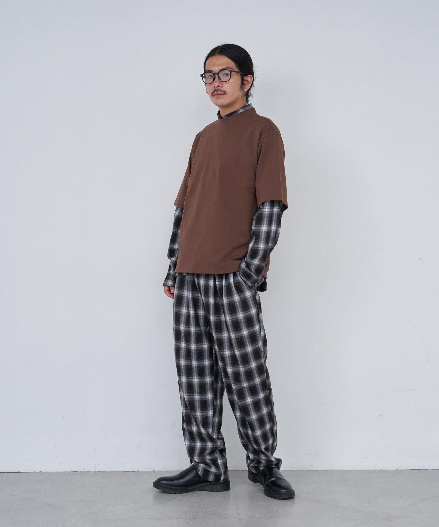 內搭格紋襯衫或長 T,從下襬處露出來,打造有層次感的風格。