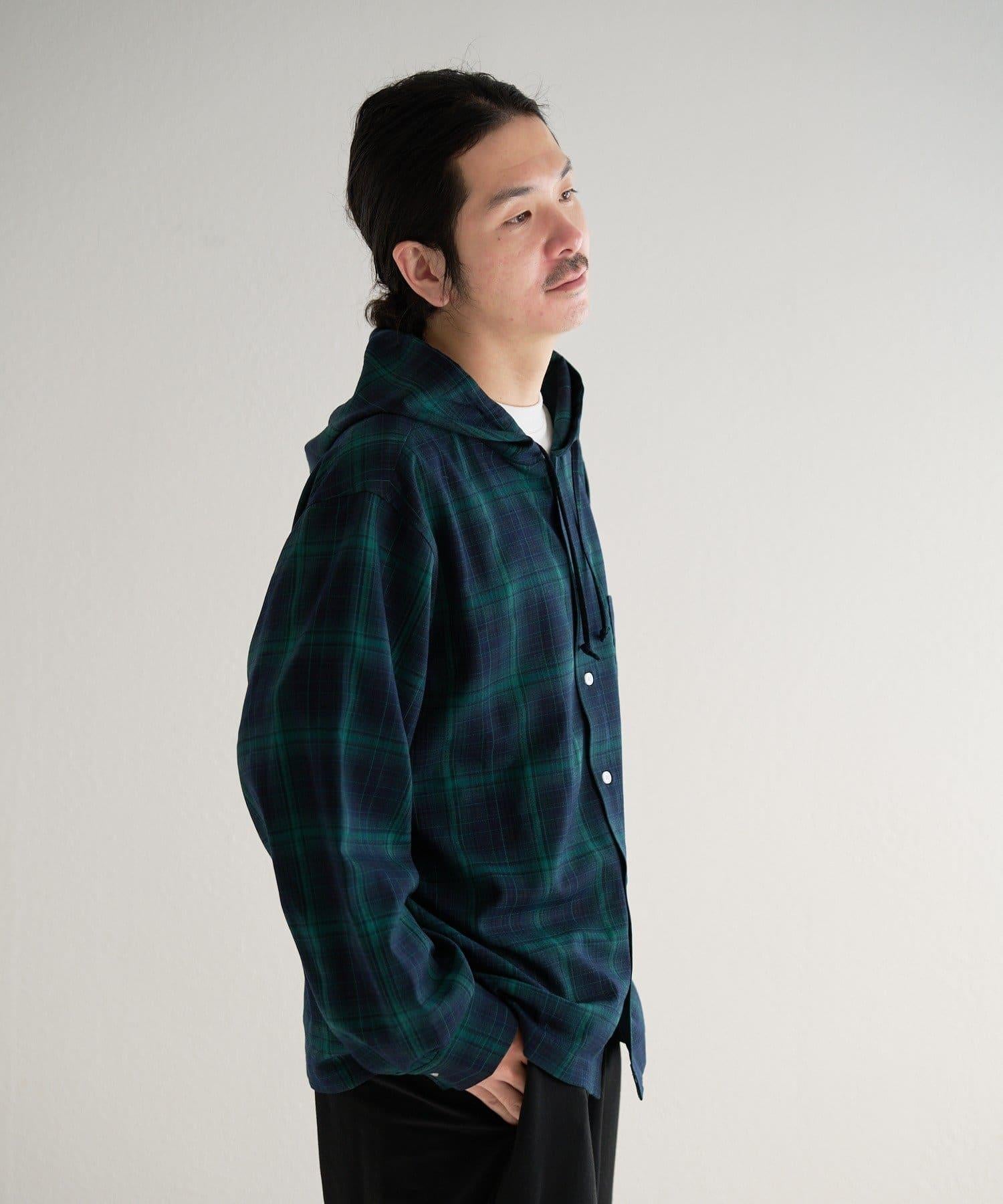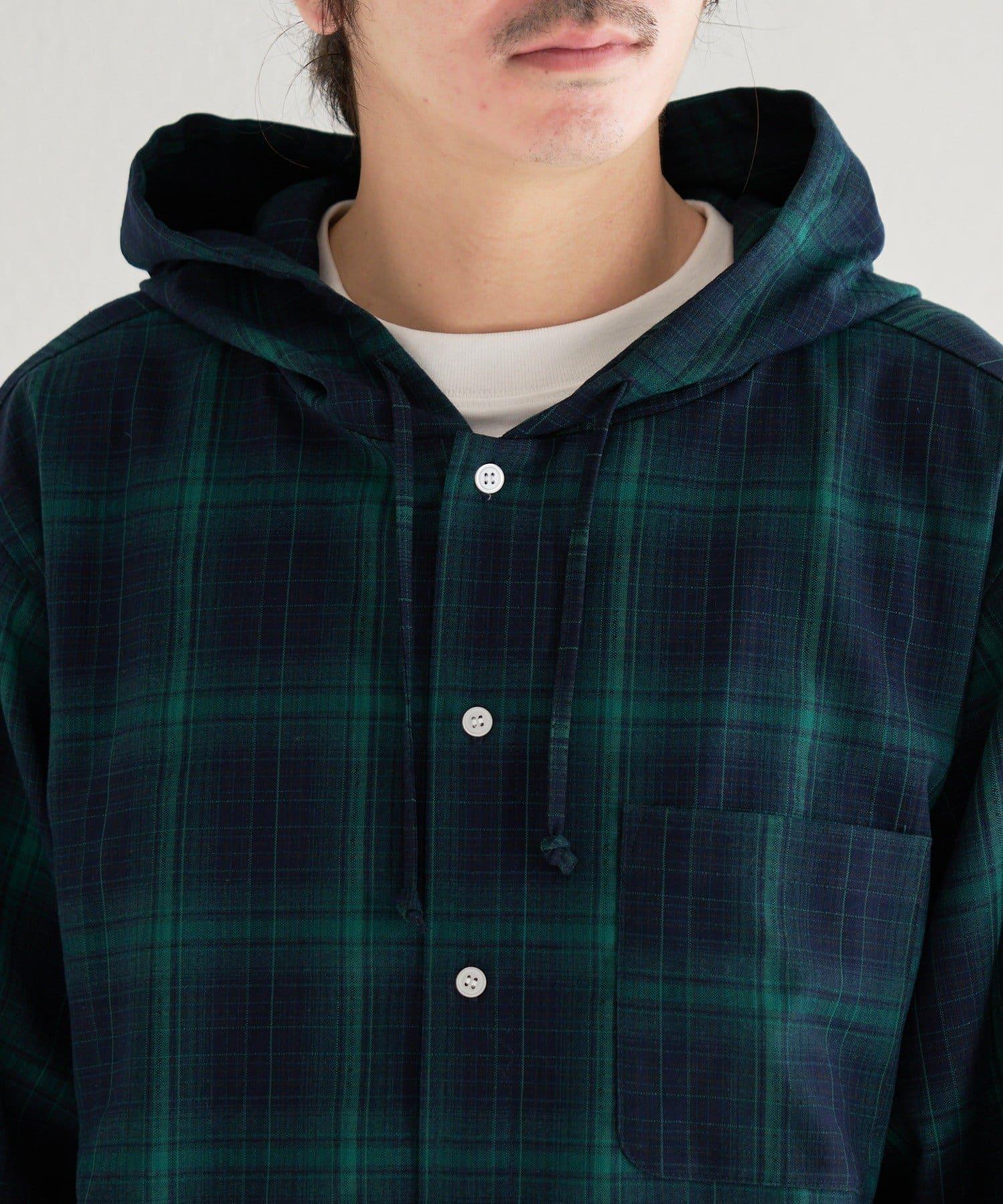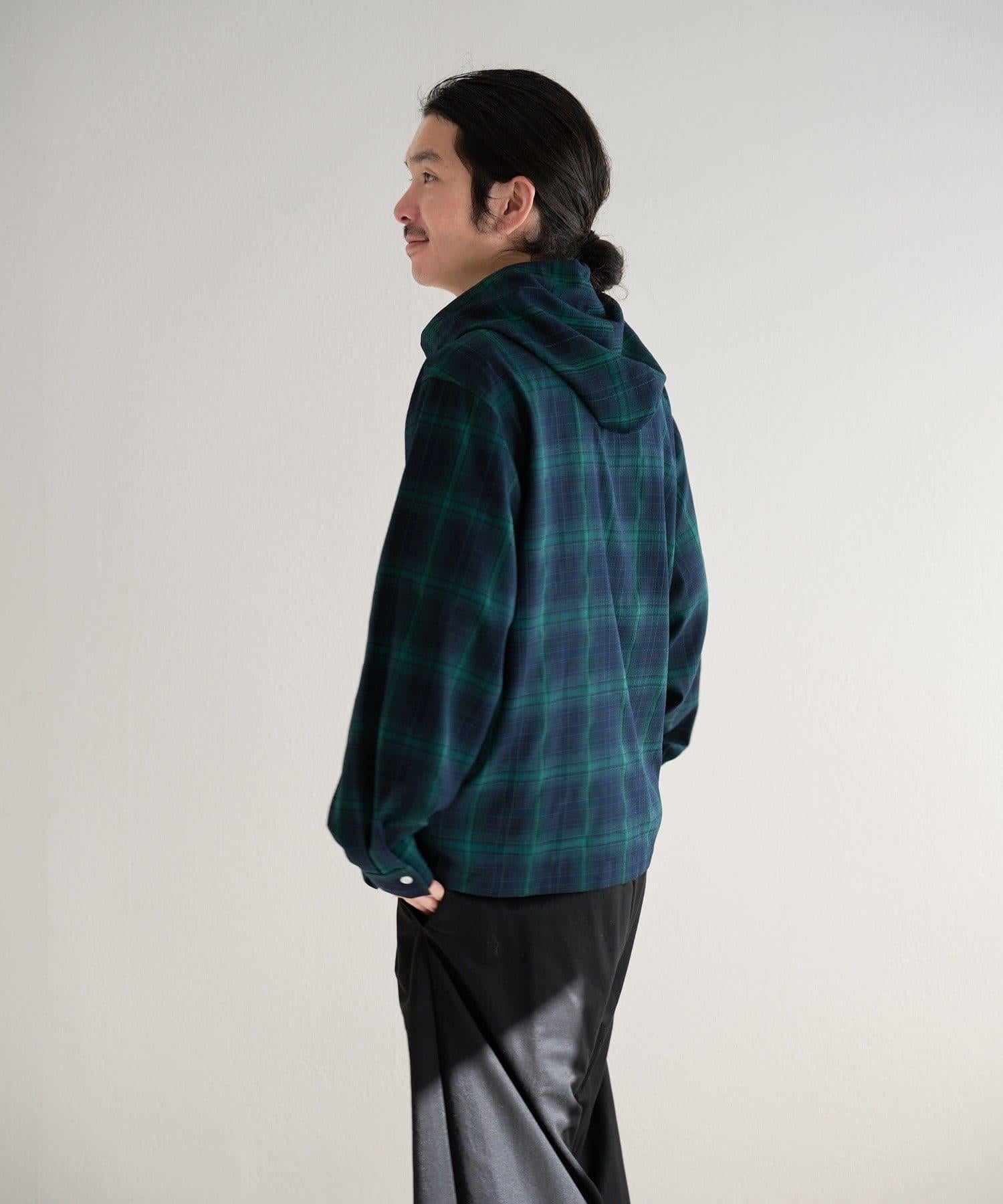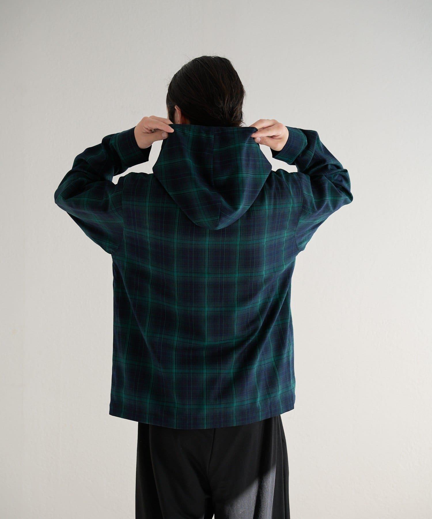 在休閒的棋盤格圖案中加入連帽設計,給人一種休閒的印象,同時又恰到好處地體現了街頭風格。