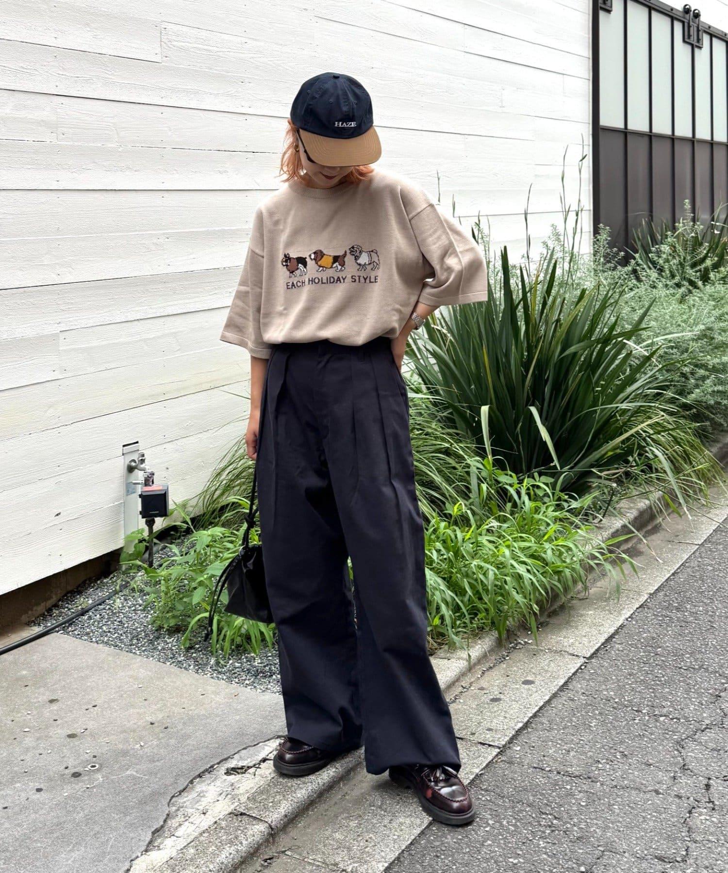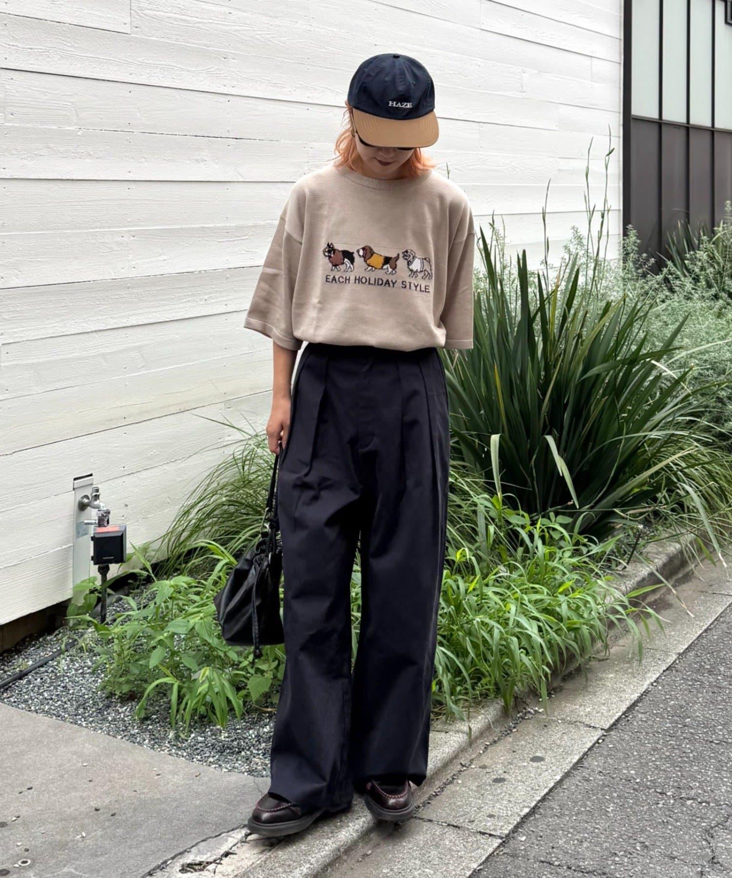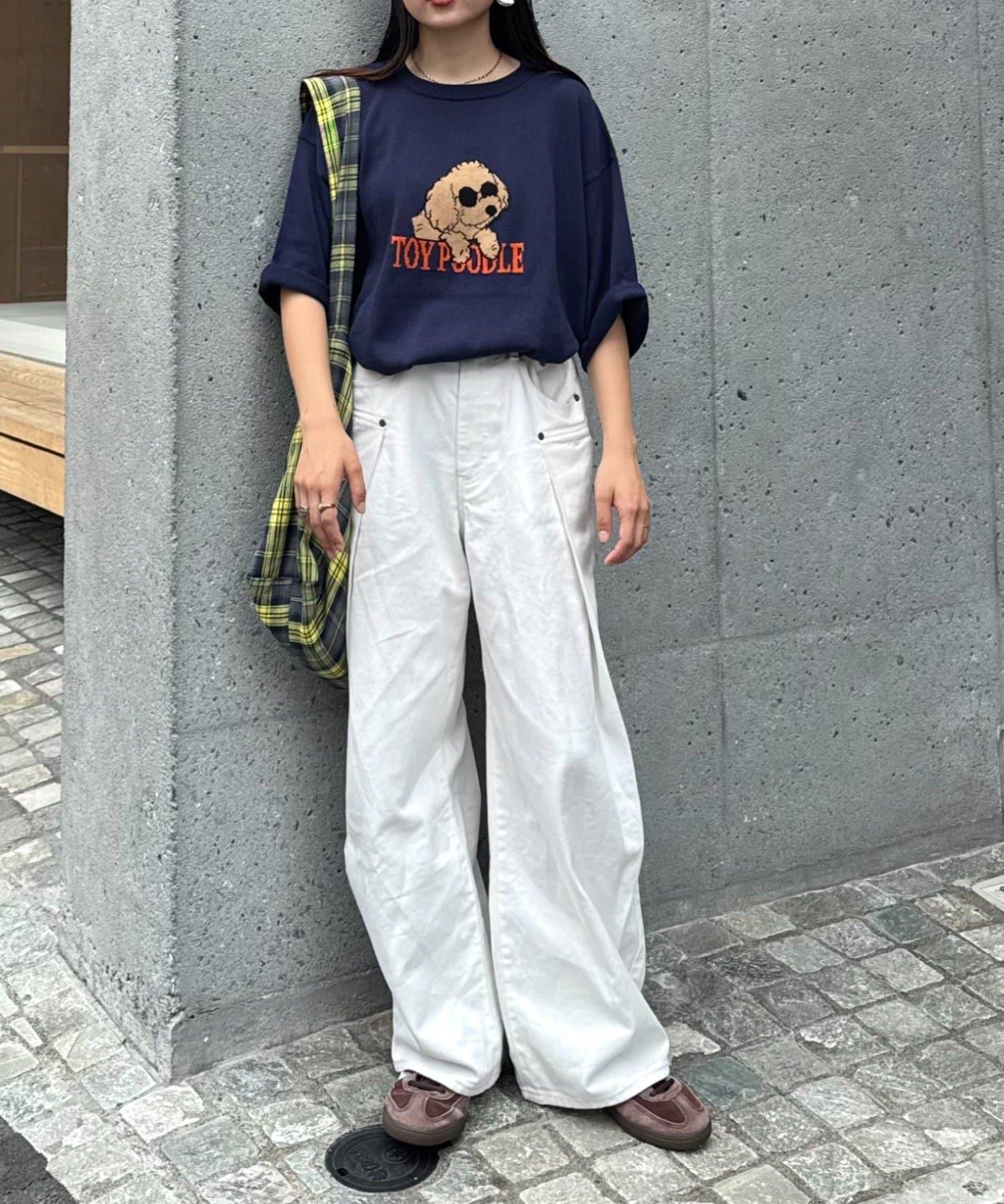 狗狗圖案讓上衣成為全場的主角,簡單的下裝搭配也能與當前造型相得益彰。