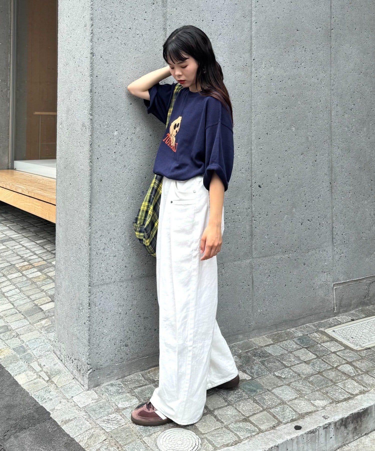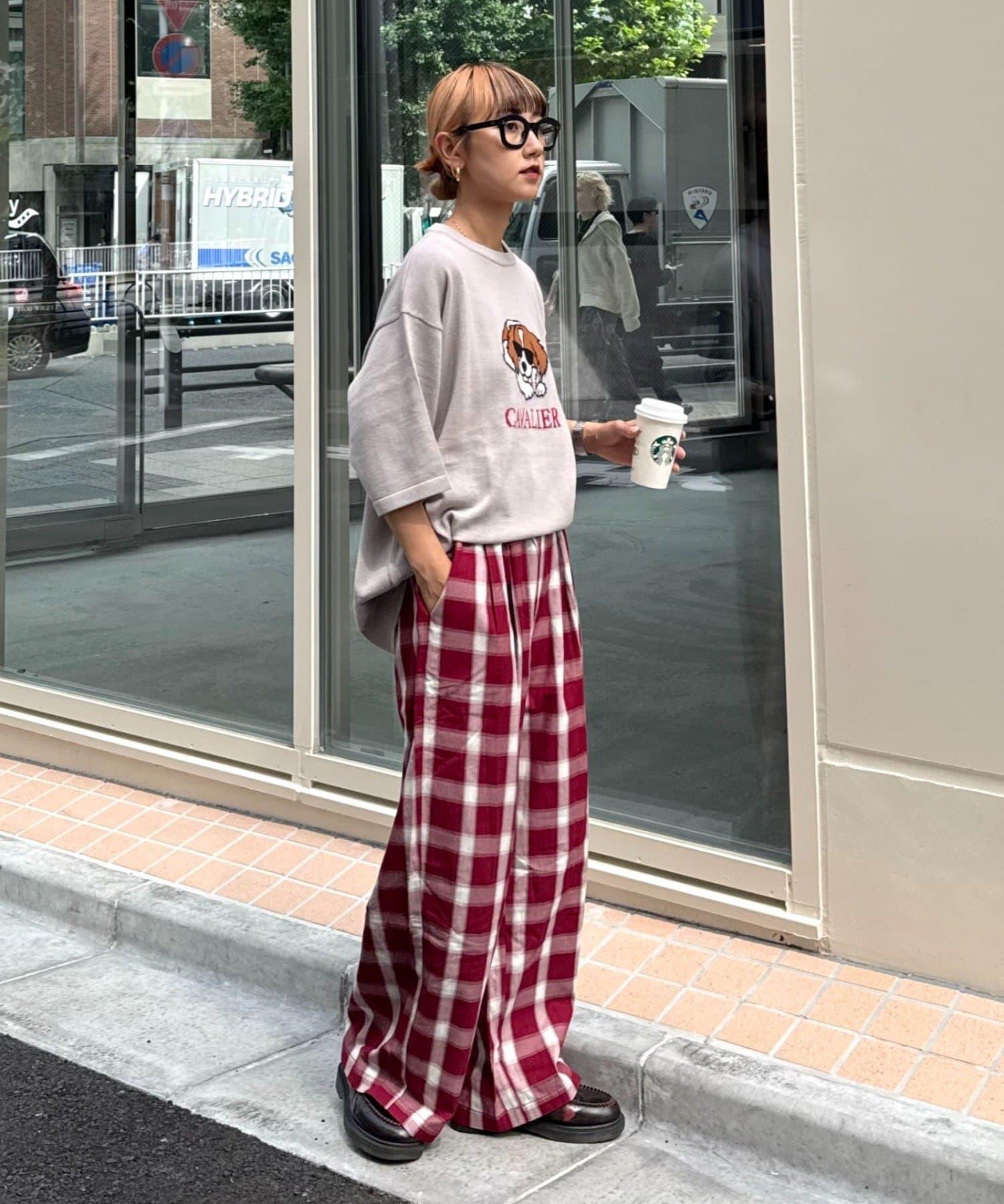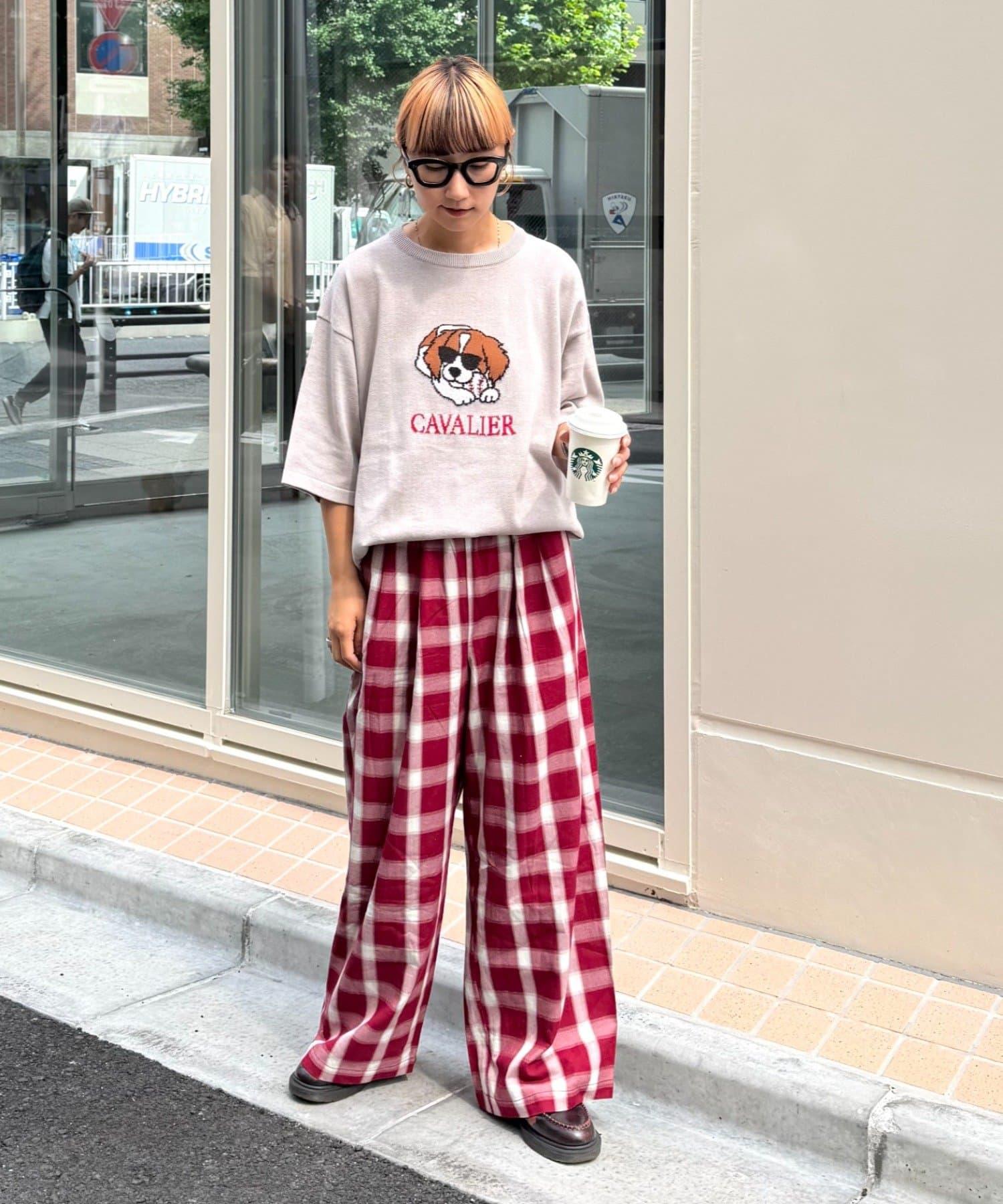 狗狗圖案讓上衣成為全場的主角,簡單的下裝搭配也能與當前造型相得益彰。