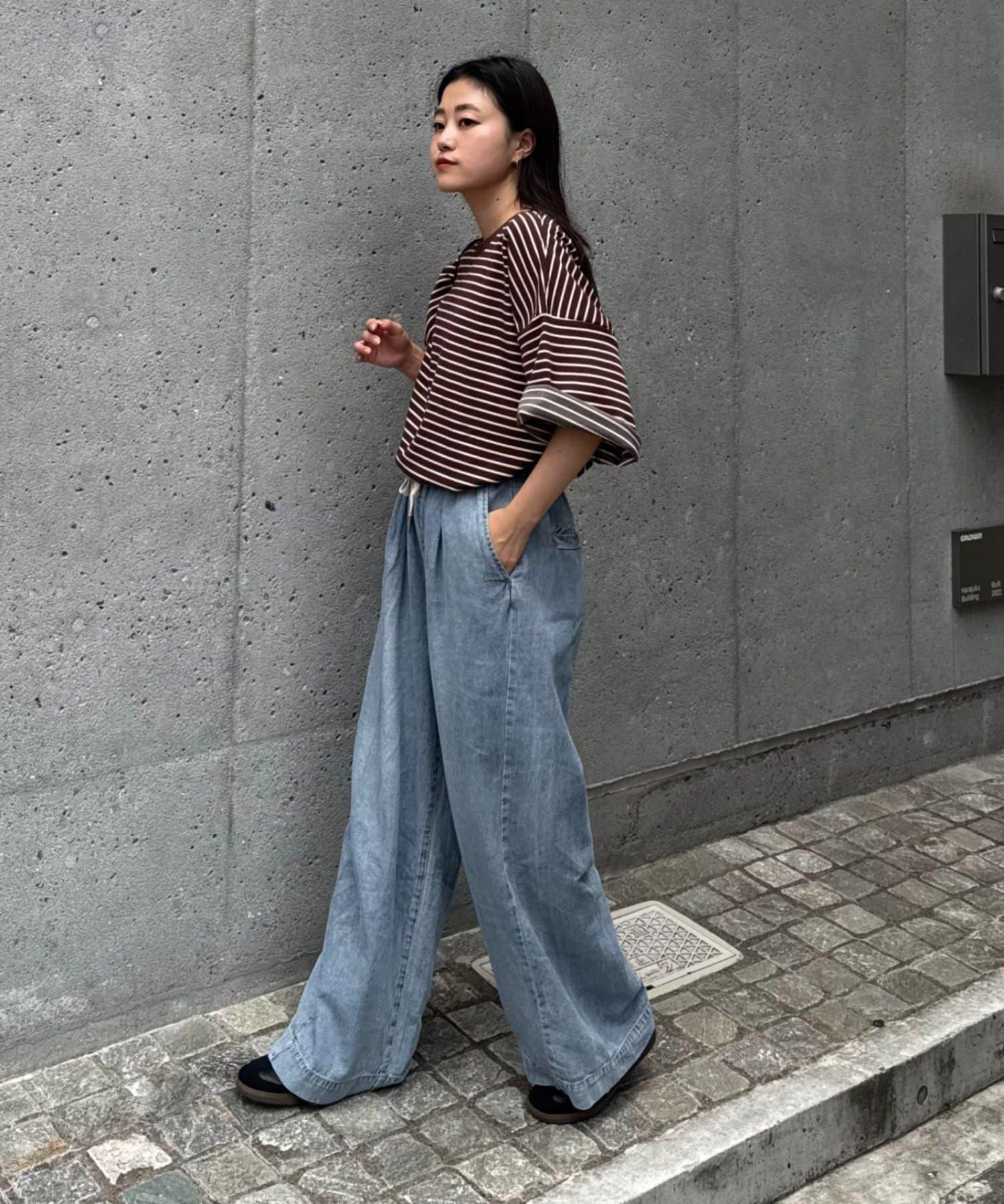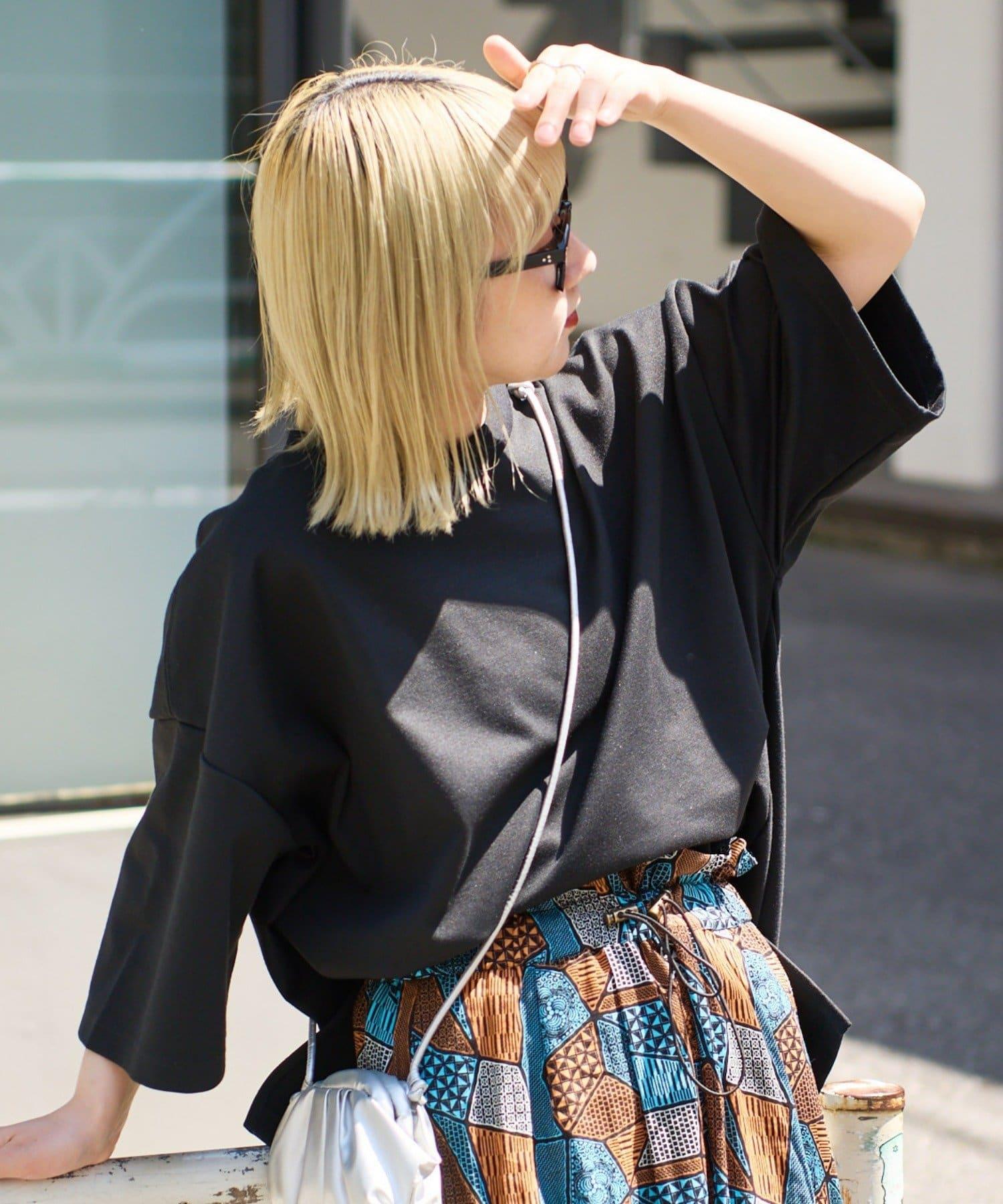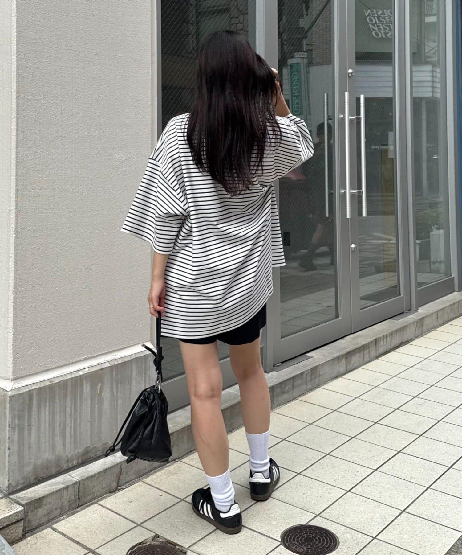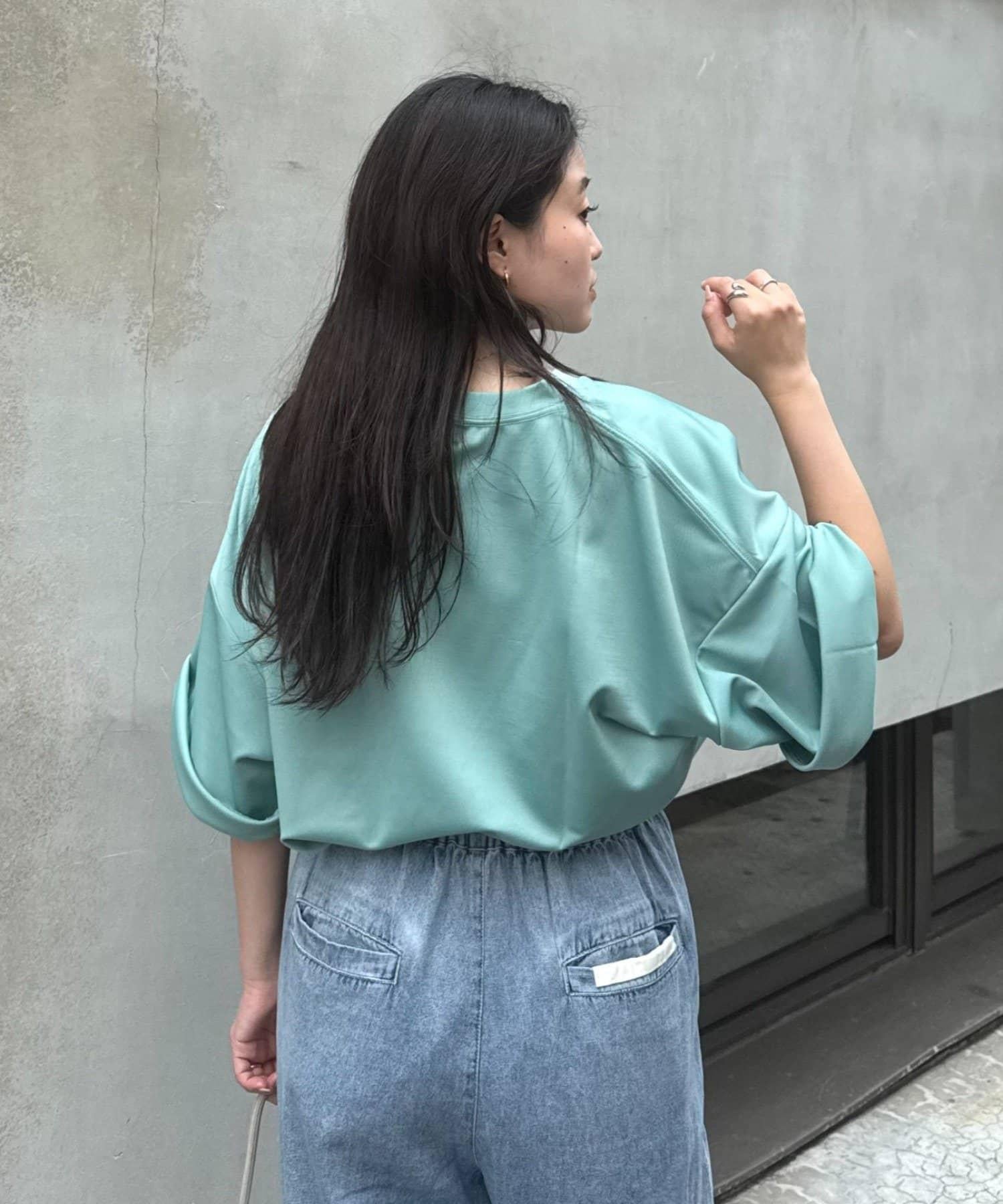 時尚寬鬆版型的 T 恤,單穿也很好看。