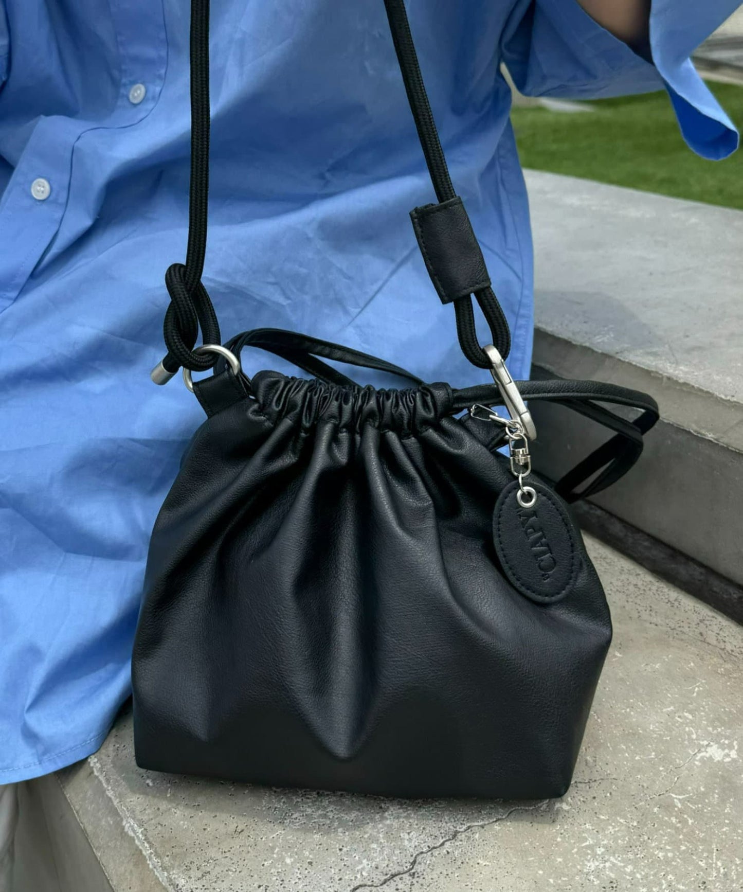 【男女通用】雙用途皮革束口袋包/帶鑰匙扣
