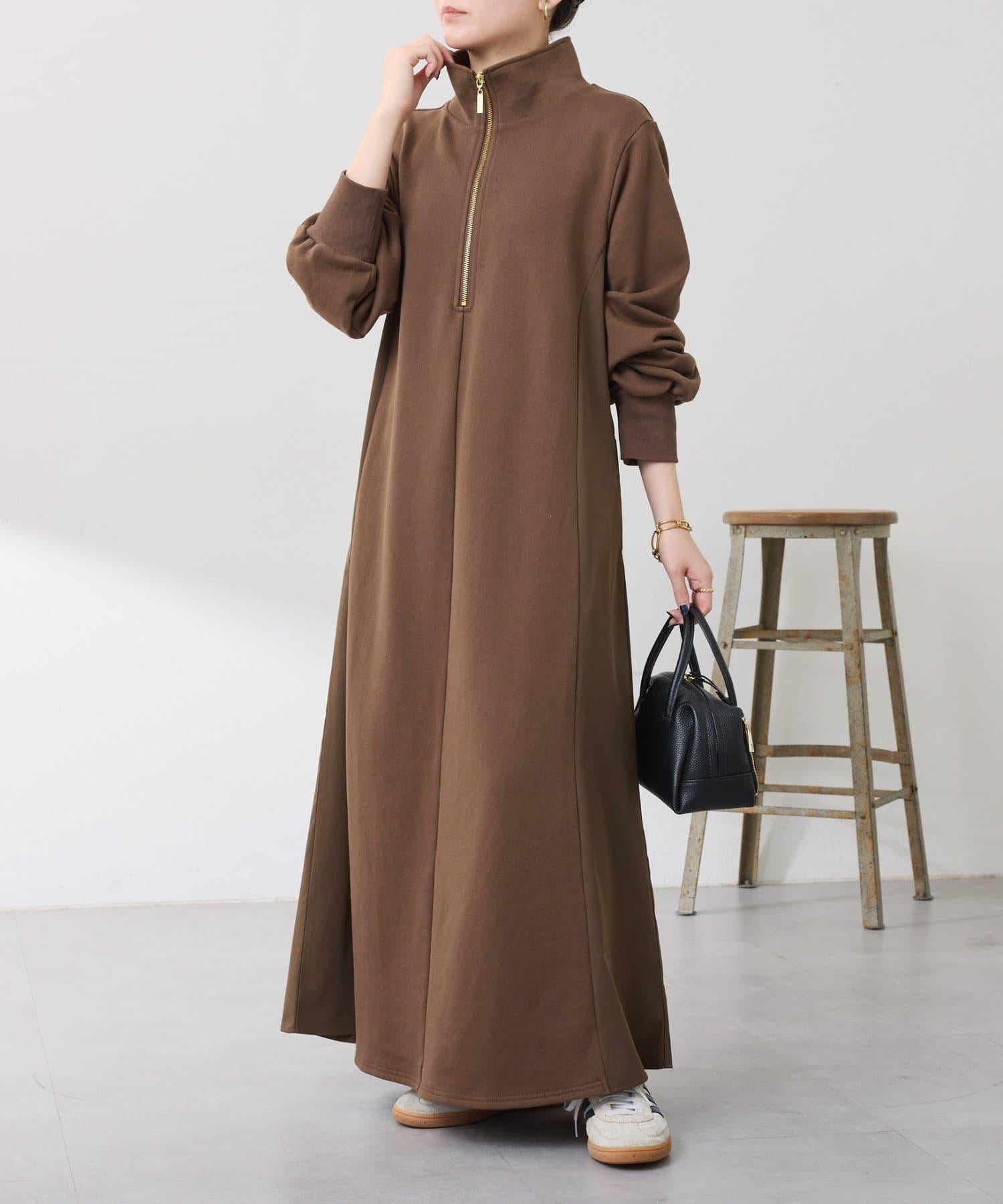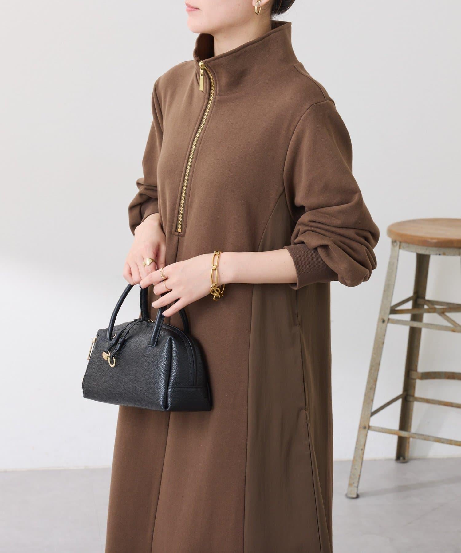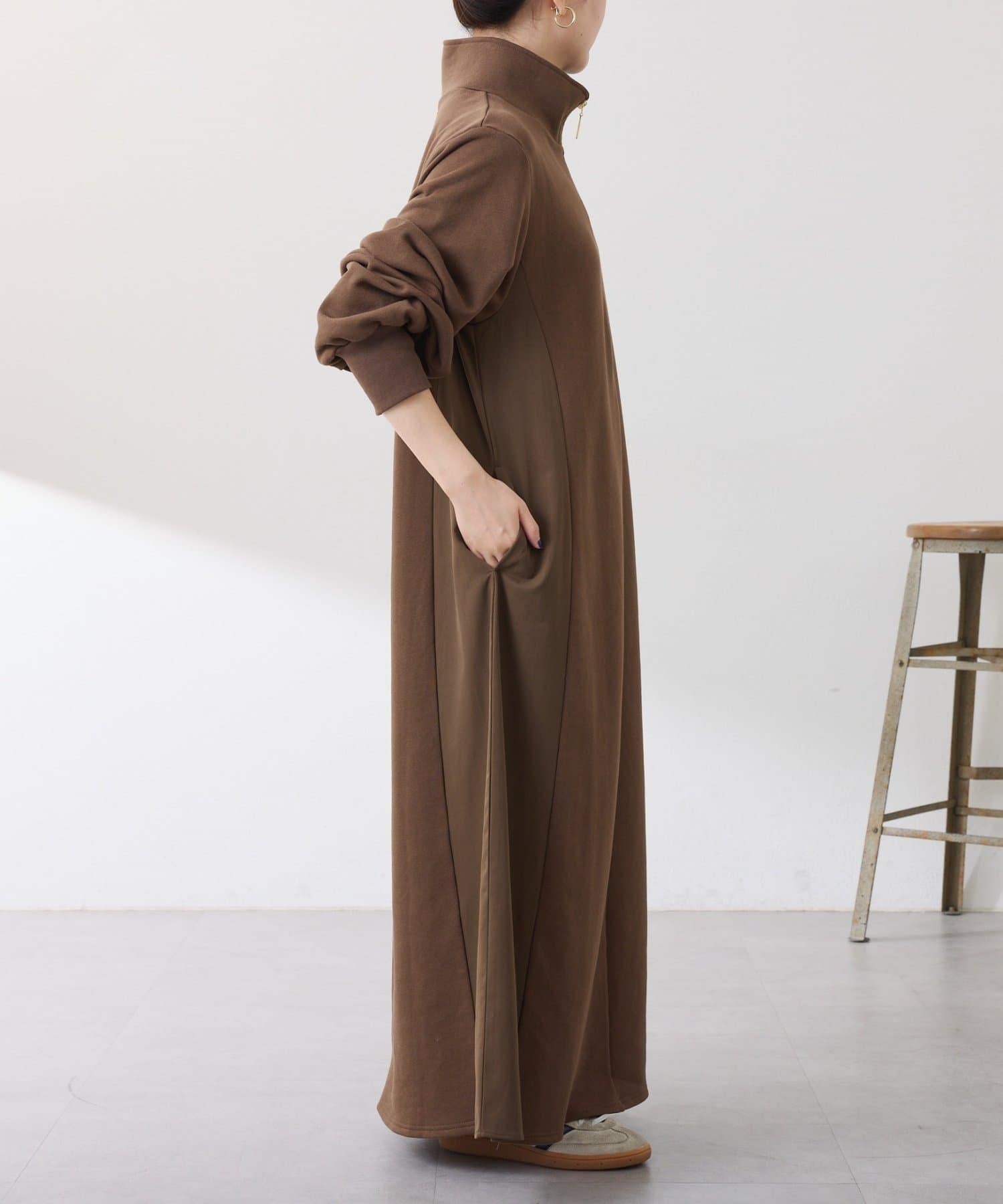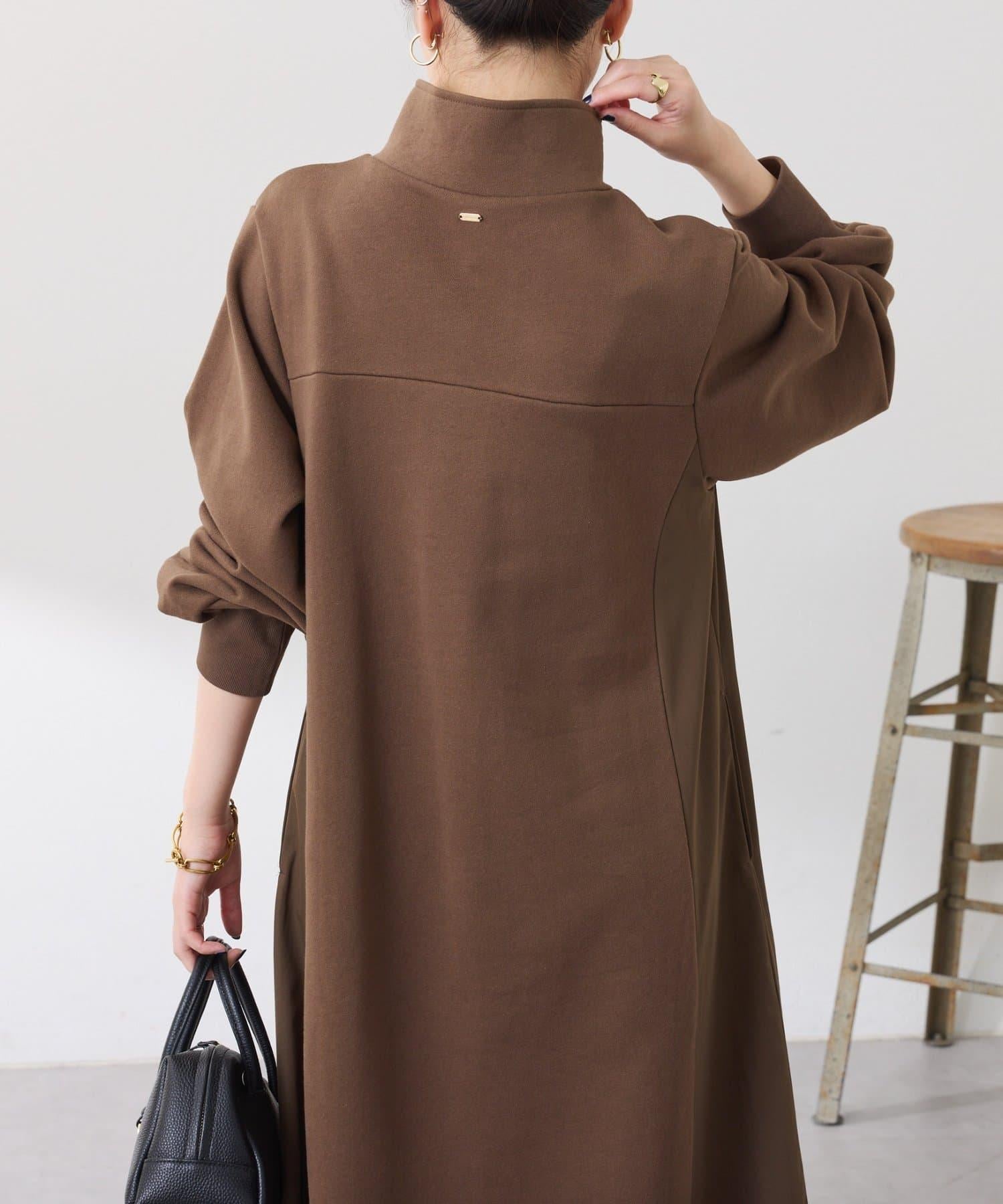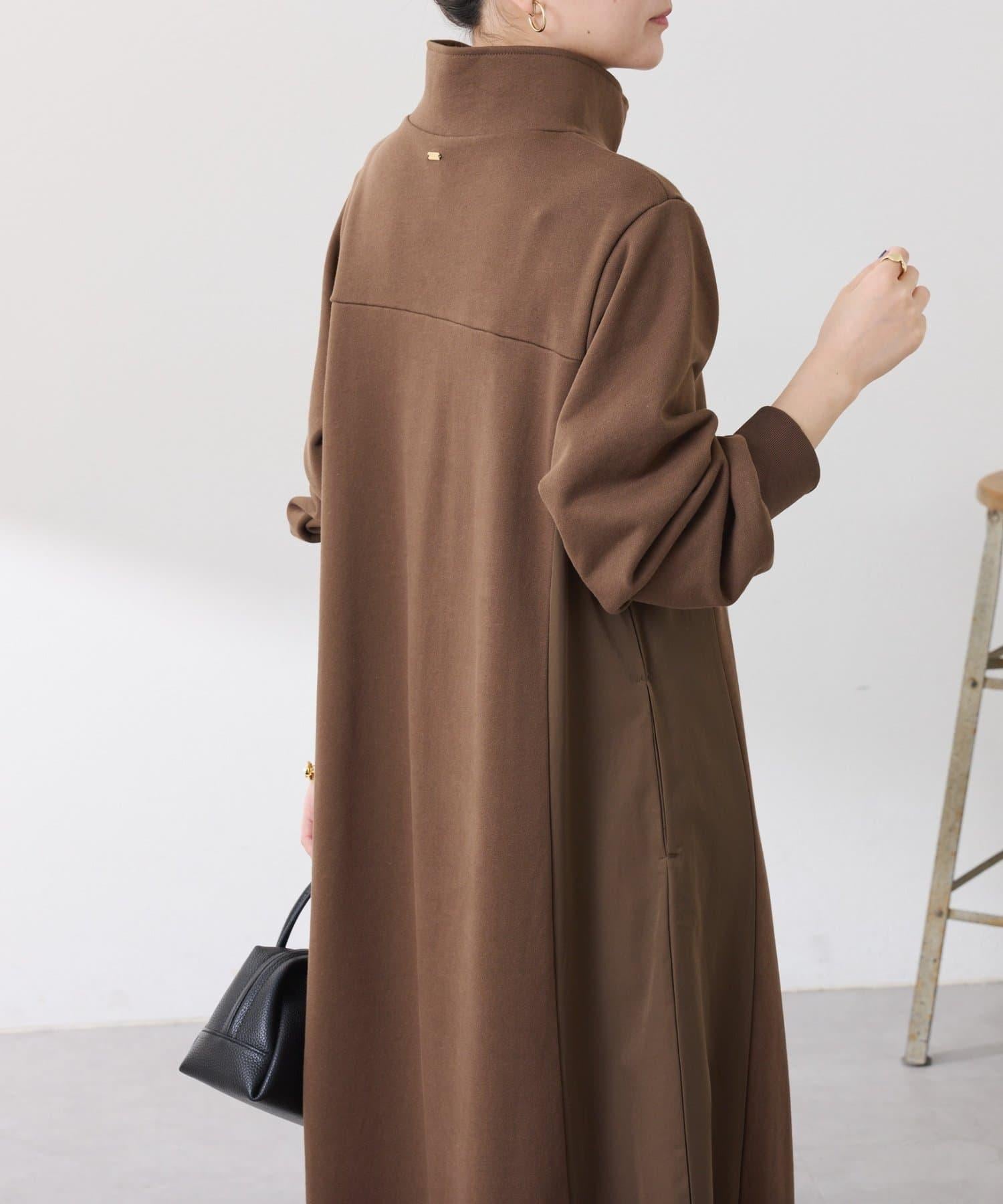 連衣裙通過對接產生了長款效果,過渡的線條略微收窄,顯得更加修身。