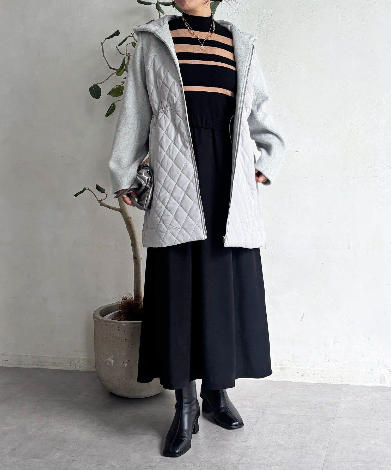 異材質拼接絎縫大衣