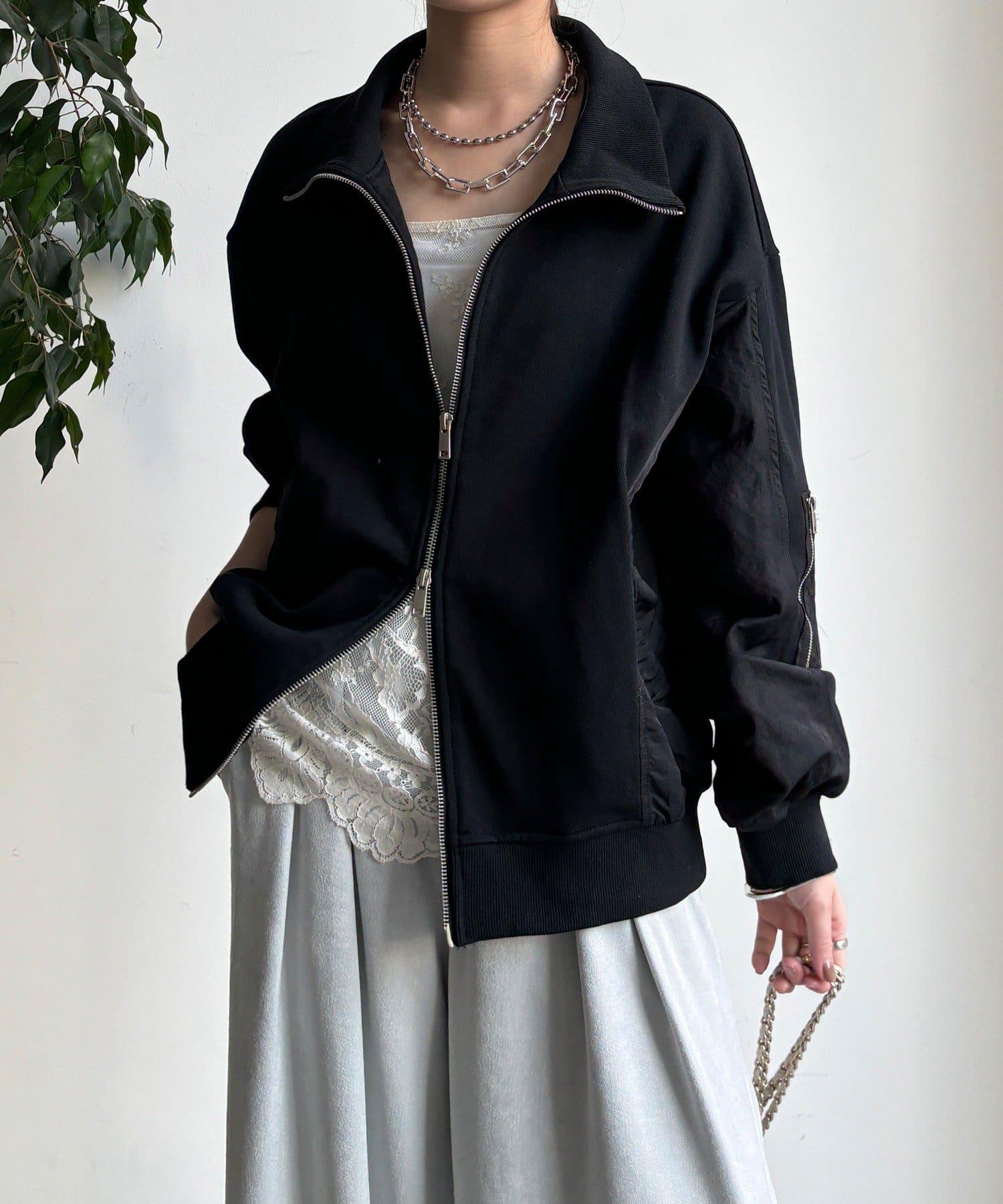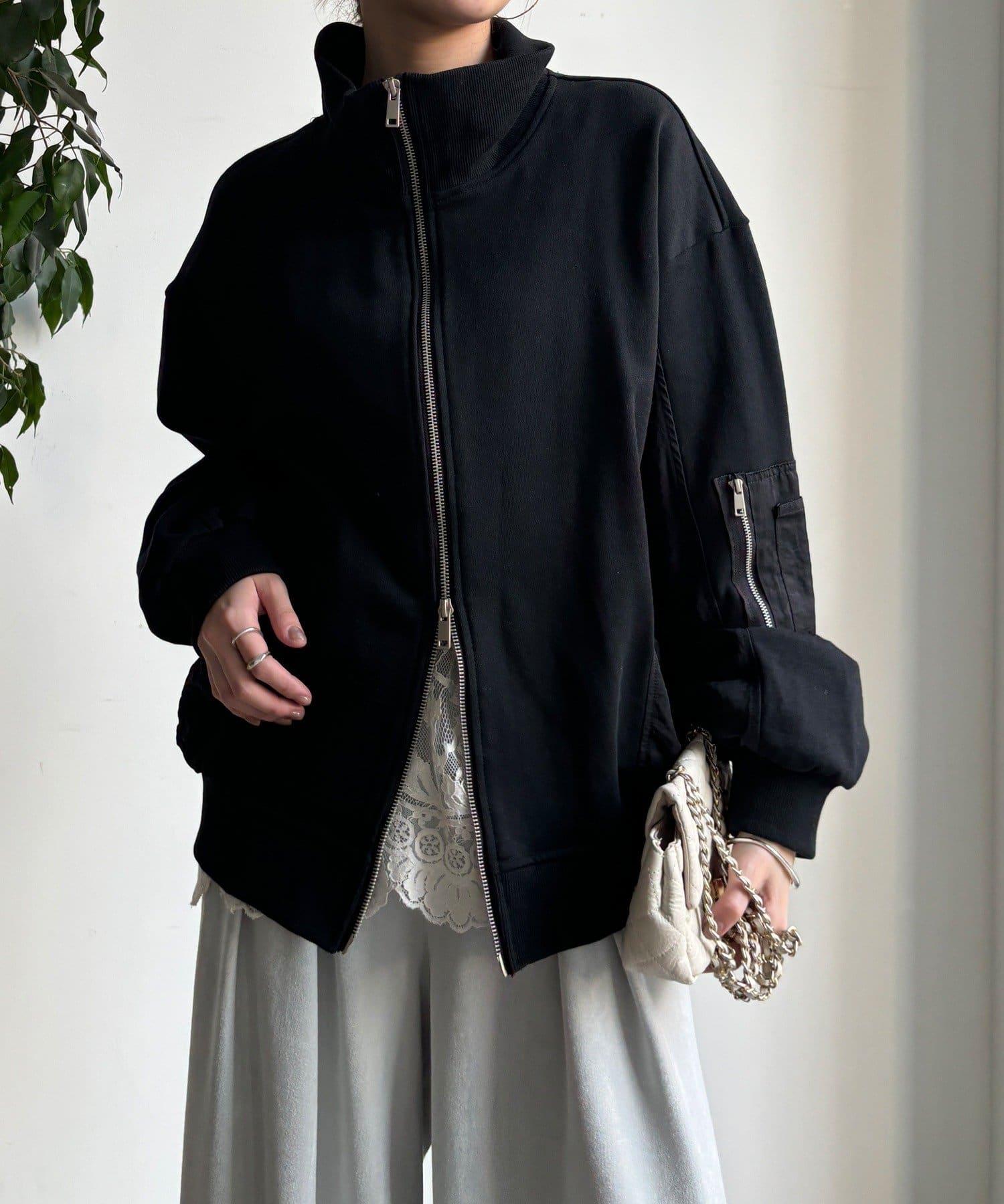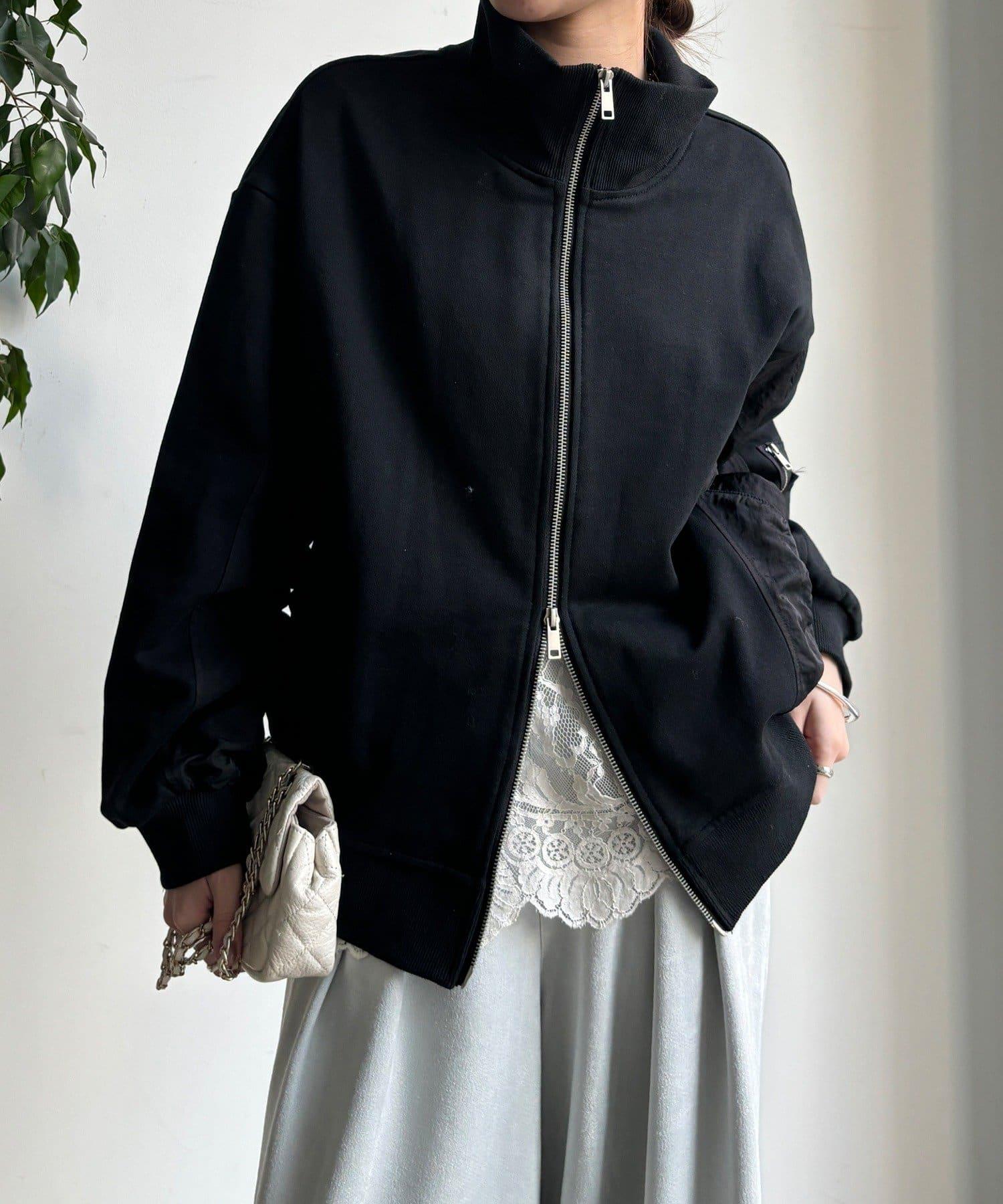 異材質拼接雙拉鍊夾克