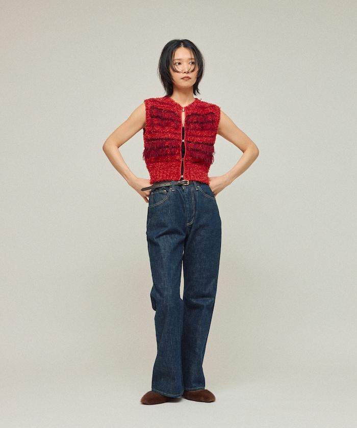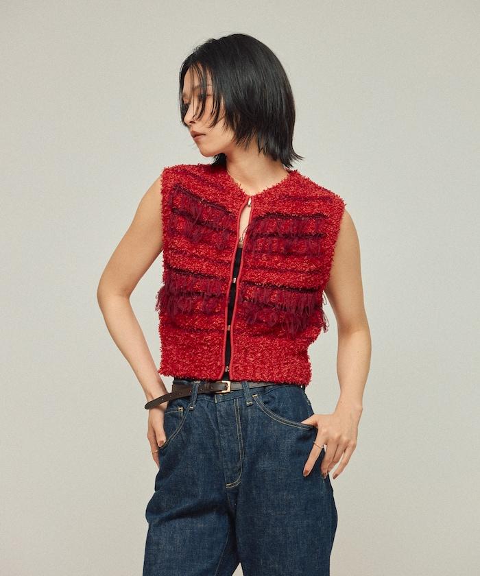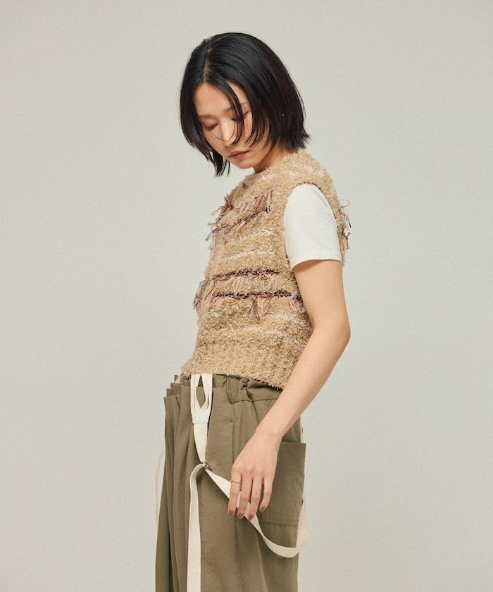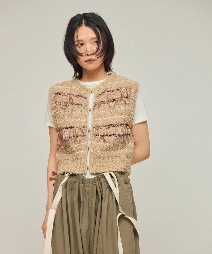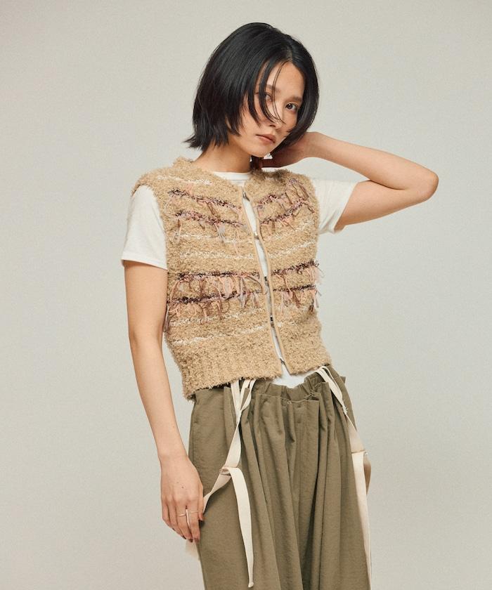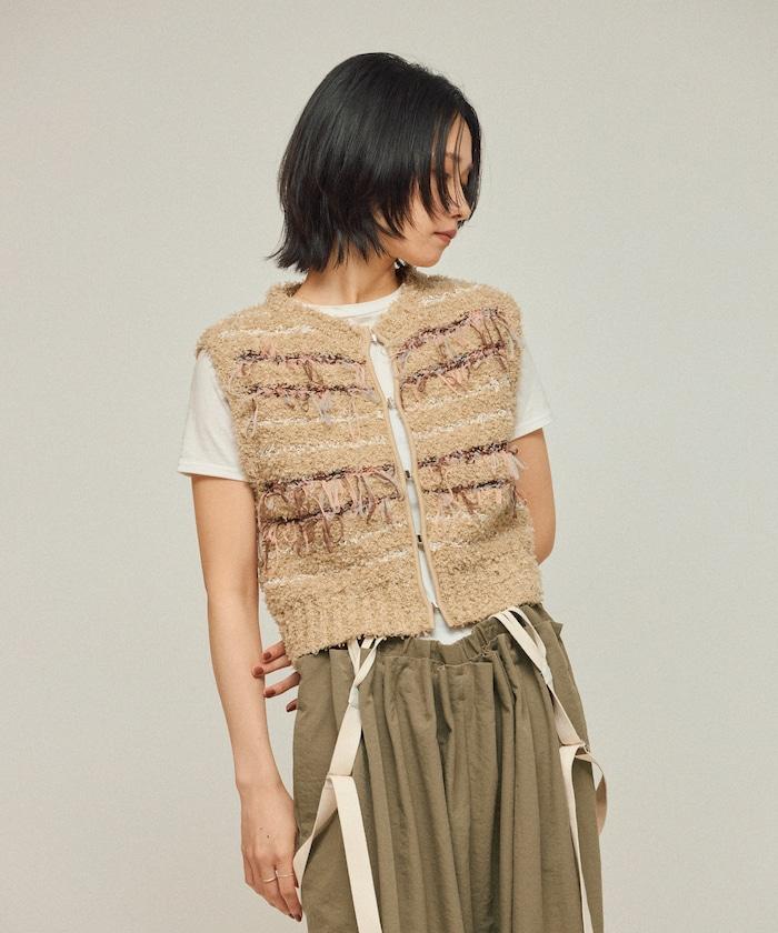 異材質流蘇針織馬甲 / 條紋針織馬甲 25AW