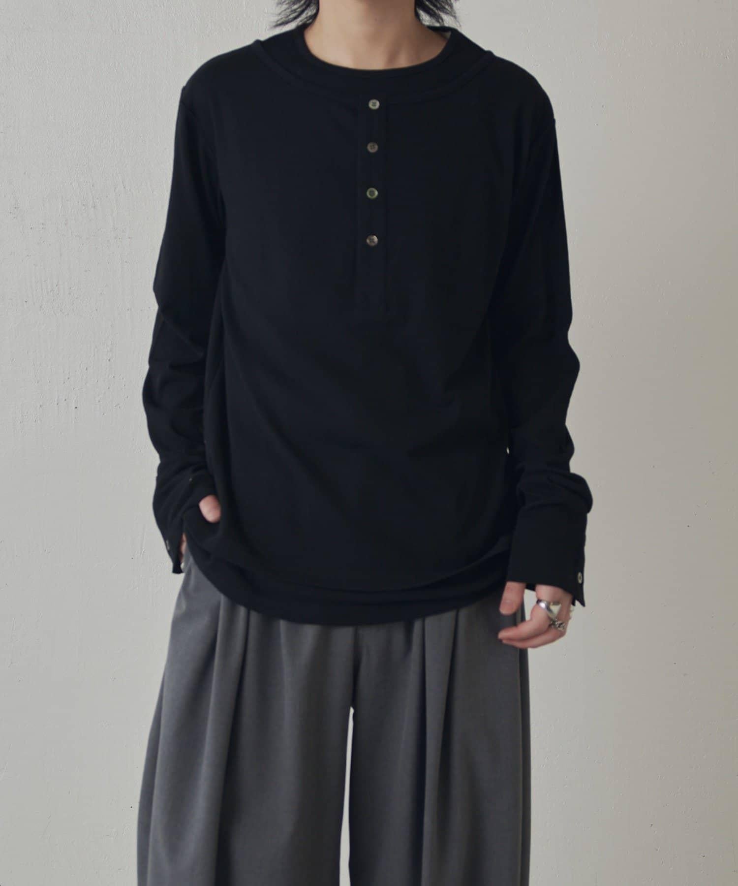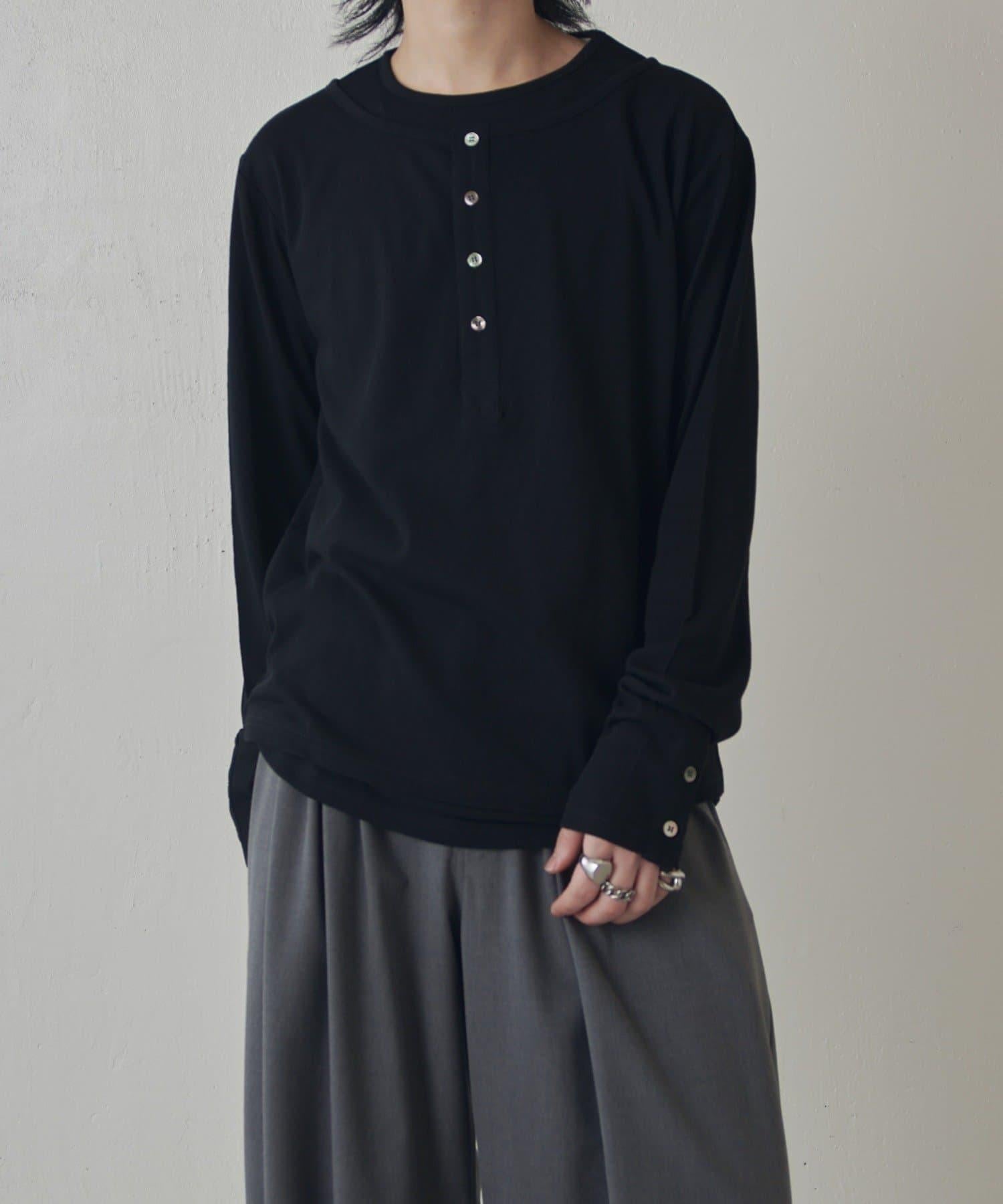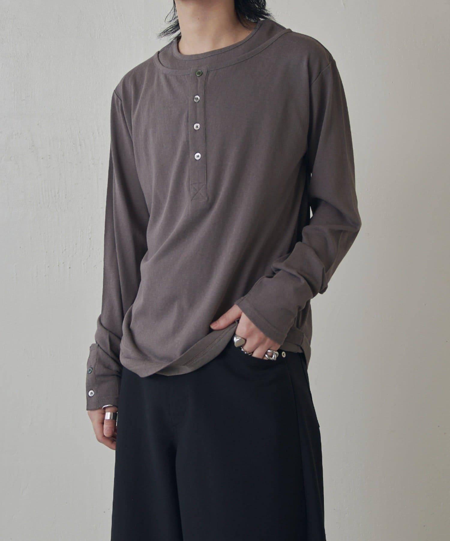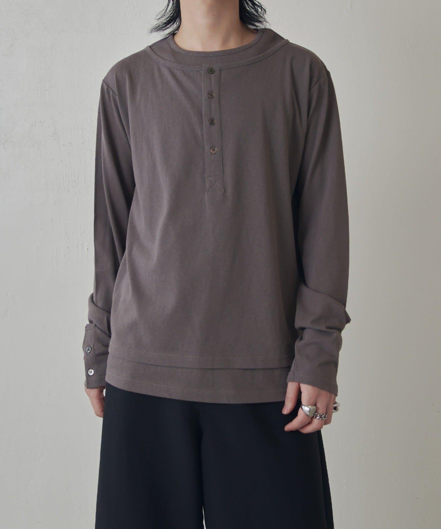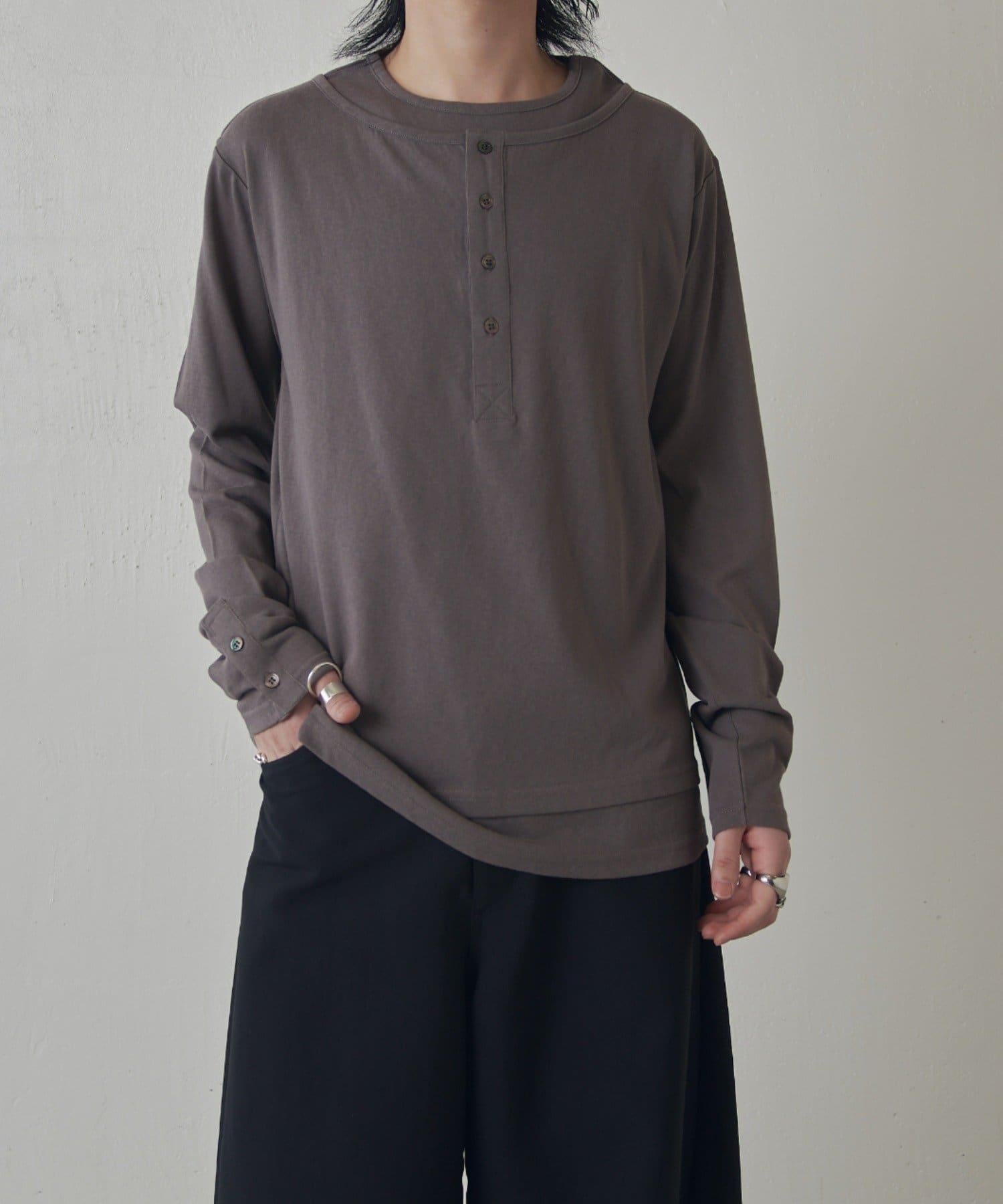 疊搭亨利領長袖T恤