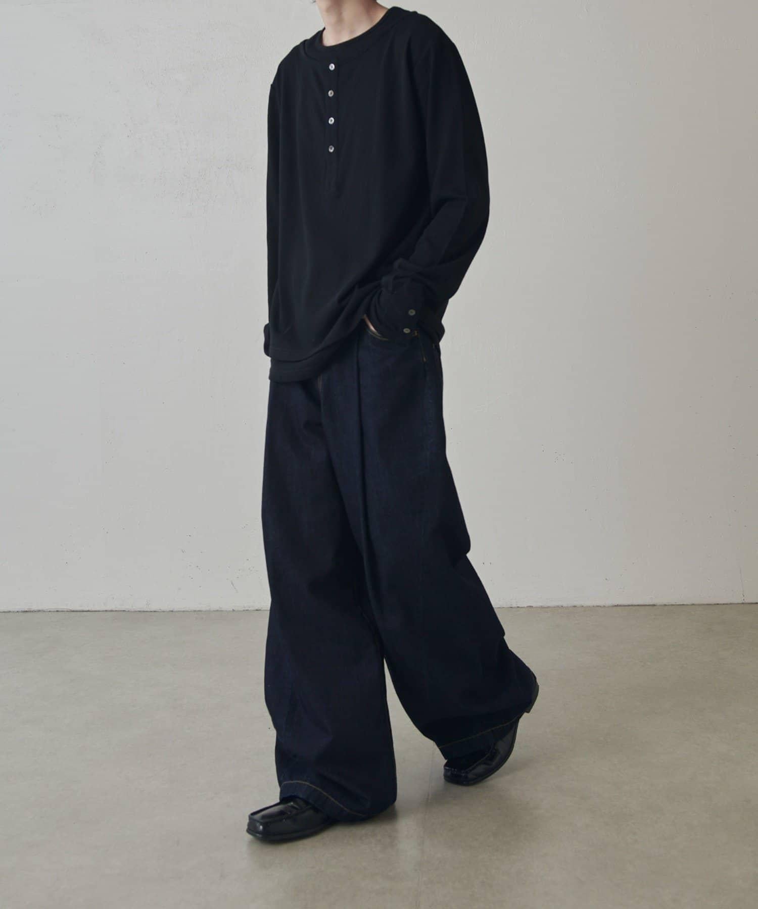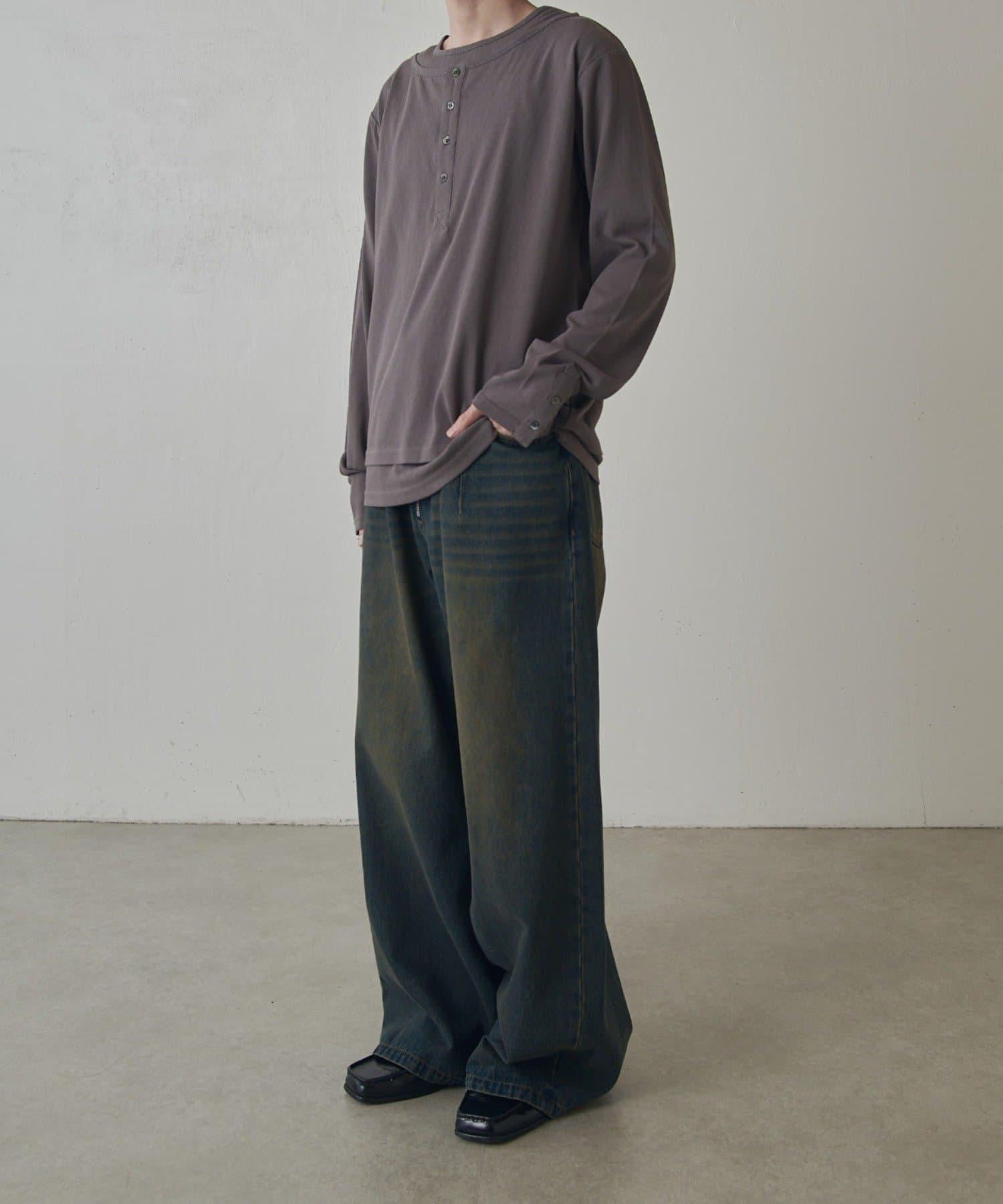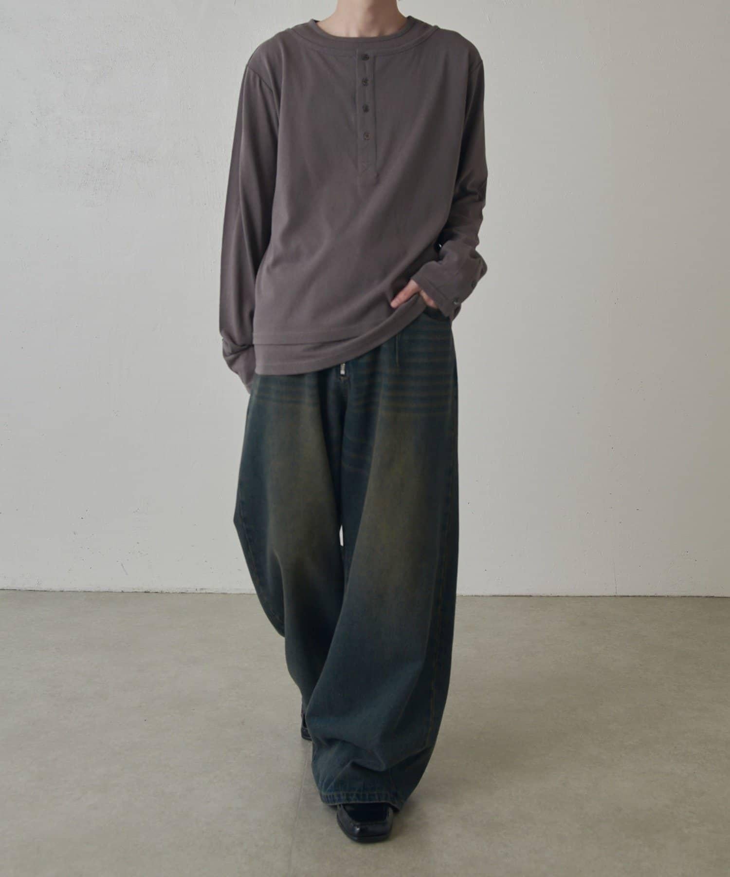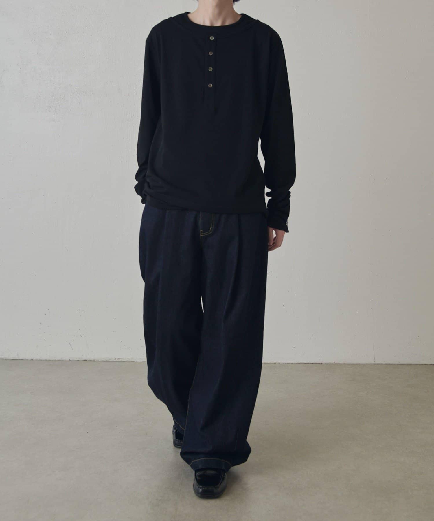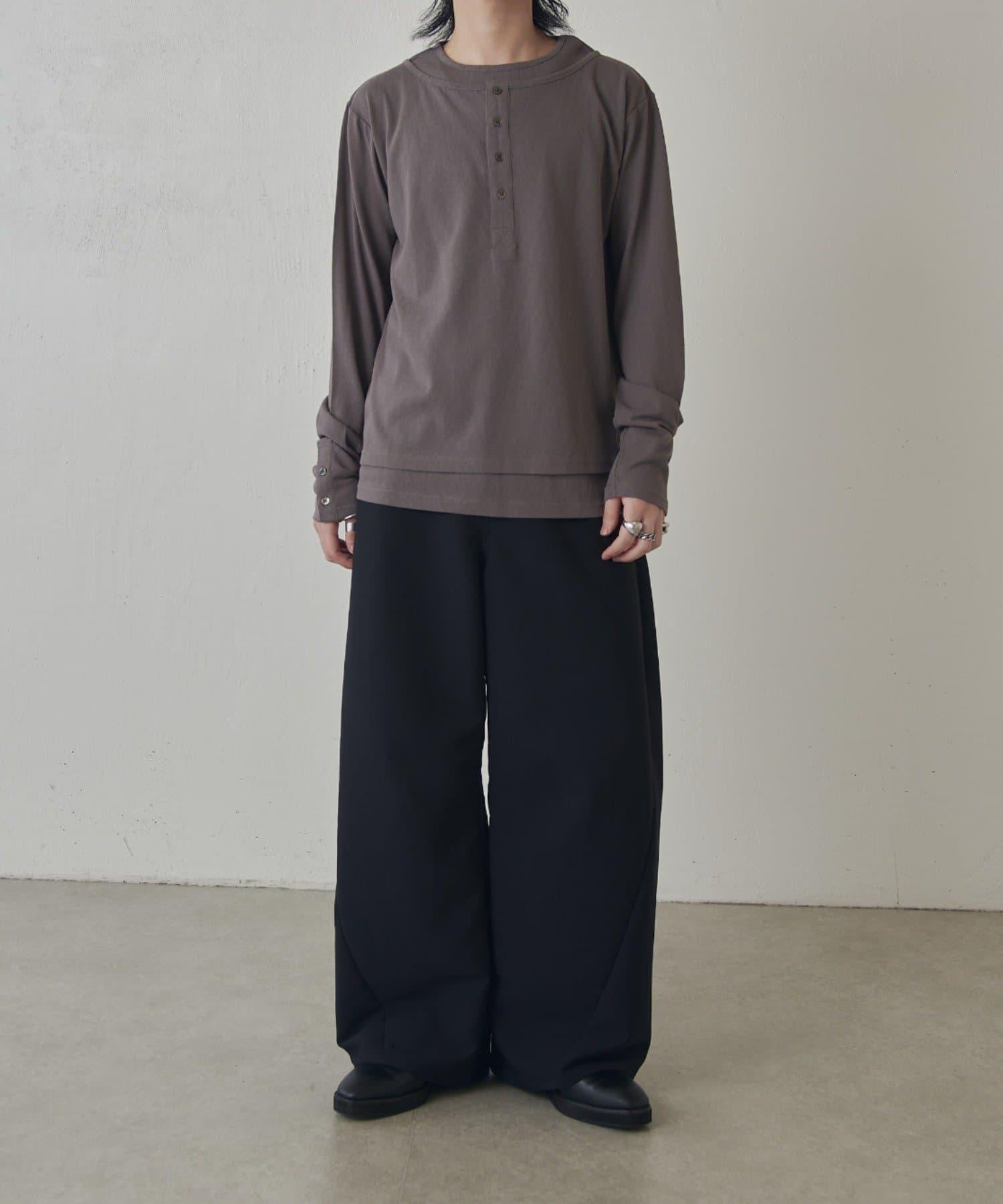 疊搭亨利領長袖T恤