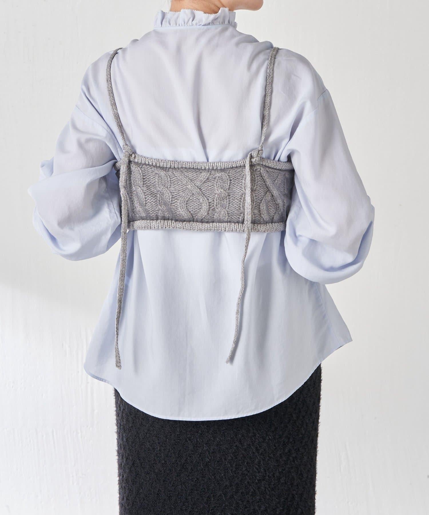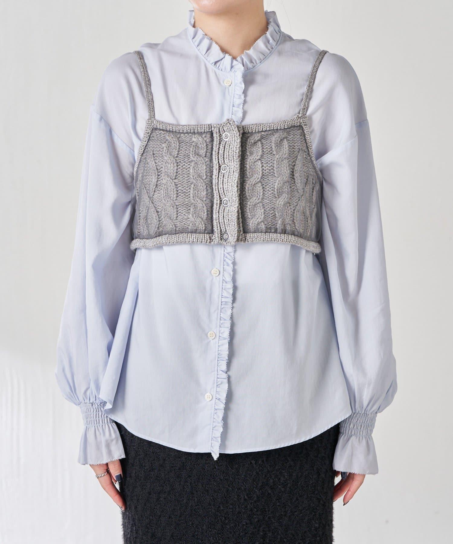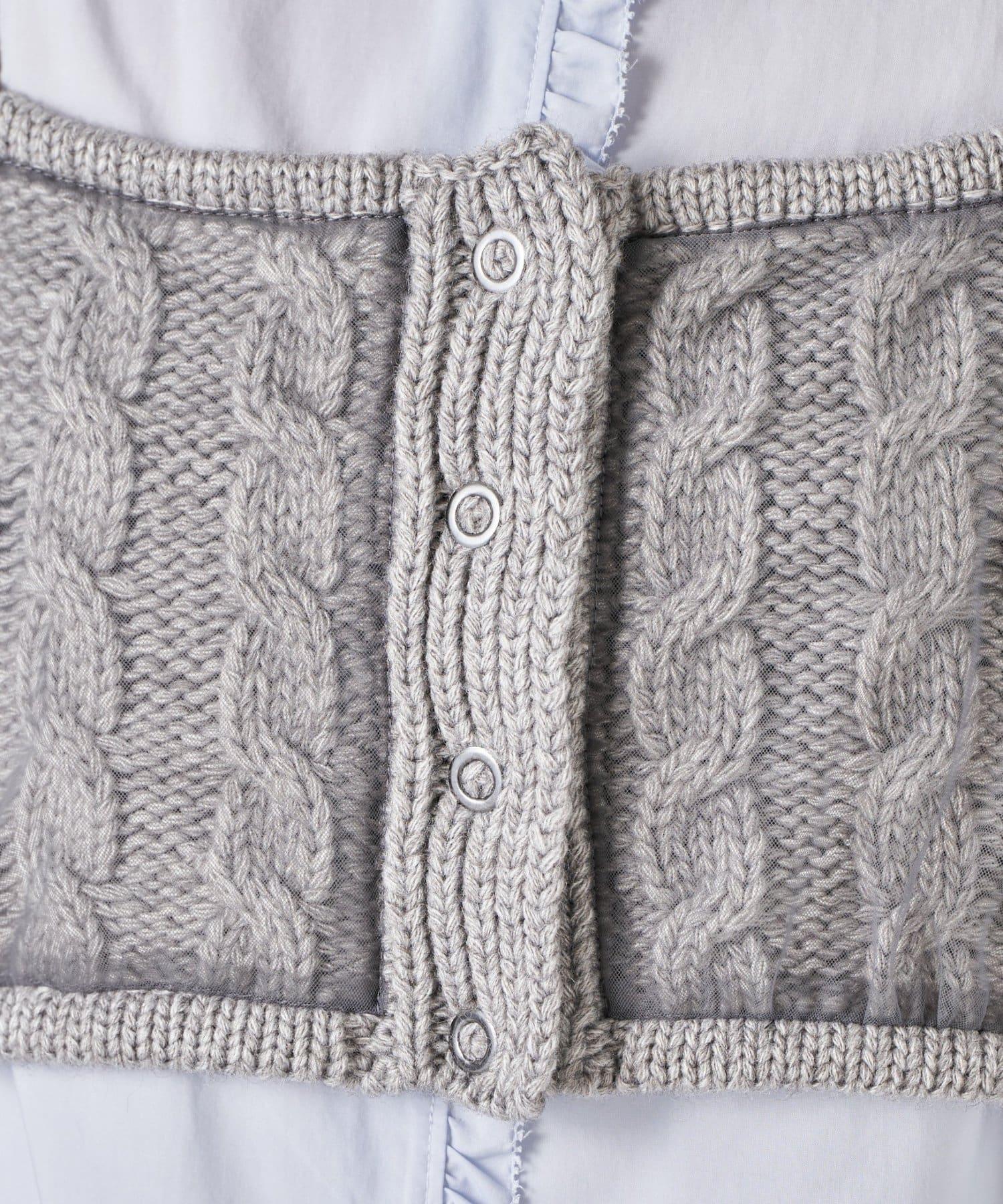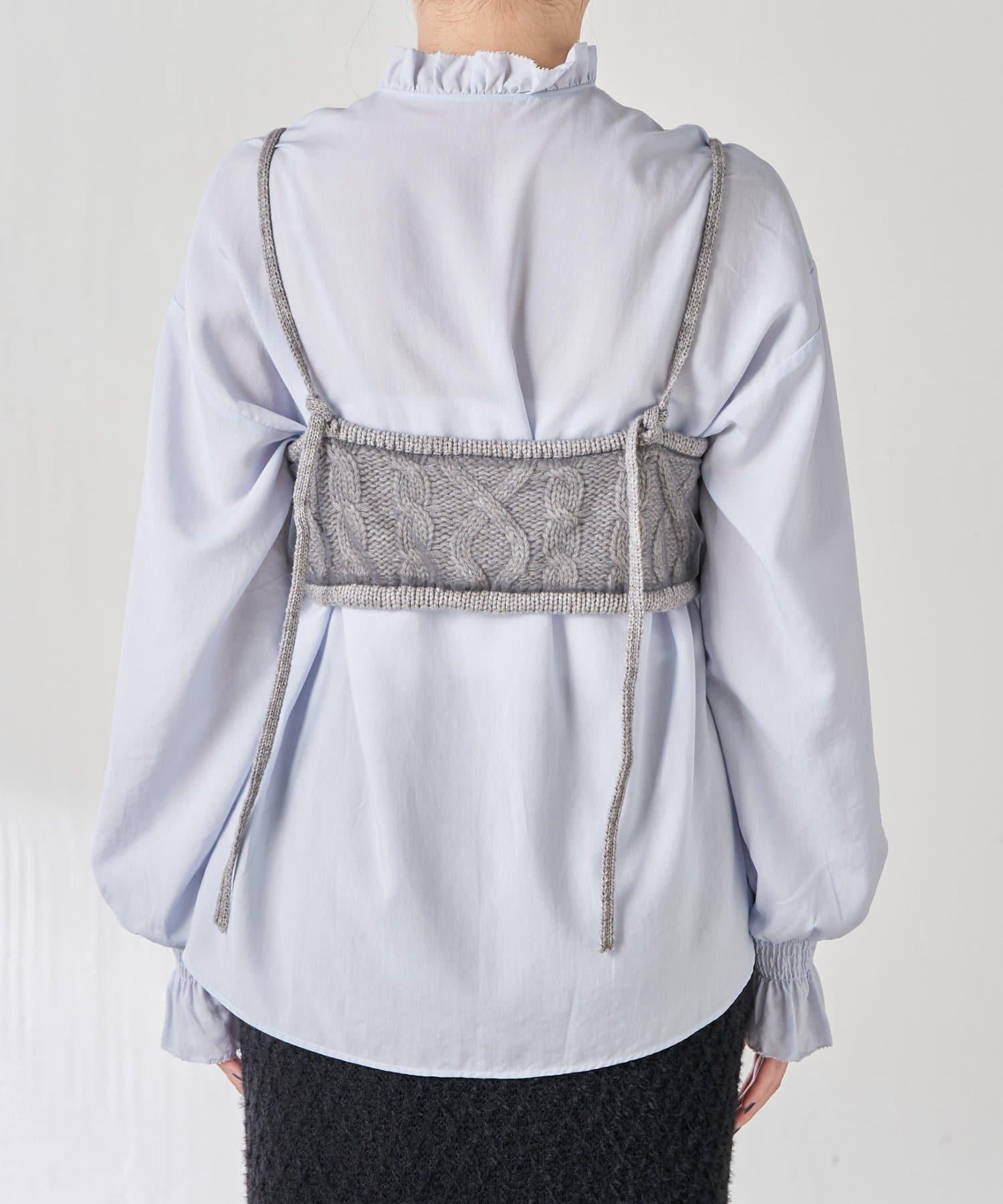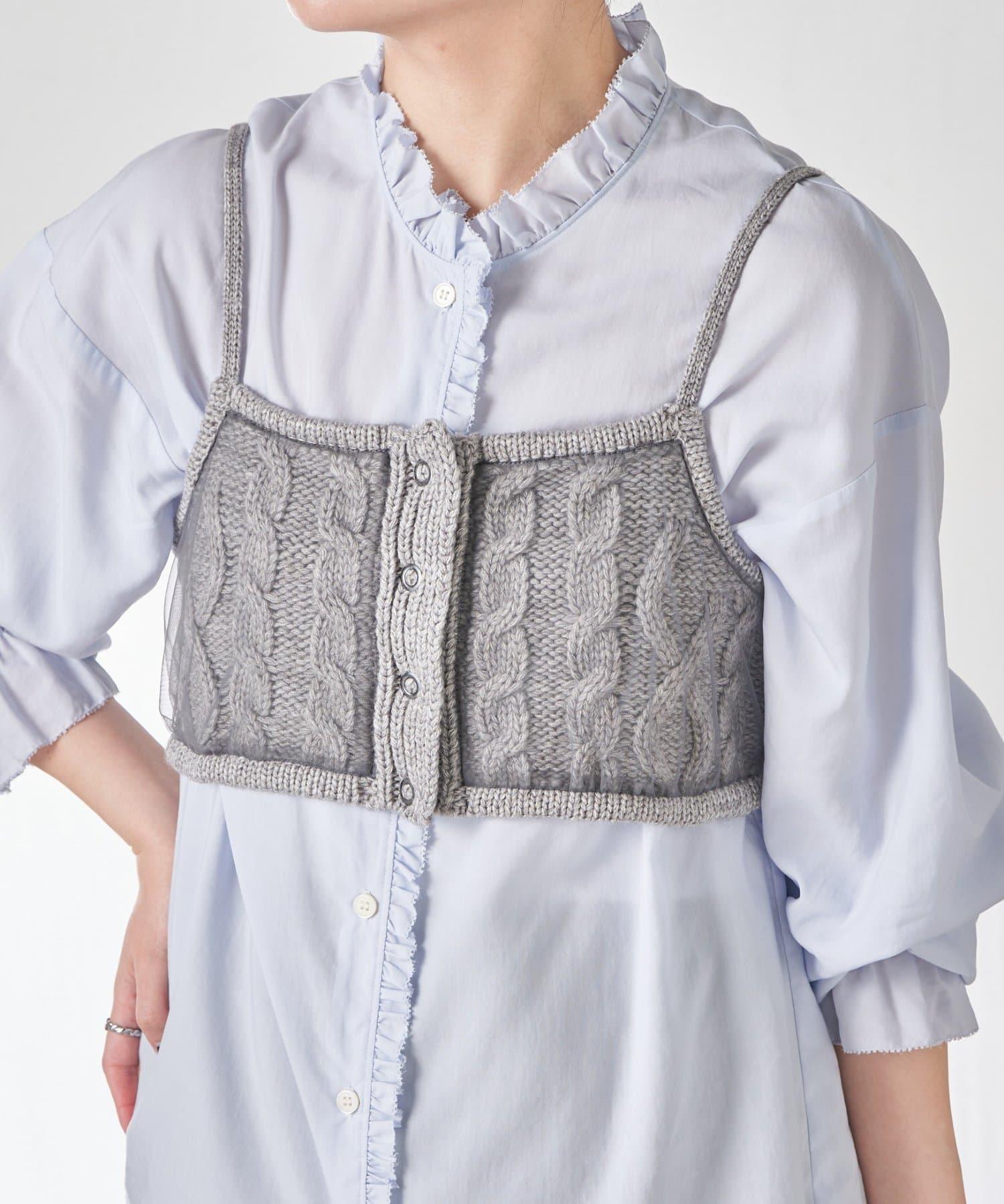 針織吊帶衫上的薄紗讓針織圖案略顯透明。