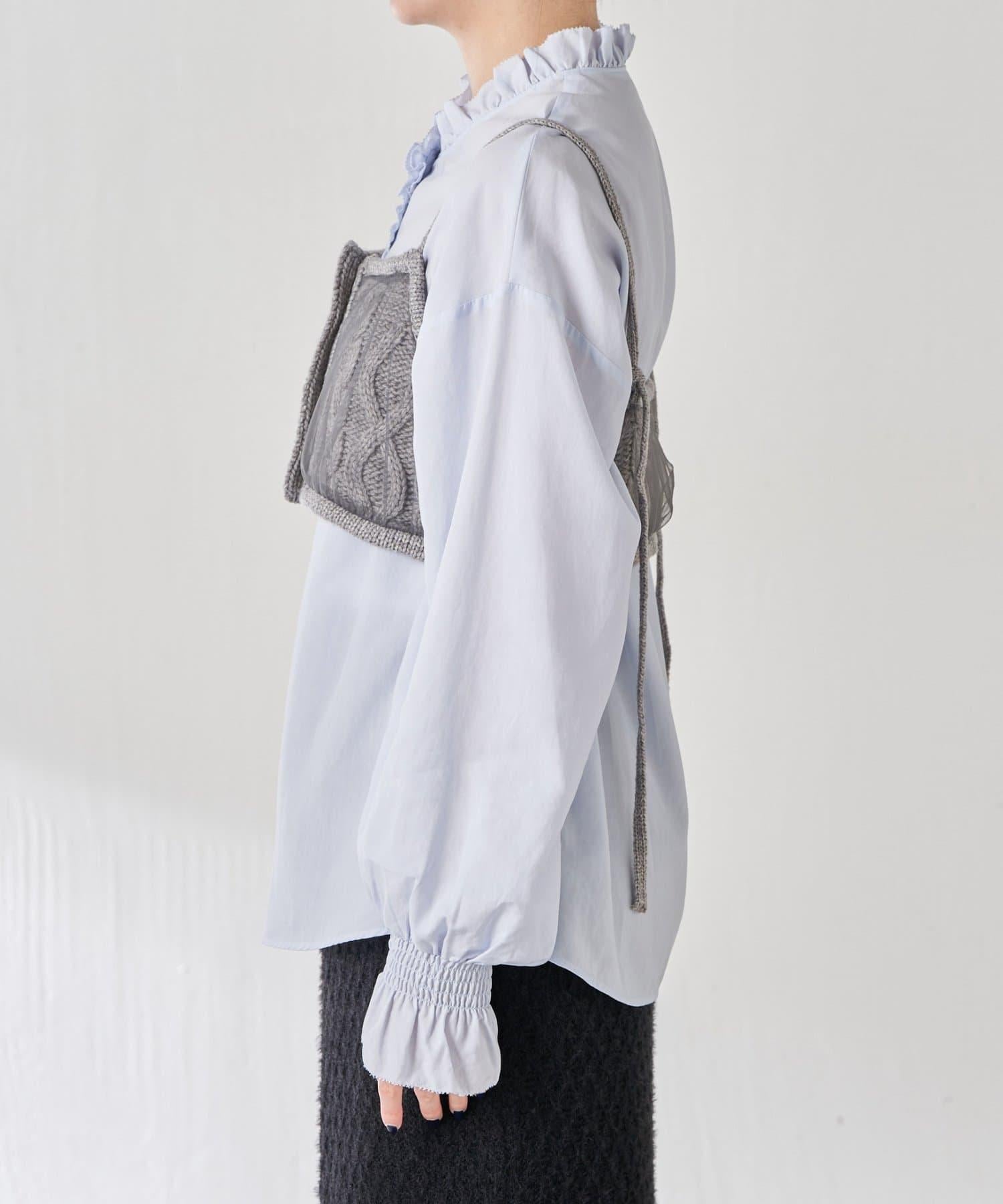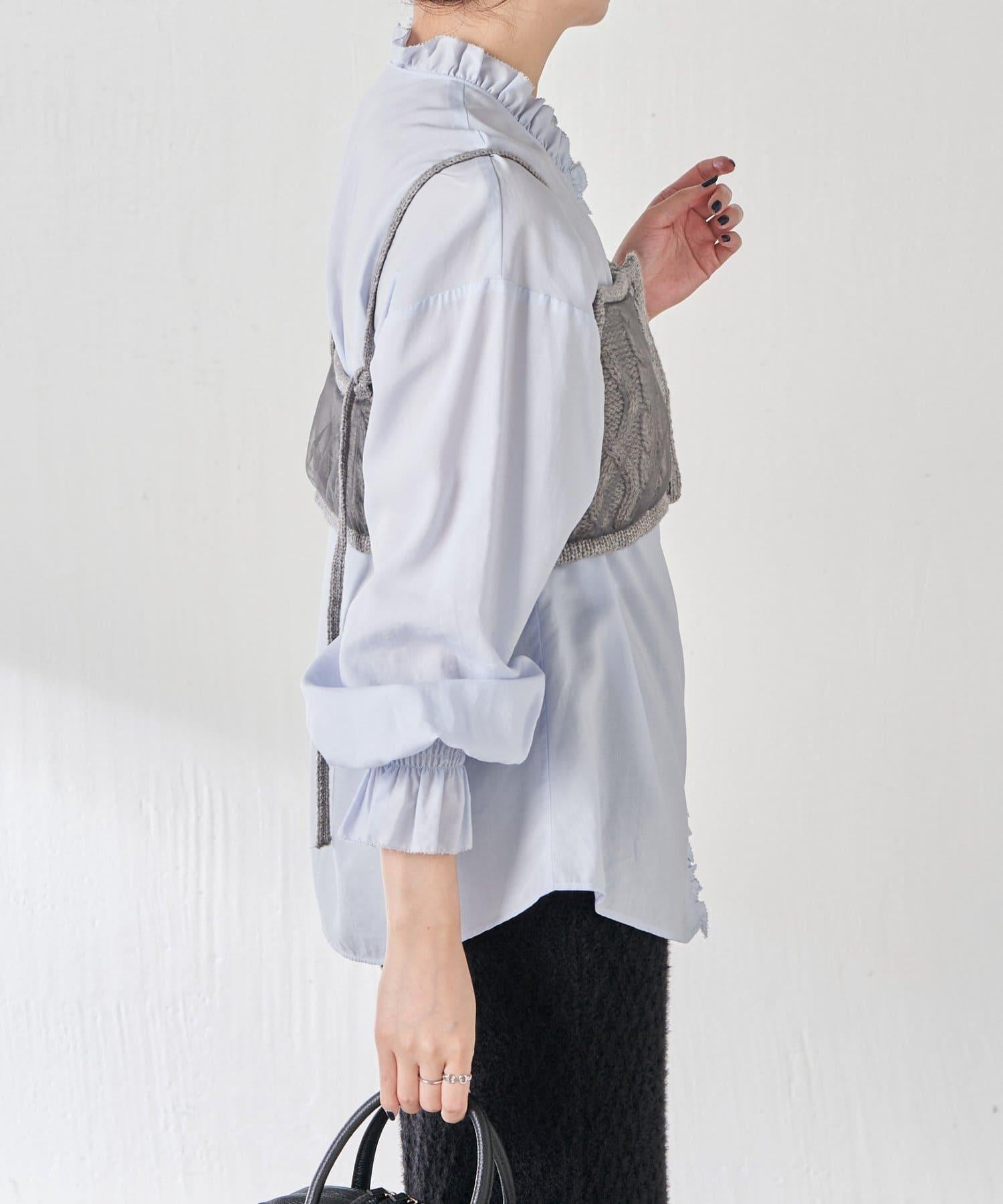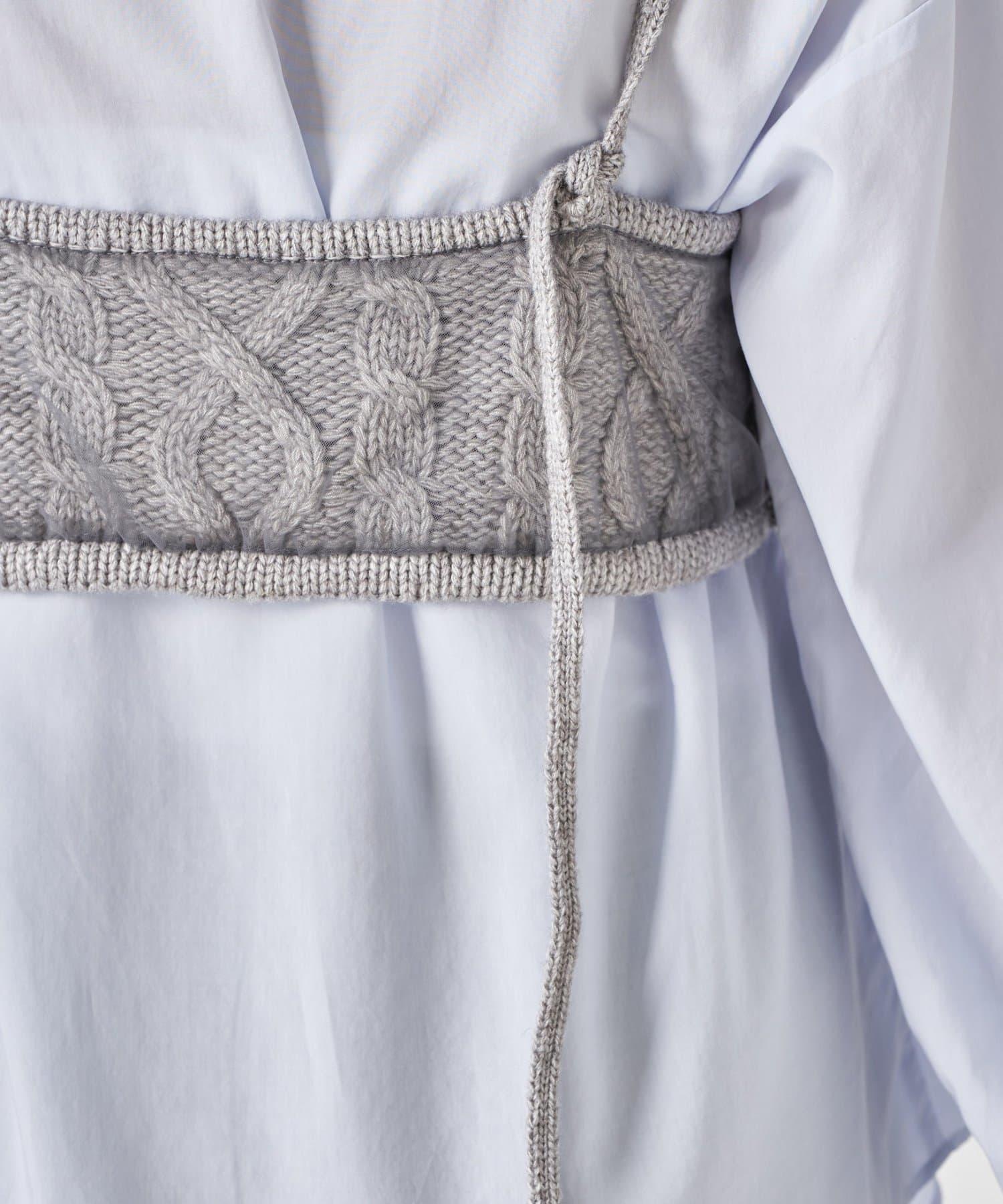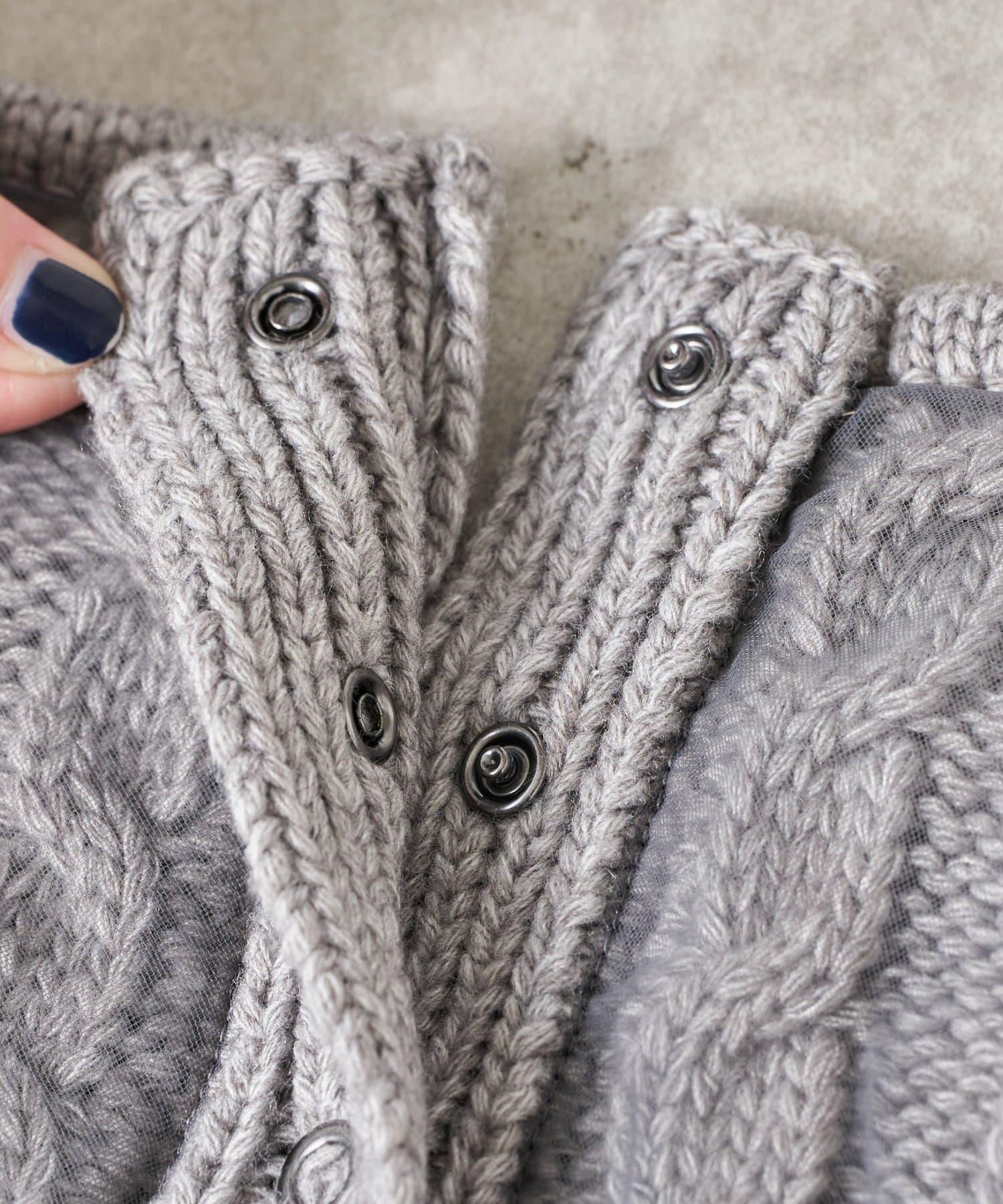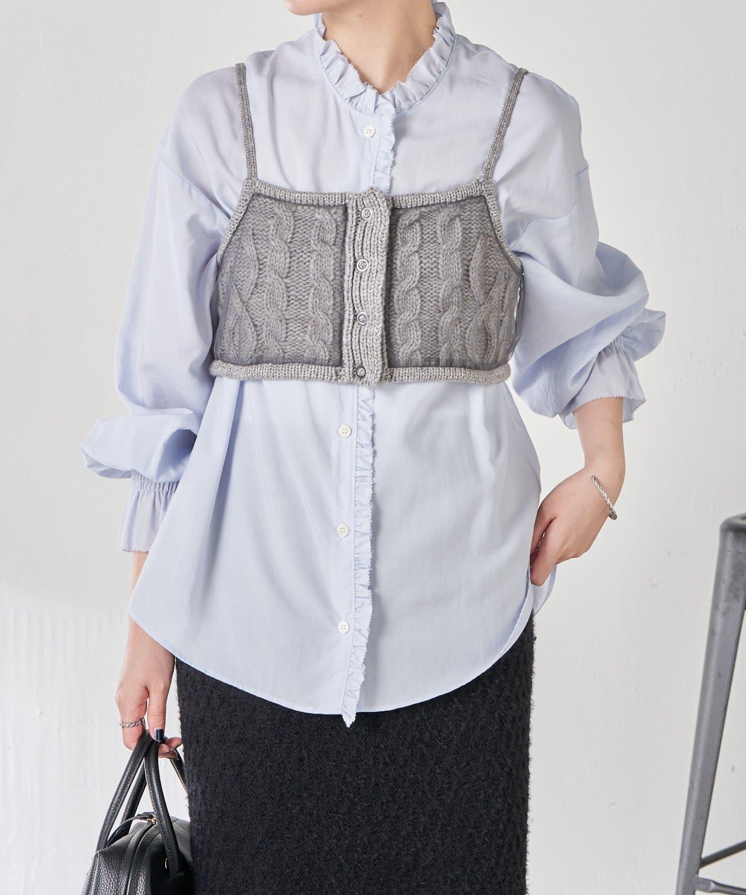 針織吊帶衫上的薄紗讓針織圖案略顯透明。