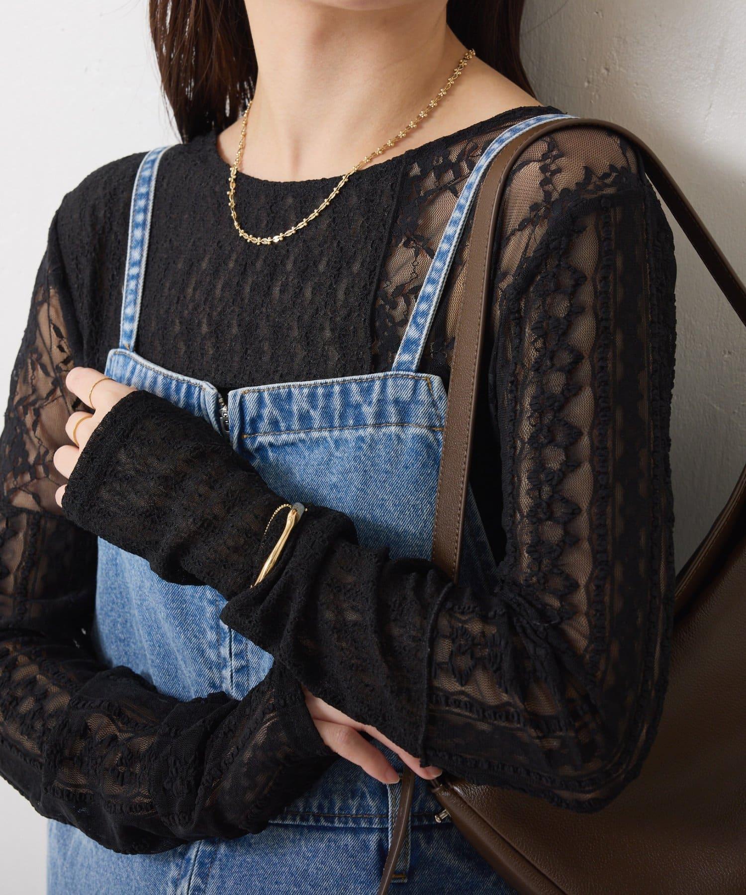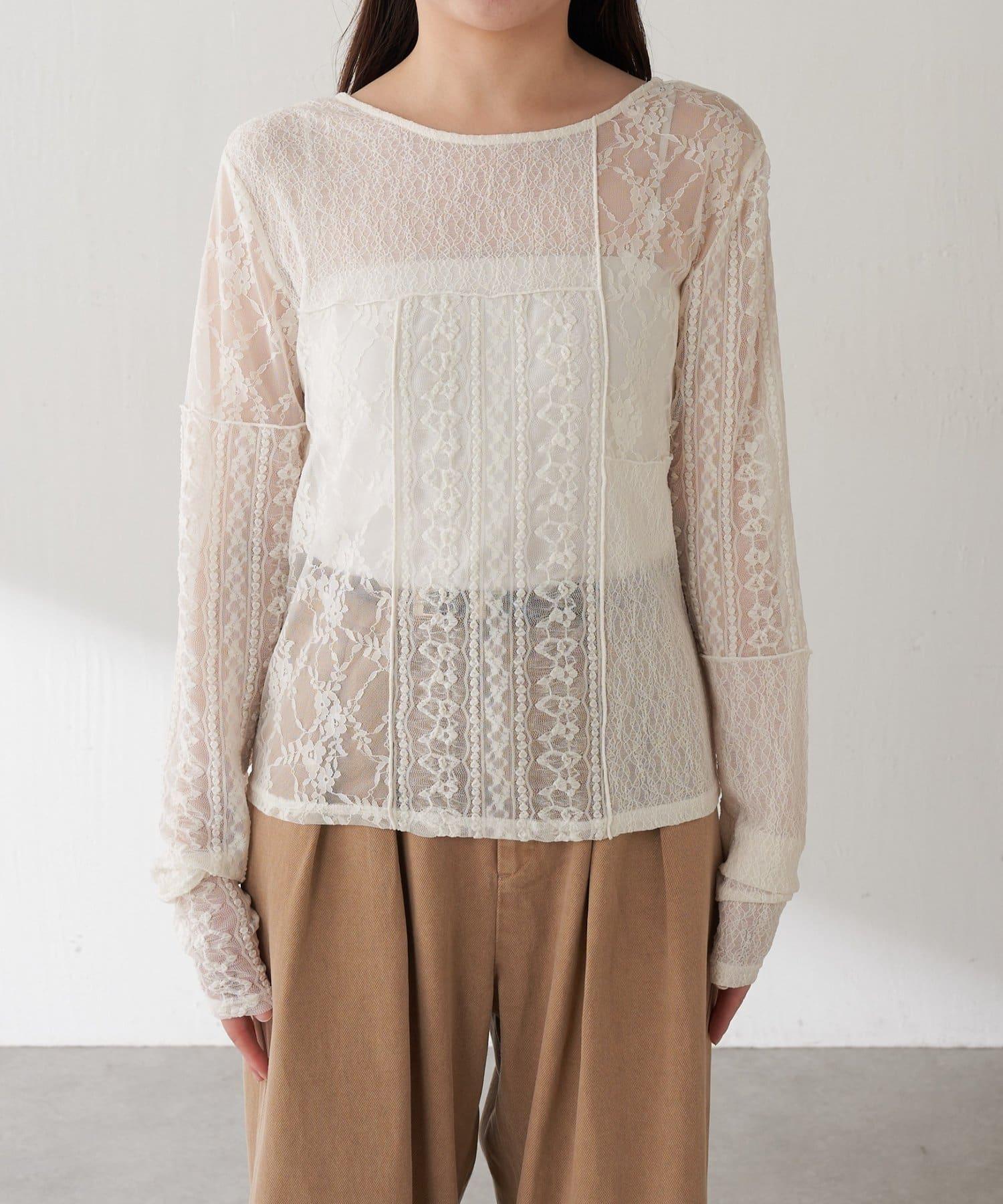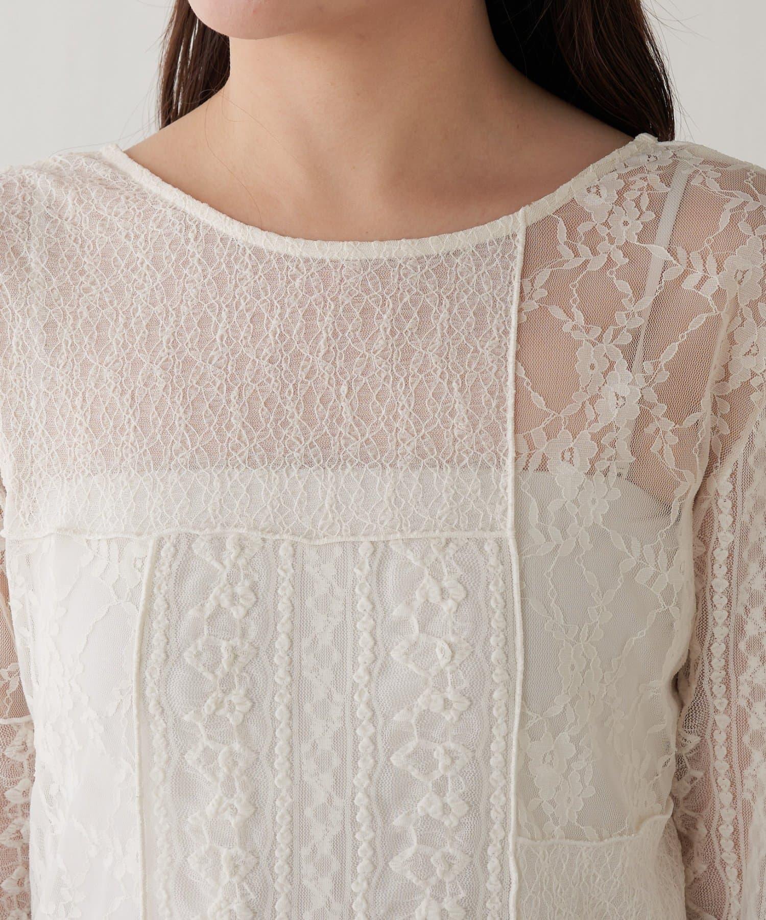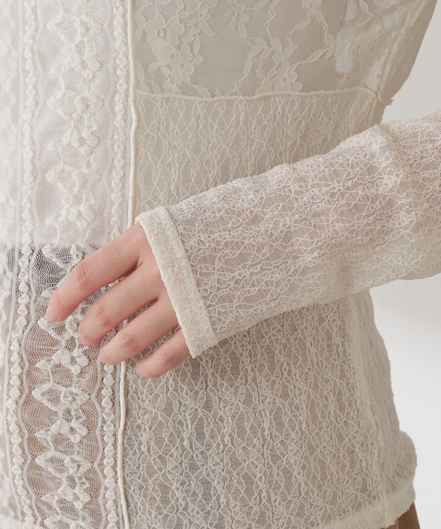 👍蕾絲長 T,拼接不同的蕾絲圖案。