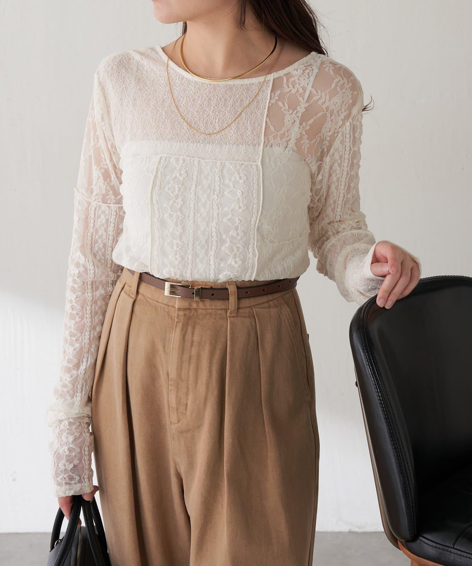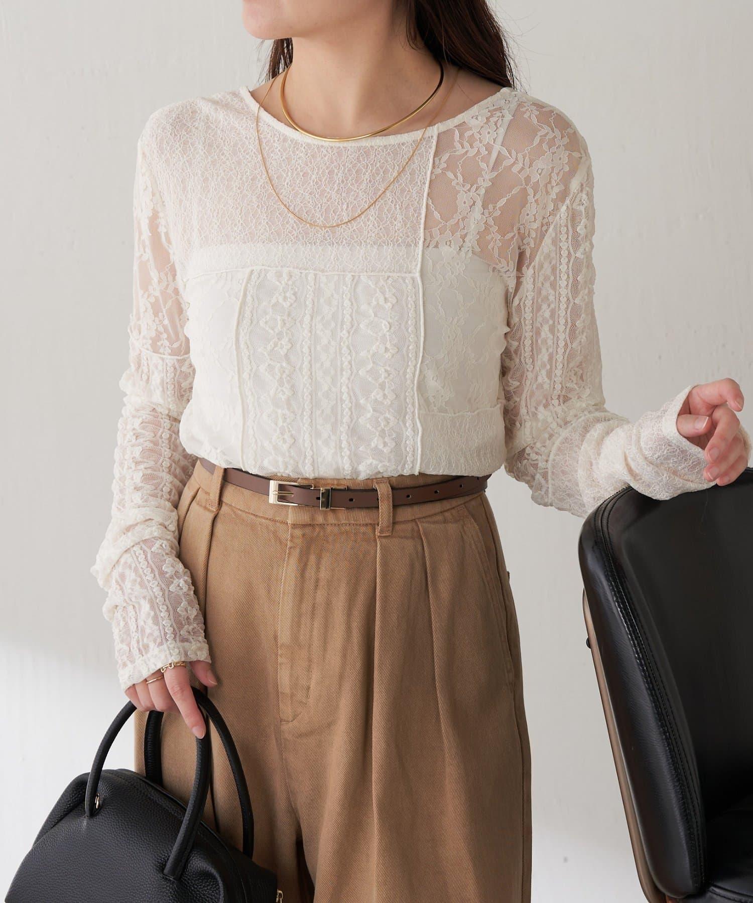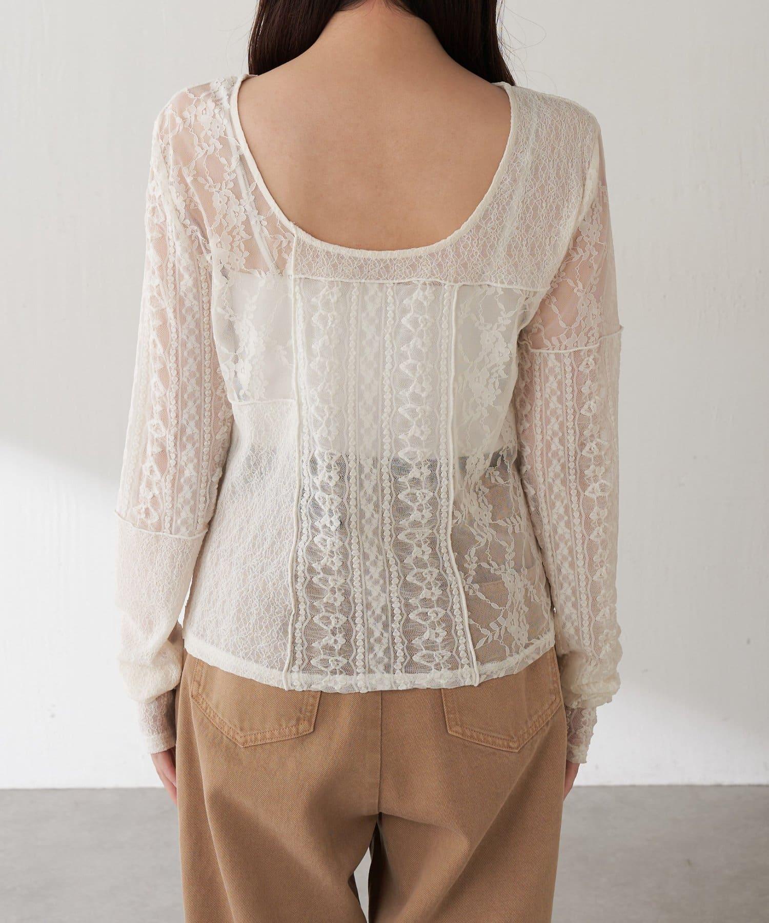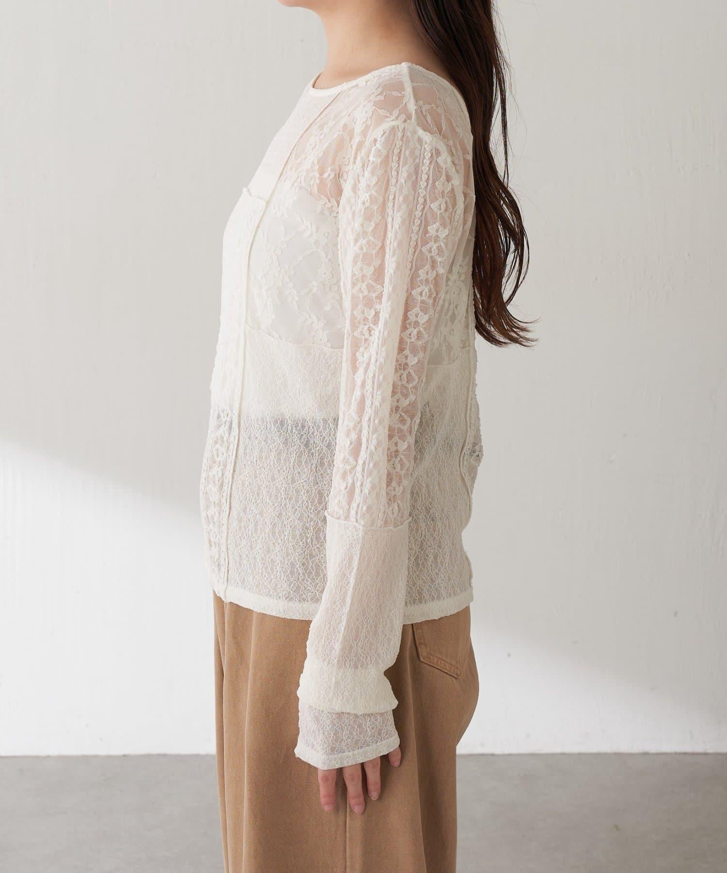 👍蕾絲長 T,拼接不同的蕾絲圖案。