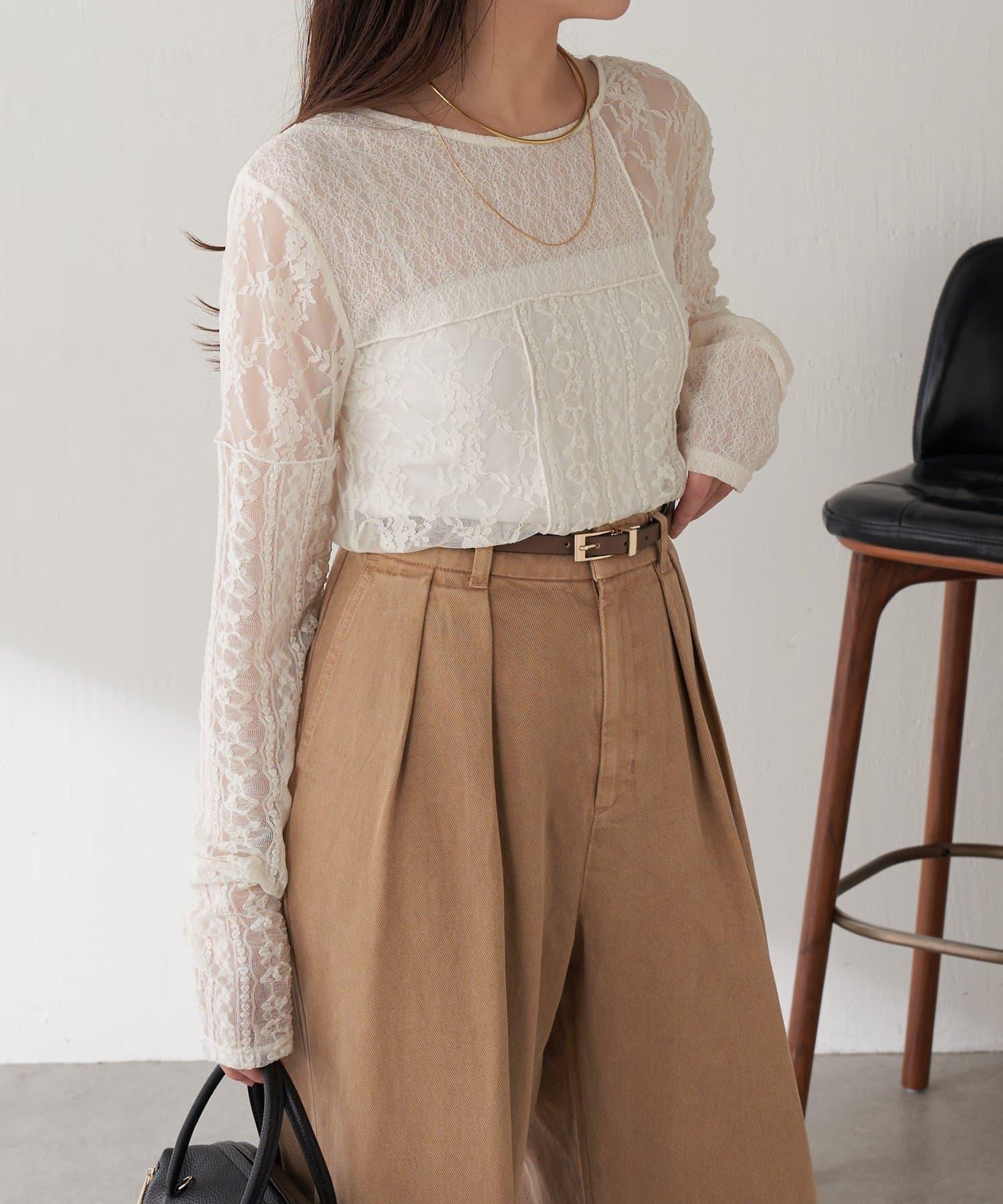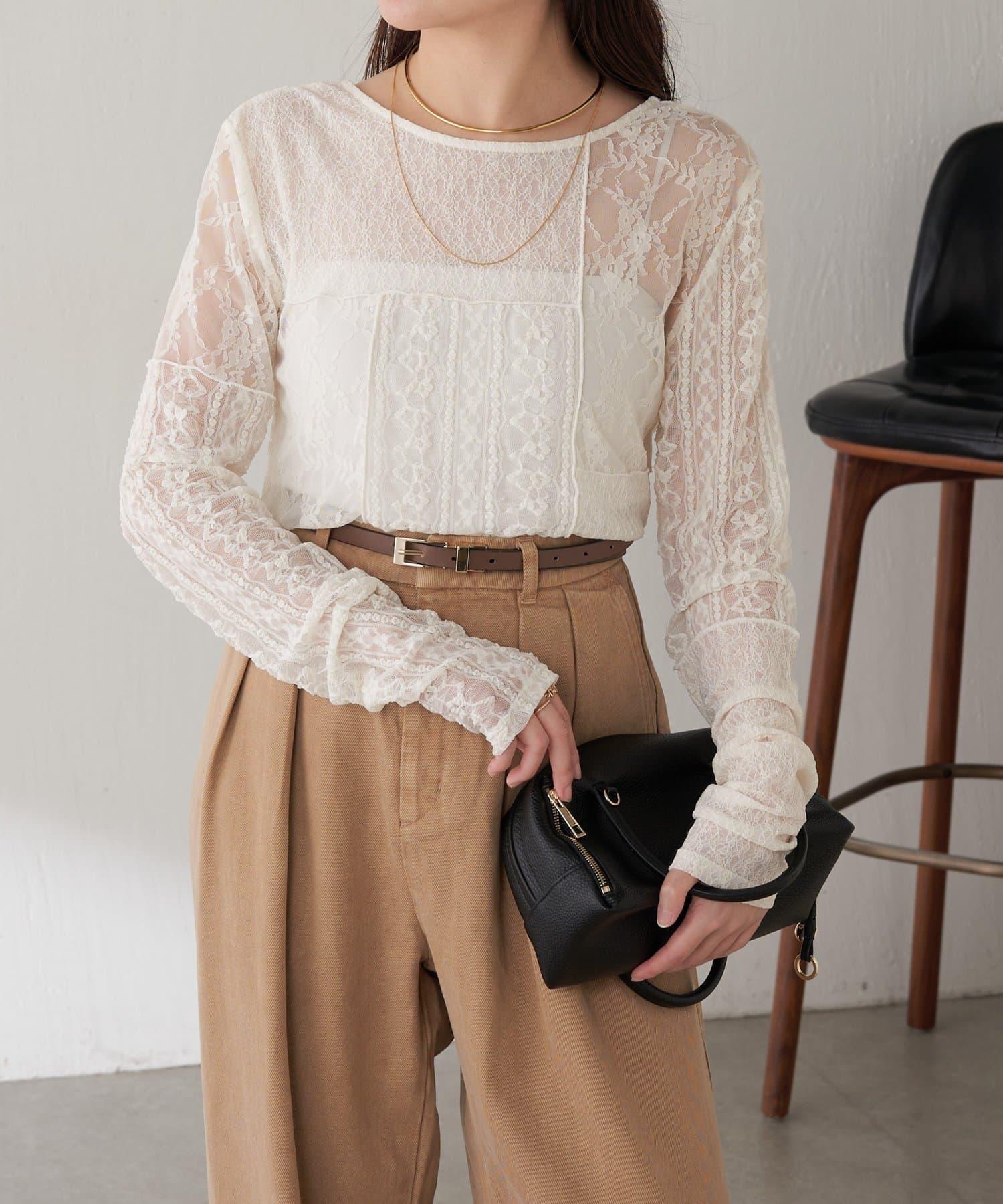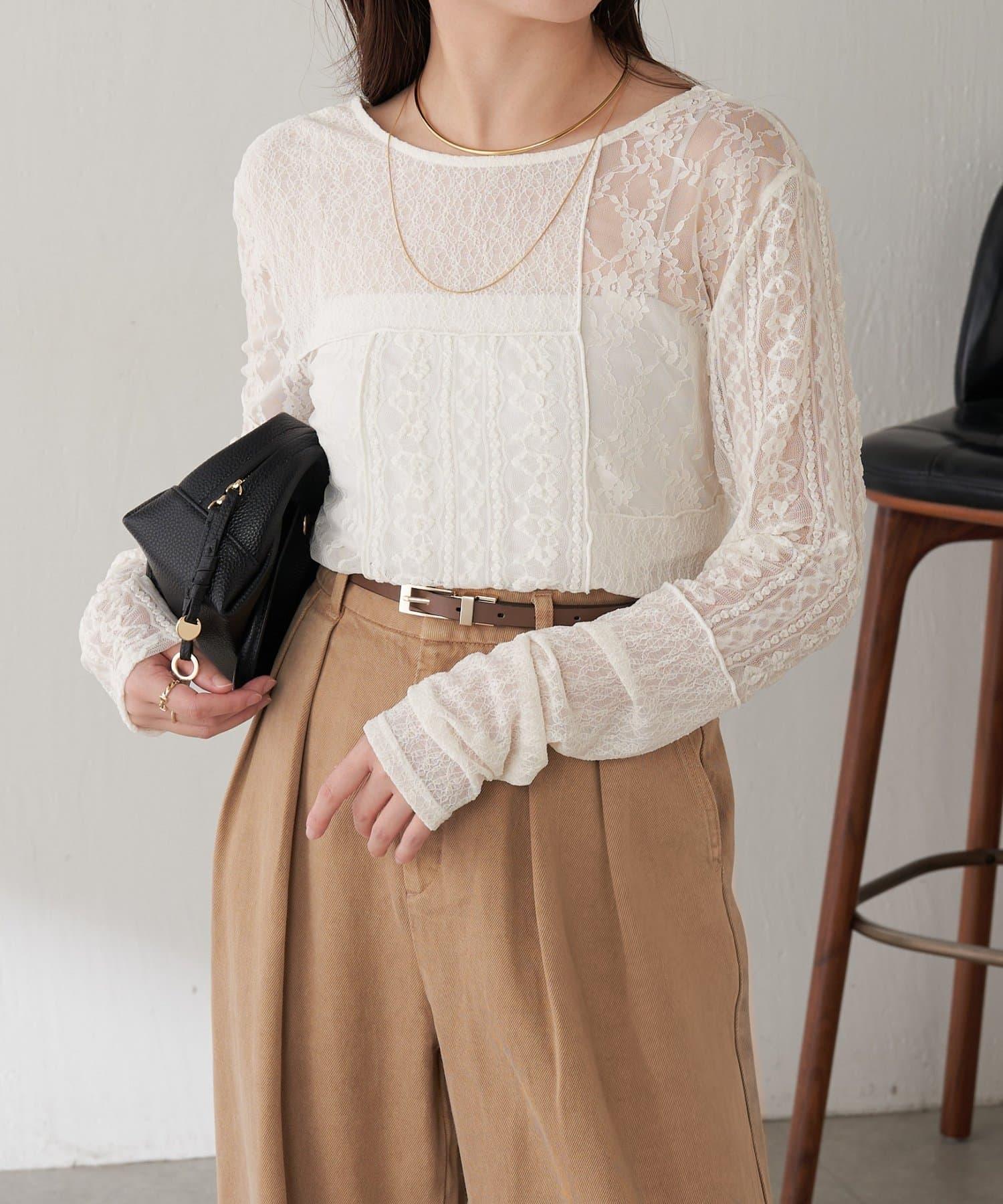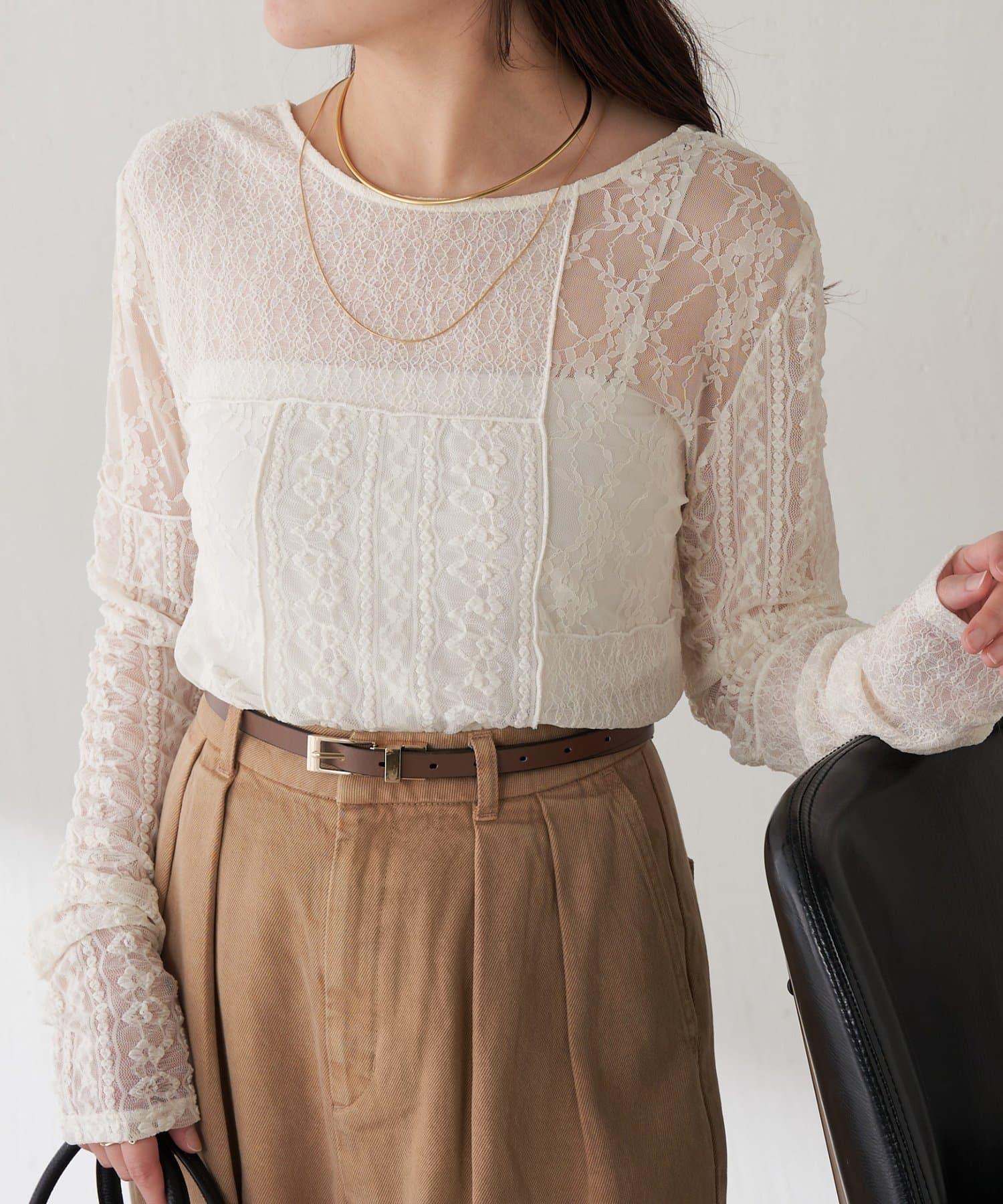 👍蕾絲長 T,拼接不同的蕾絲圖案。