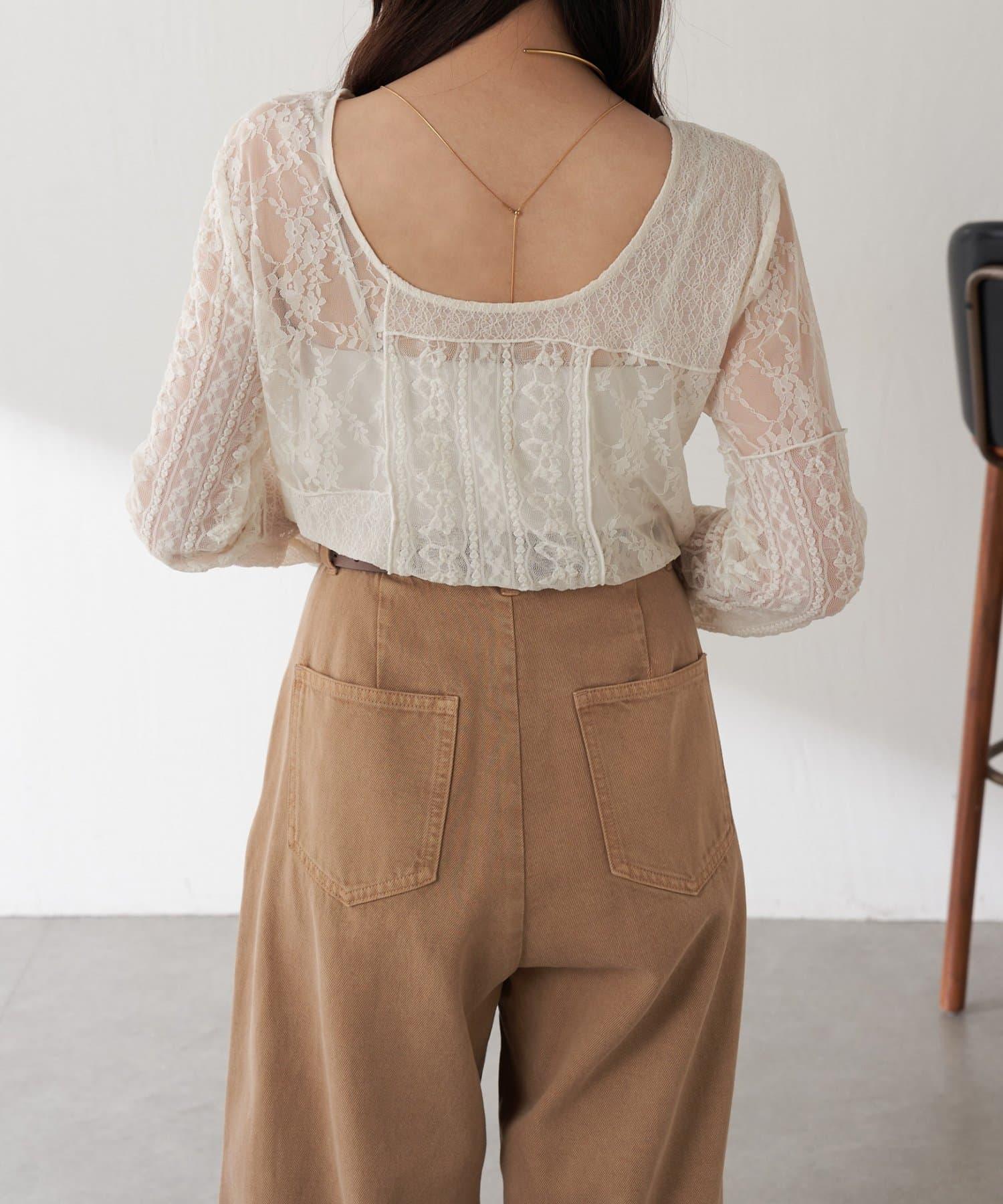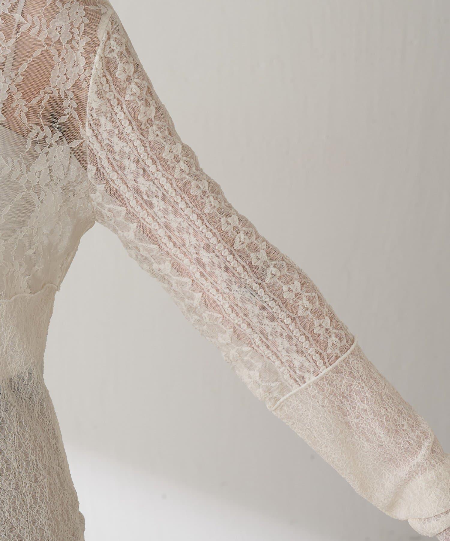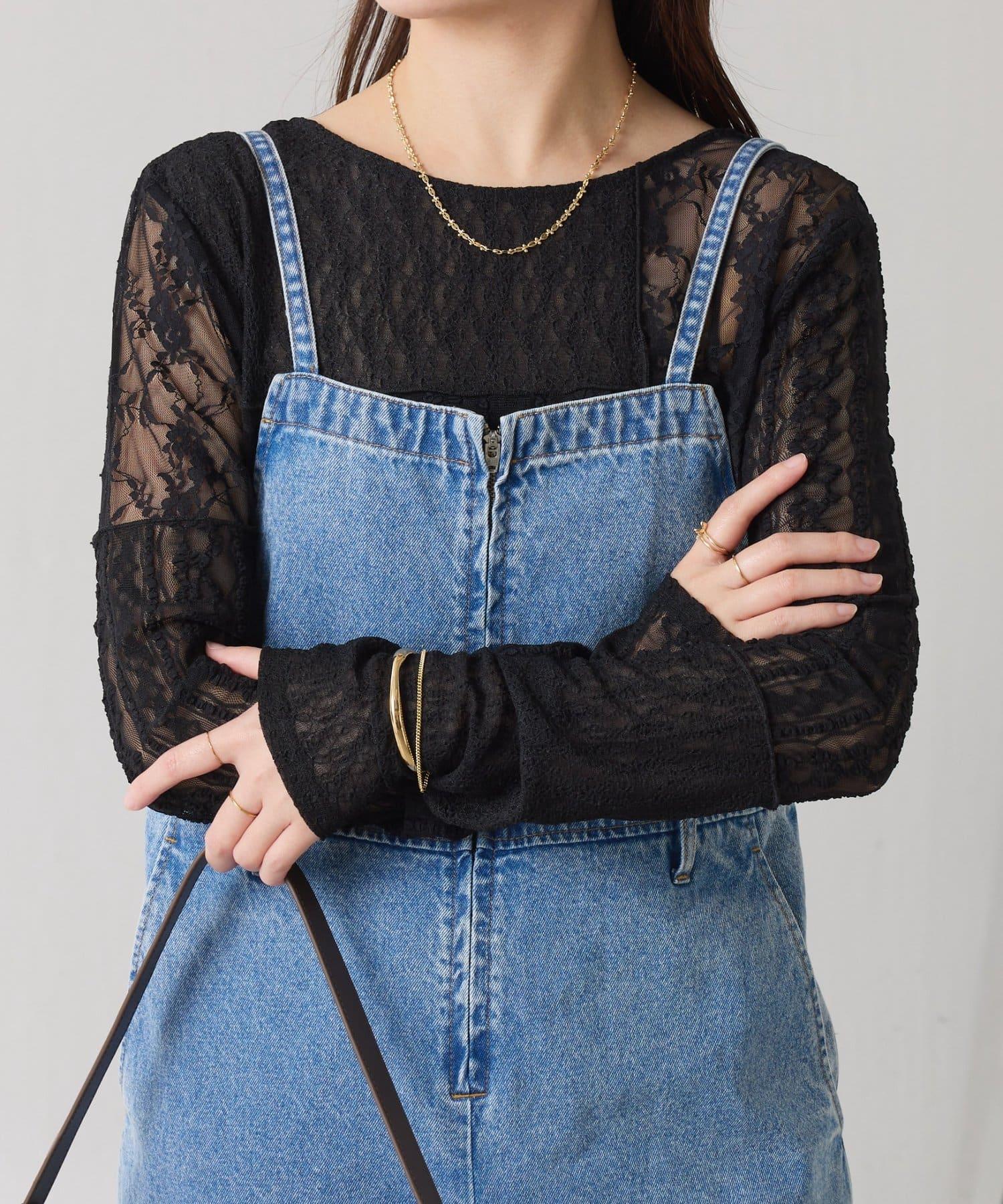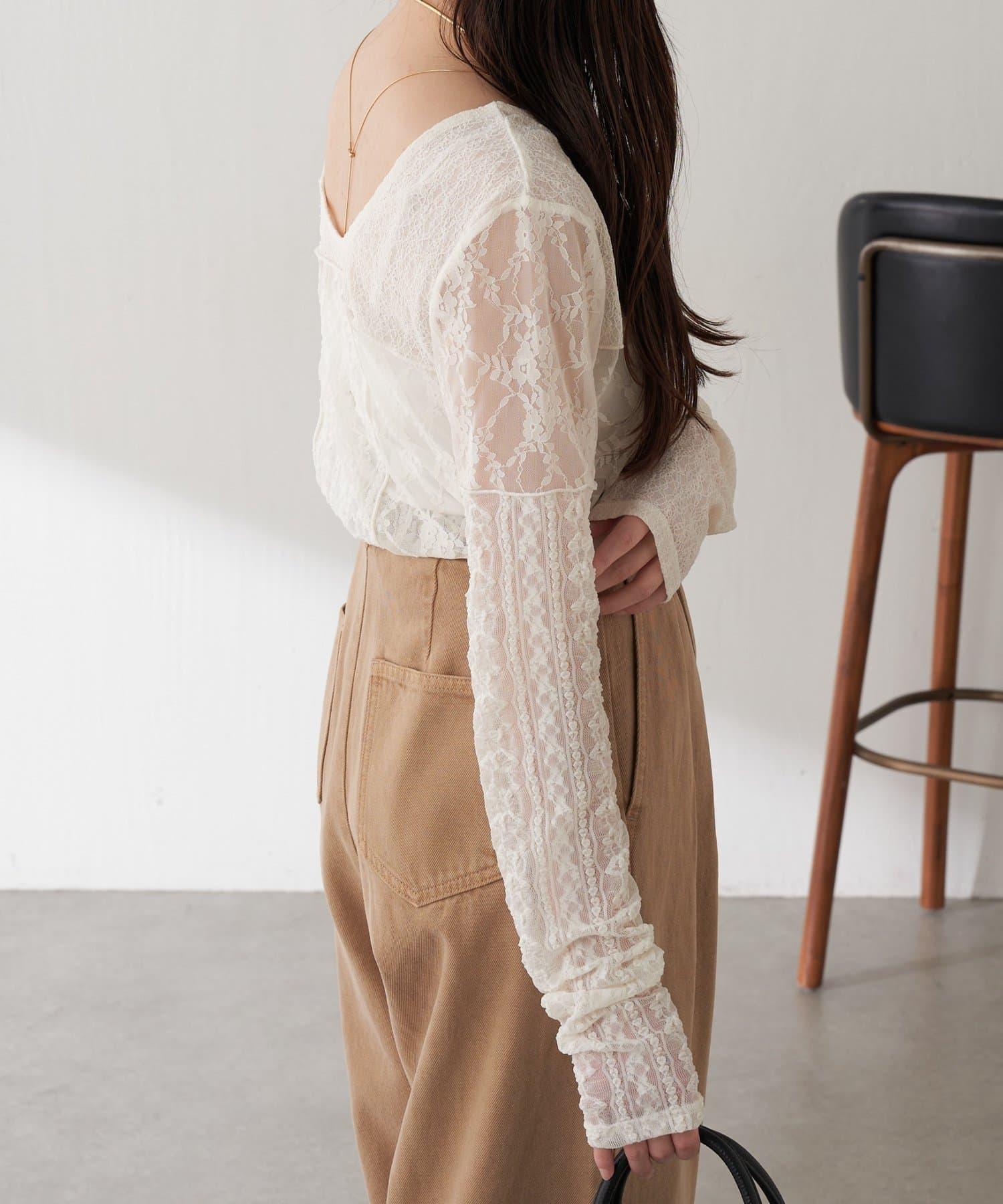 👍蕾絲長 T,拼接不同的蕾絲圖案。