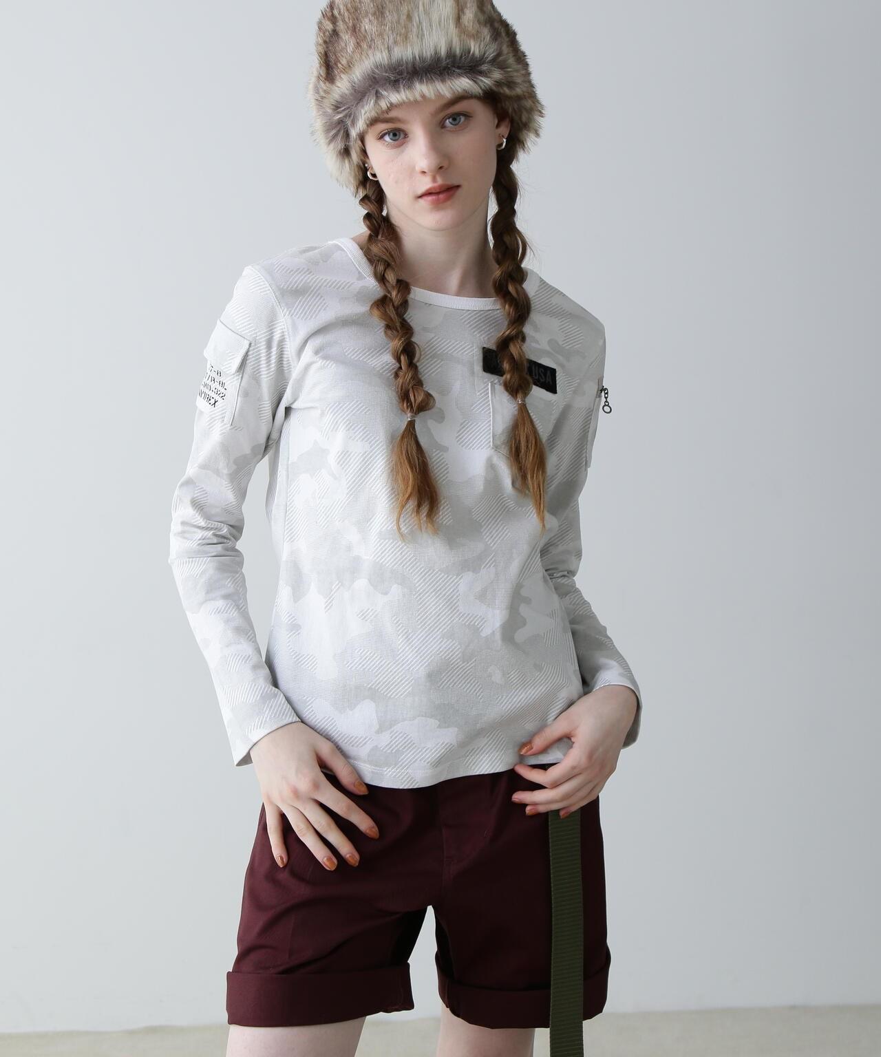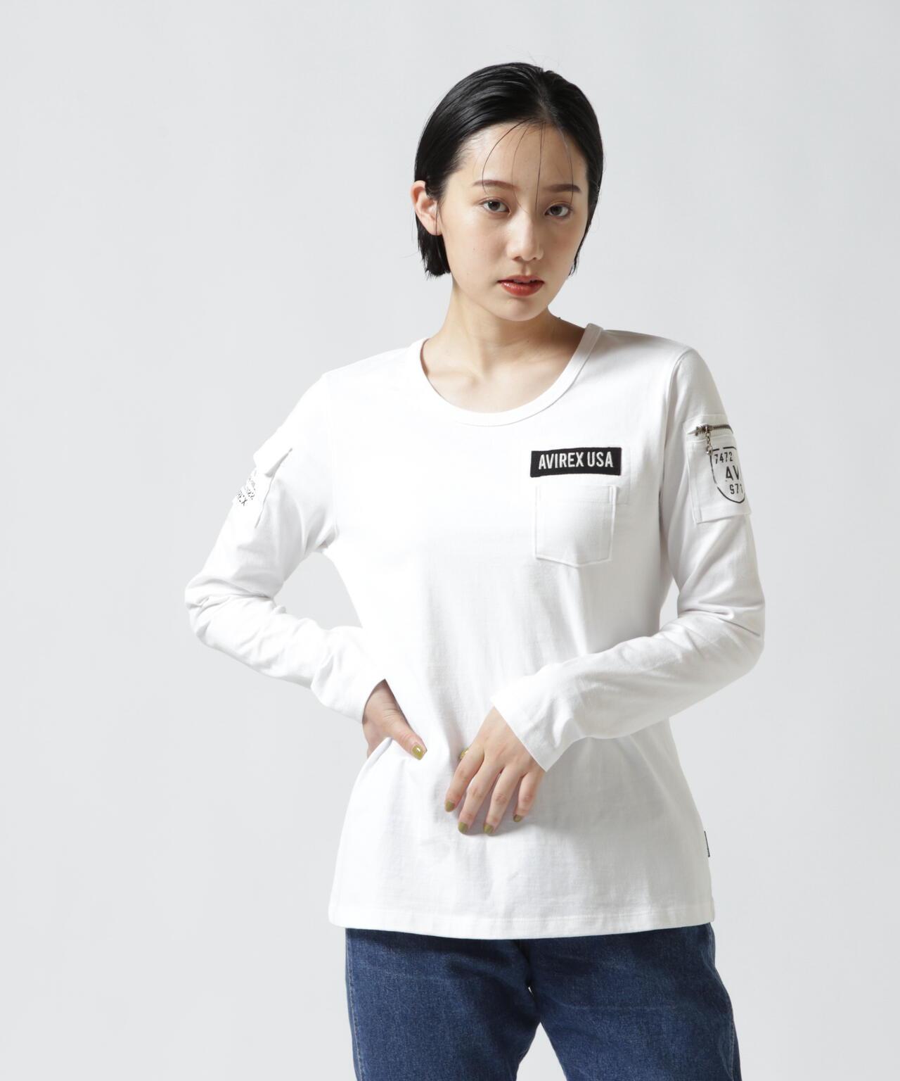 AVIREX 的經典之作!長袖 "Fatigue Tee"★這是一款充滿軍旅味道的長袖 T 恤,兩袖口袋的設計靈感來自 Fatigue 長褲,面料採用手感極佳的厚針織面料。褲裝造型酷感十足!搭配裙子,休閒十足!AVIREX 的必備單品!男女均可穿著。AVIREX Belle] 將純正軍裝的功能性和設計感投射到女式休閒裝上。作為一個具有個性和永恆性的女裝品牌,它為聰明、自由、好奇、端莊、活潑的成年職業女性提供女式休閒裝。