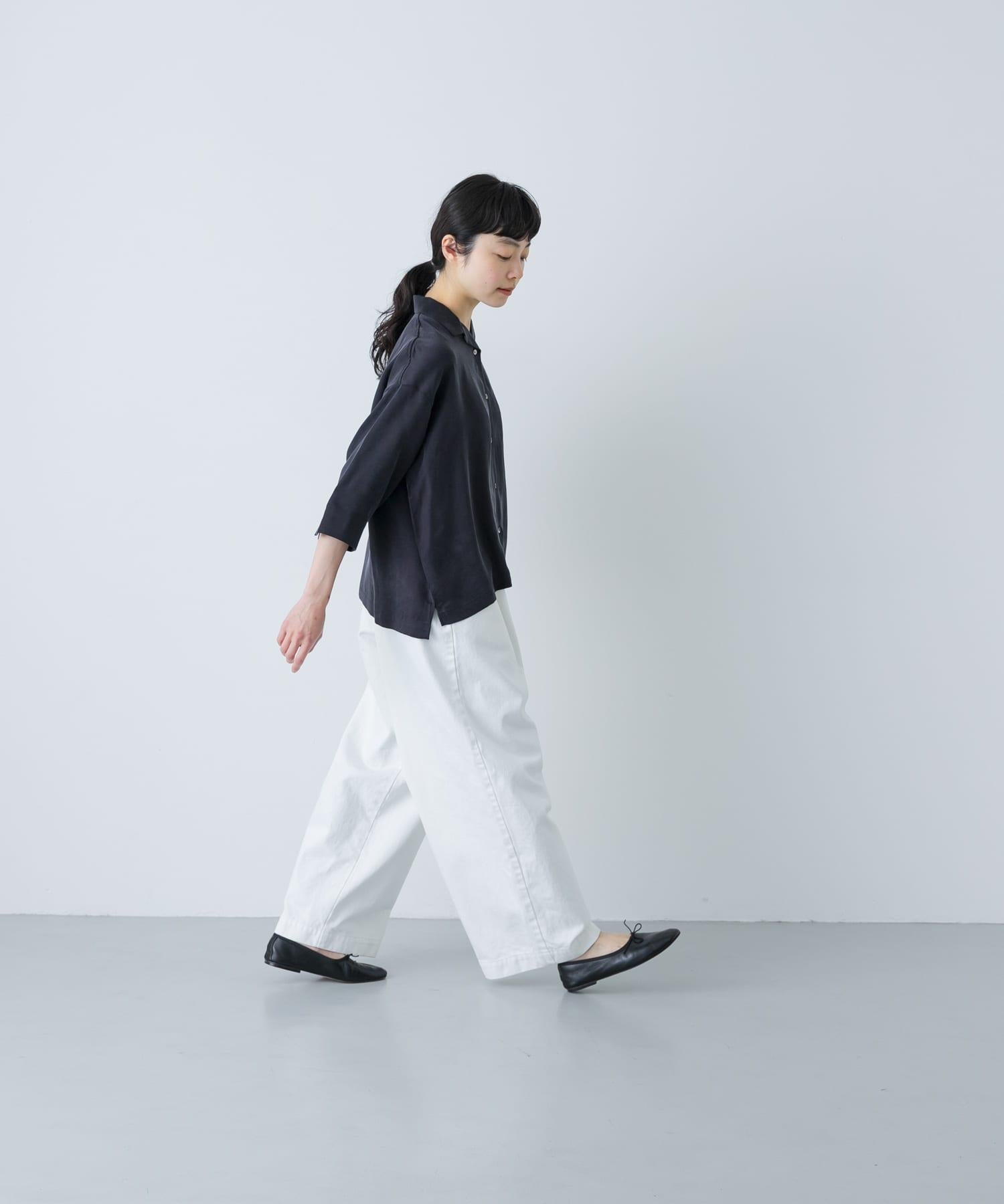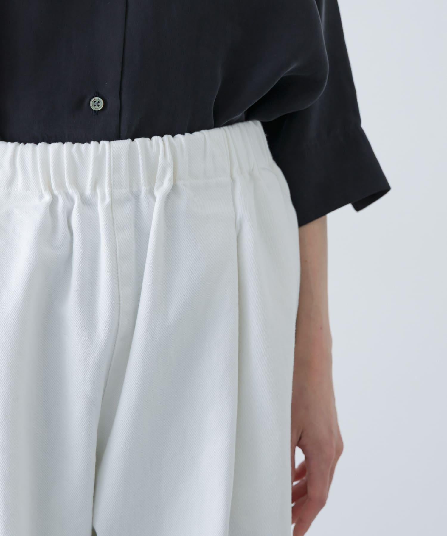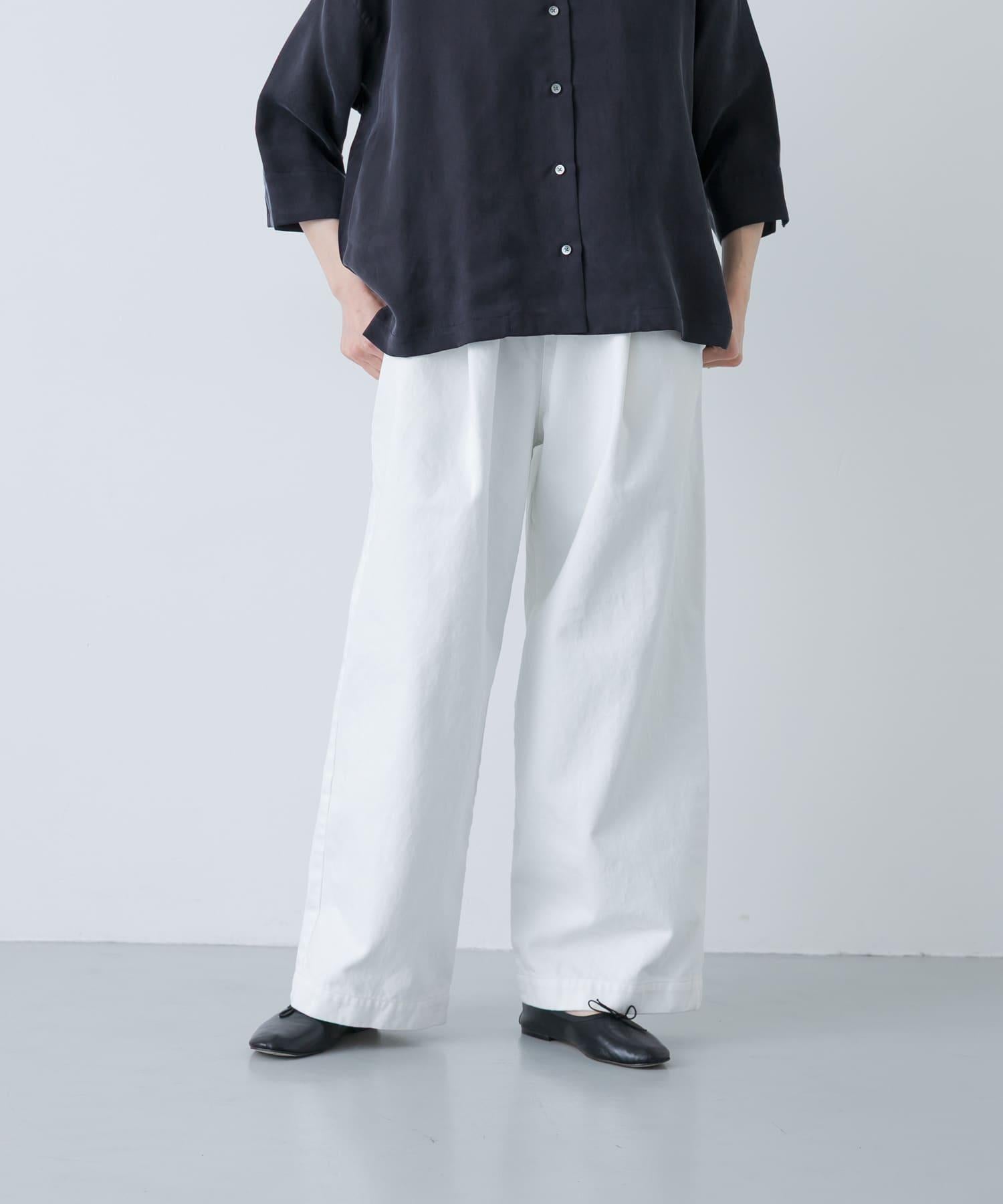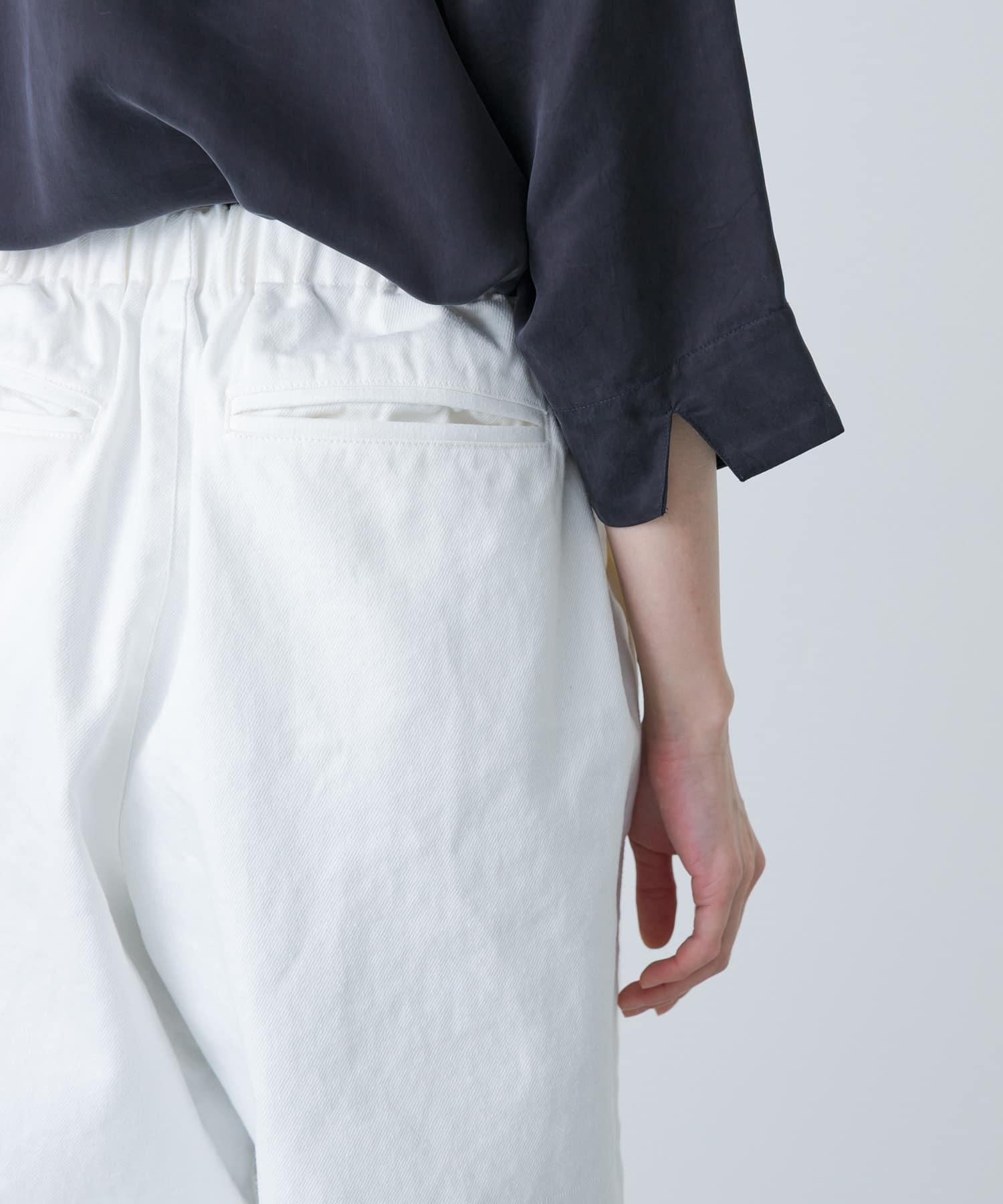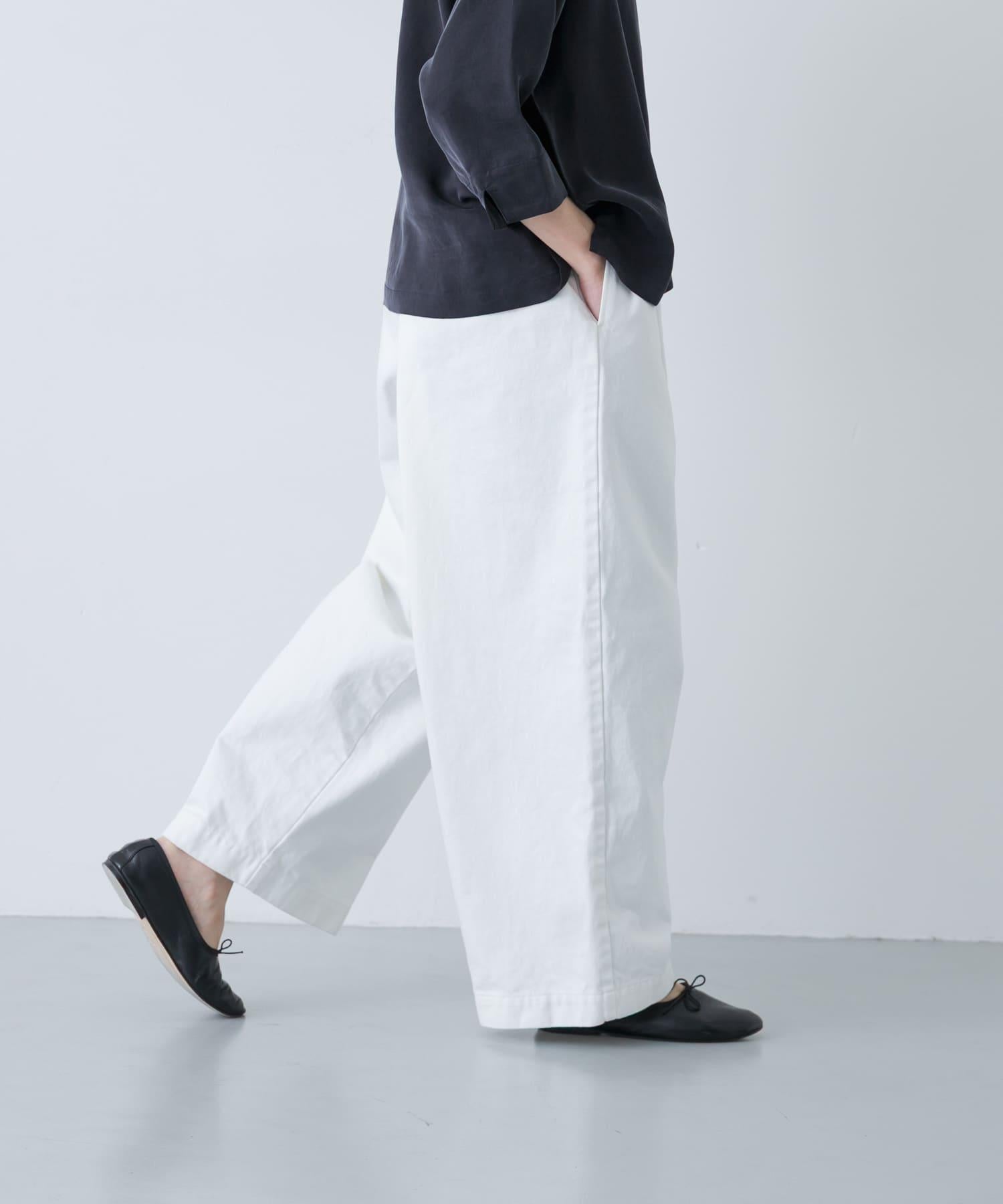 褲型寬鬆,穿著舒適。白色給人精緻的印象。無論是藍色、黃色等靚麗色彩,還是灰色、藏青色等基本色,都能輕鬆搭配。與靛藍色牛仔褲相比,休閒風顯得適度內斂,大氣得體。透明度問題不大,但穿同色系的內搭或襯褲更安全。通過更換上衣,可在四季中使用,是一款令人放心的單品。