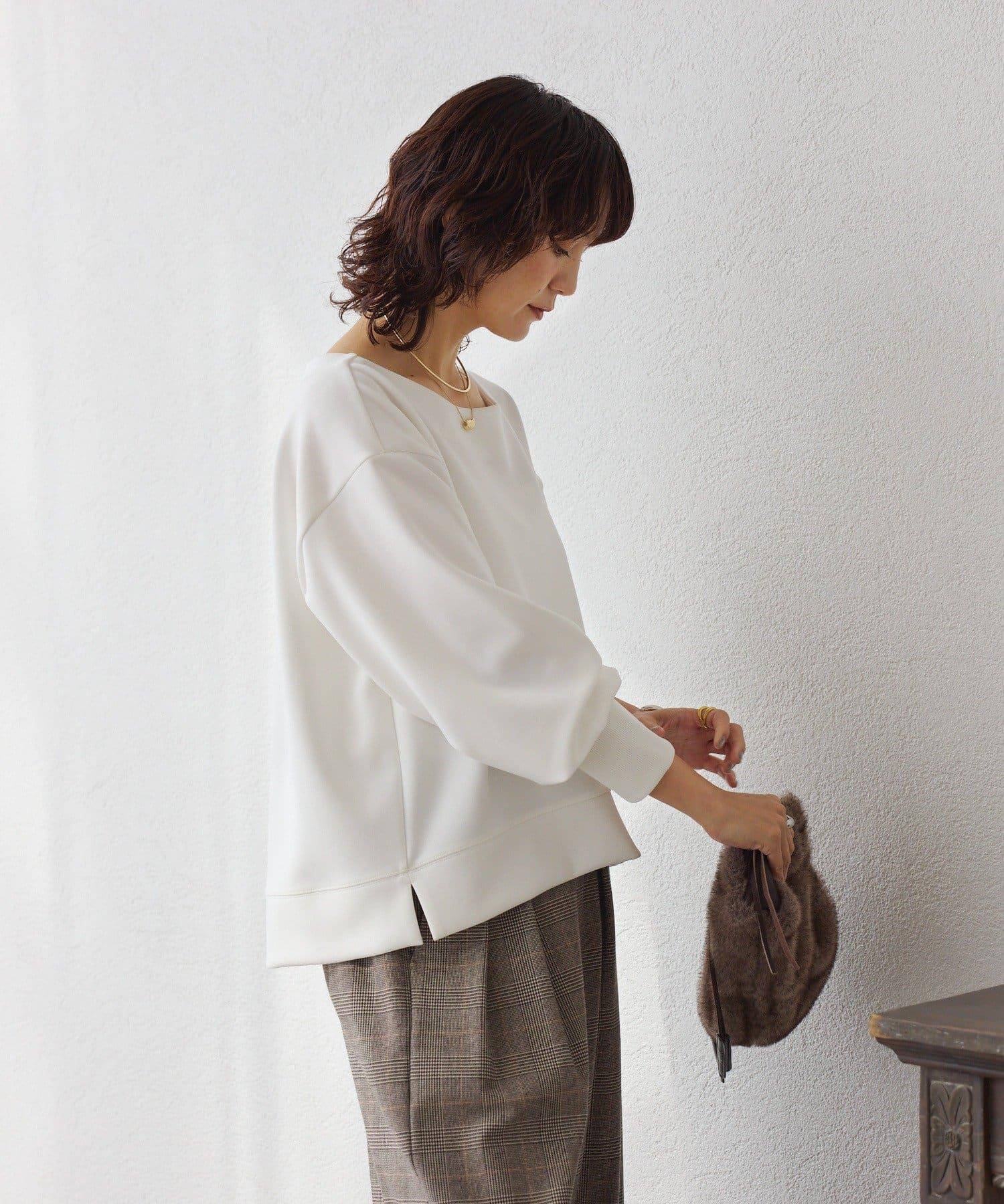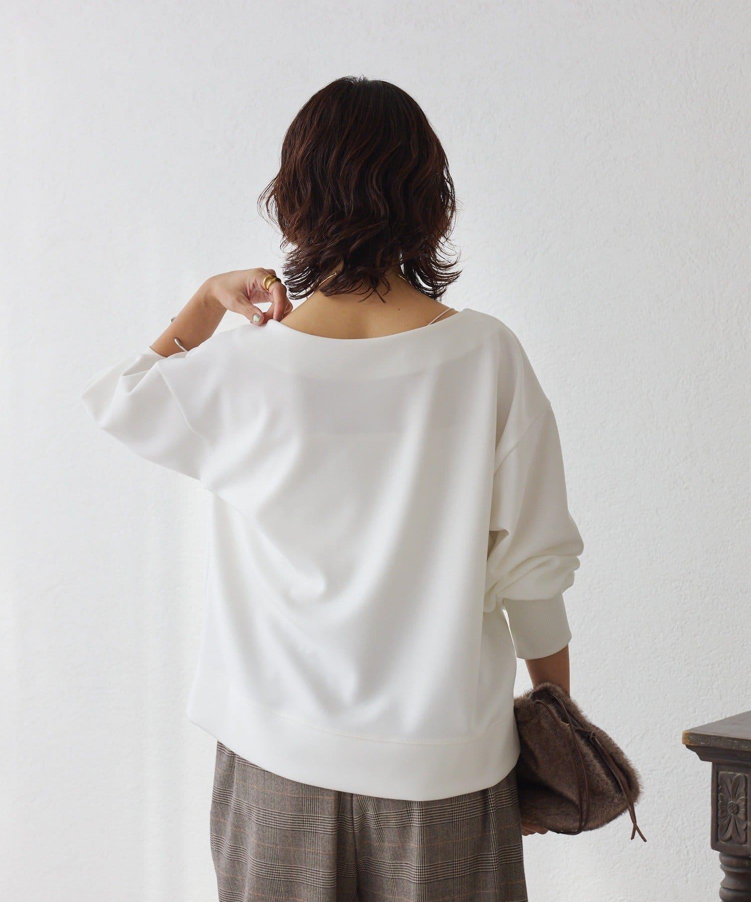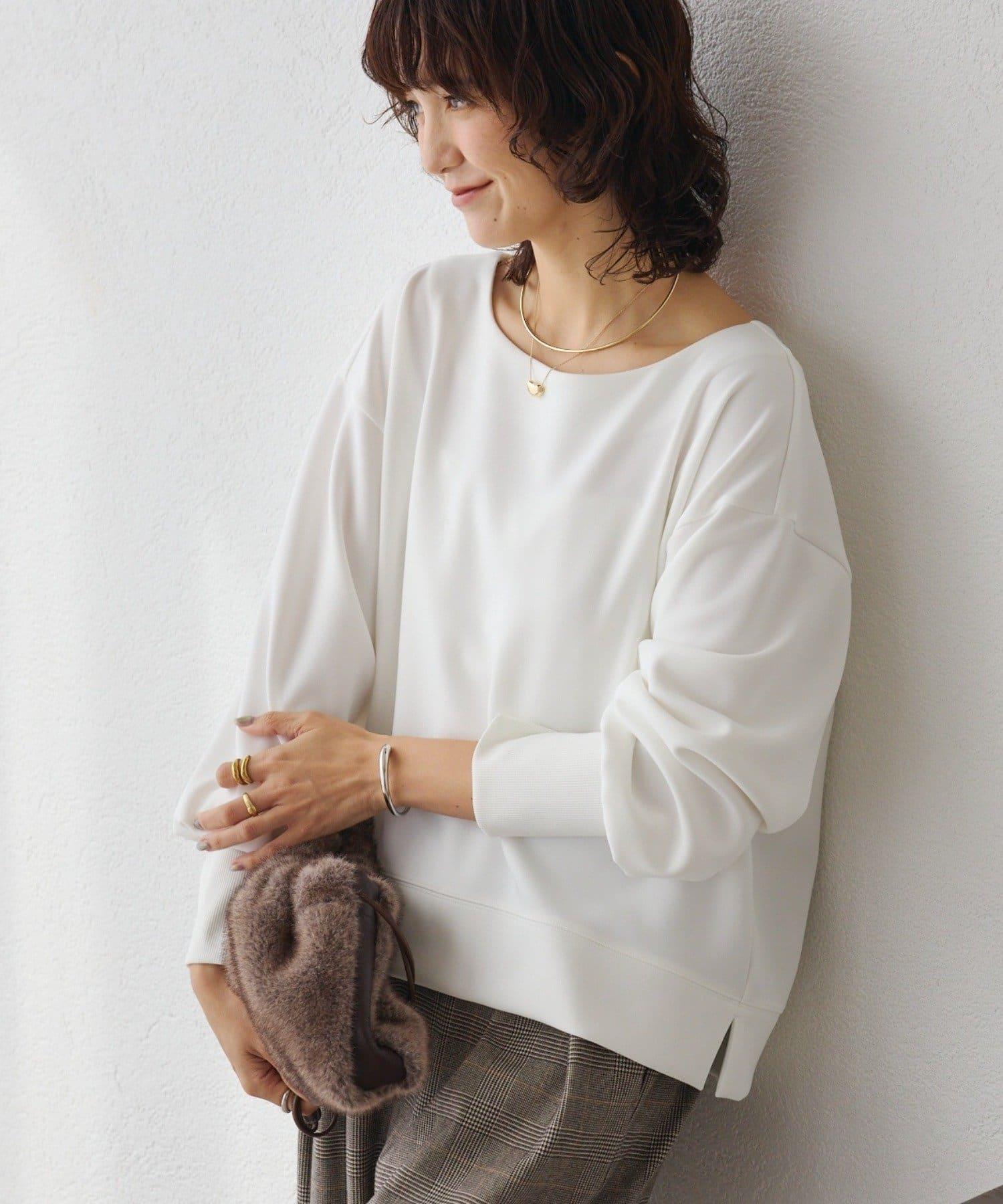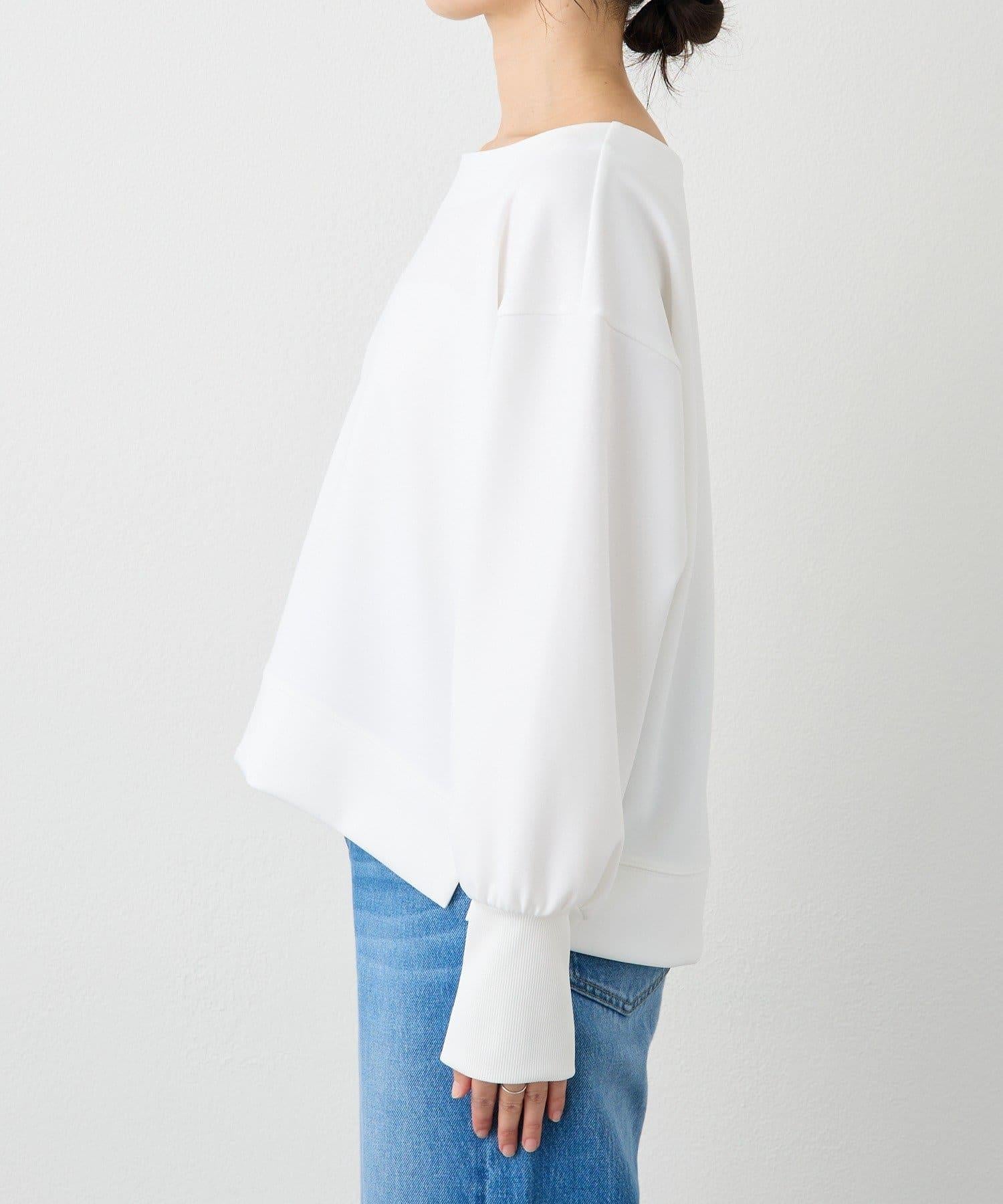 船形領口和袖口開衩設計讓寬鬆的款式更顯女性魅力。