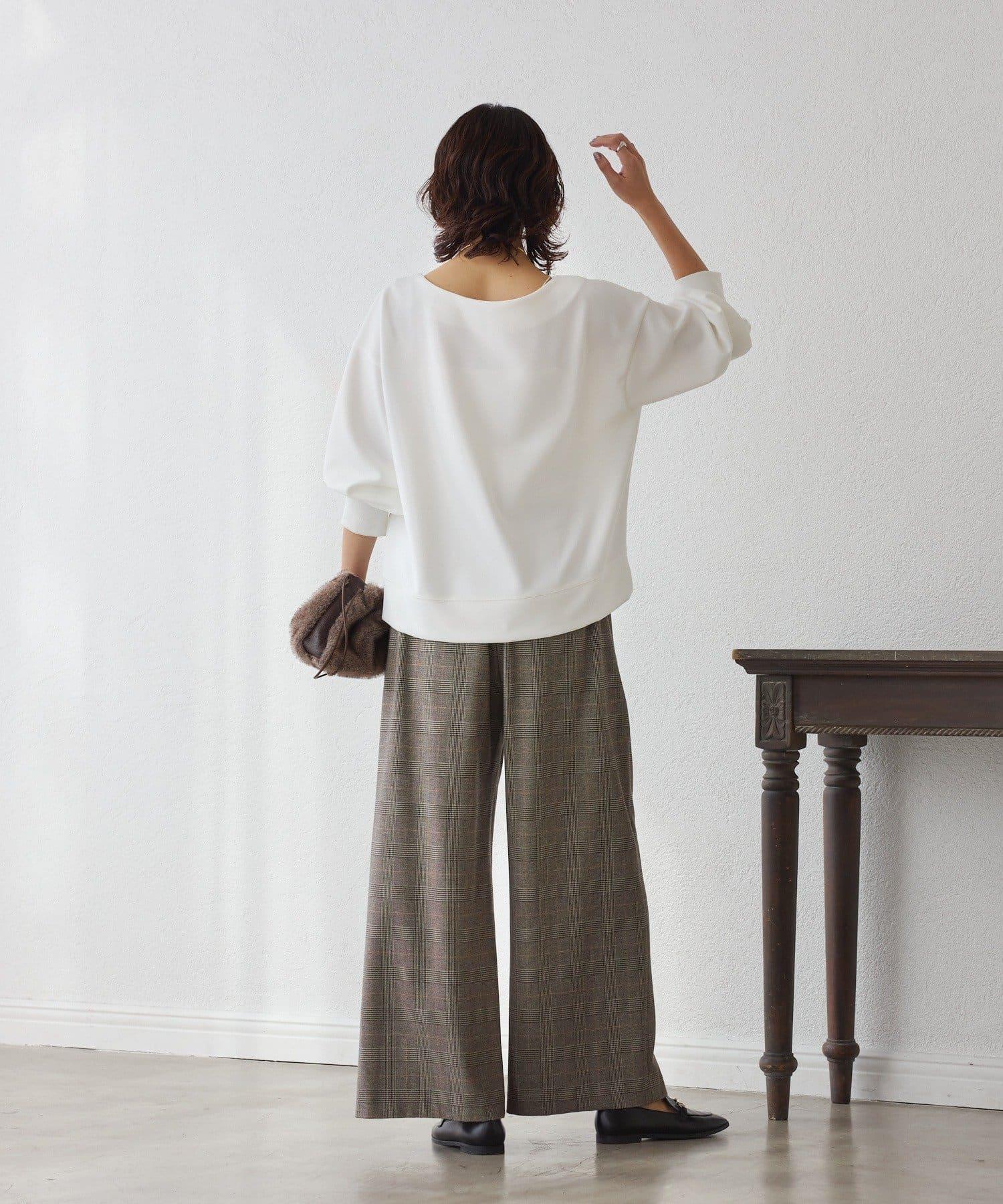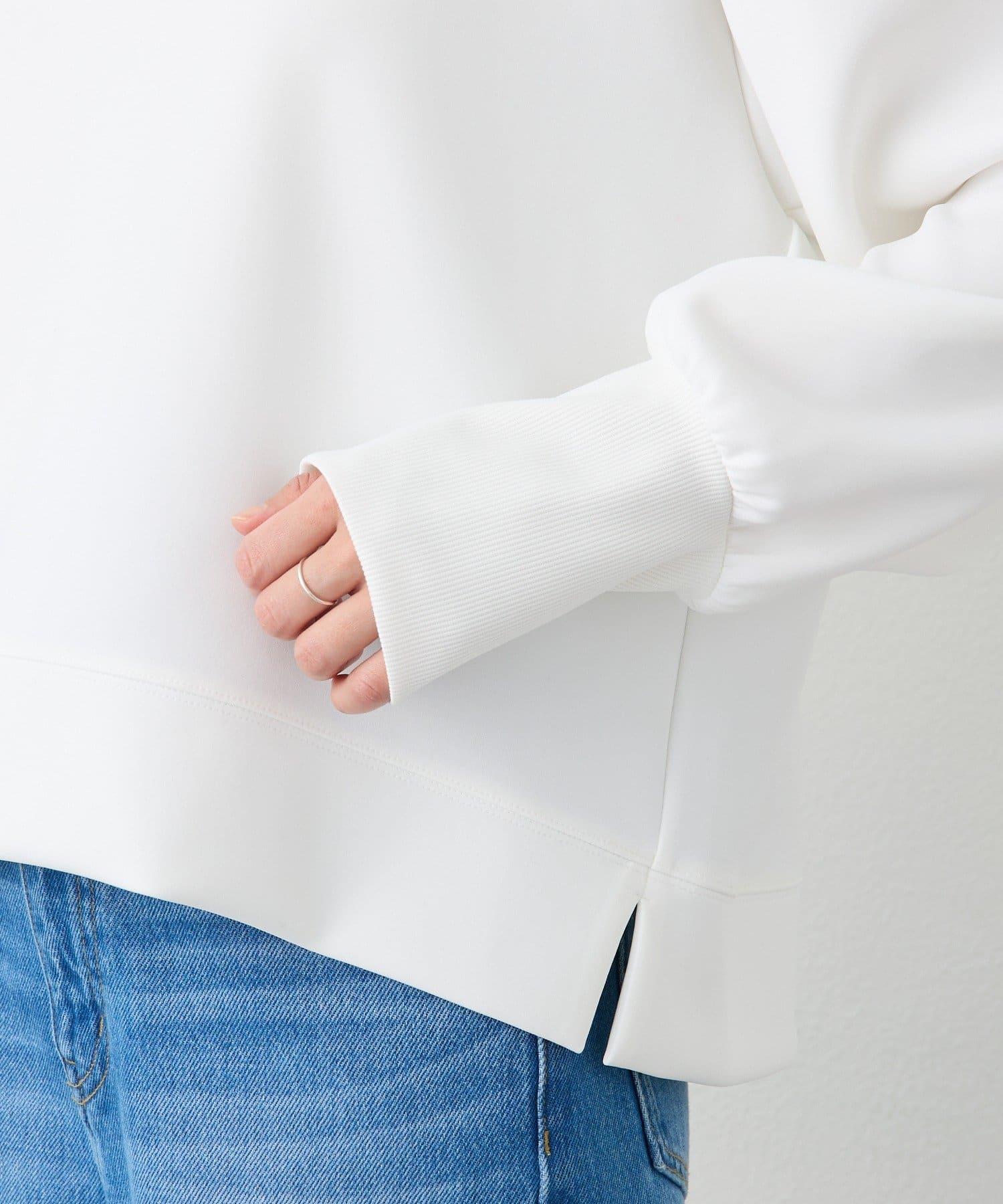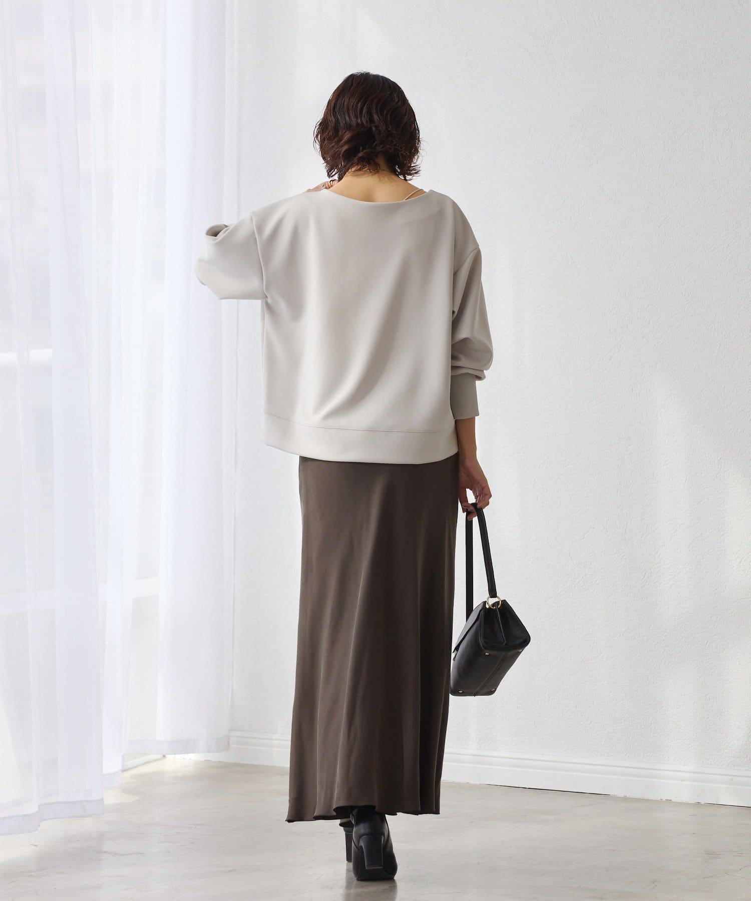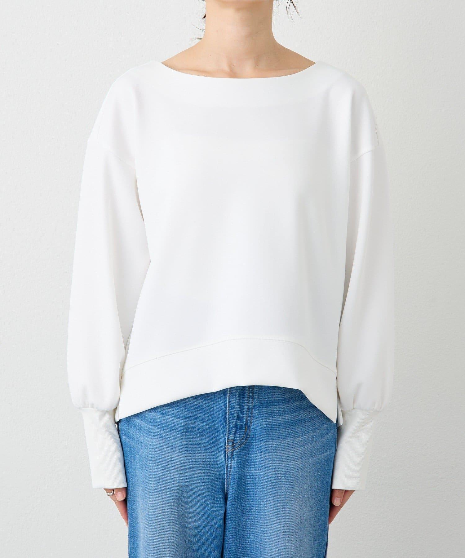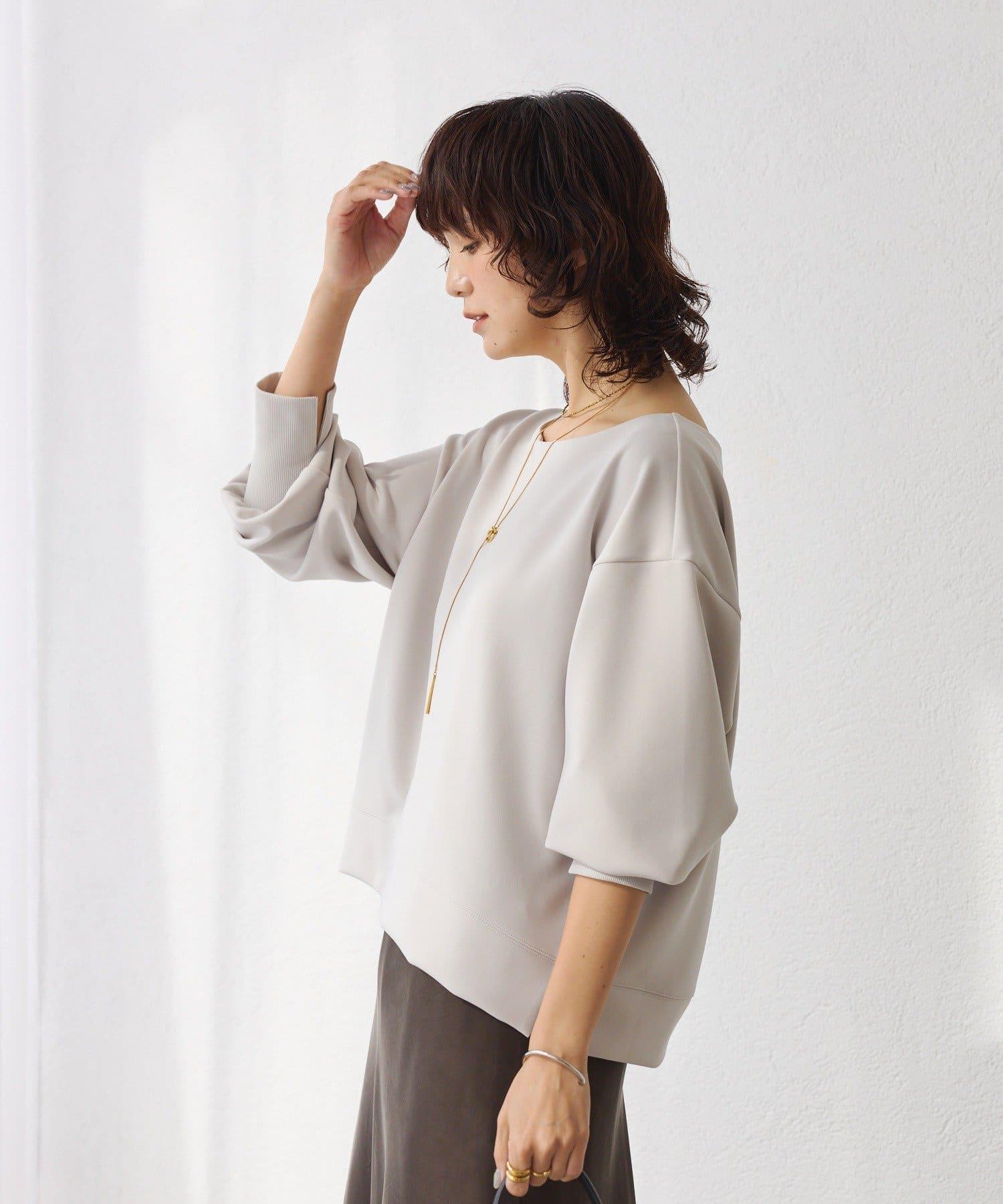 船形領口和袖口開衩設計讓寬鬆的款式更顯女性魅力。