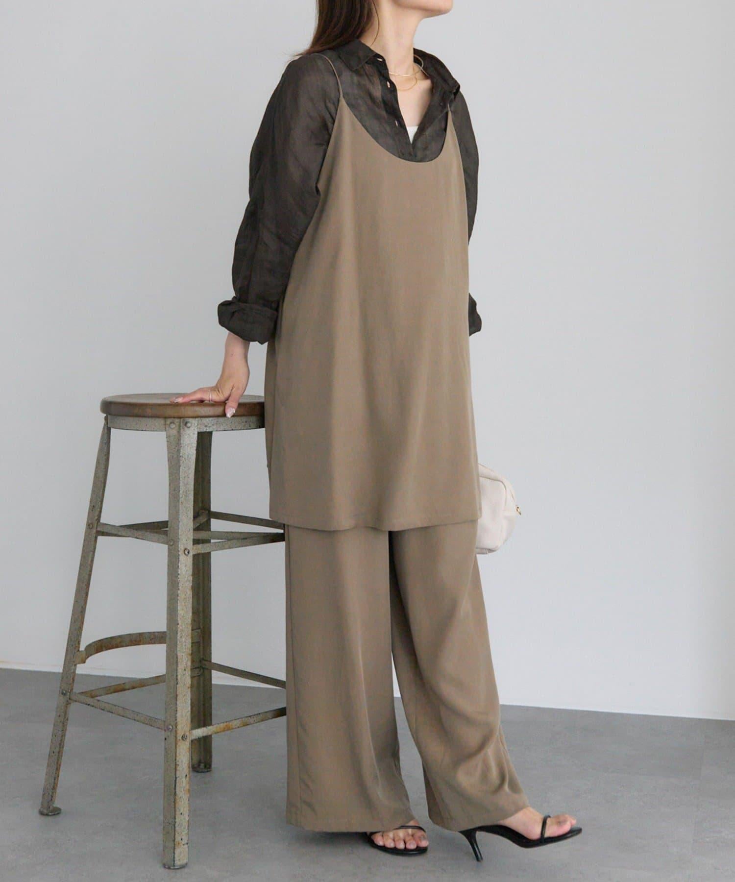 《百搭套裝◎/套裝商品》軟質帆布吊帶長款上衣+褲子套裝