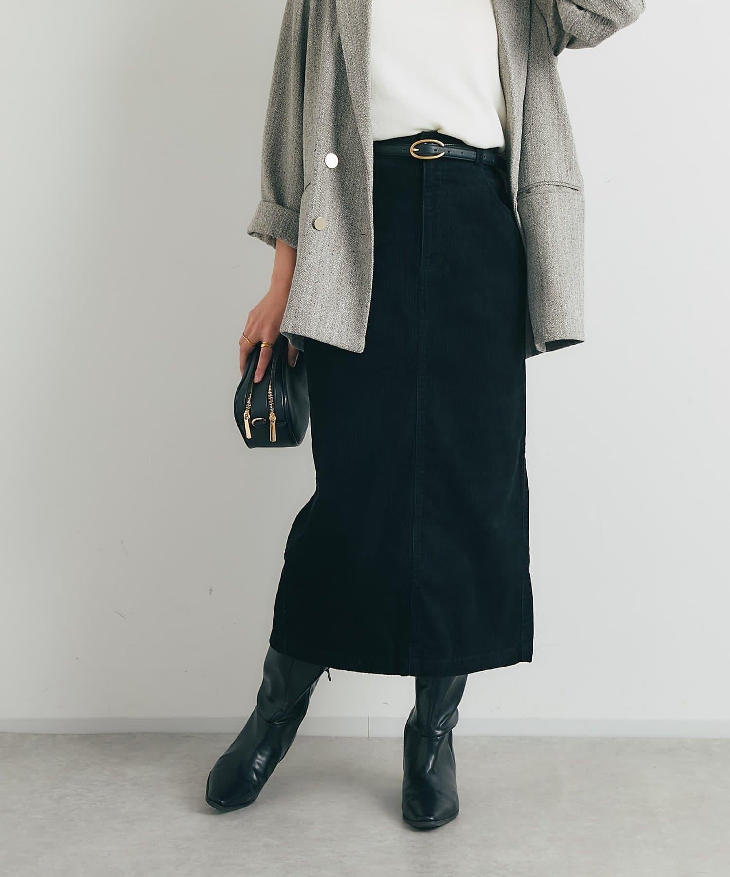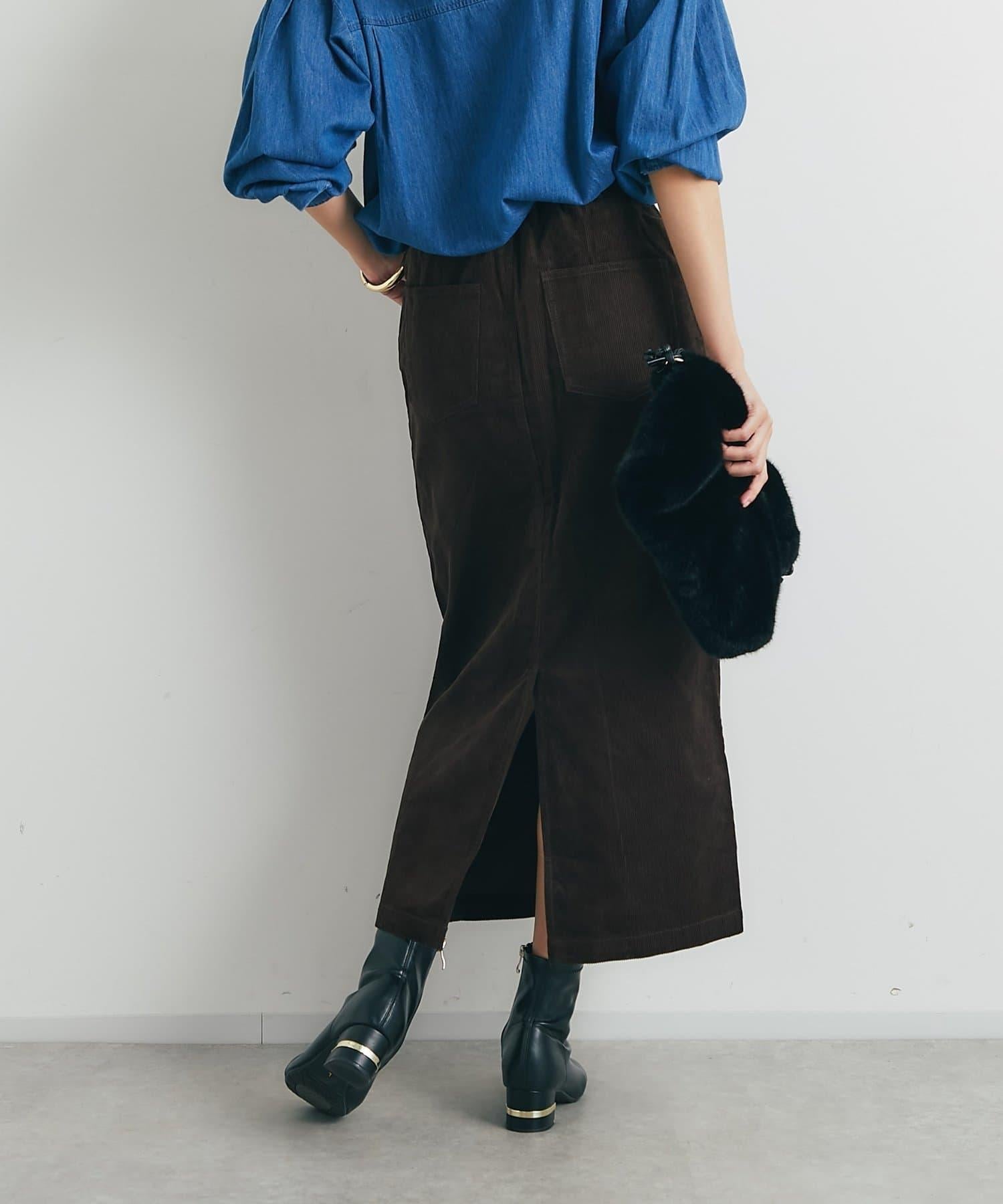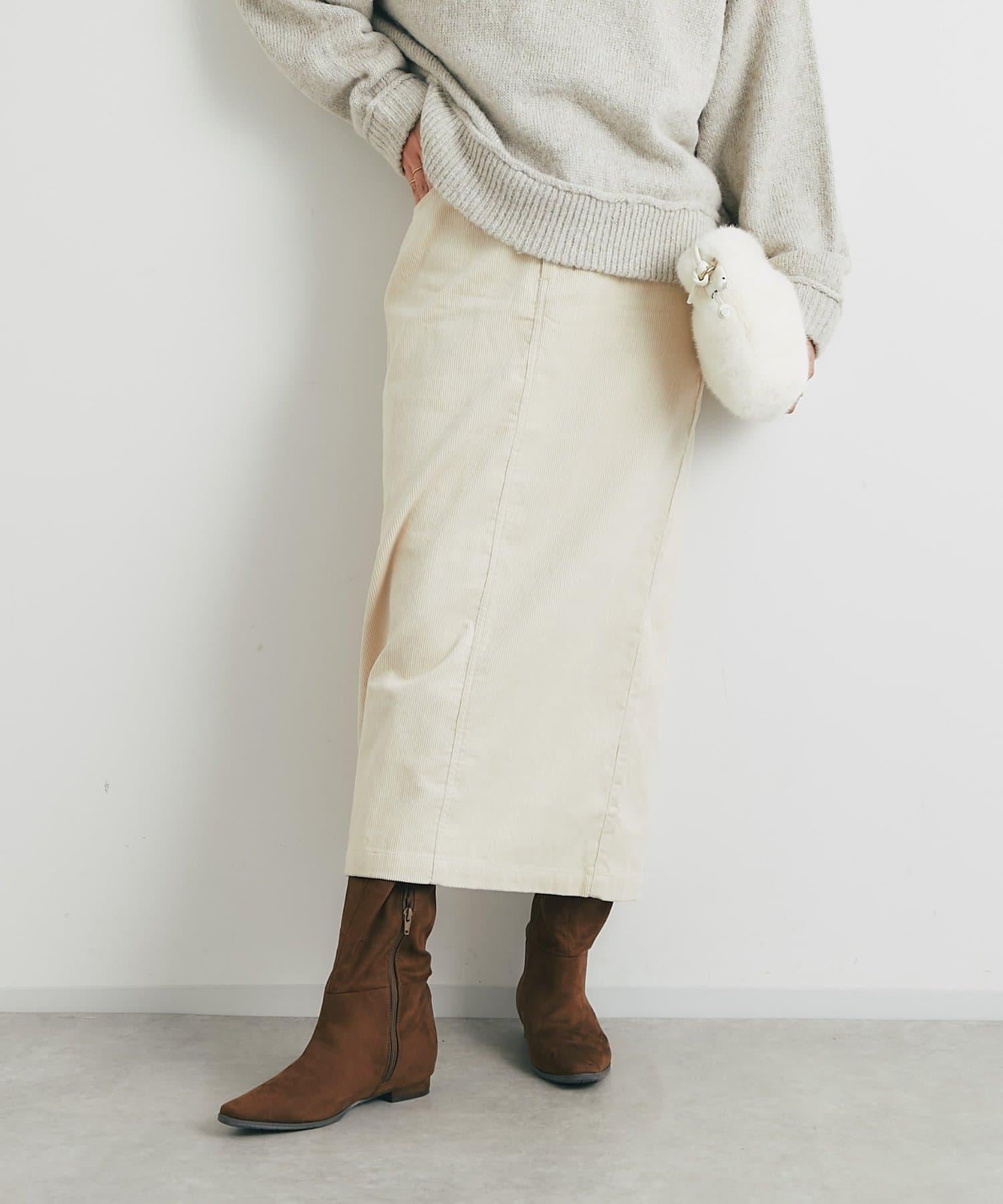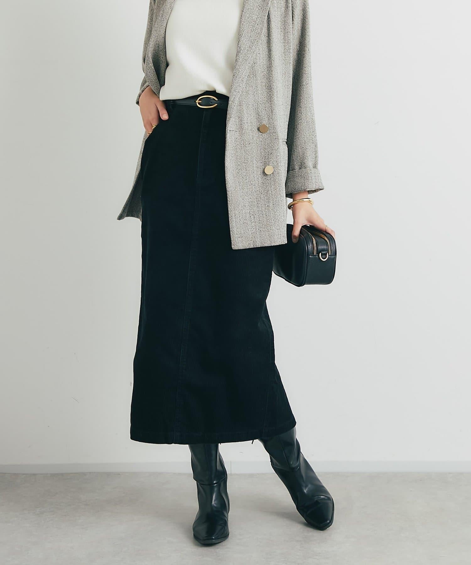 這款裙子的基本設計採用溫暖優雅的燈芯絨面料,適合各種場合穿著。