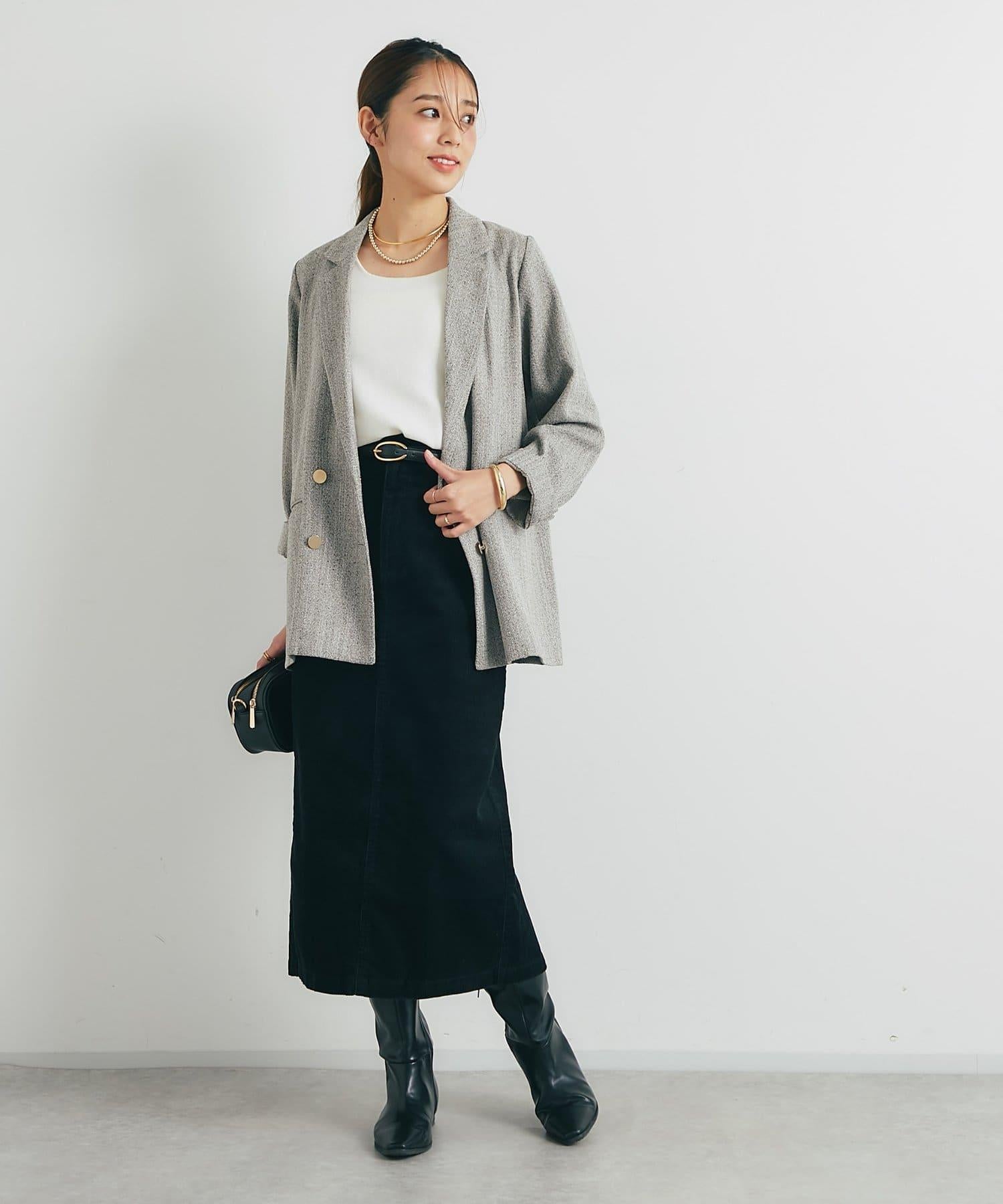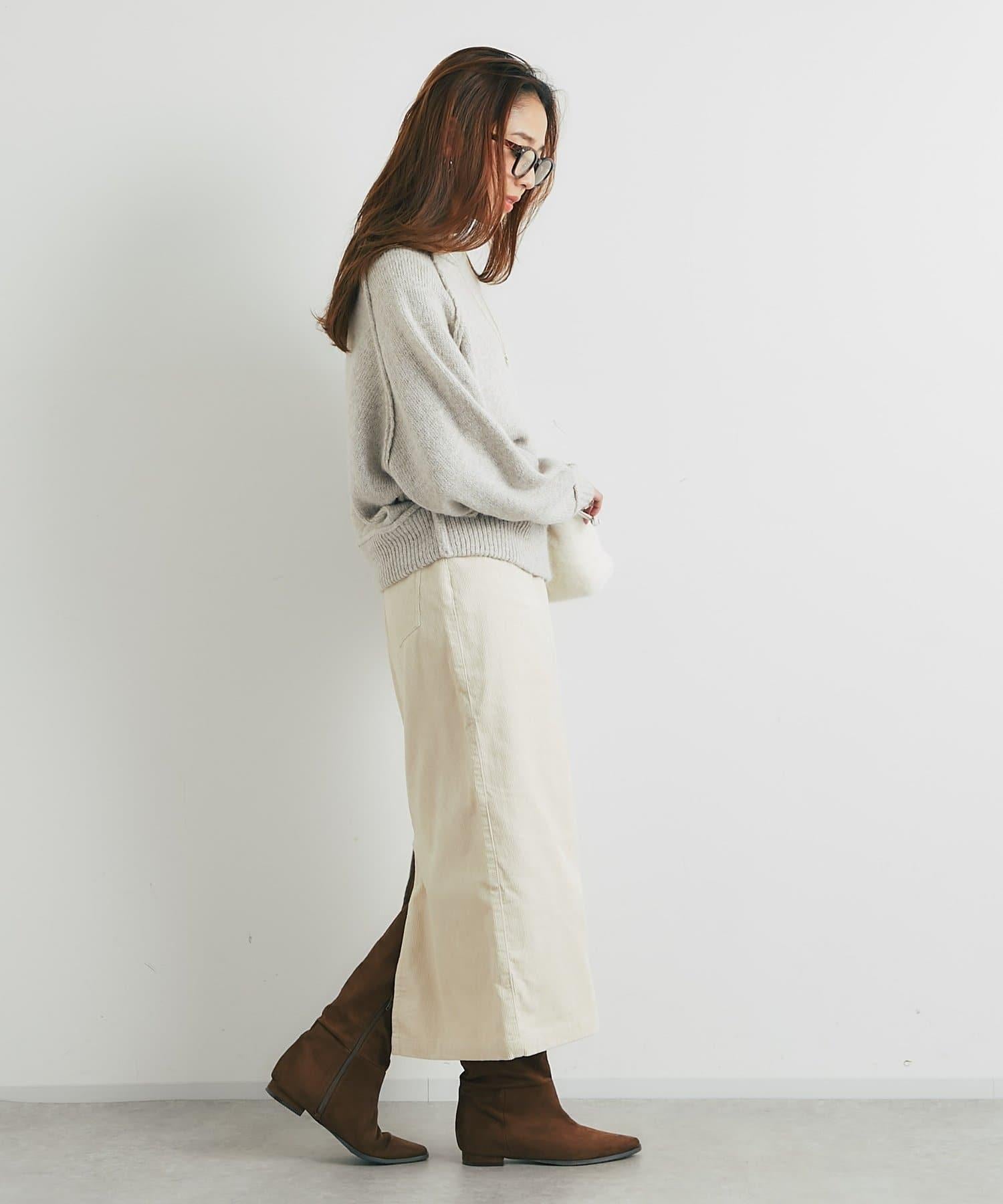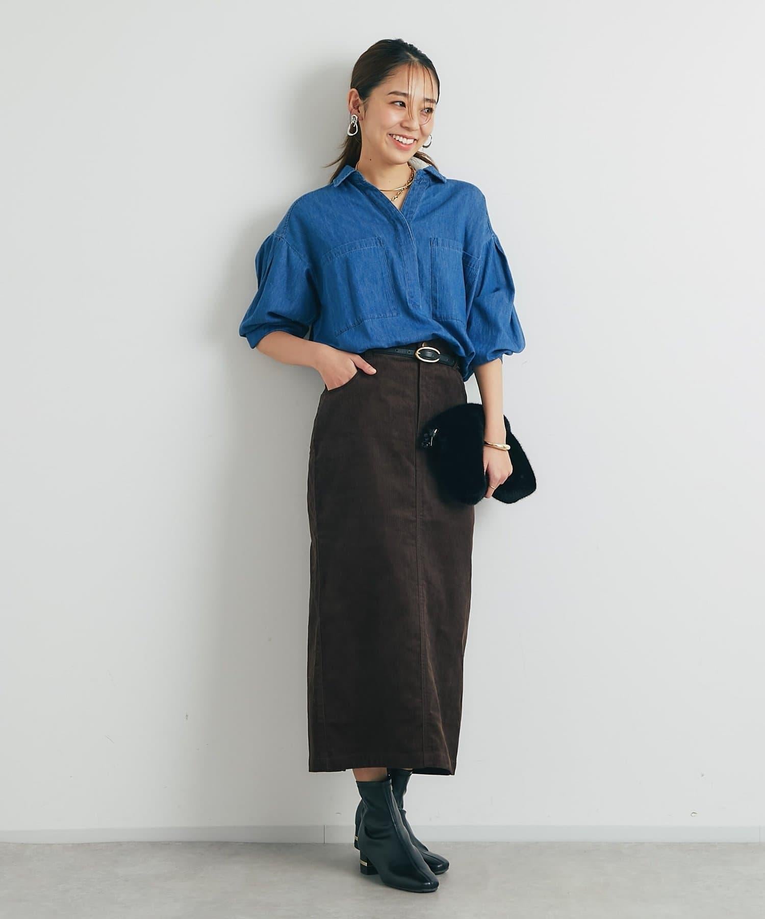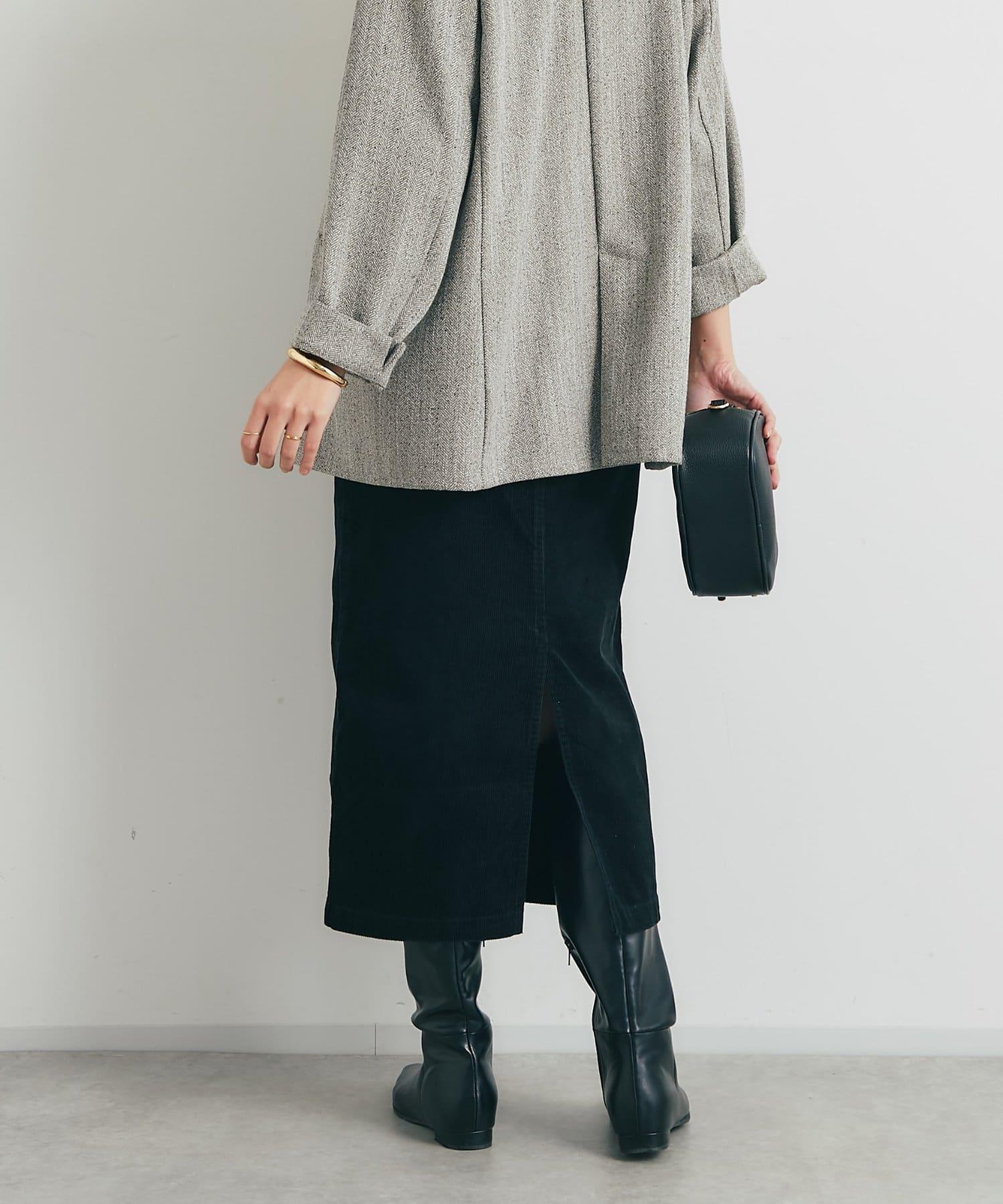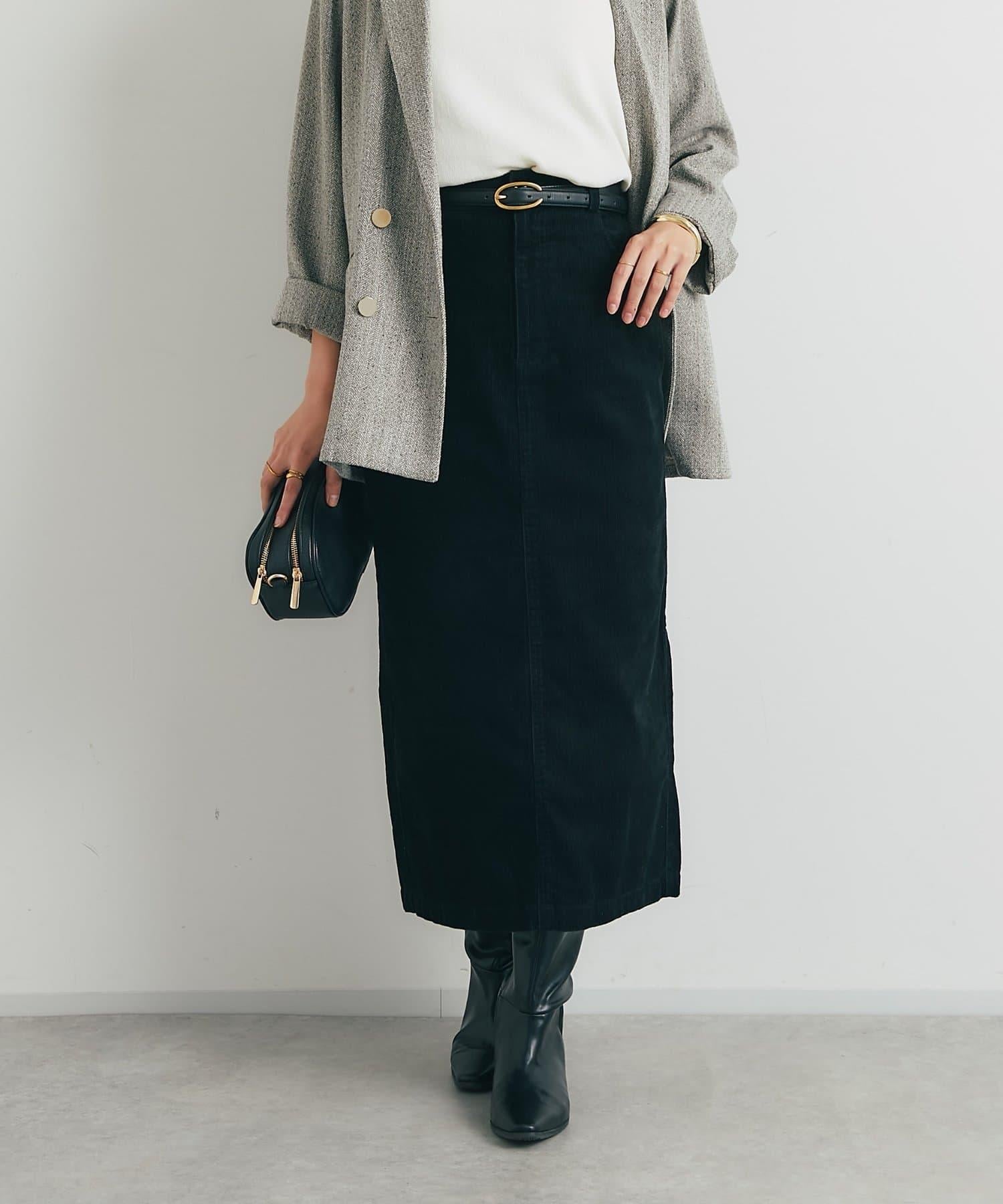 這款裙子的基本設計採用溫暖優雅的燈芯絨面料,適合各種場合穿著。