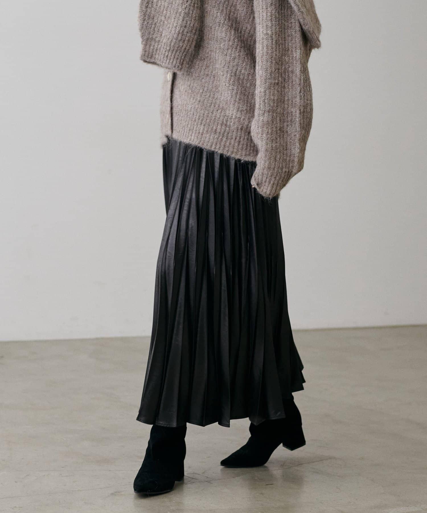 風琴式百褶裙由合成革製成,具有強烈的存在感。