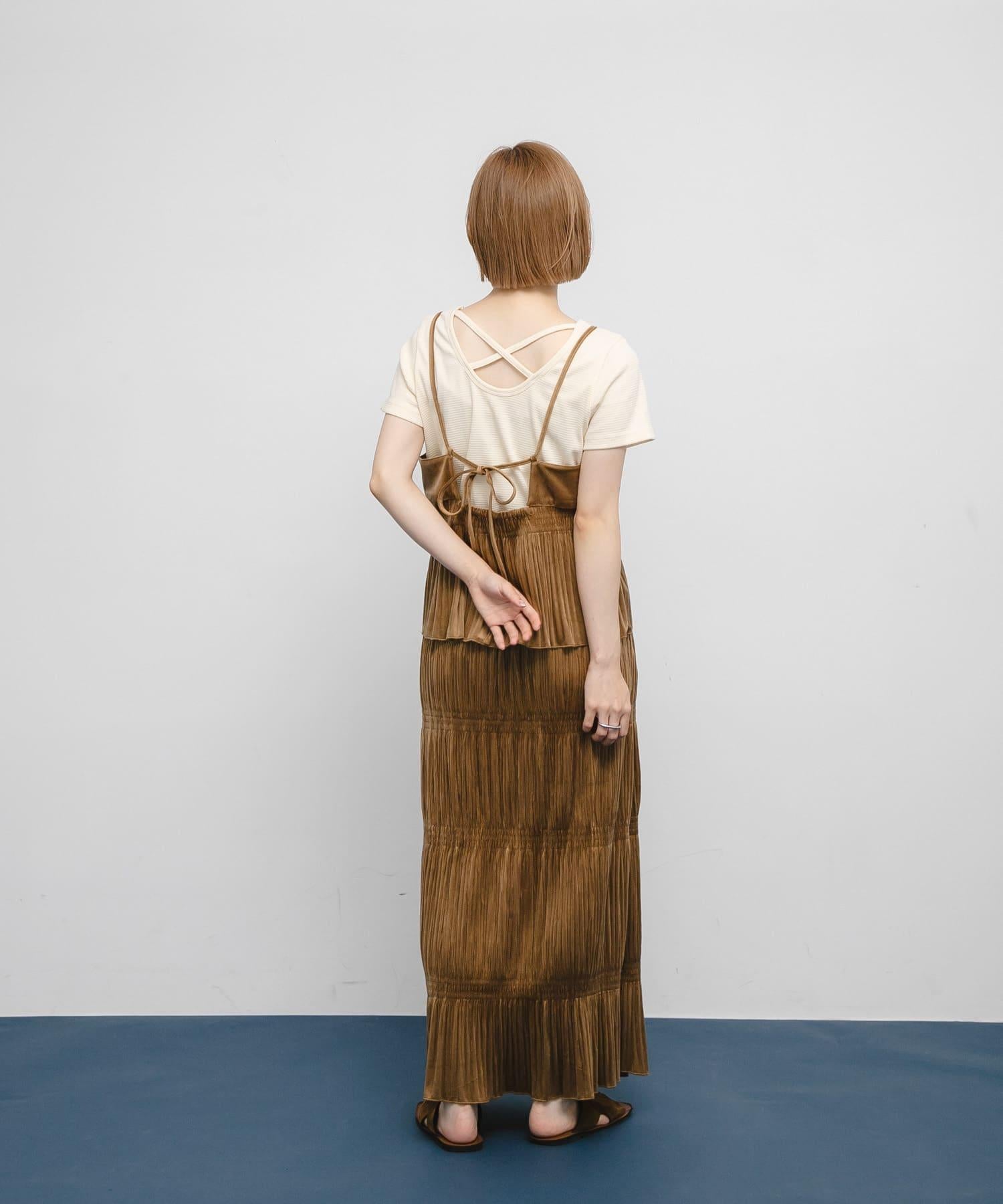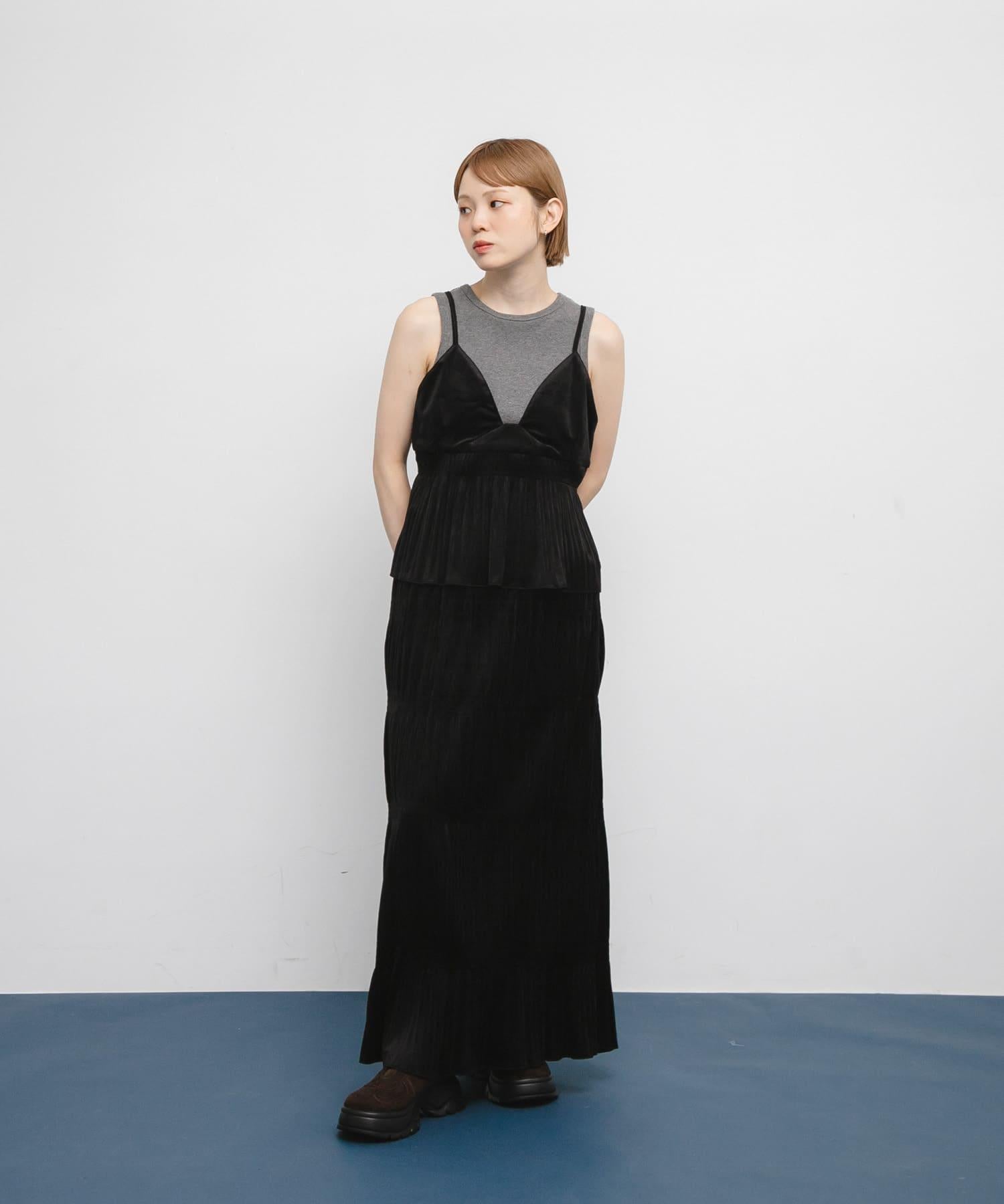 百褶拼接連衣裙