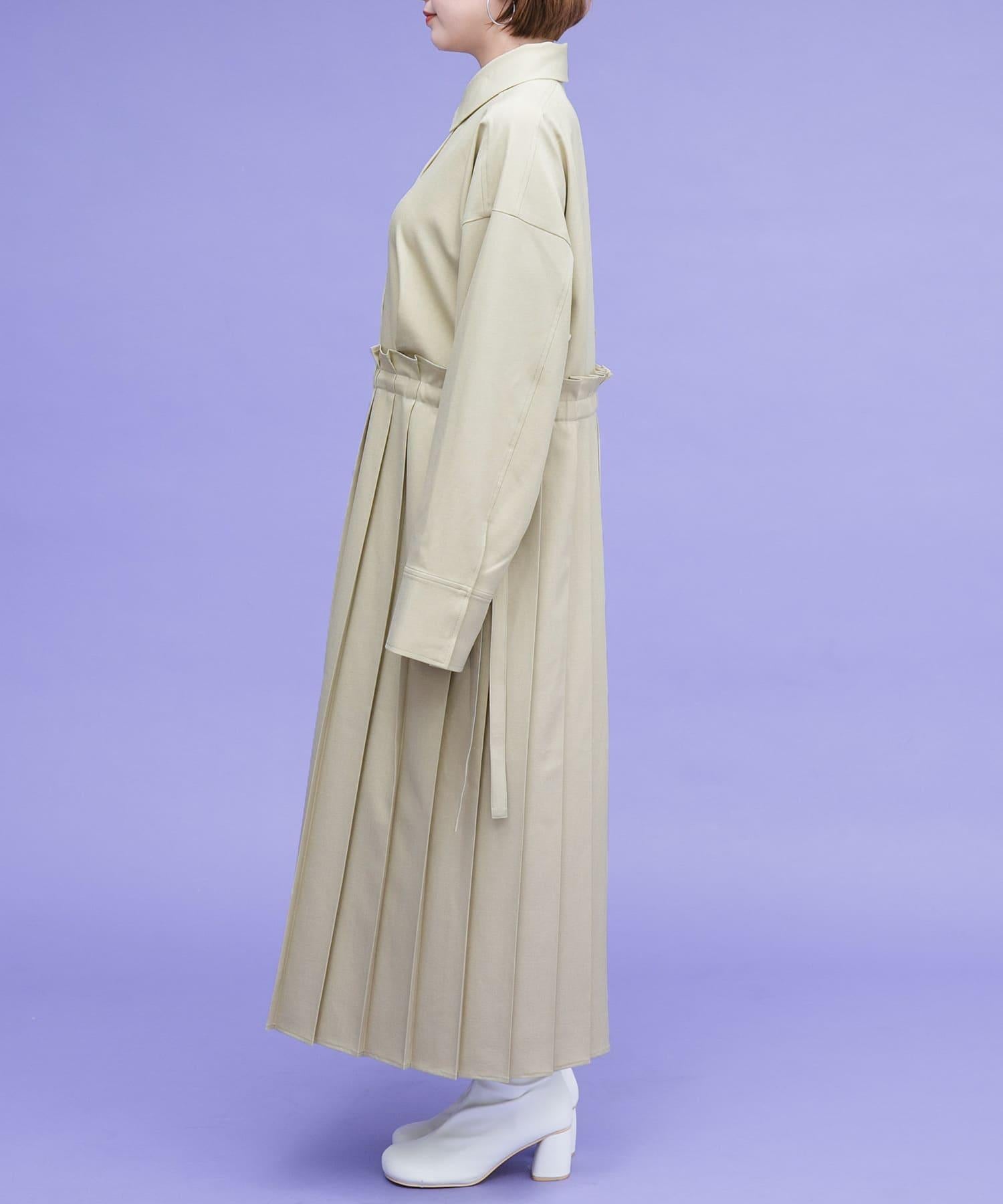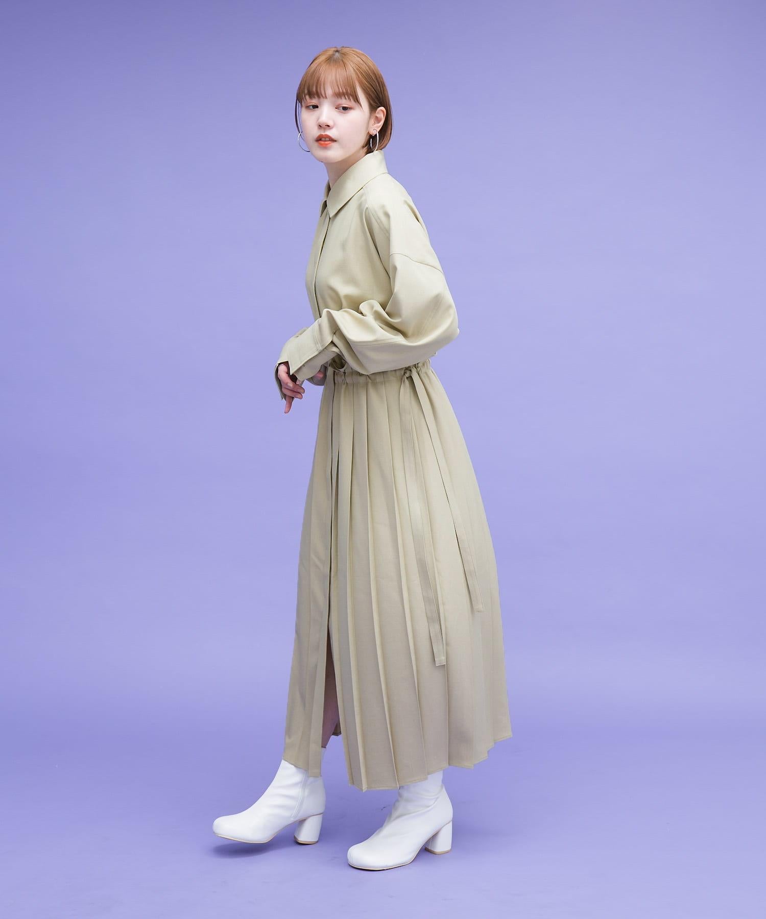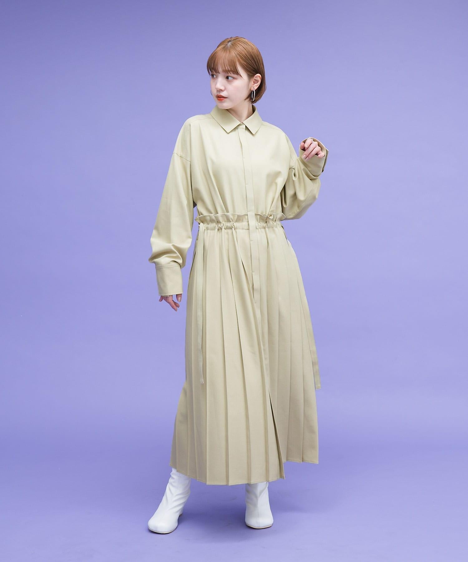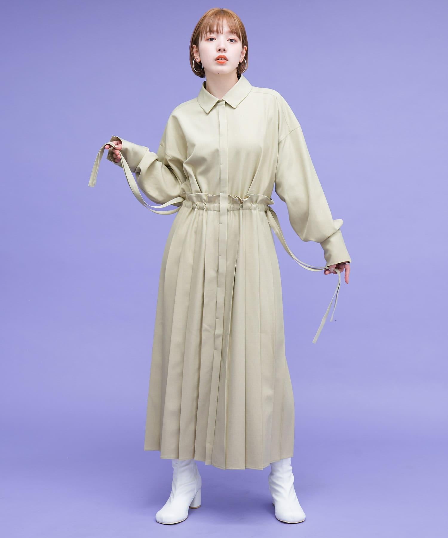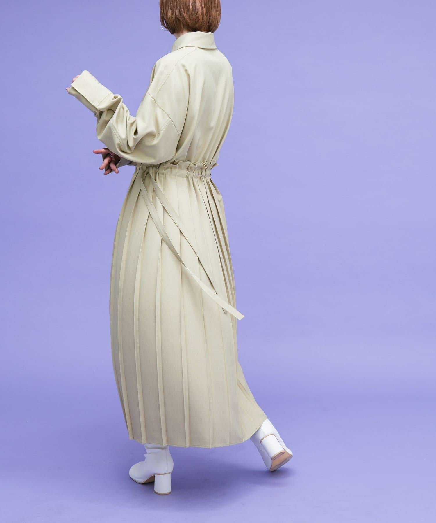 這款連衣裙的面料是春天般的亞麻面料。百褶裙式的設計給人一種淑女的印象。腰部的繫帶可以系出瀏覽式的輪廓。