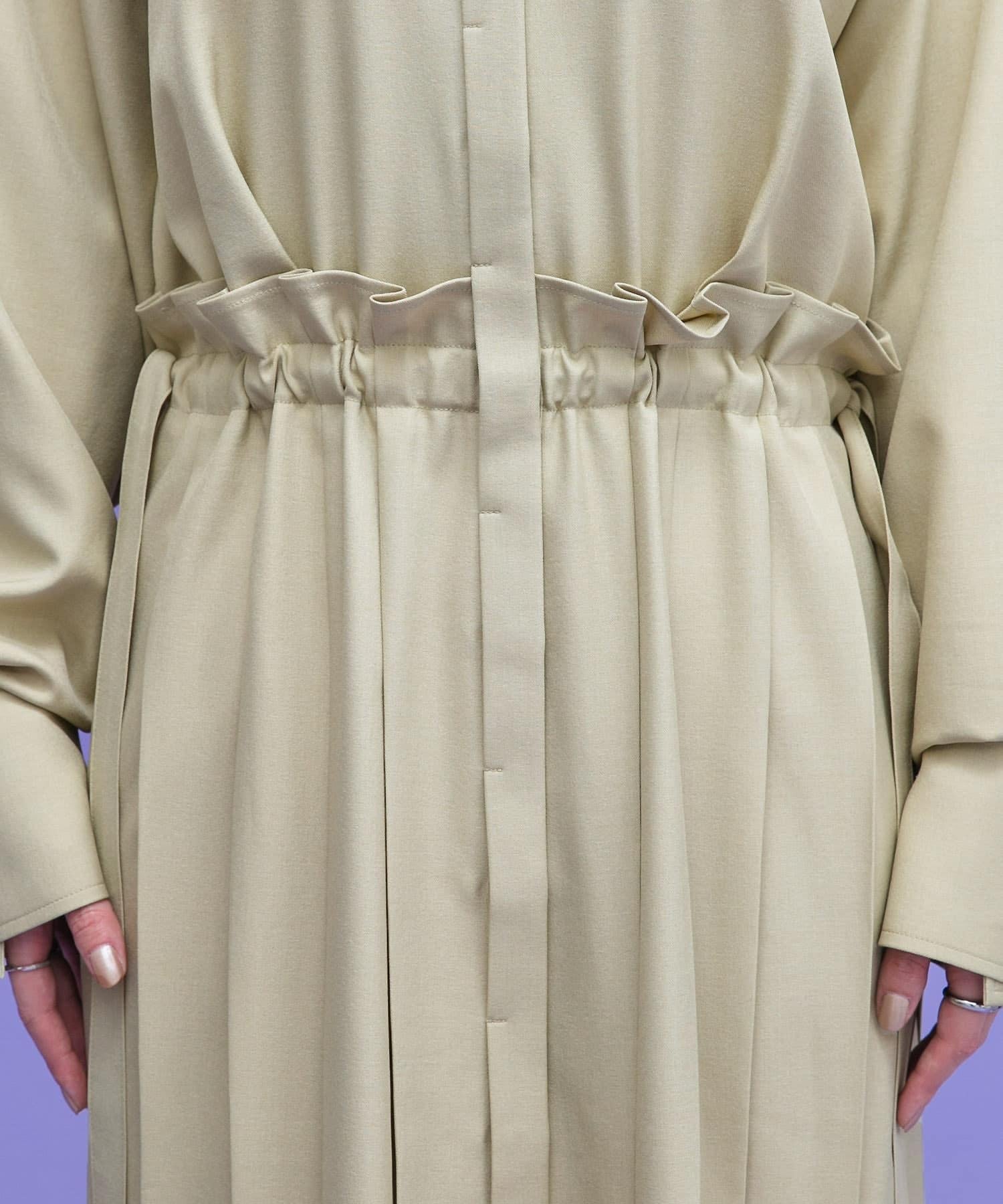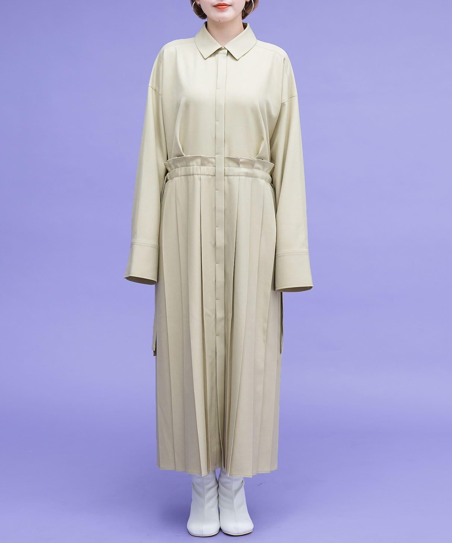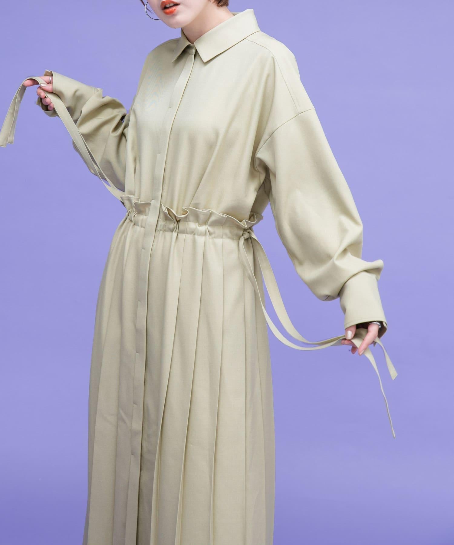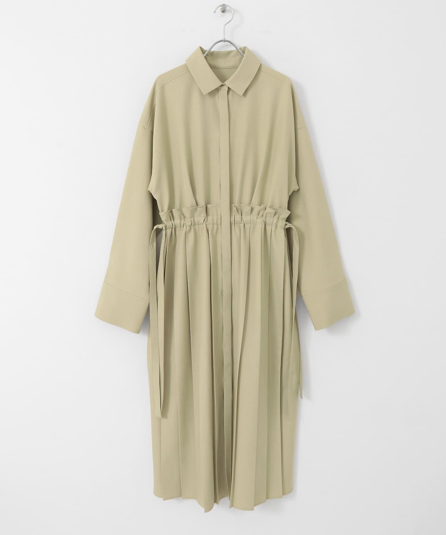 這款連衣裙的面料是春天般的亞麻面料。百褶裙式的設計給人一種淑女的印象。腰部的繫帶可以系出瀏覽式的輪廓。
