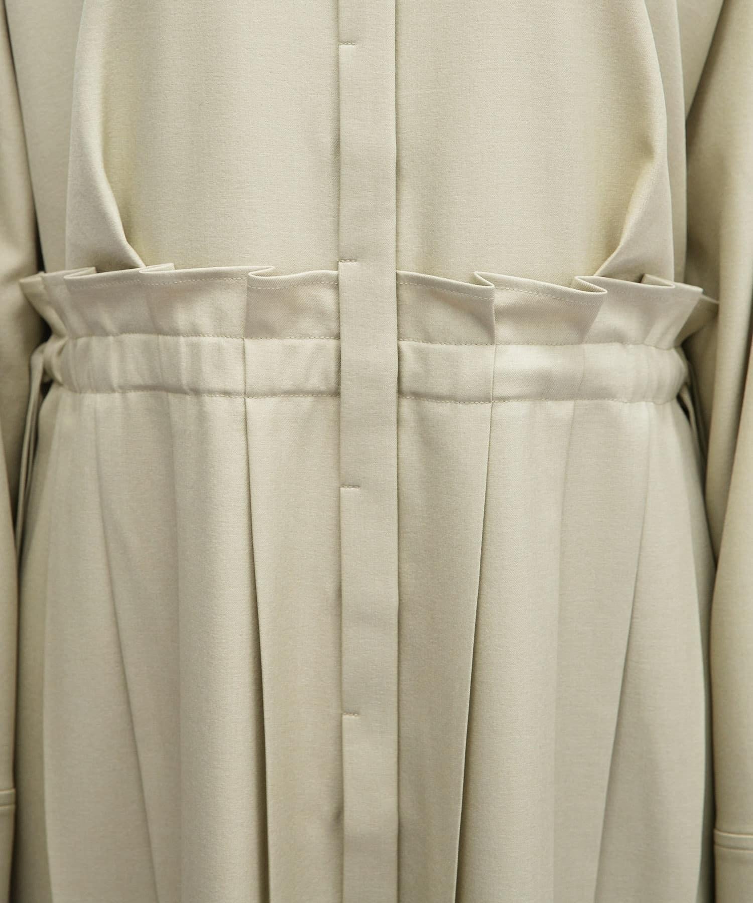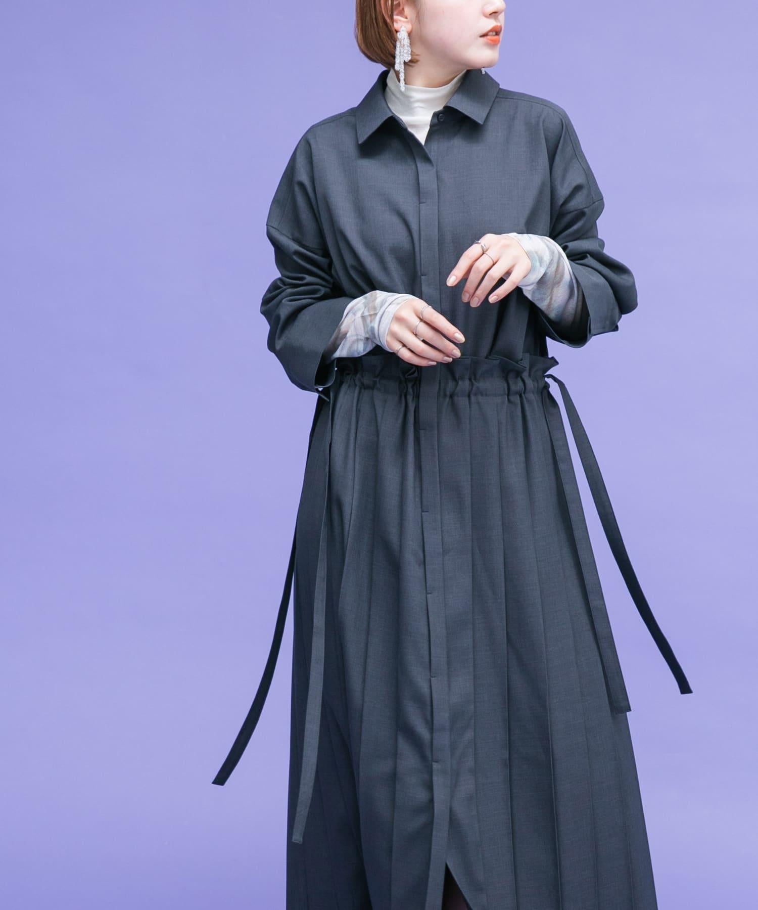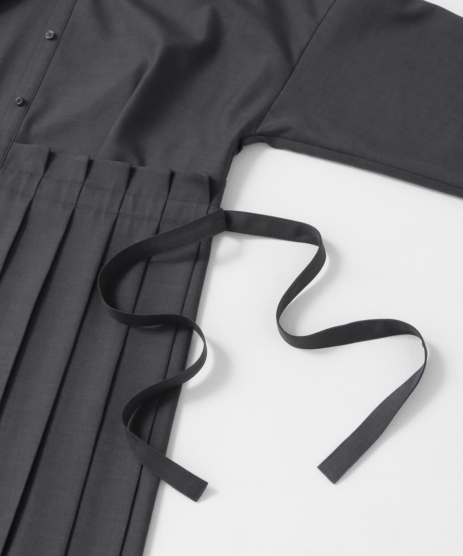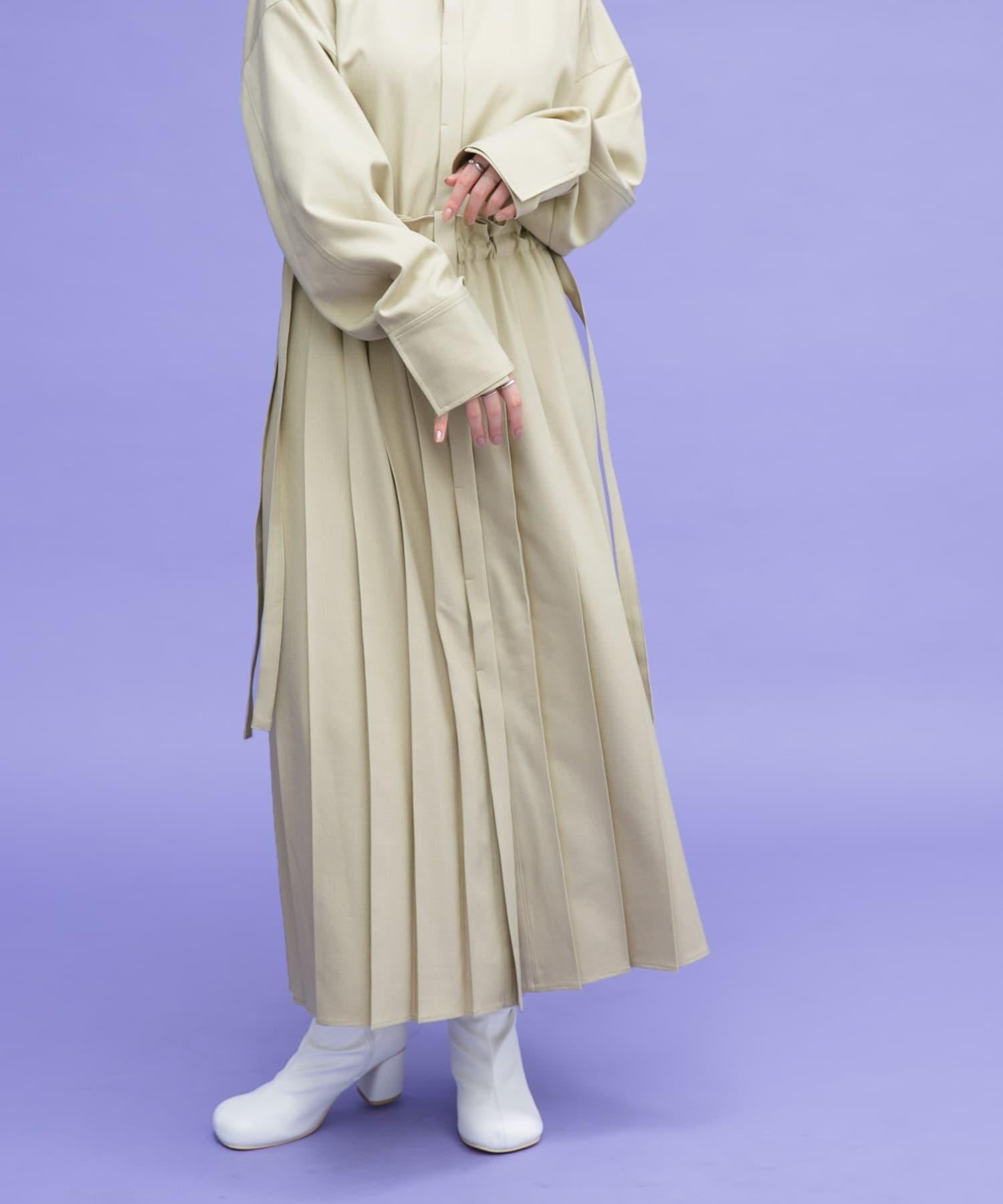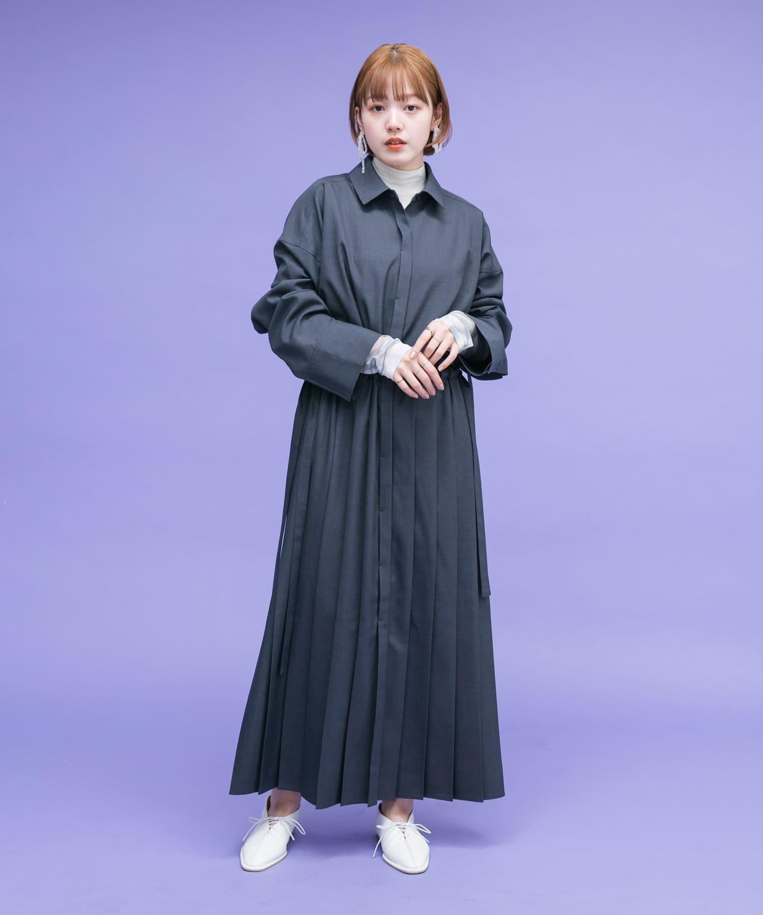 這款連衣裙的面料是春天般的亞麻面料。百褶裙式的設計給人一種淑女的印象。腰部的繫帶可以系出瀏覽式的輪廓。