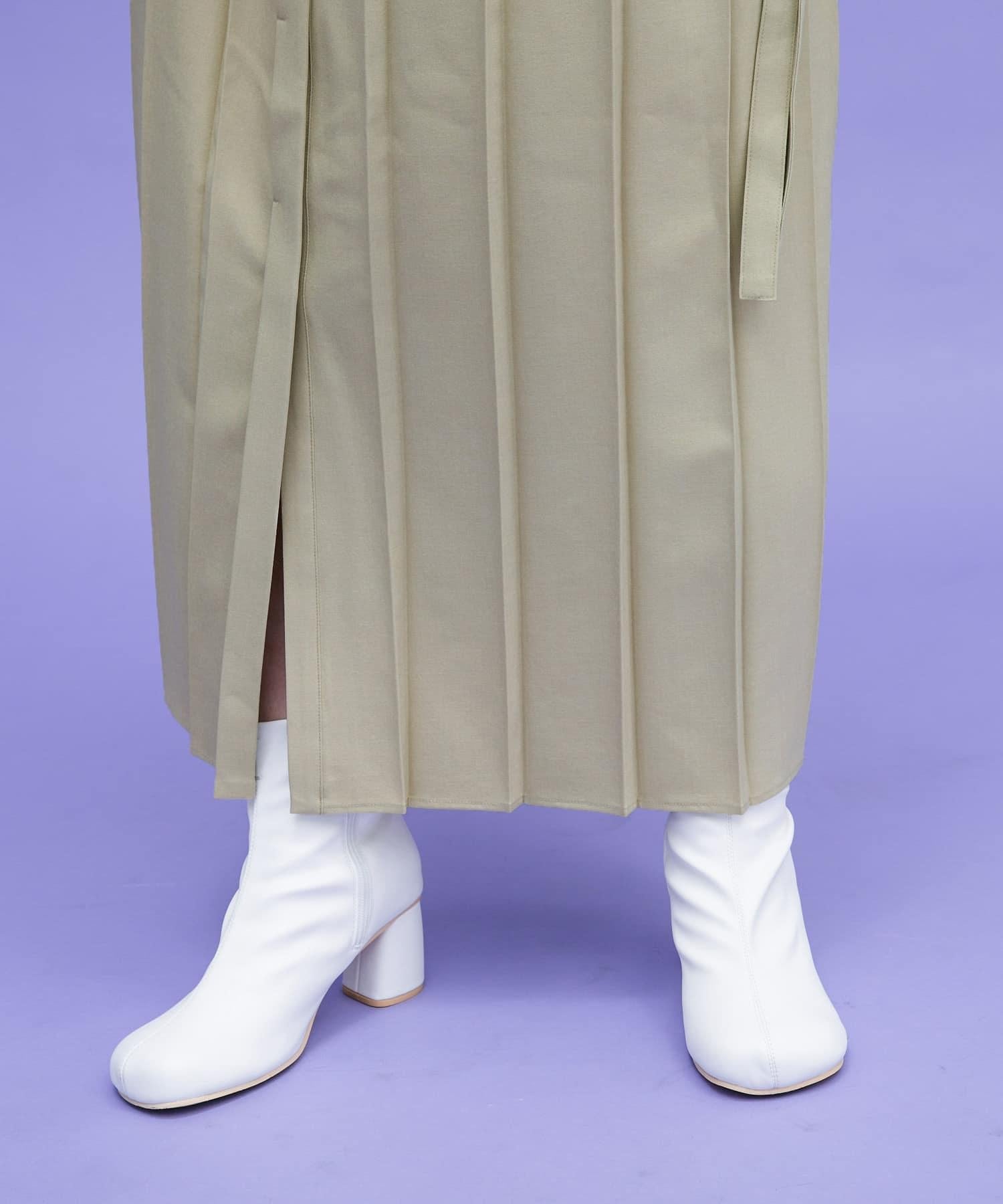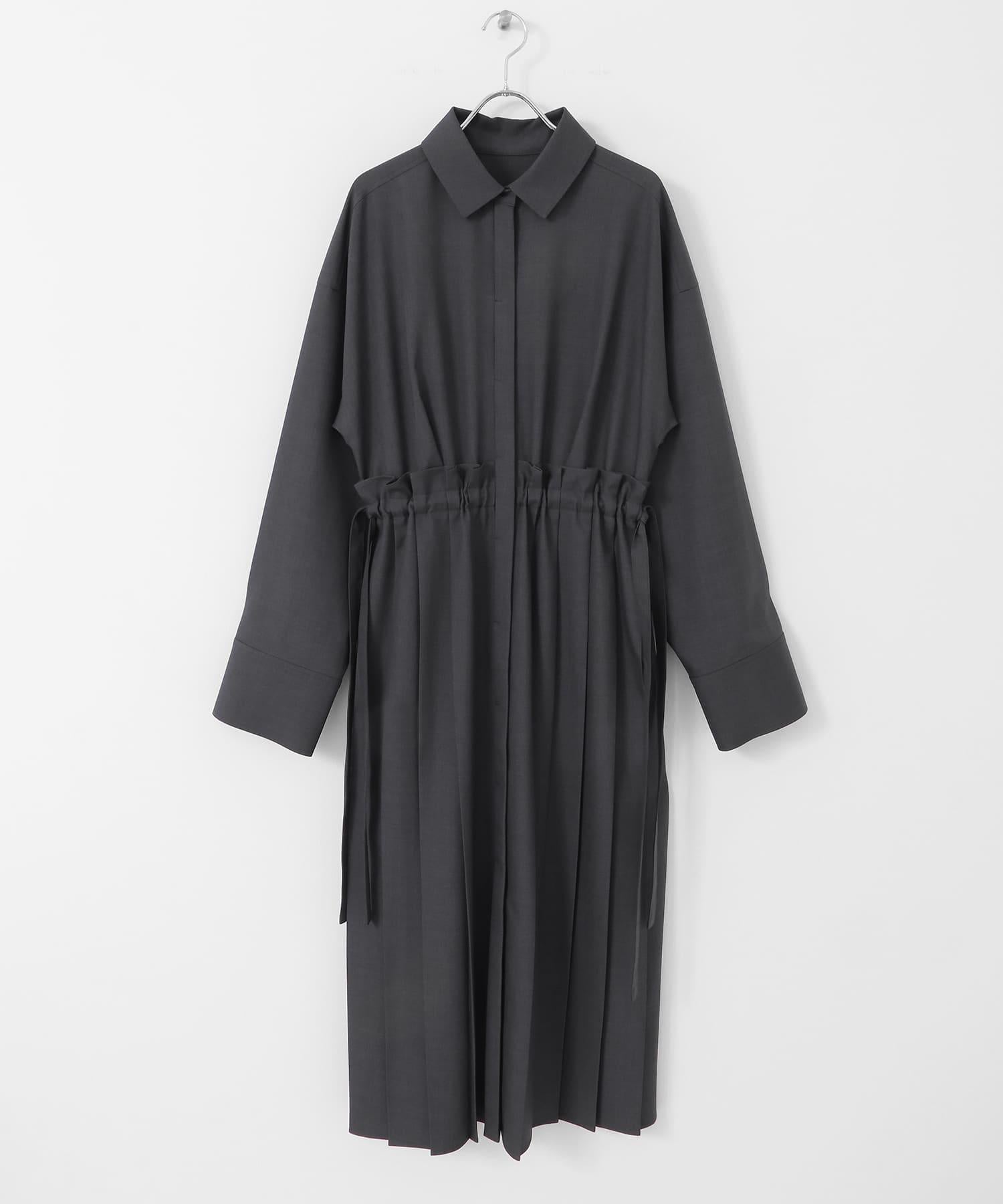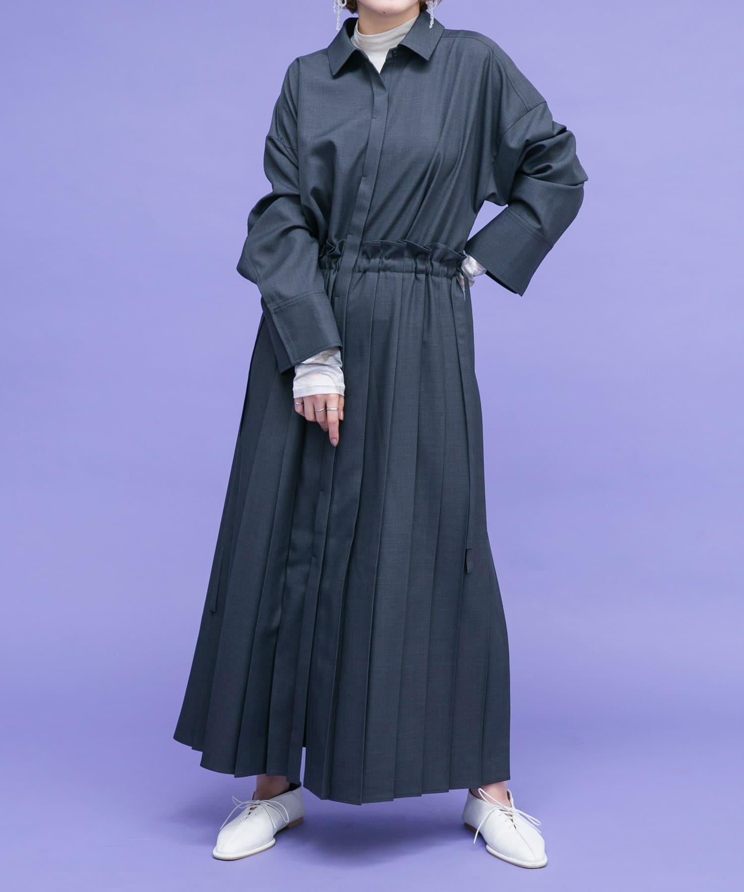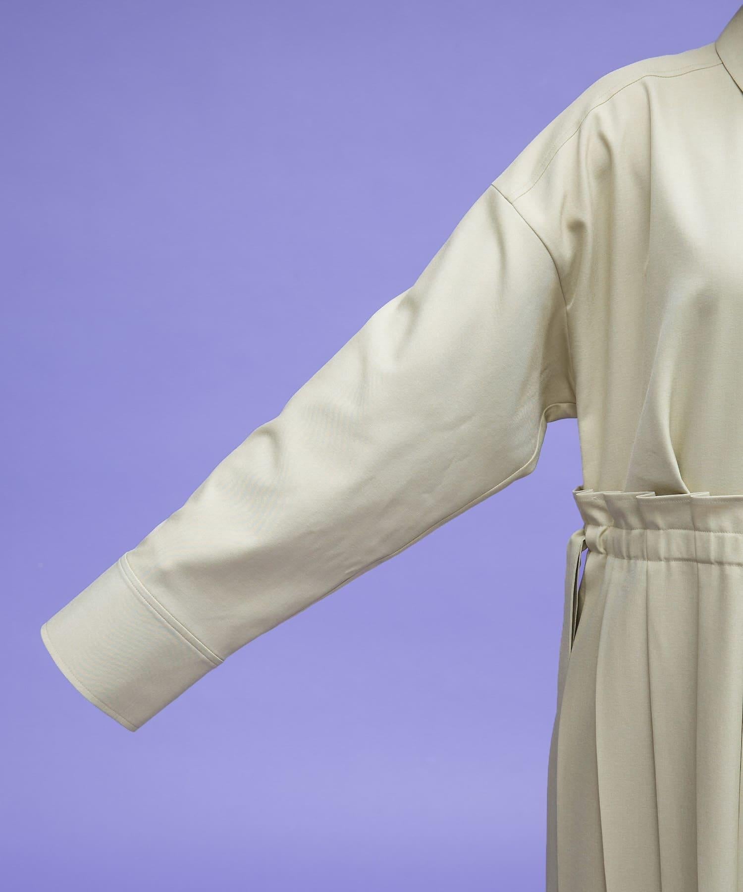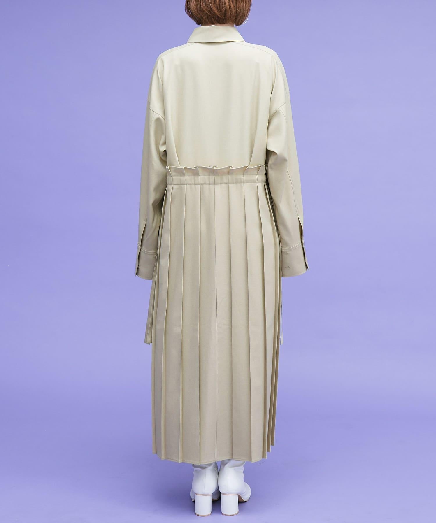 這款連衣裙的面料是春天般的亞麻面料。百褶裙式的設計給人一種淑女的印象。腰部的繫帶可以系出瀏覽式的輪廓。