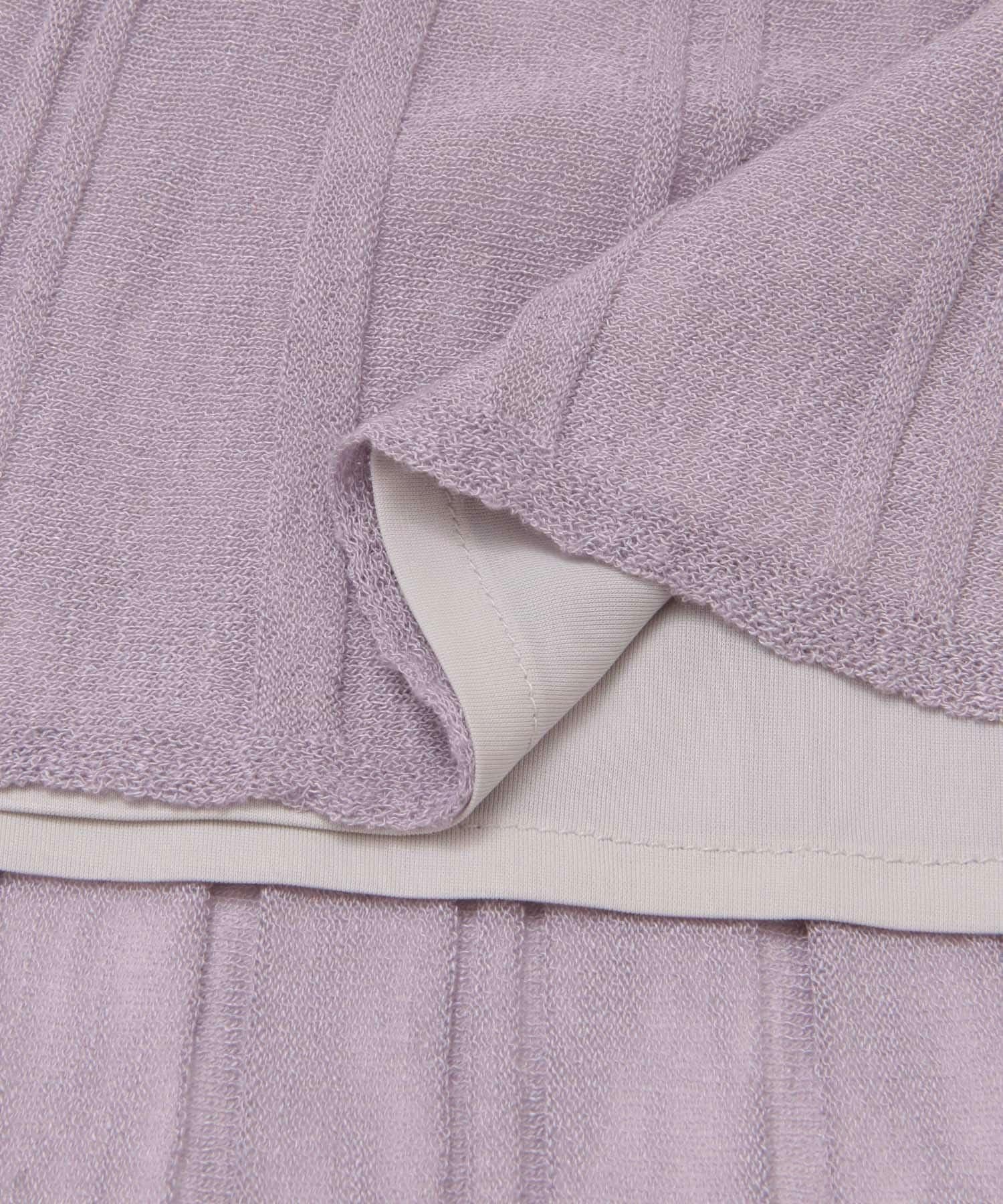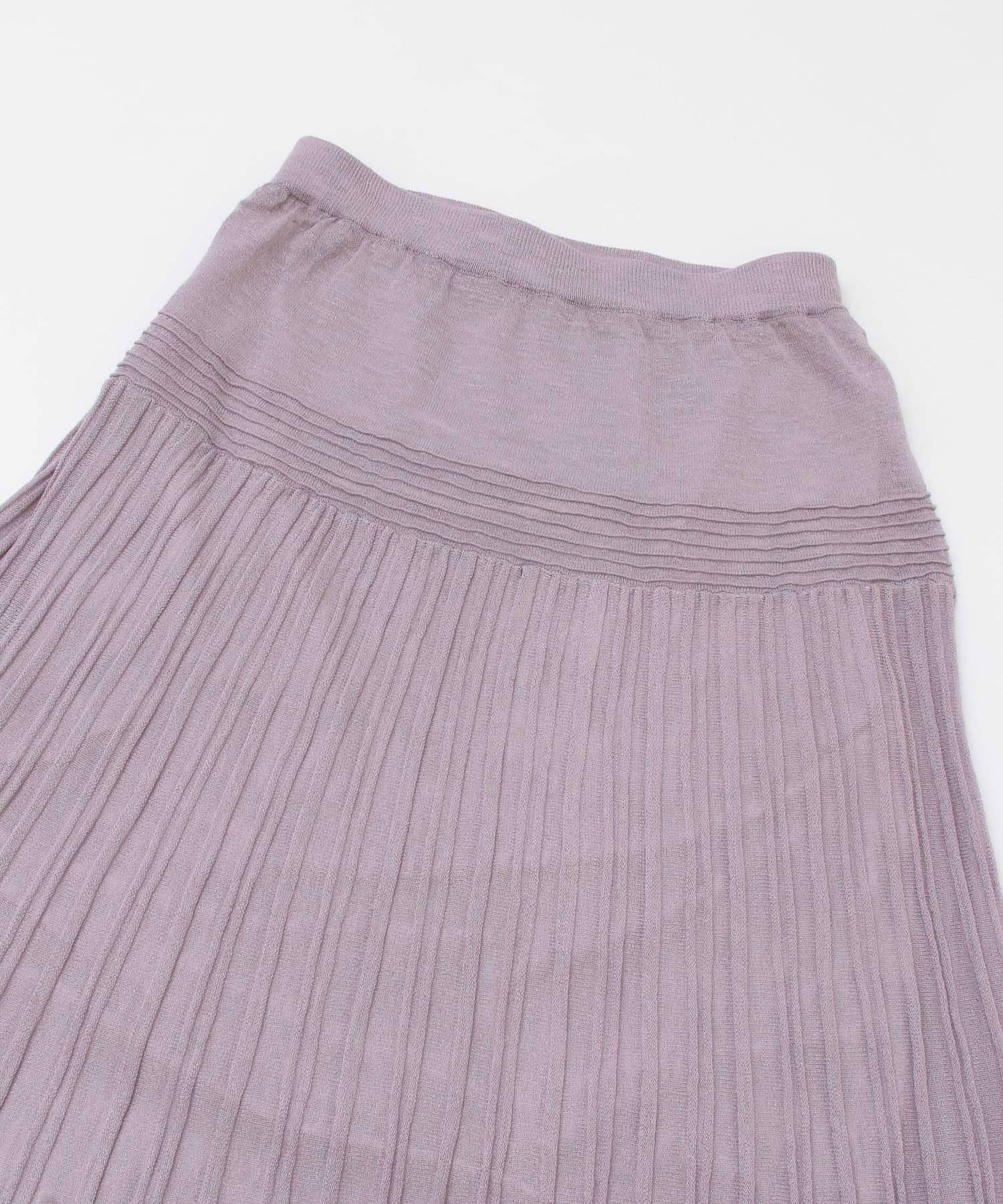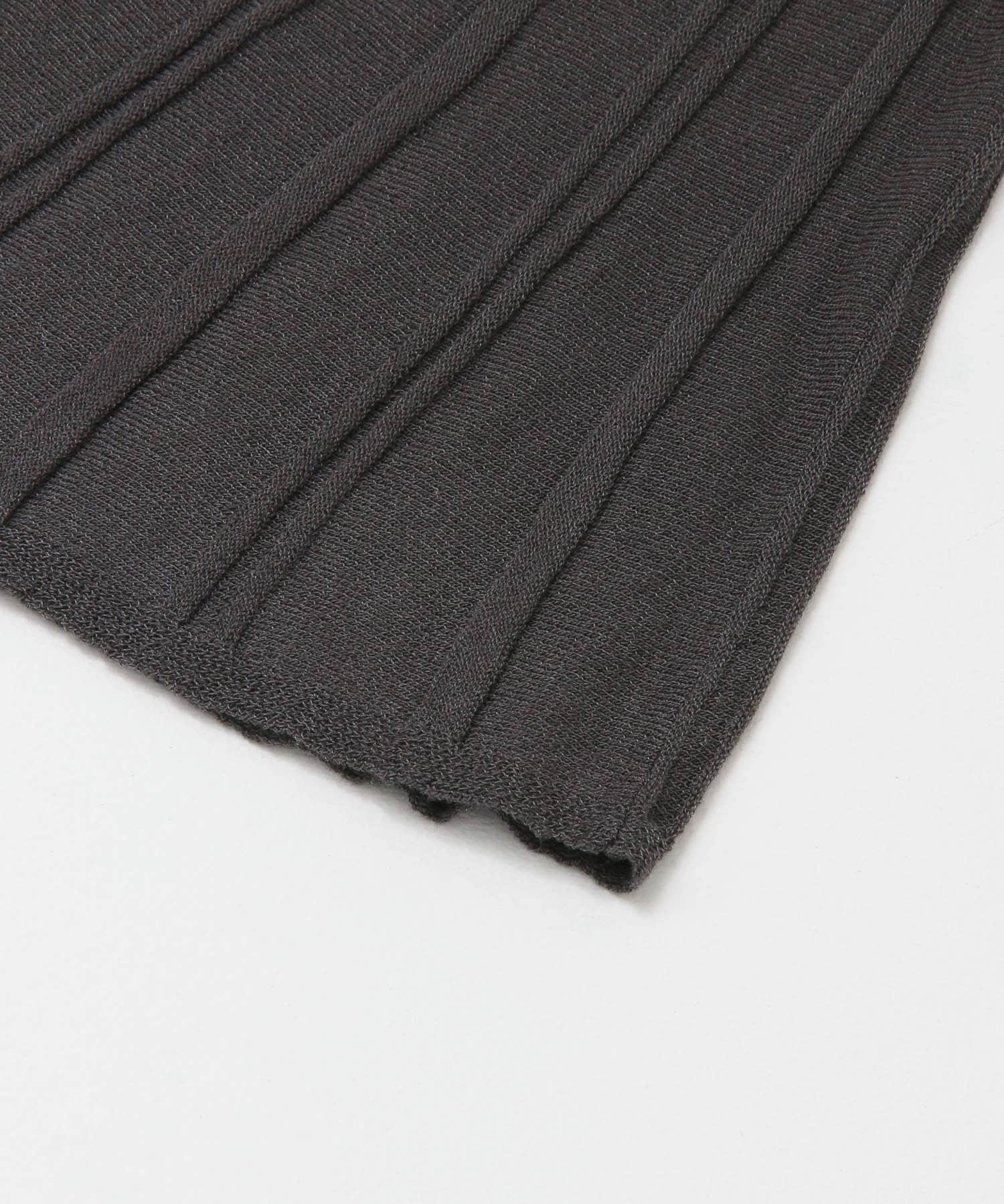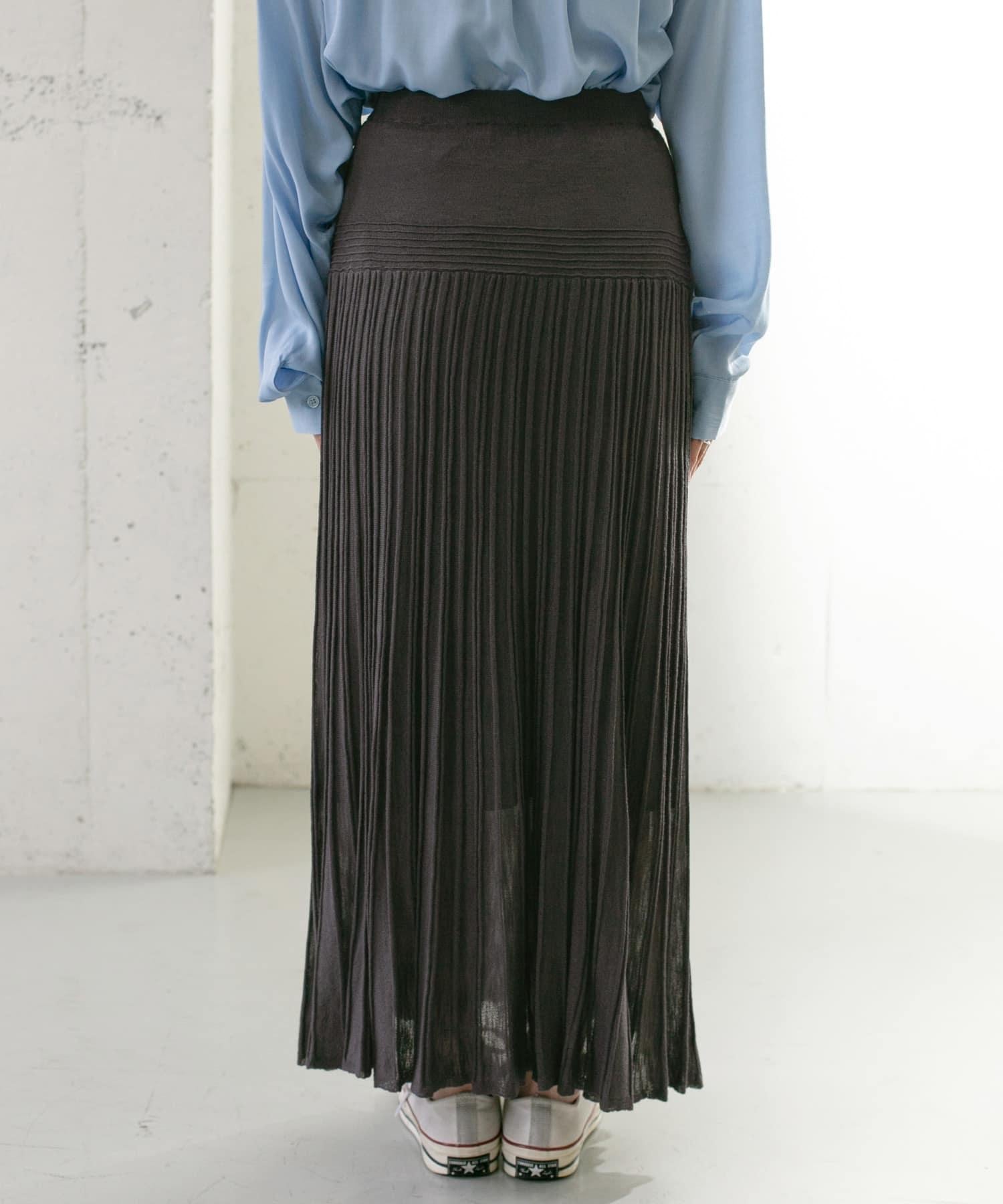 季節性針織裙,略帶透明感。從腰部到臀部的線條簡潔迷人。向下擺延伸的褶皺也營造出美腿效果。