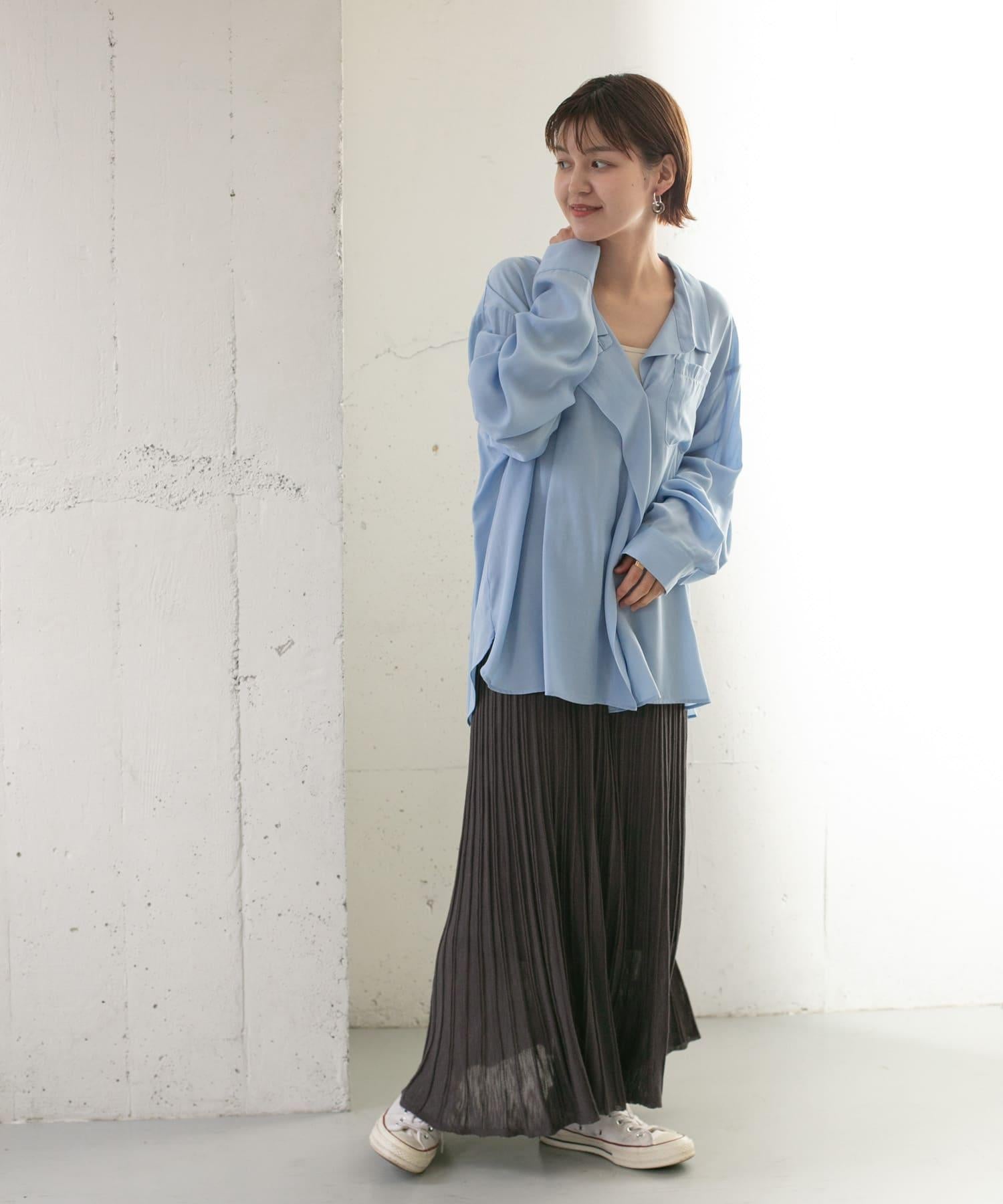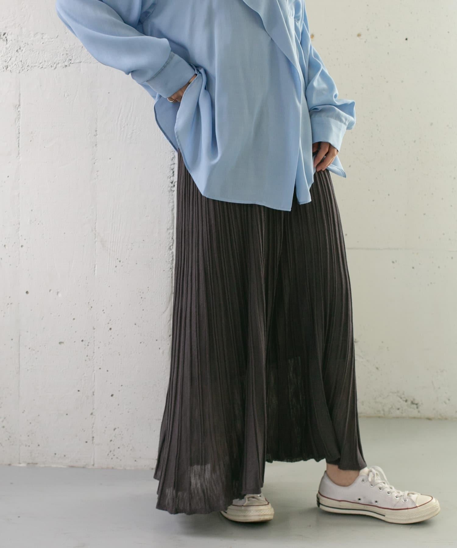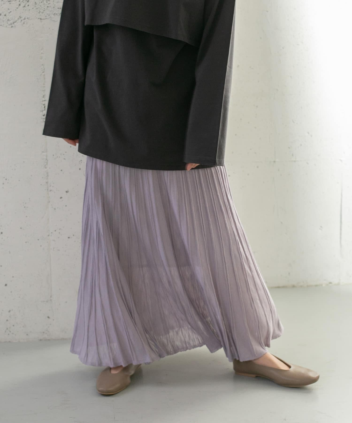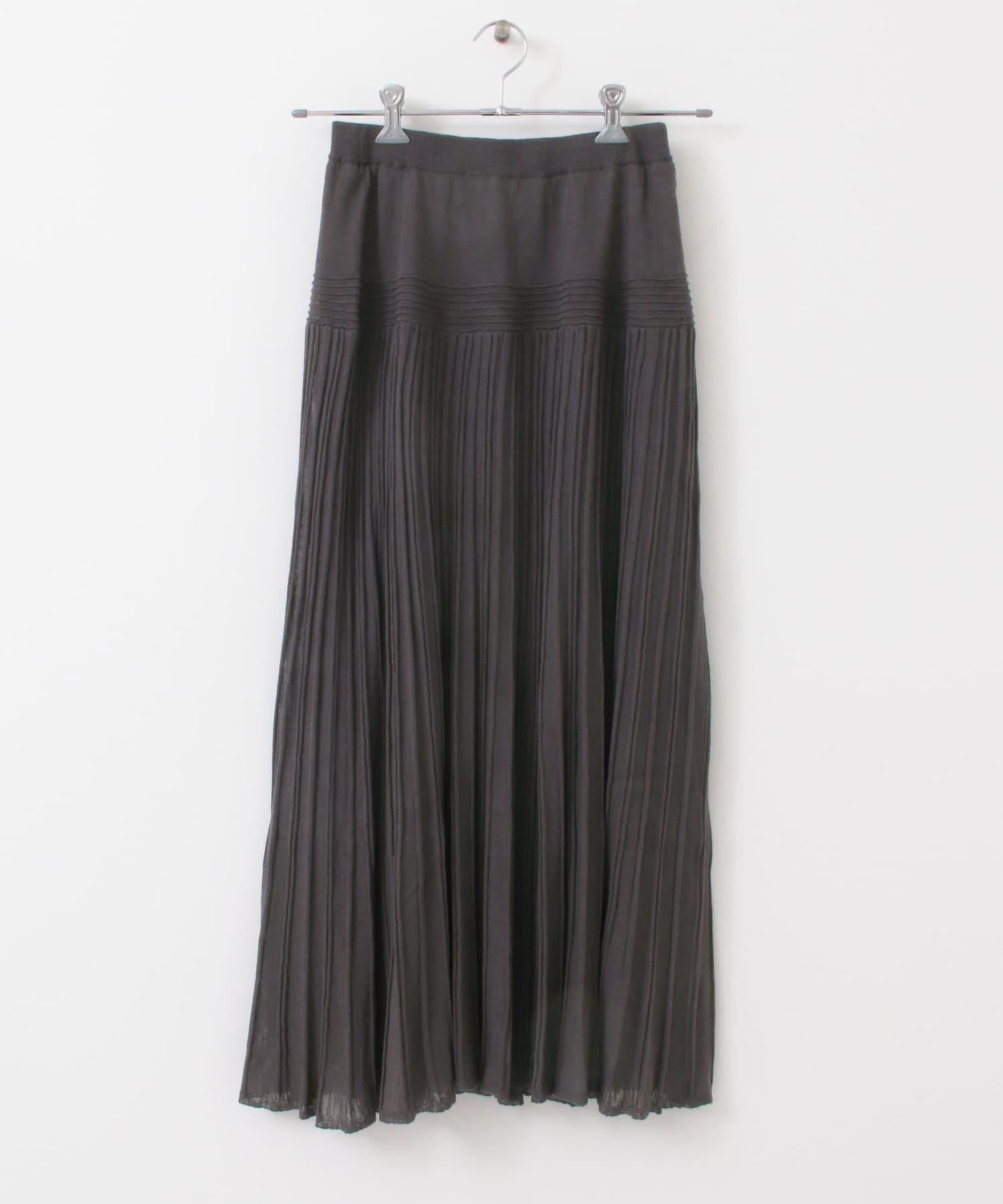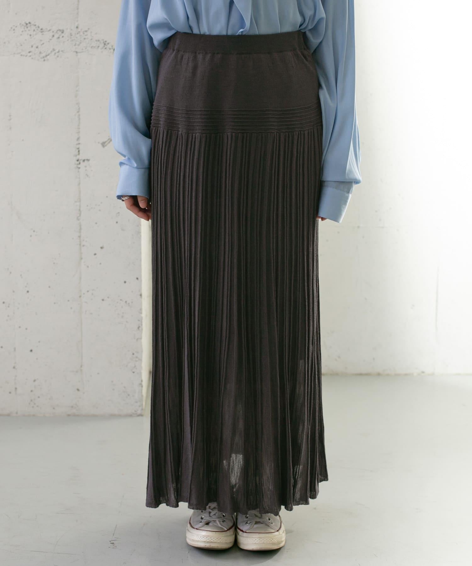 季節性針織裙,略帶透明感。從腰部到臀部的線條簡潔迷人。向下擺延伸的褶皺也營造出美腿效果。