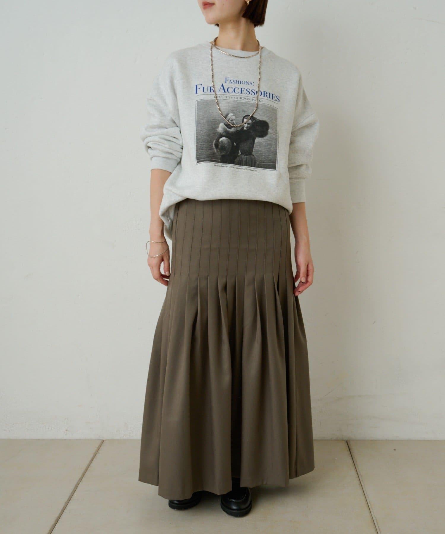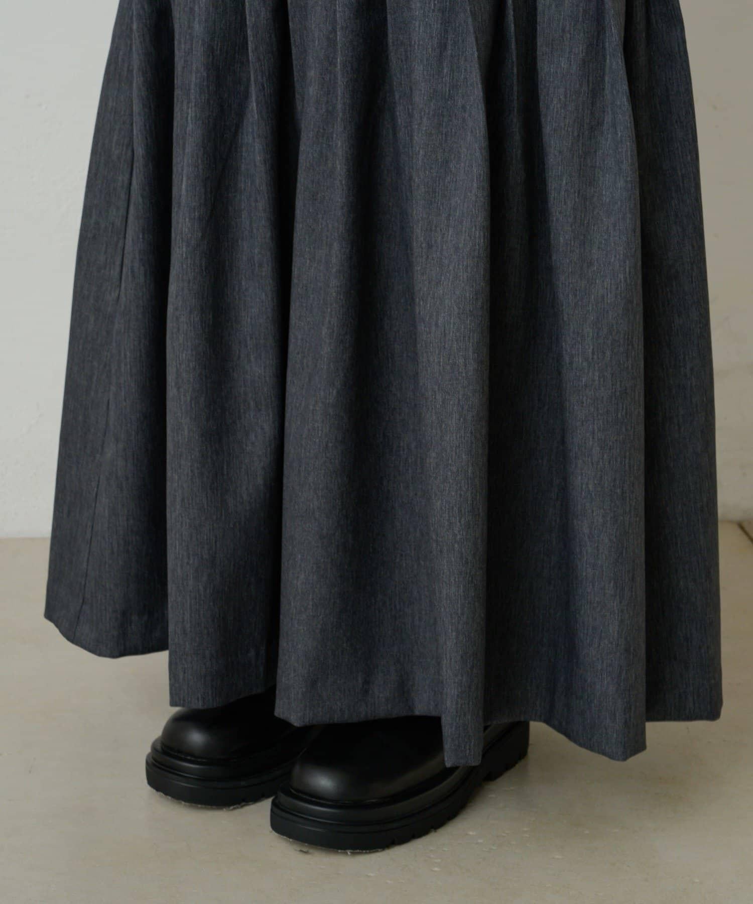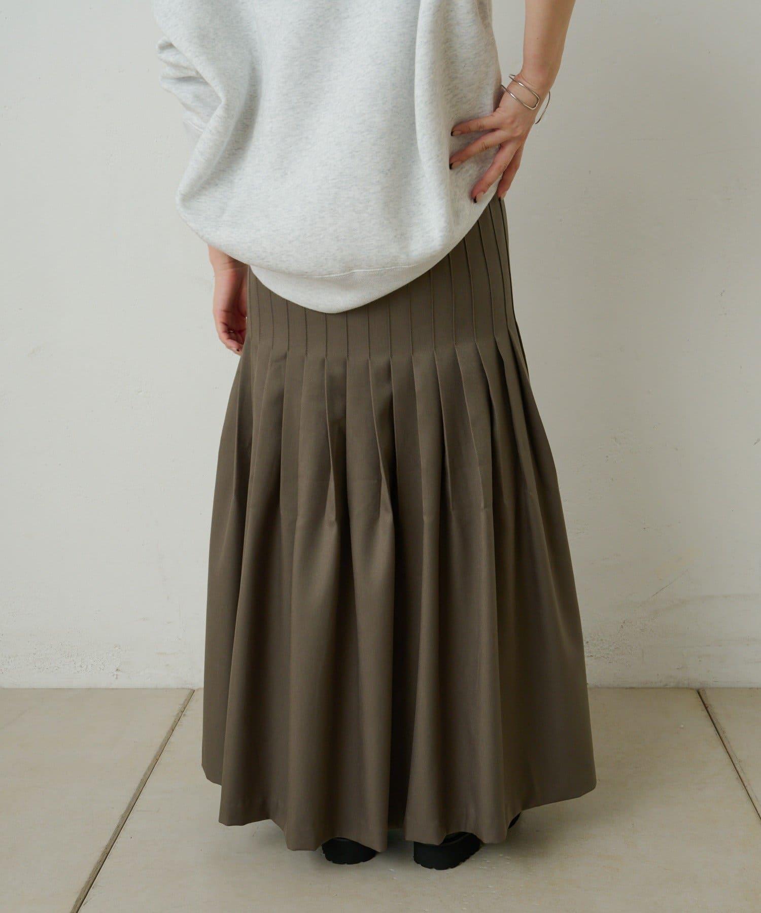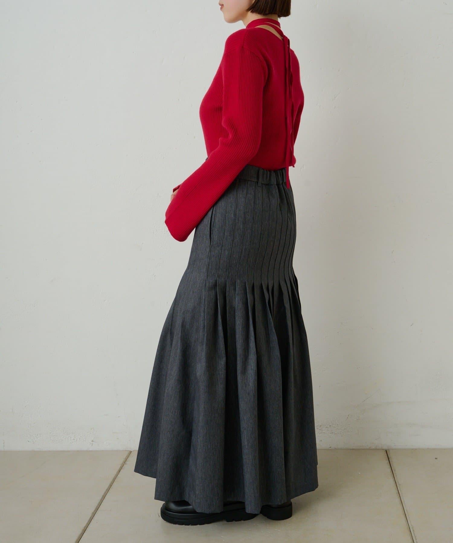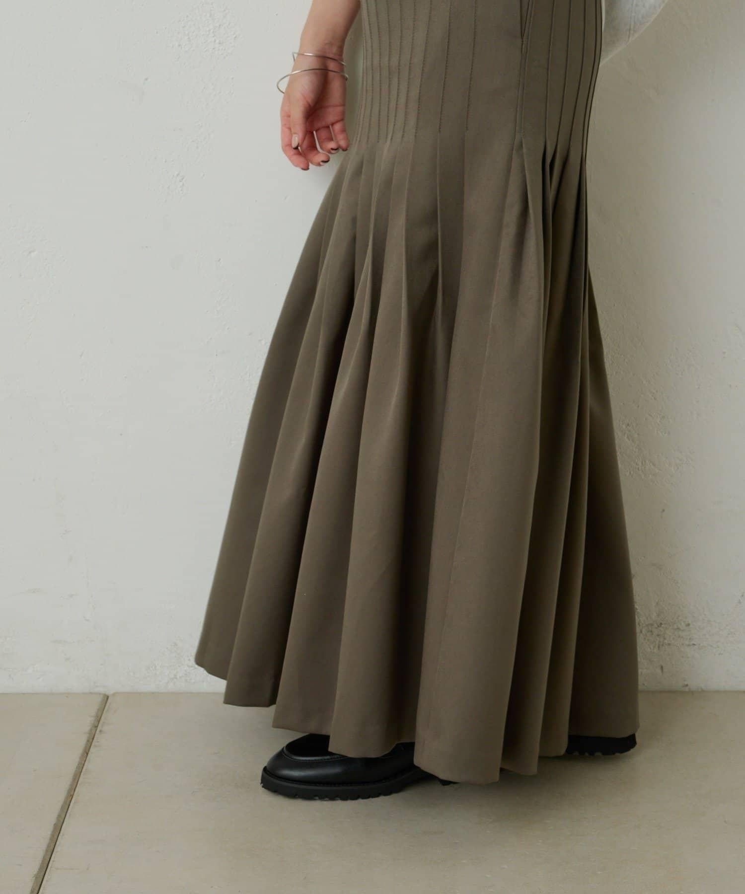 褶皺設計延伸至膝蓋以下,簡約而時尚。