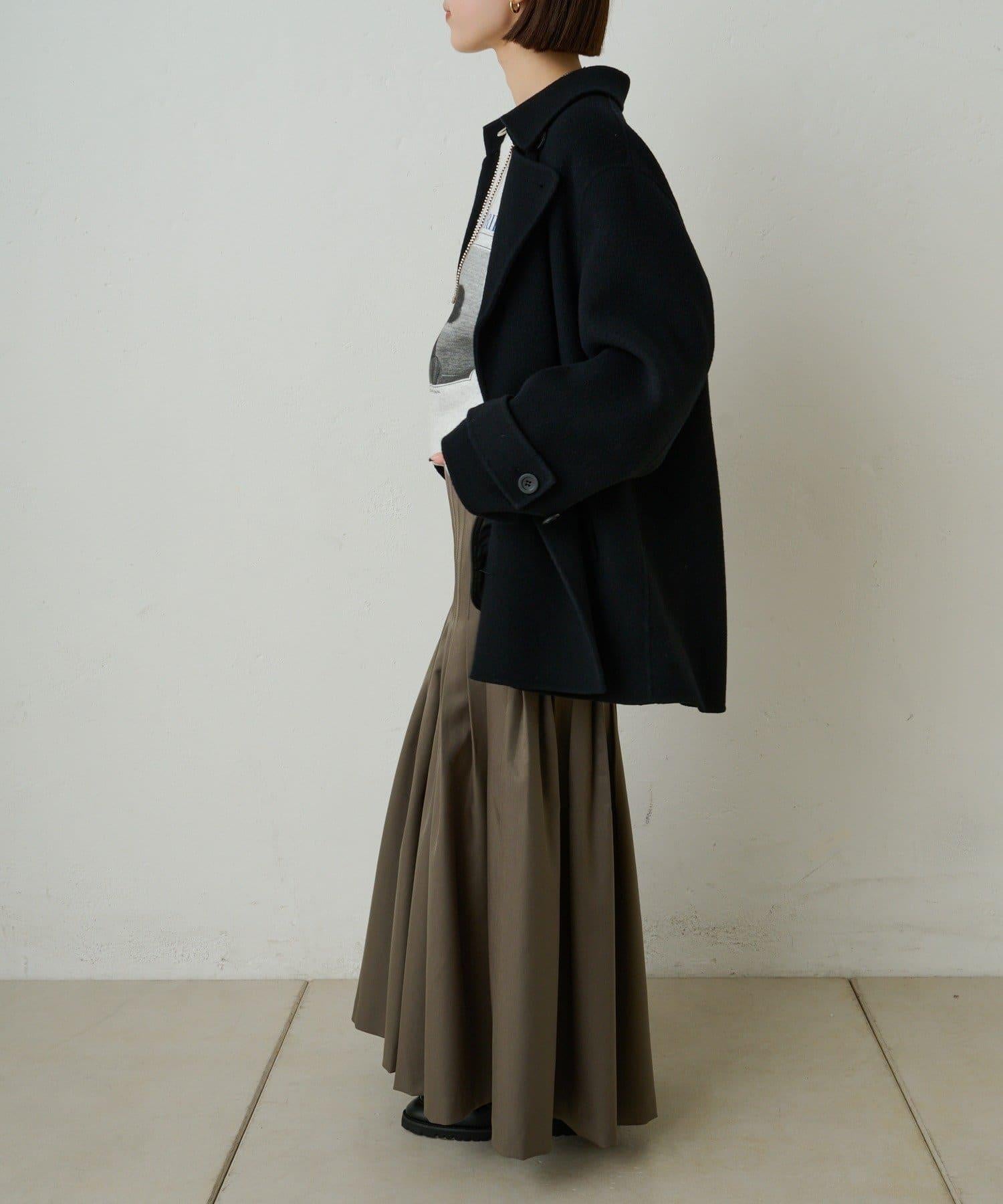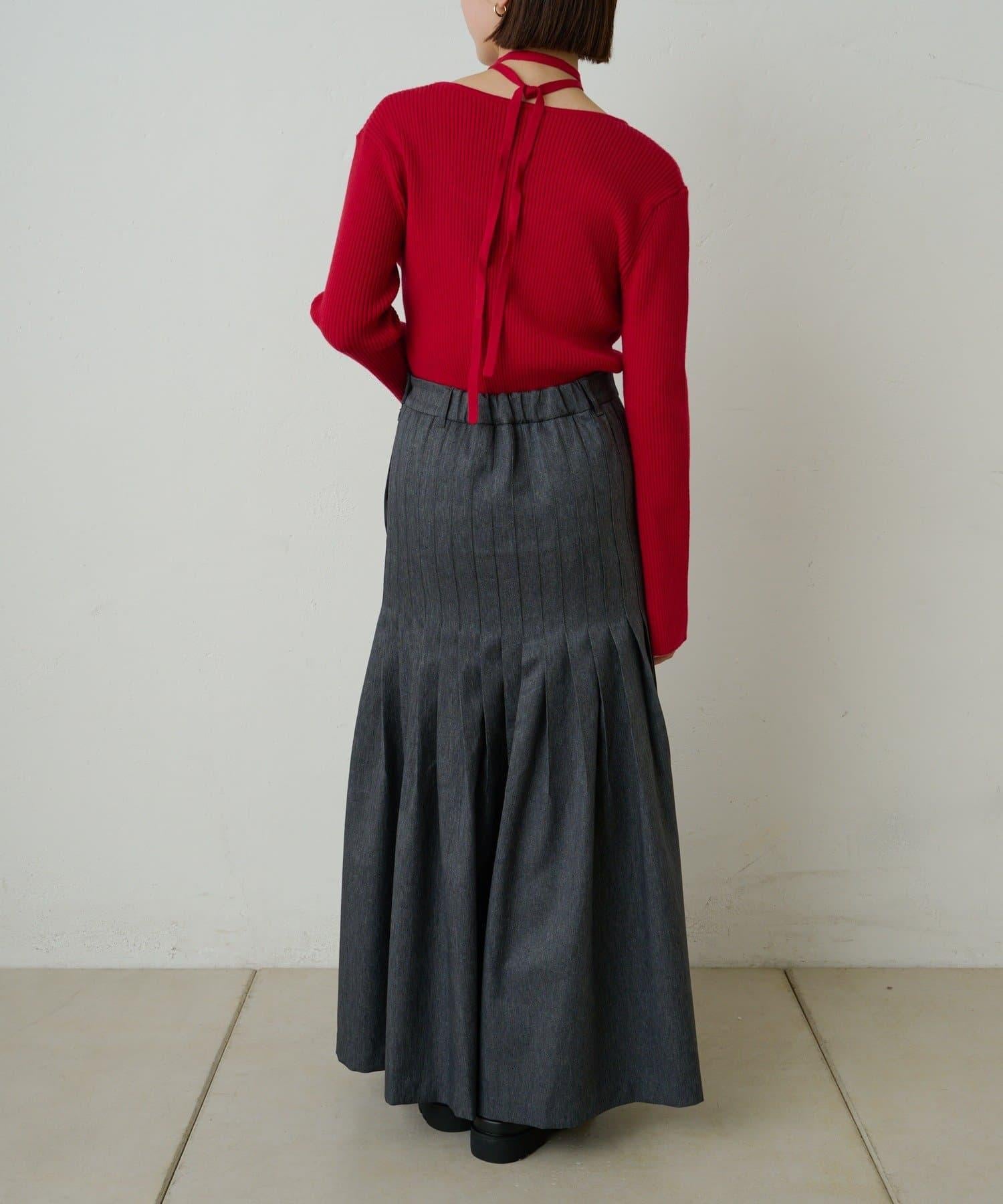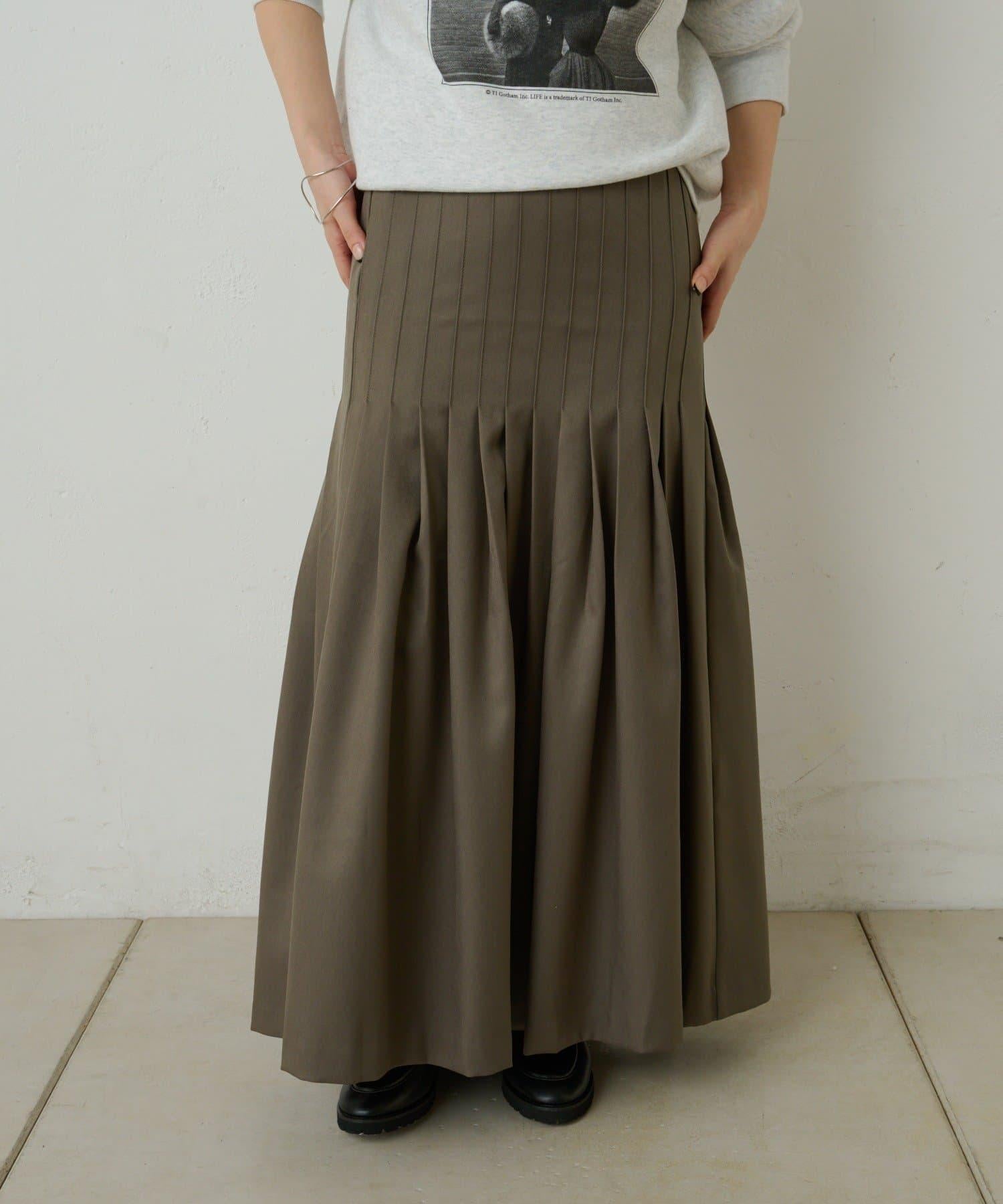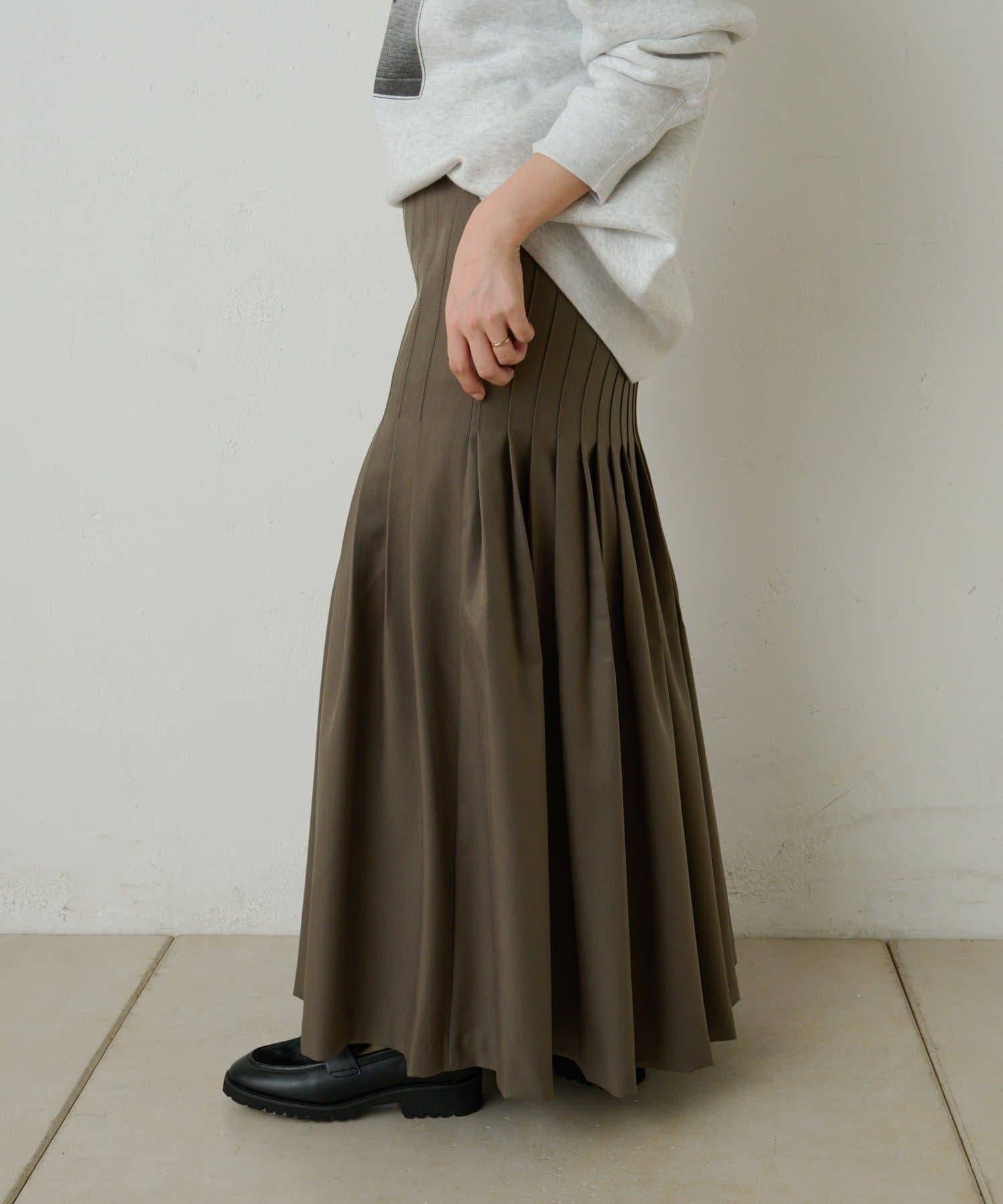褶皺設計延伸至膝蓋以下,簡約而時尚。