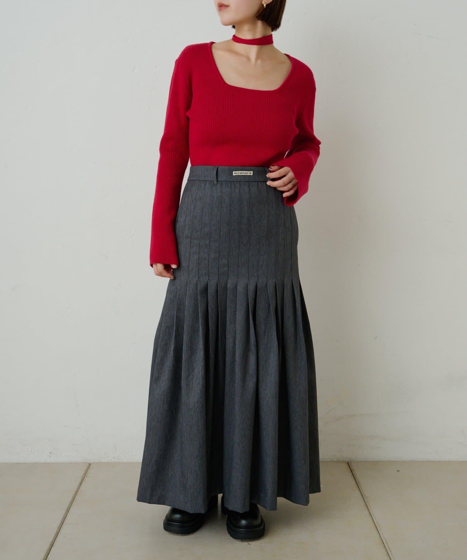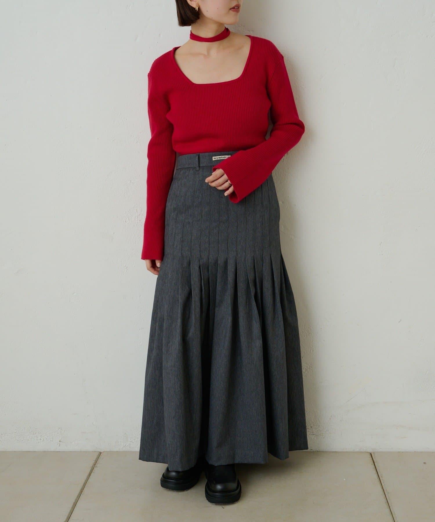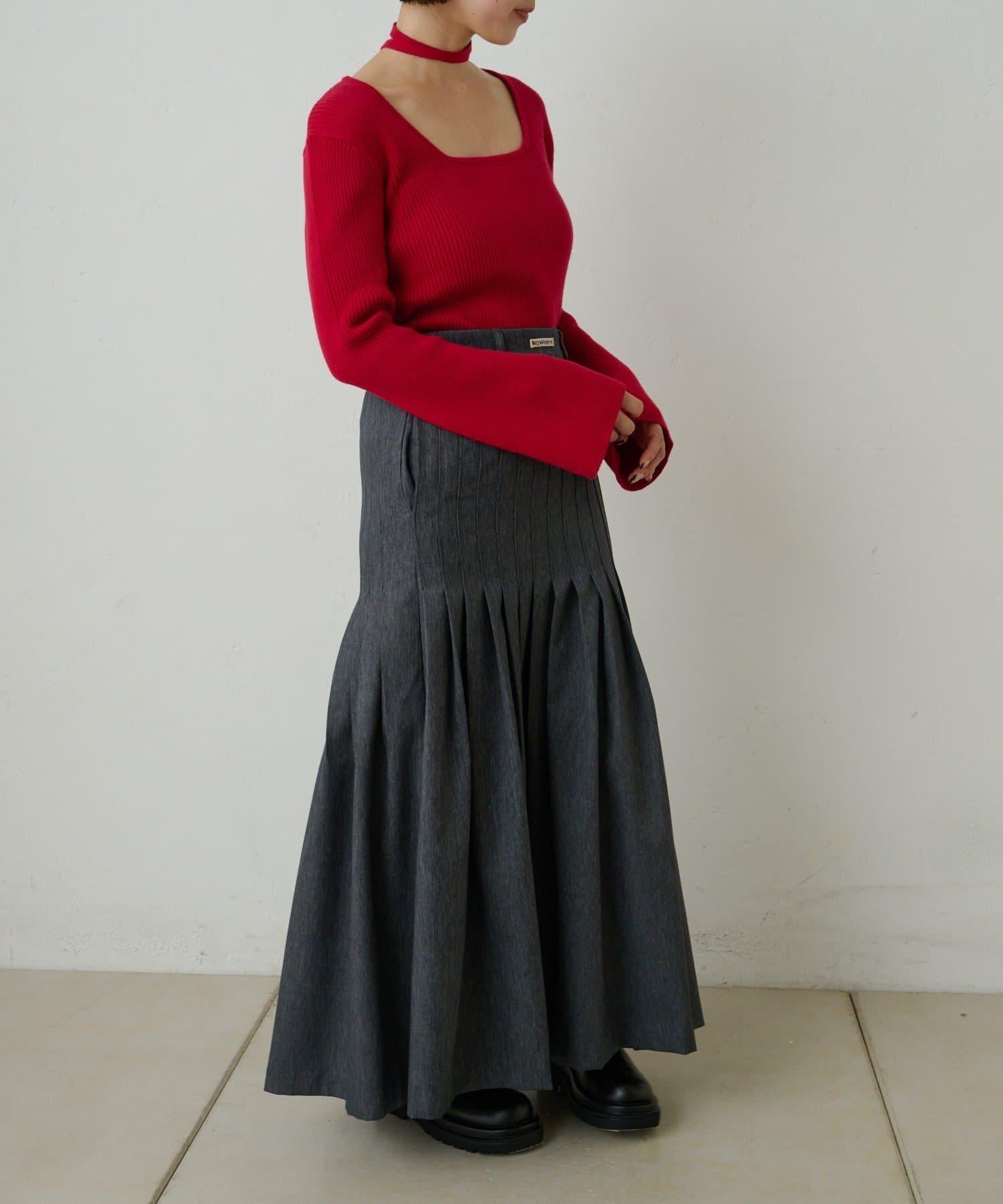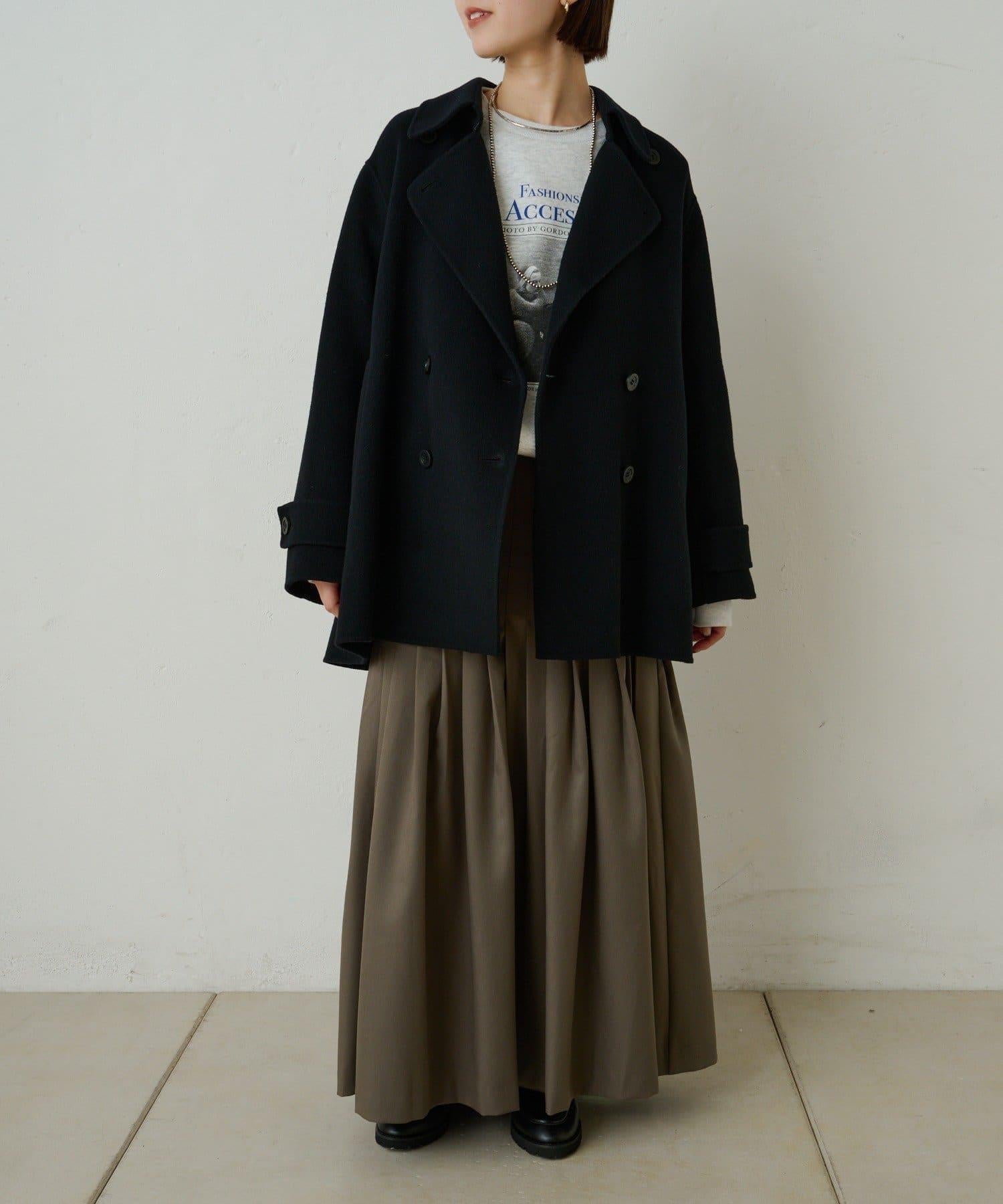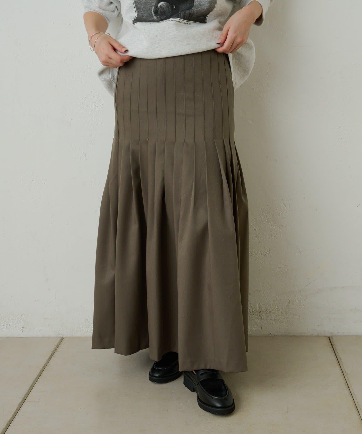 褶皺設計延伸至膝蓋以下,簡約而時尚。