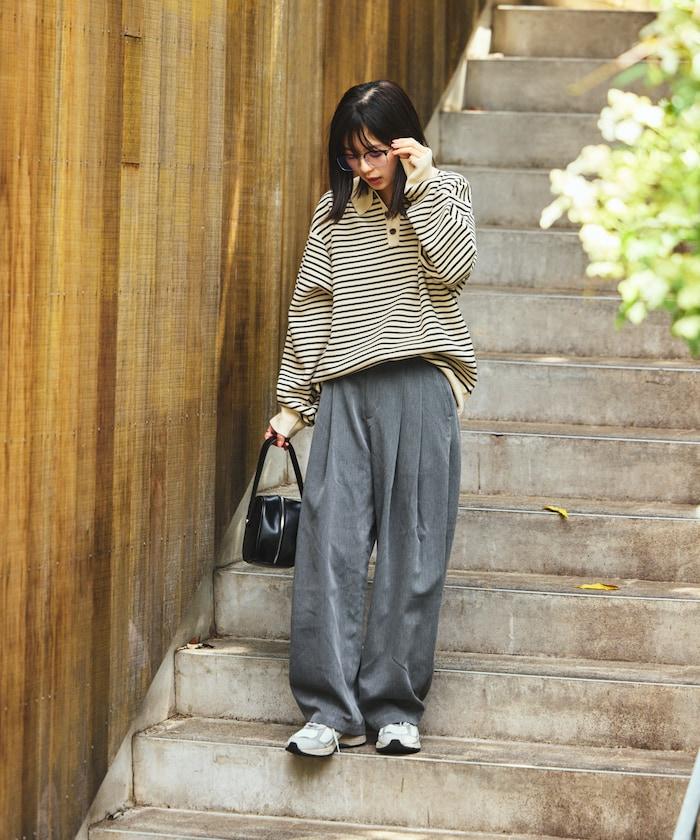高腰設計儘管輪廓寬大,但卻具有拉長腿部線條的效果,並提升了時尚感。