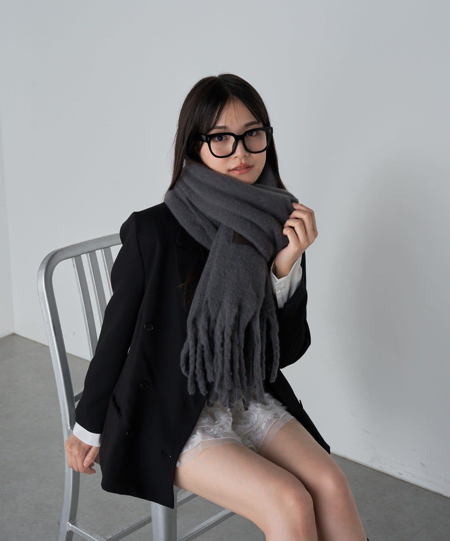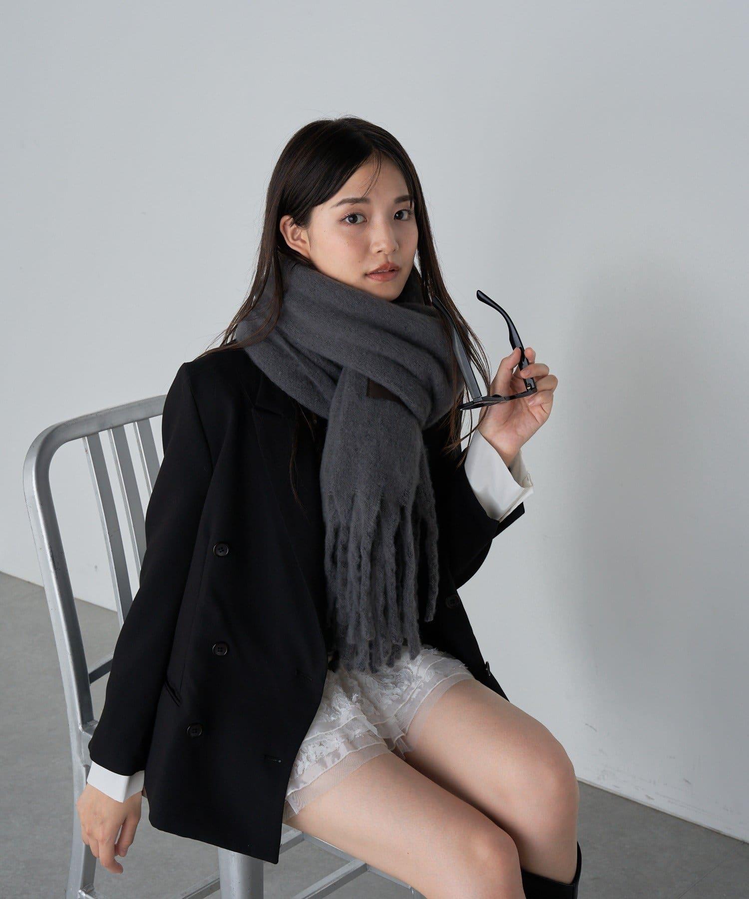 圍巾的尺寸較大,裹在身上會有一種蓬鬆感,對於臉型較小的人來說效果尤為突出。