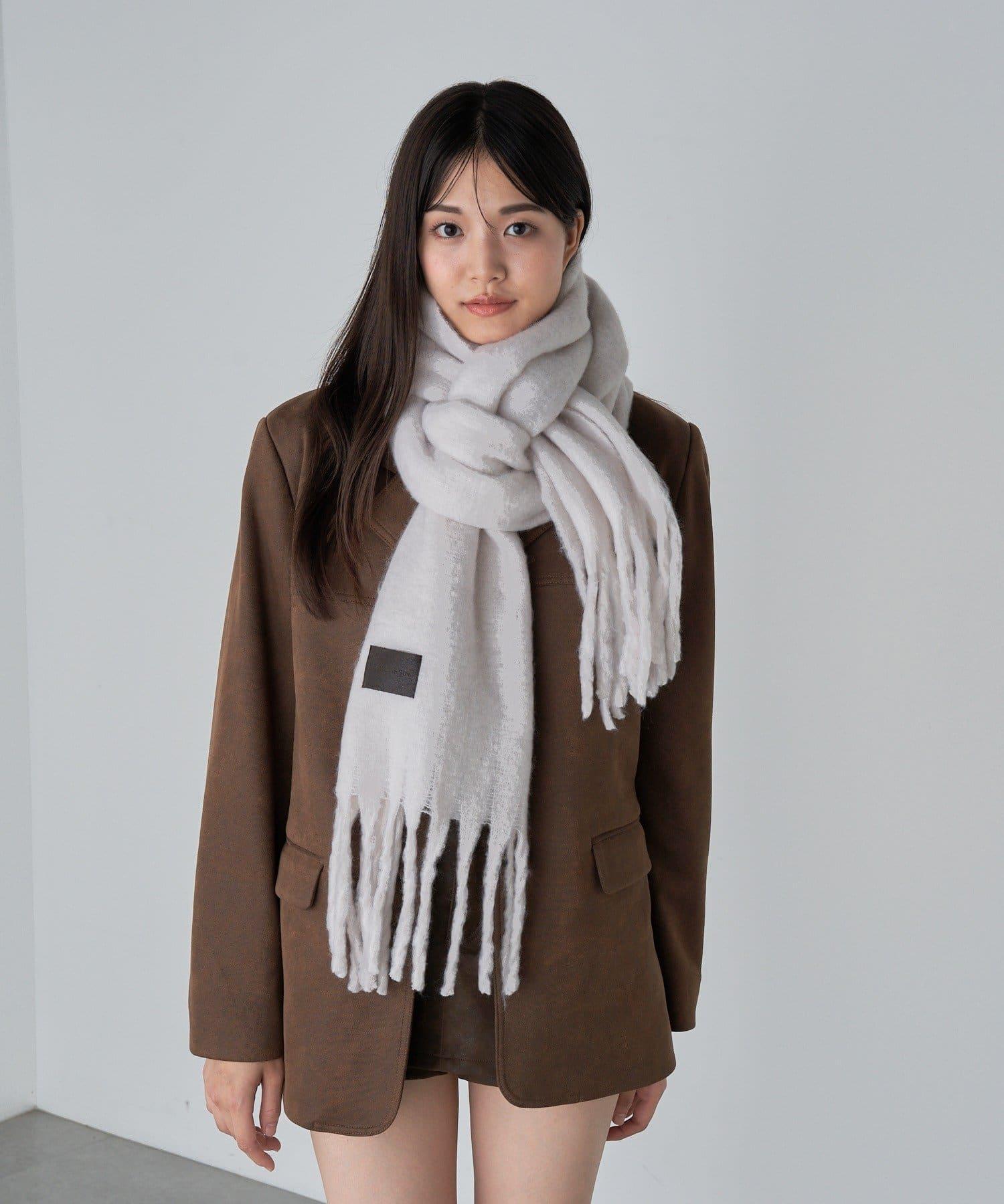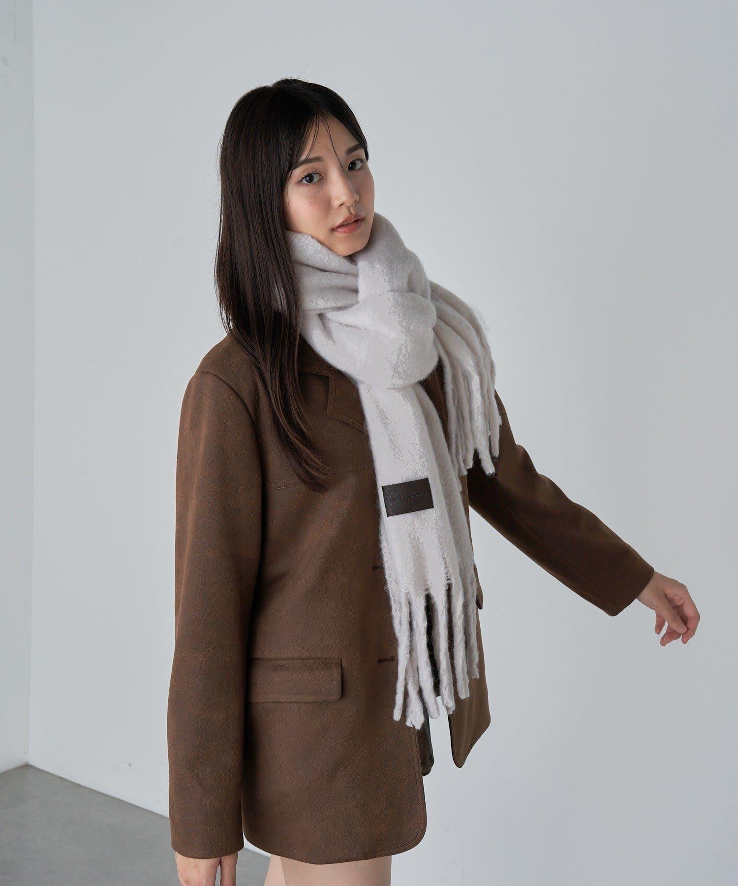 以皮革貼片為單點的素色圍巾現已上市。