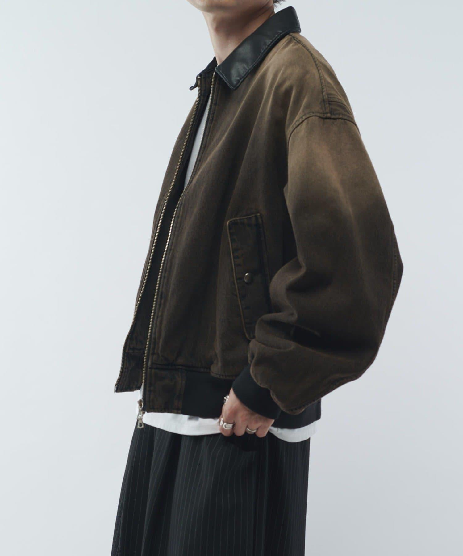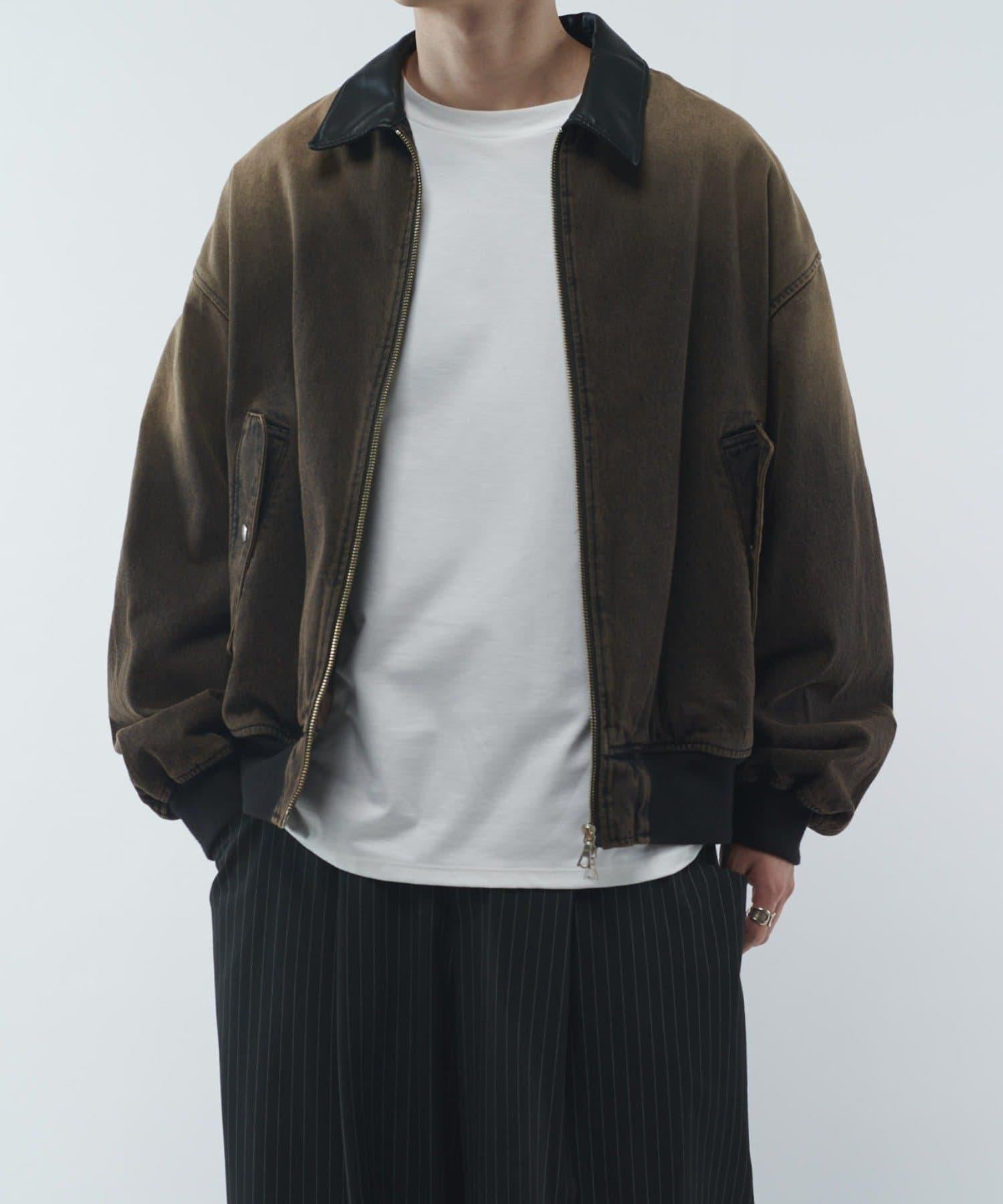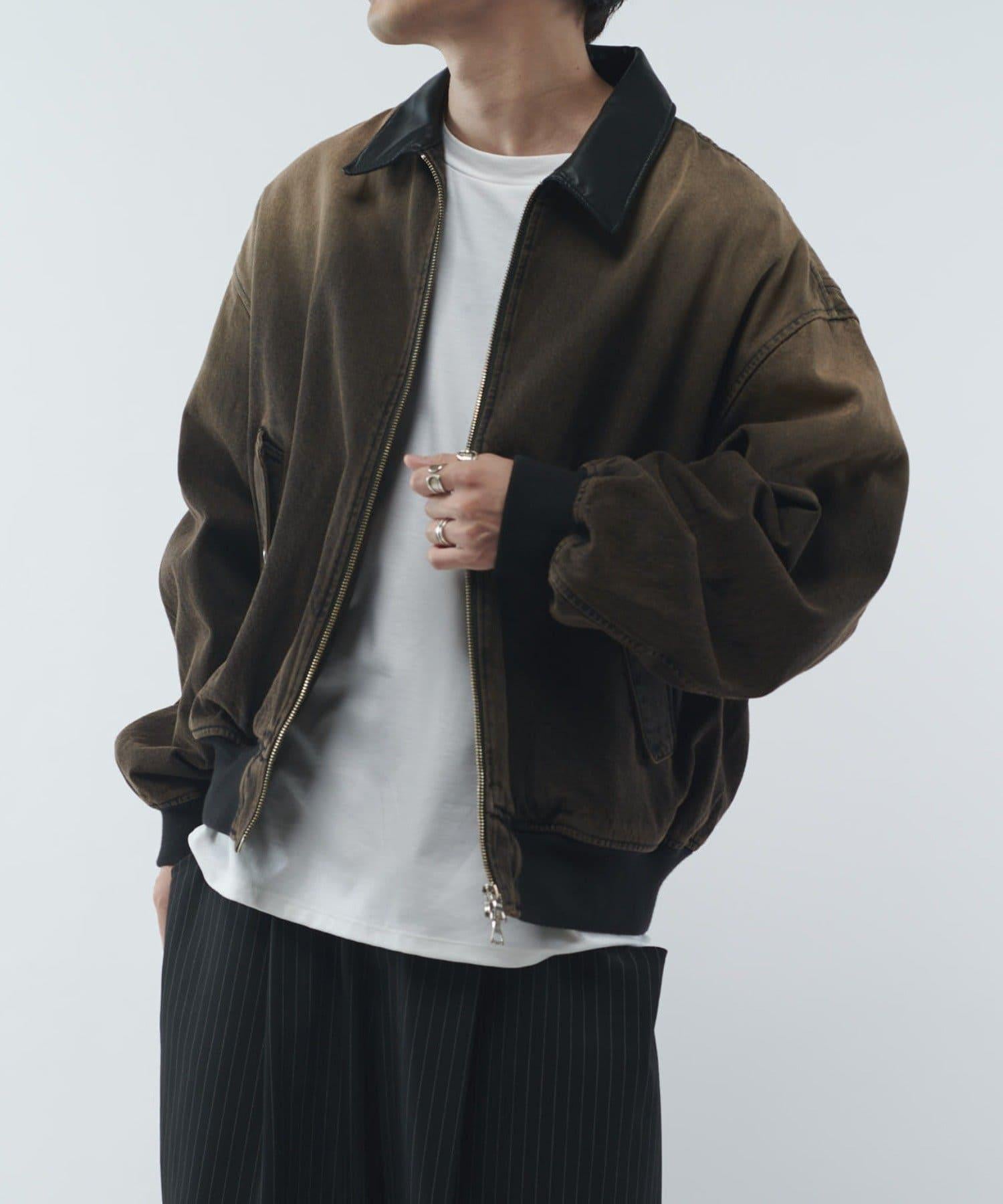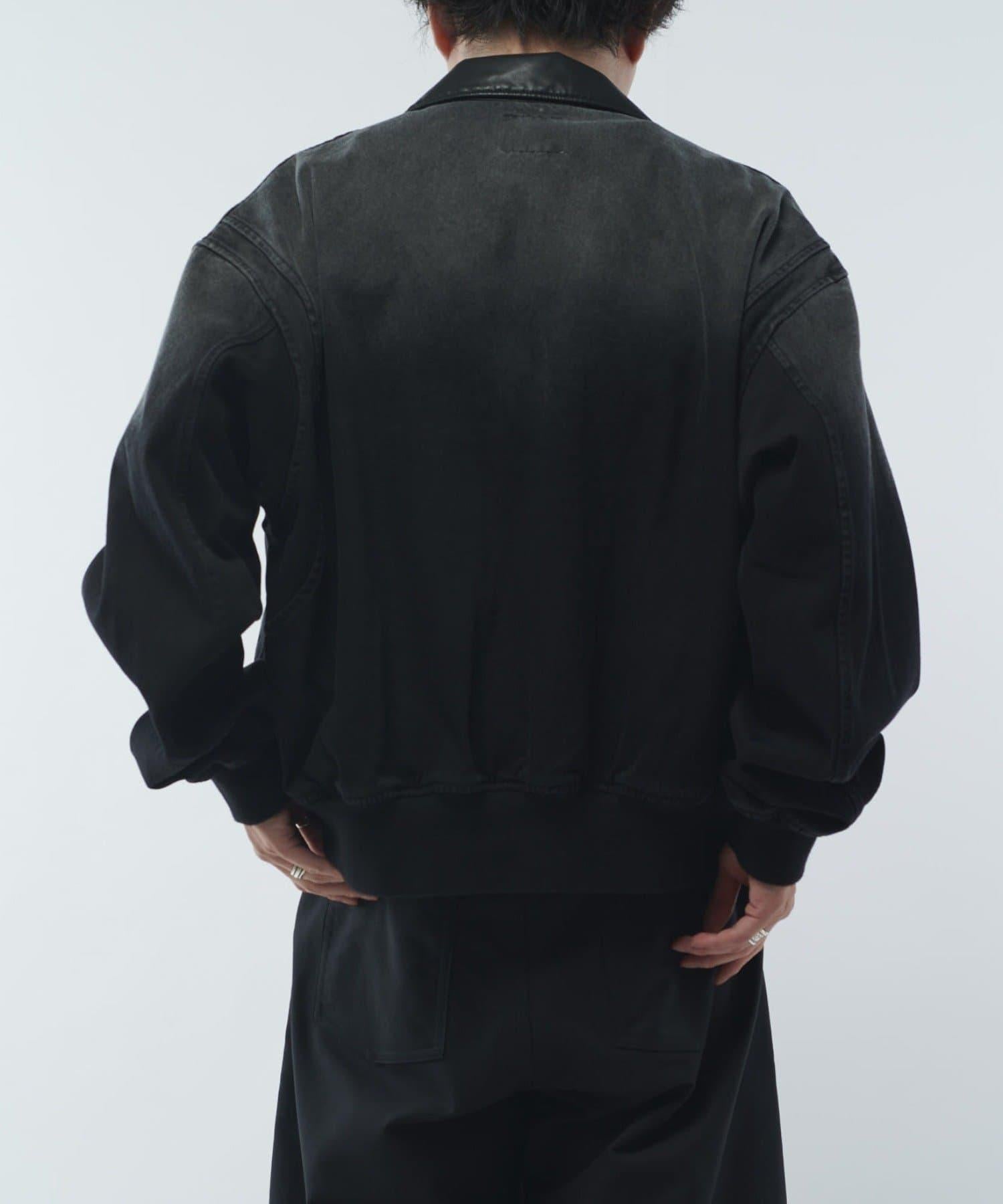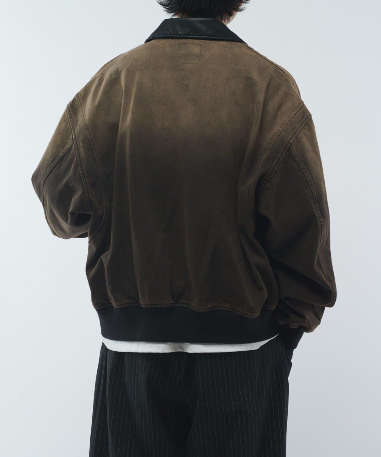 皮革拼接牛仔飛行夾克